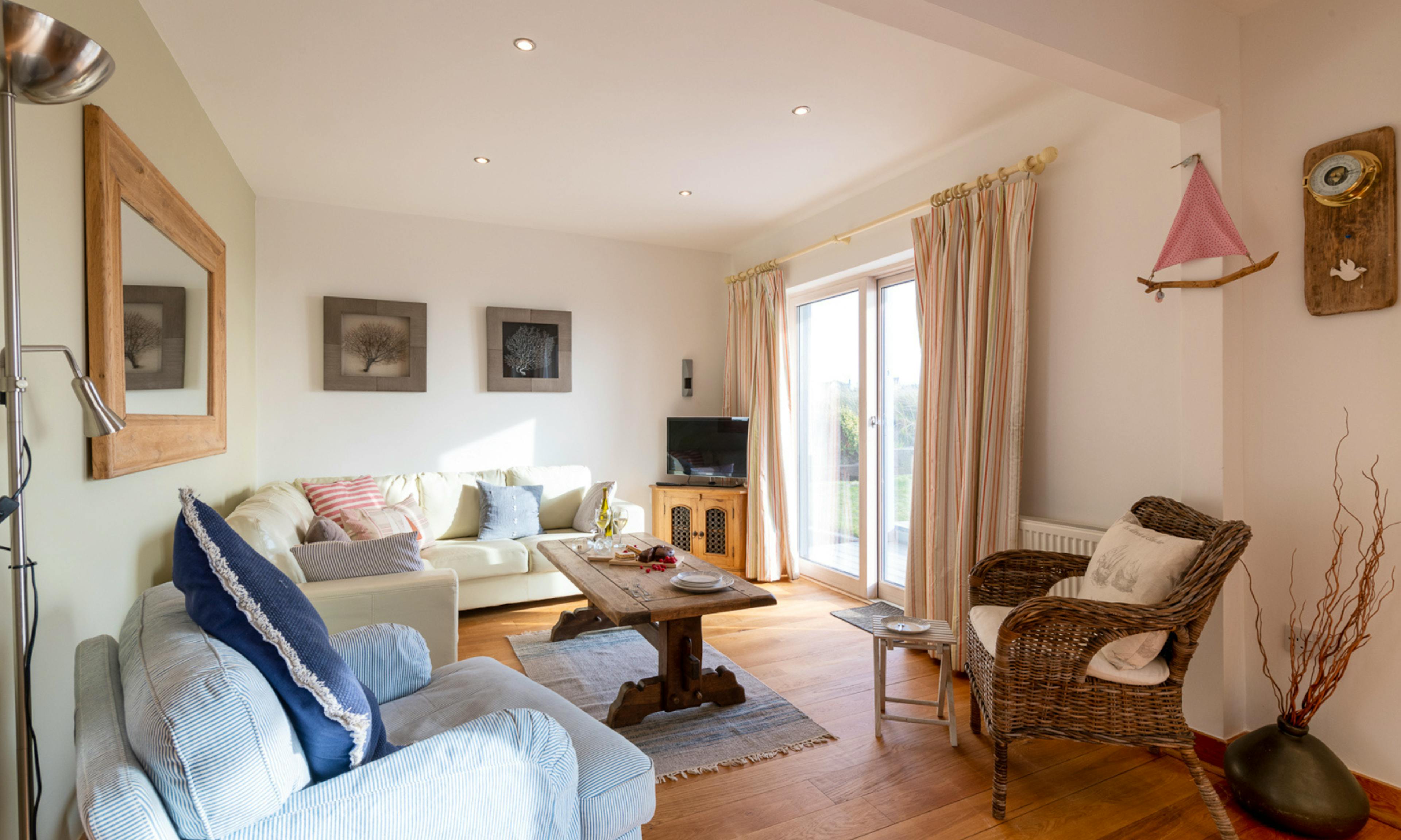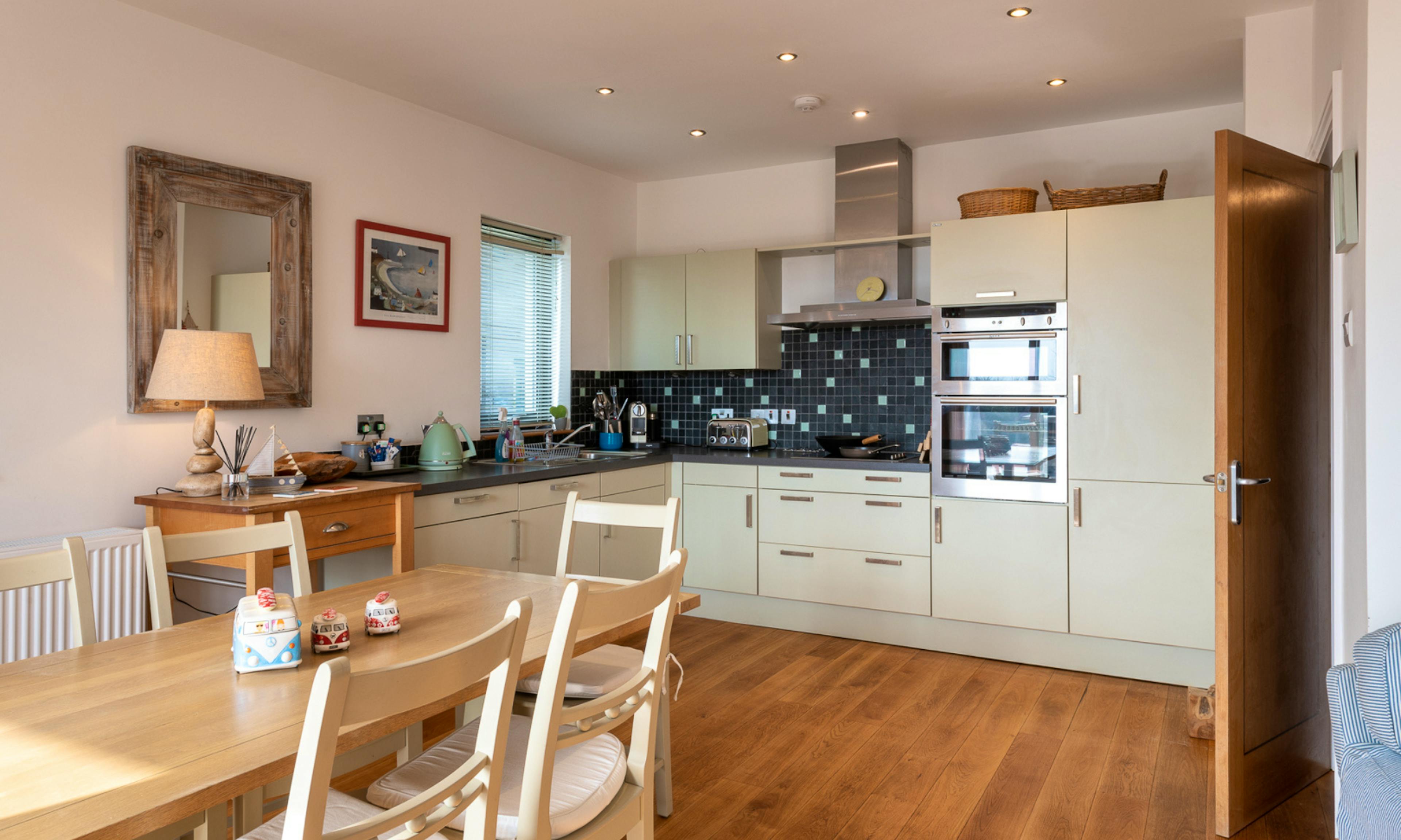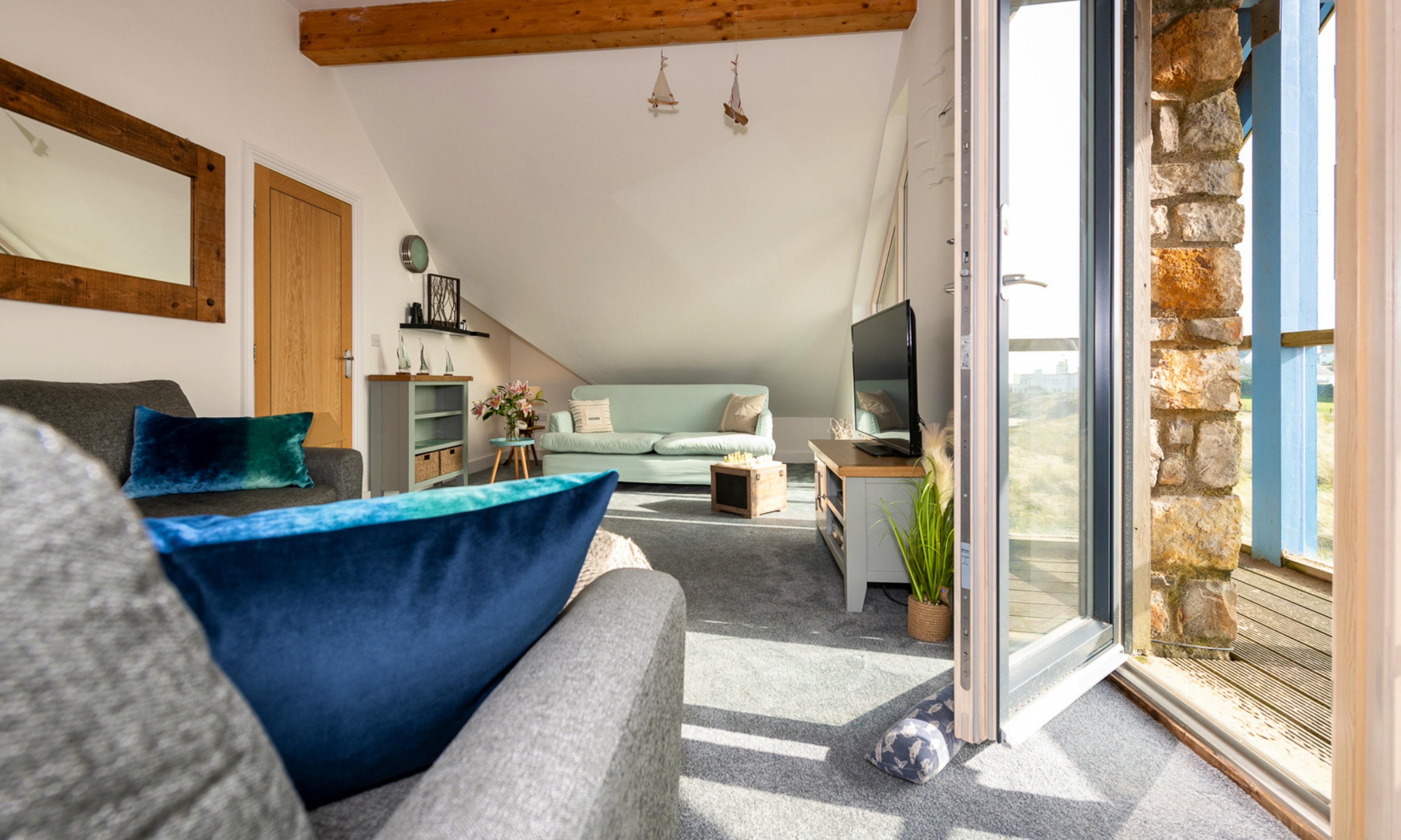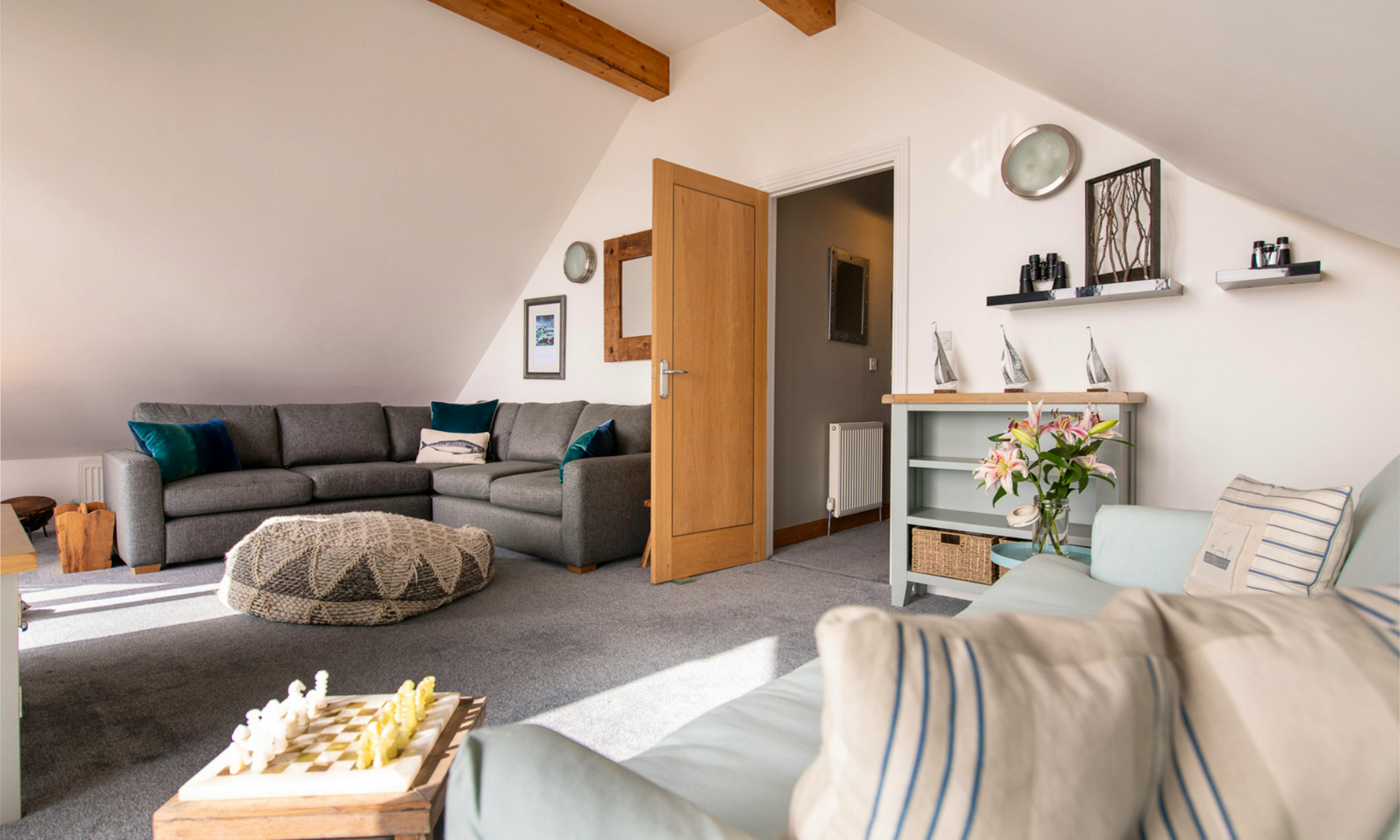 Ground floor includes a twin bedroom, shower room, utility space and a sociable layout ideal for post-beach relaxation and family meals.