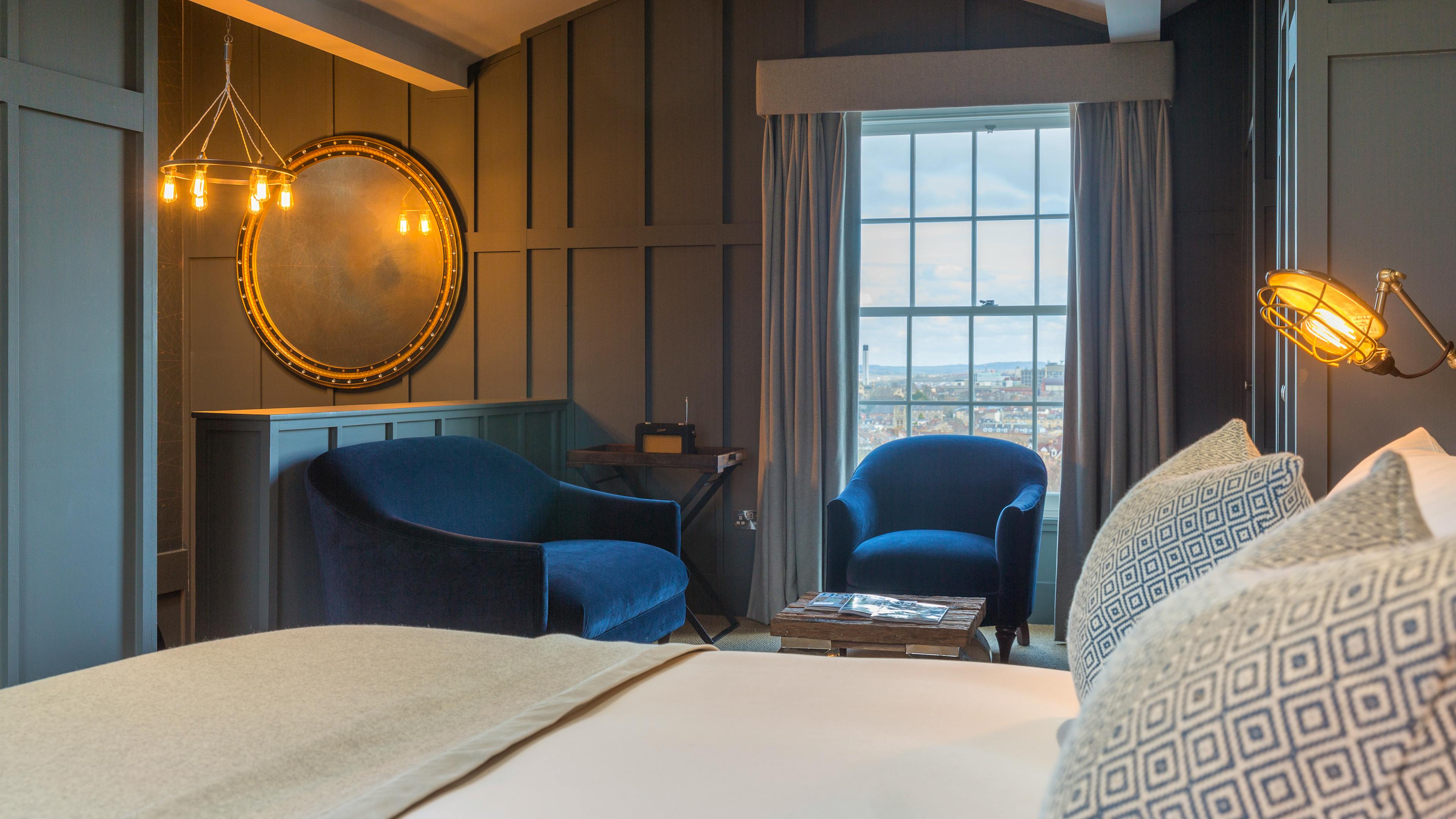 For corporate guests, consider booking the private, elegant Meeting Room with its 50 inch HD television, leather seats for up to ten attendees, and tea/coffee and snacks throughout the day, all looking over Bristol metropolis.