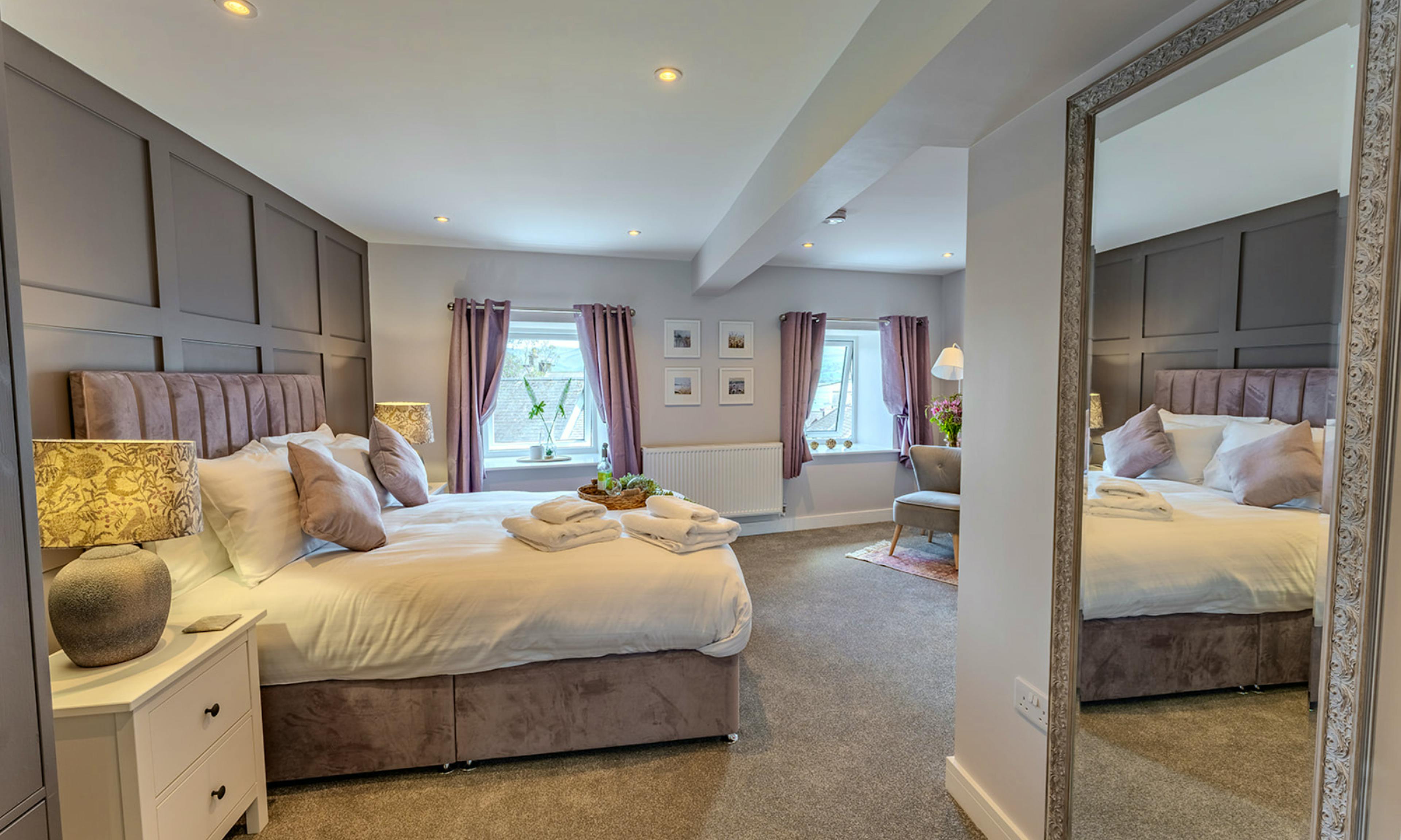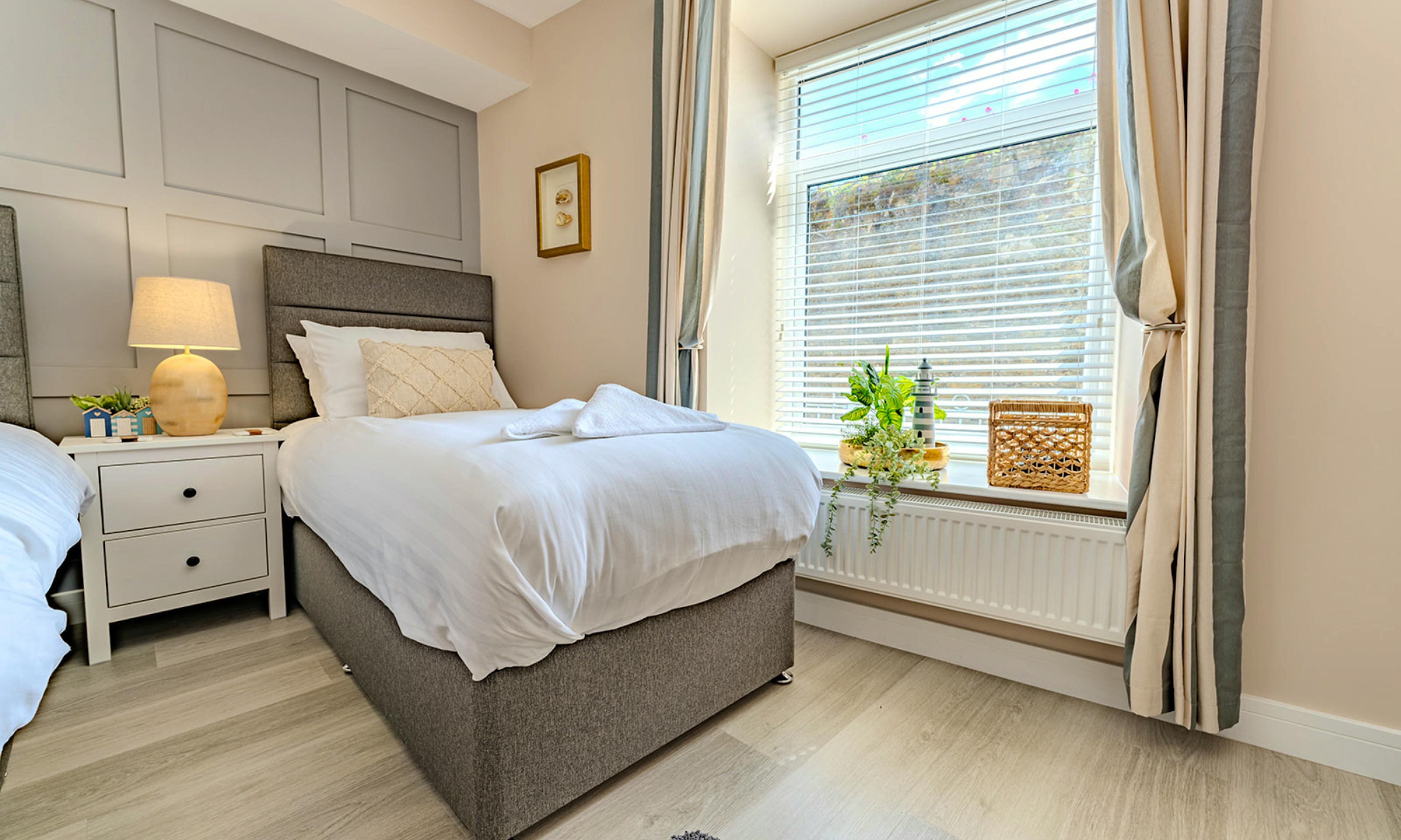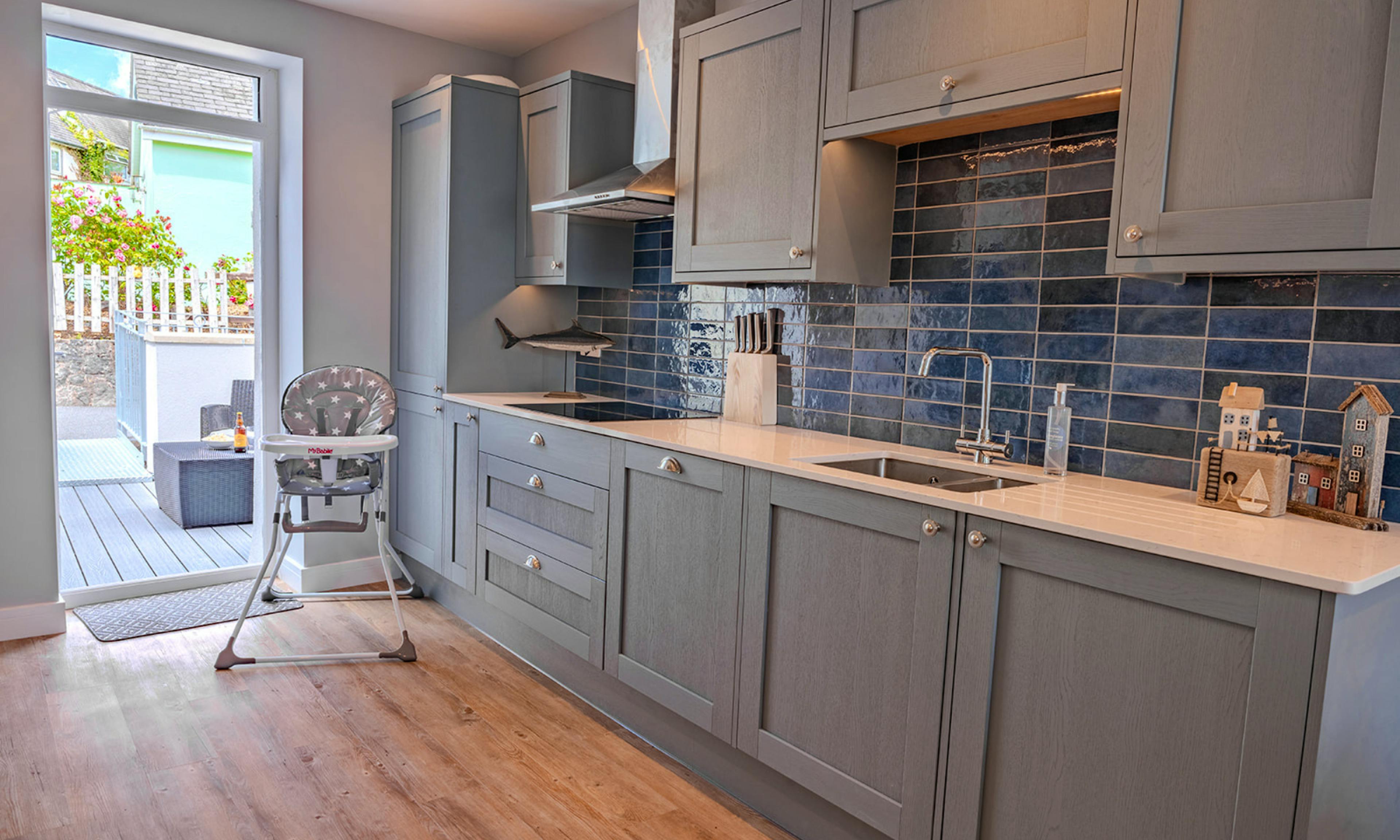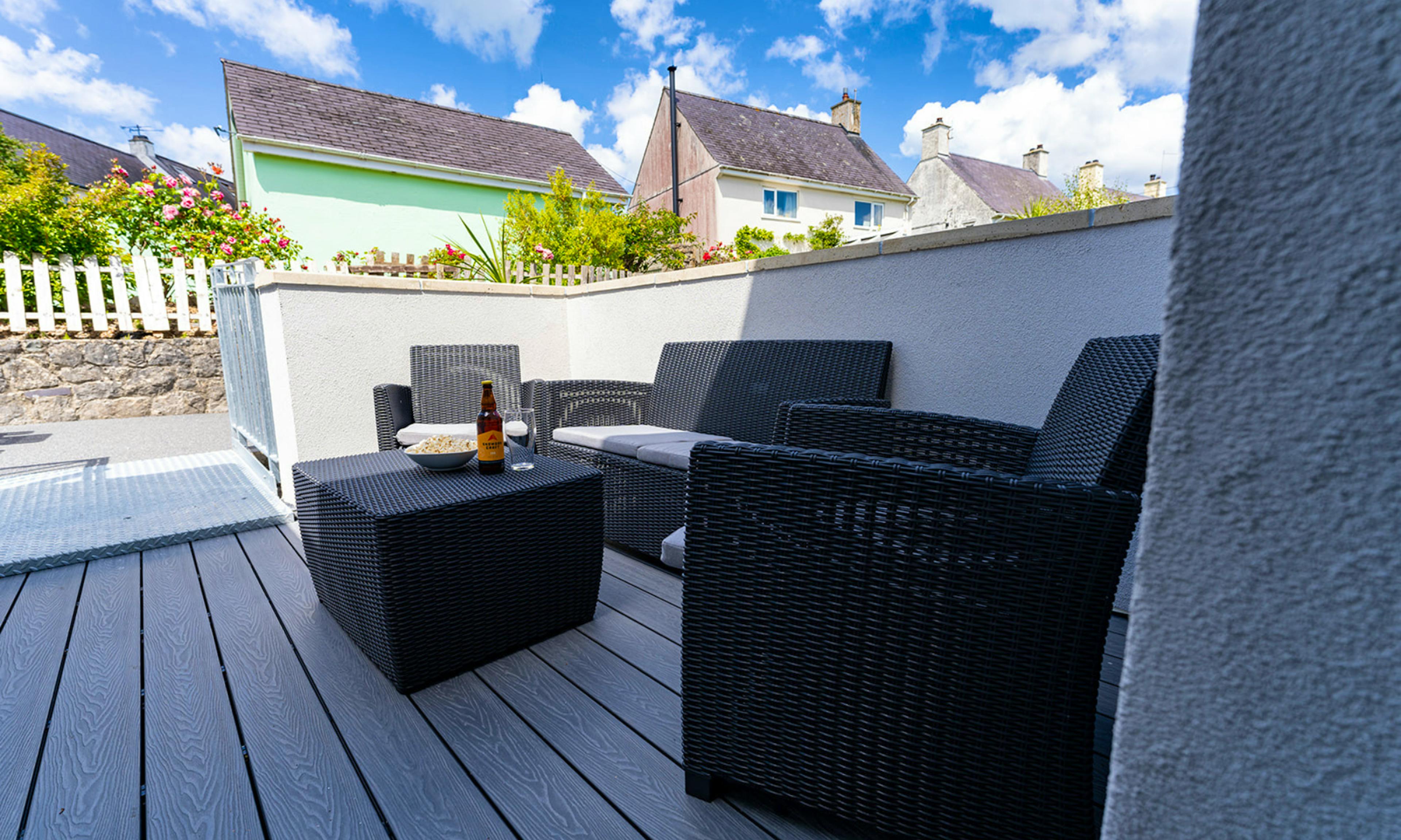 No. 66 is a bright and stylish bolthole set over three floors in the heart of Beaumaris – where laid-back coastal living meets contemporary comfort. When you arrive, you'll love the views stretch from the peaks of Eryri National Park (Snowdonia) to the sparkling sea. Inside, you’ll find three beautifully presented bedrooms – two on the ground floor, including a twin with an ensuite and a king with its own bathroom, and a dreamy top-floor master with a king size bed, ensuite and breathtaking views to wake up to. Each room is light-filled, calming and perfect for restful nights after seaside adventures. The first floor is the social heart of the house, with a spacious open-plan kitchen, dining and living area that’s all about natural light and panoramic views. Big windows frame the horizon, while the fully-equipped kitchen has everything you need for holiday cooking. There's also a dining table for long, lazy meals and a terrace for drinks in the sea air. There’s a third bathroom on this level too, making the layout ideal for families or friends travelling together. And while the house is spread across multiple floors (with stairs throughout), it’s a rewarding stay for those happy to climb – with comfort and style on every level. Outside, the terrace is the perfect place to enjoy your morning coffee or evening glass of wine. There’s another outdoor seating area for soaking up the sun or getting lost in a book. Right on your doorstep, Beaumaris delivers charm in spades. Pastel cottages line the streets, the sea glitters at the end of every lane and there's no shortage of places to explore – from the mighty Beaumaris Castle to independent shops, artisan cafés and seafront strolls. This is Anglesey at its best – and No. 66 is the perfect place to take it all in.