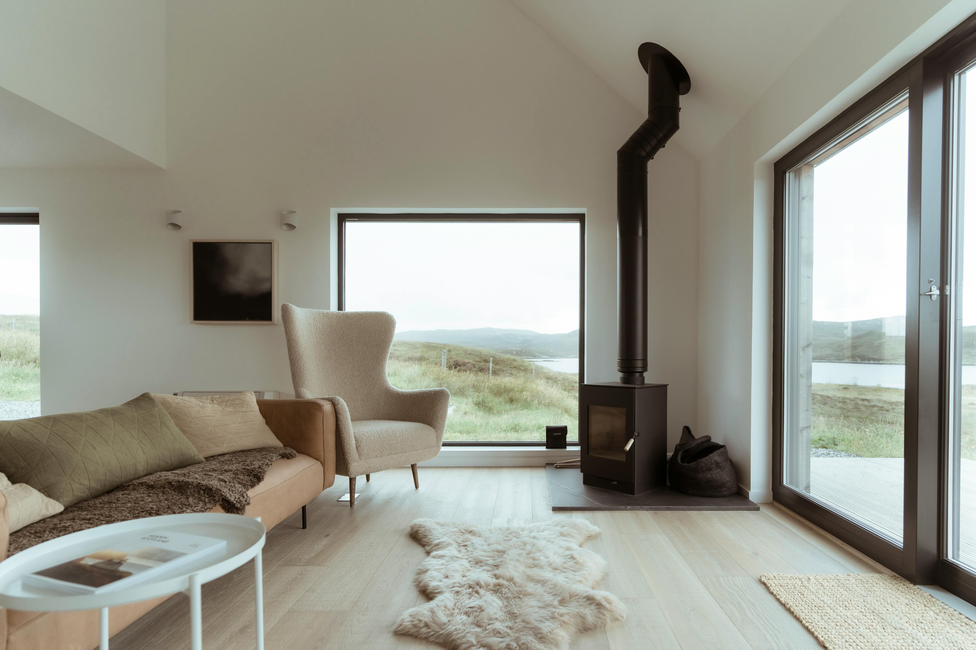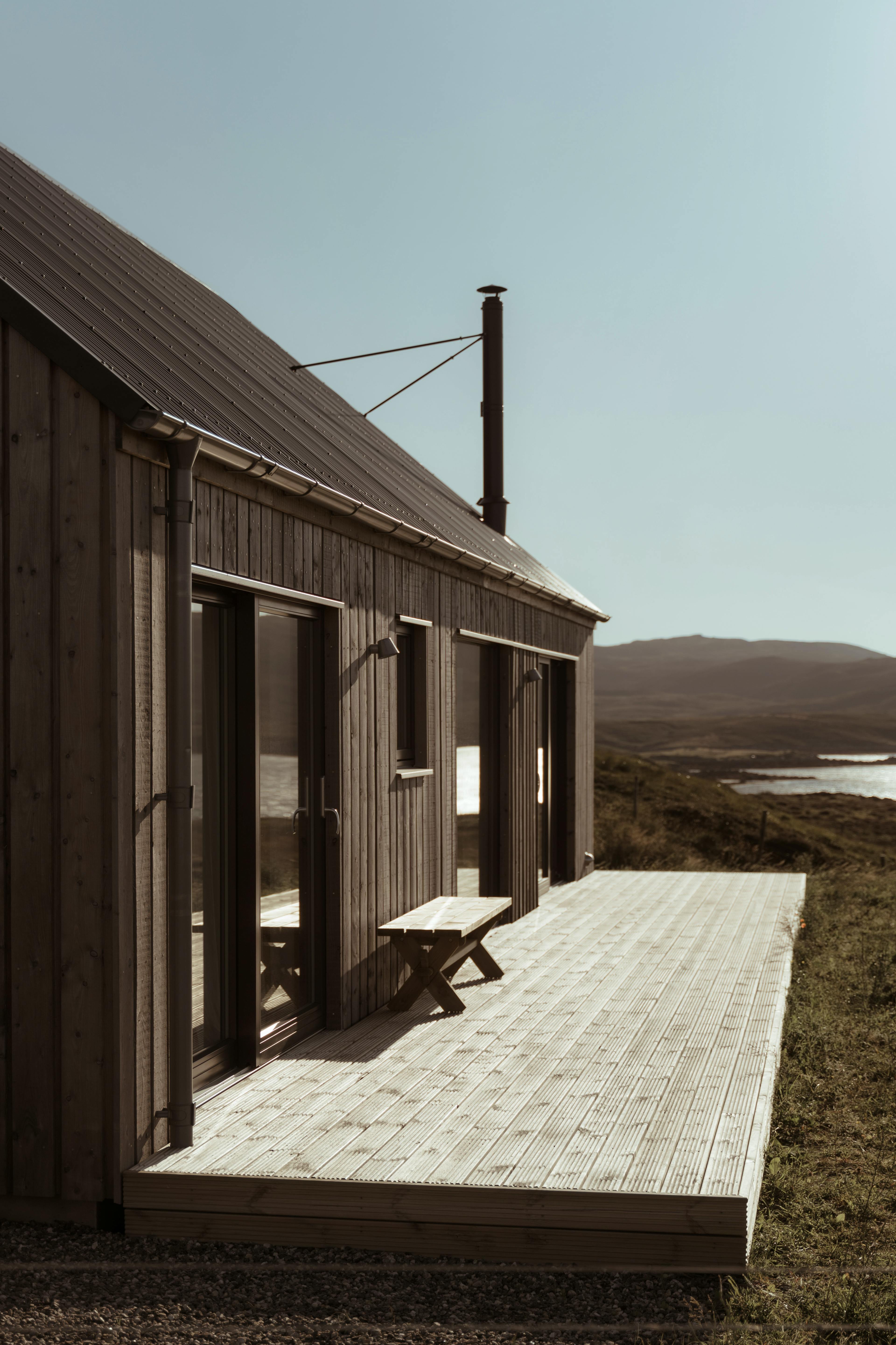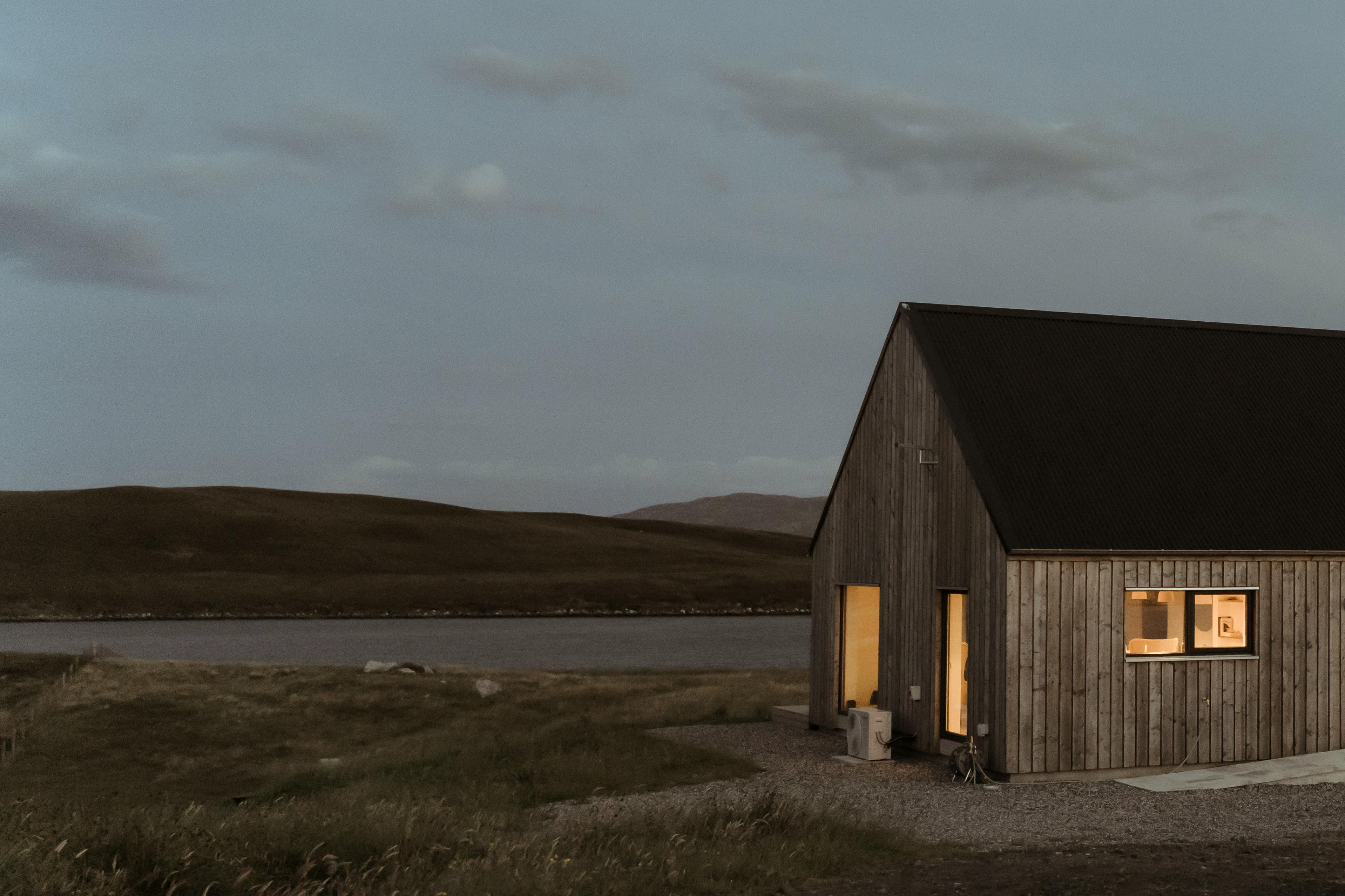 Tranquil longhouse in an isolated spot on the wild Hebridean island of North Uist with a log burner, stunning panoramic views and miles of sea and sky.