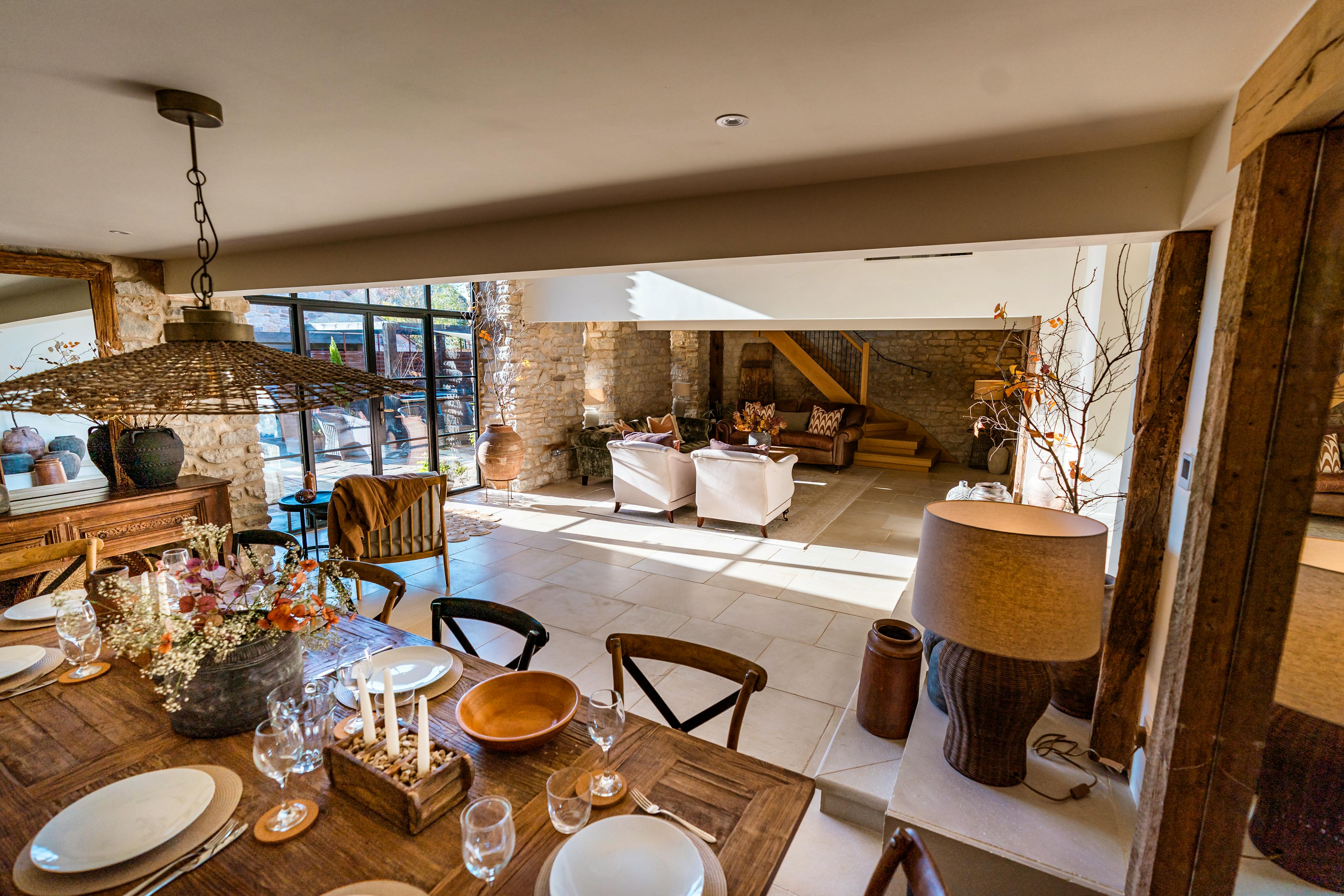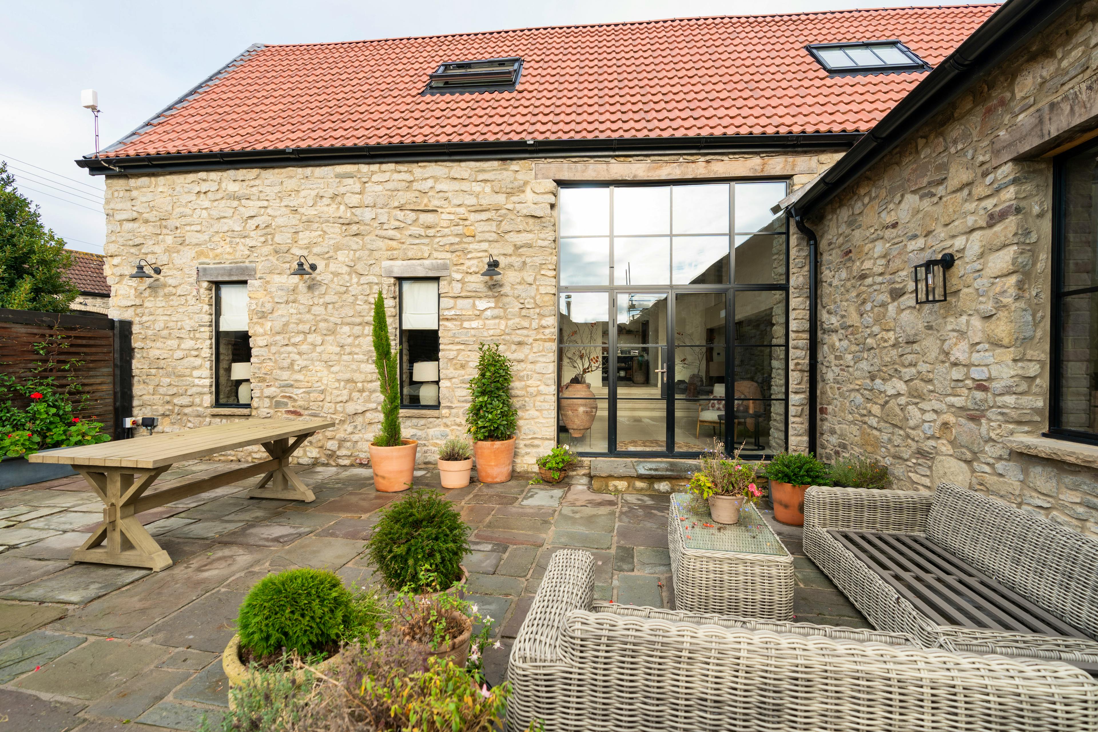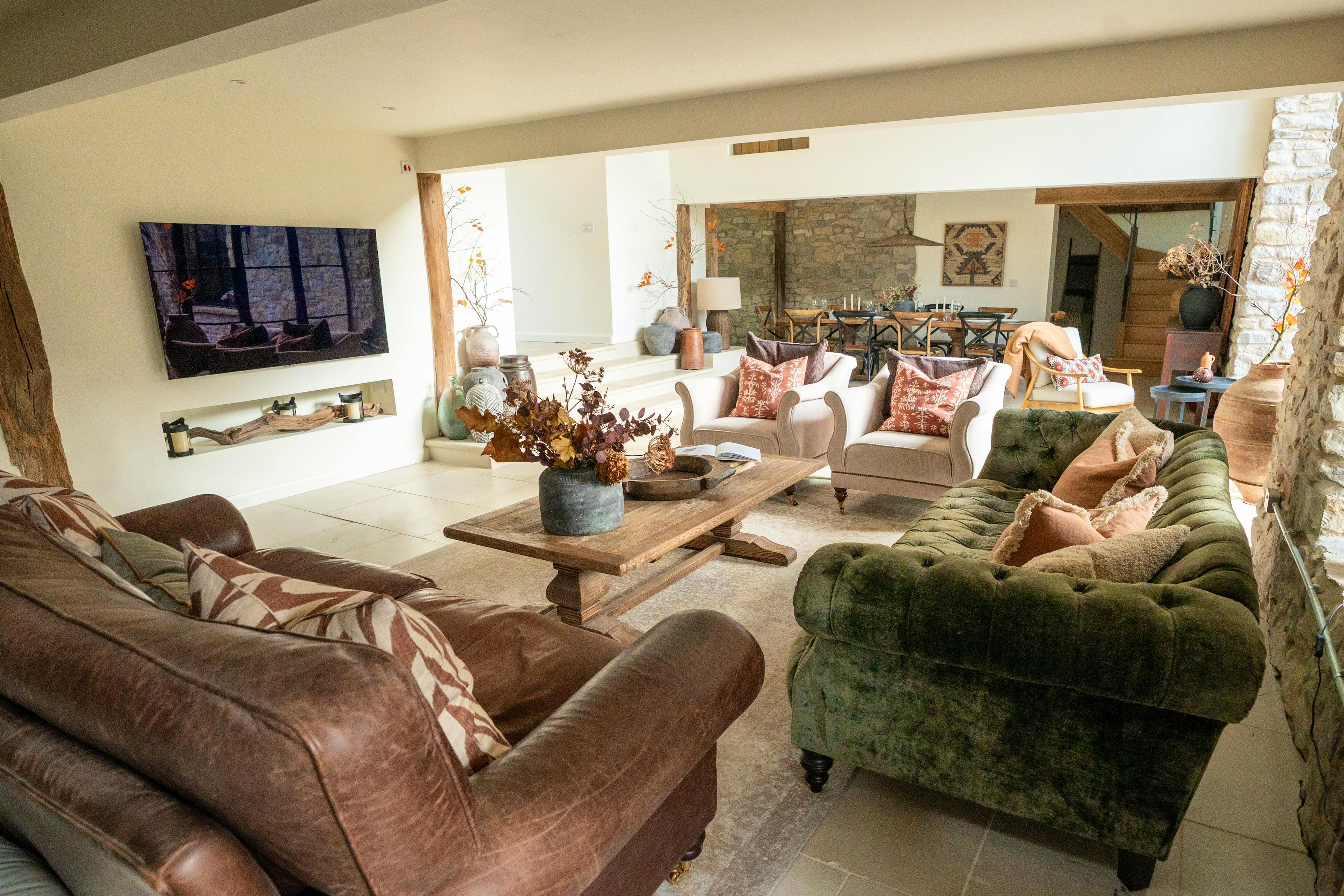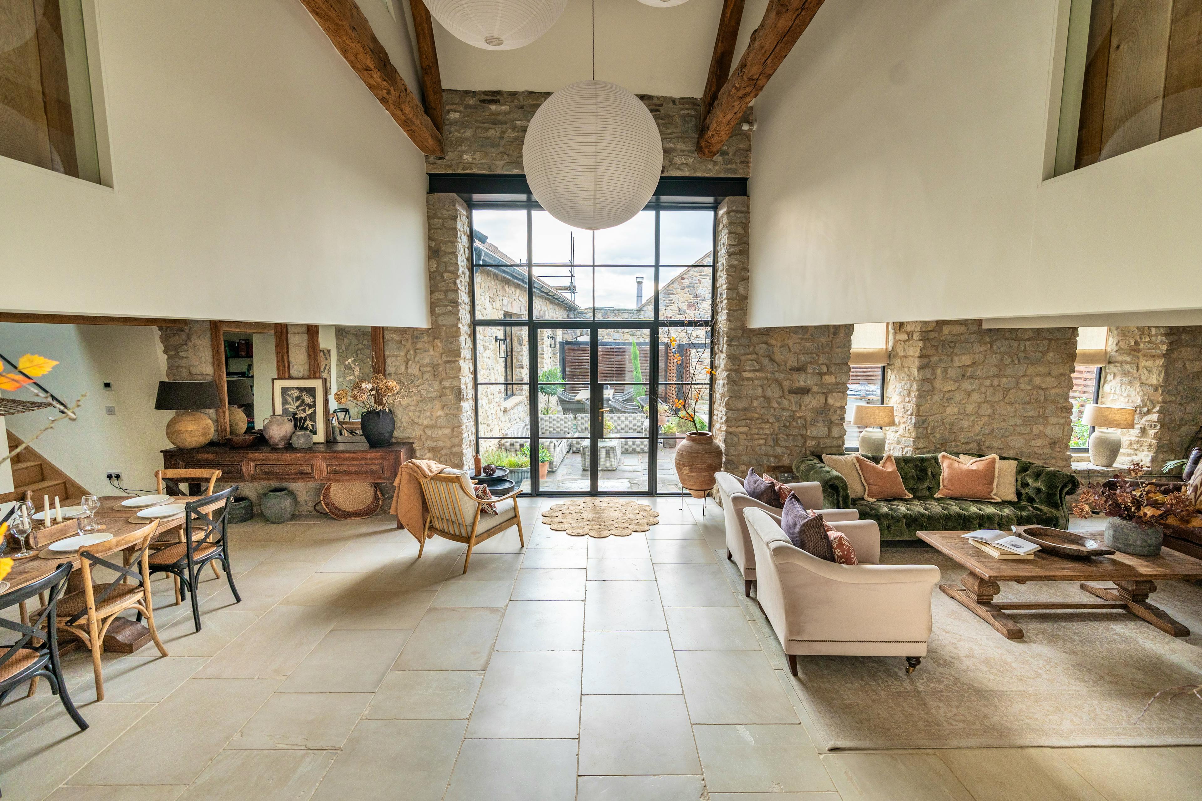 Stylish barn conversion with a heated indoor pool and a hot tub located between Bath and Bristol, perfect for a peaceful family getaway.