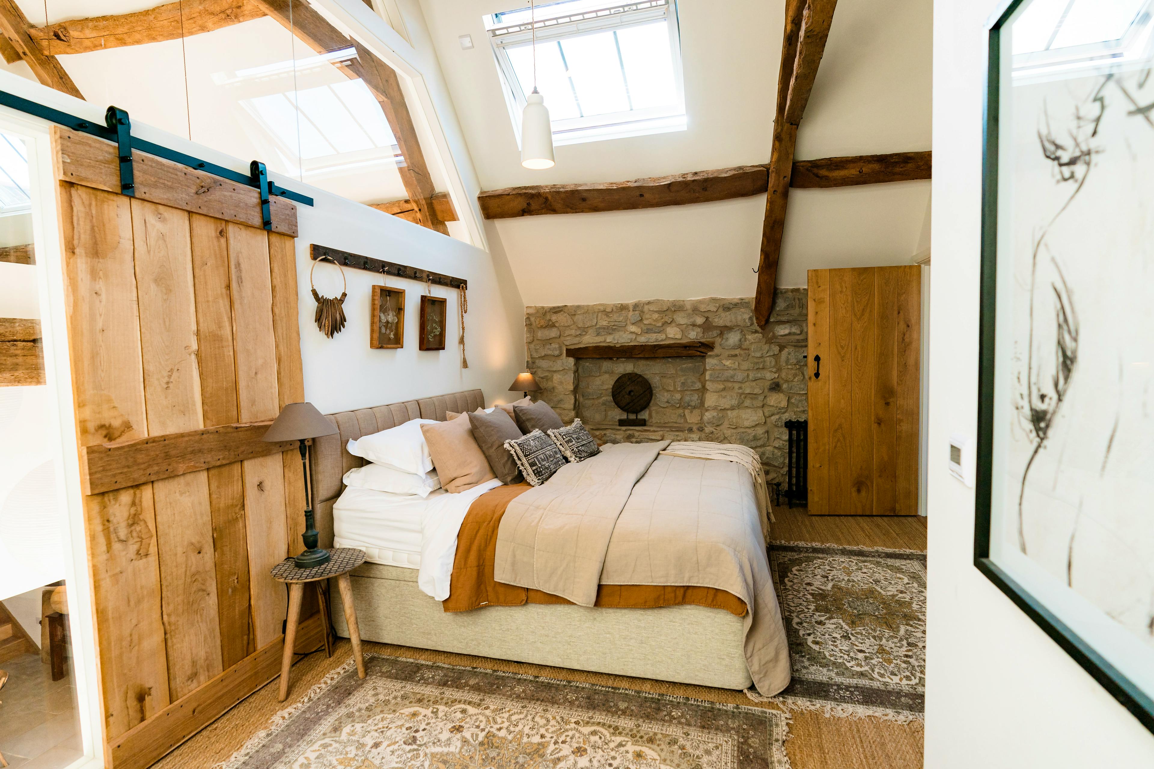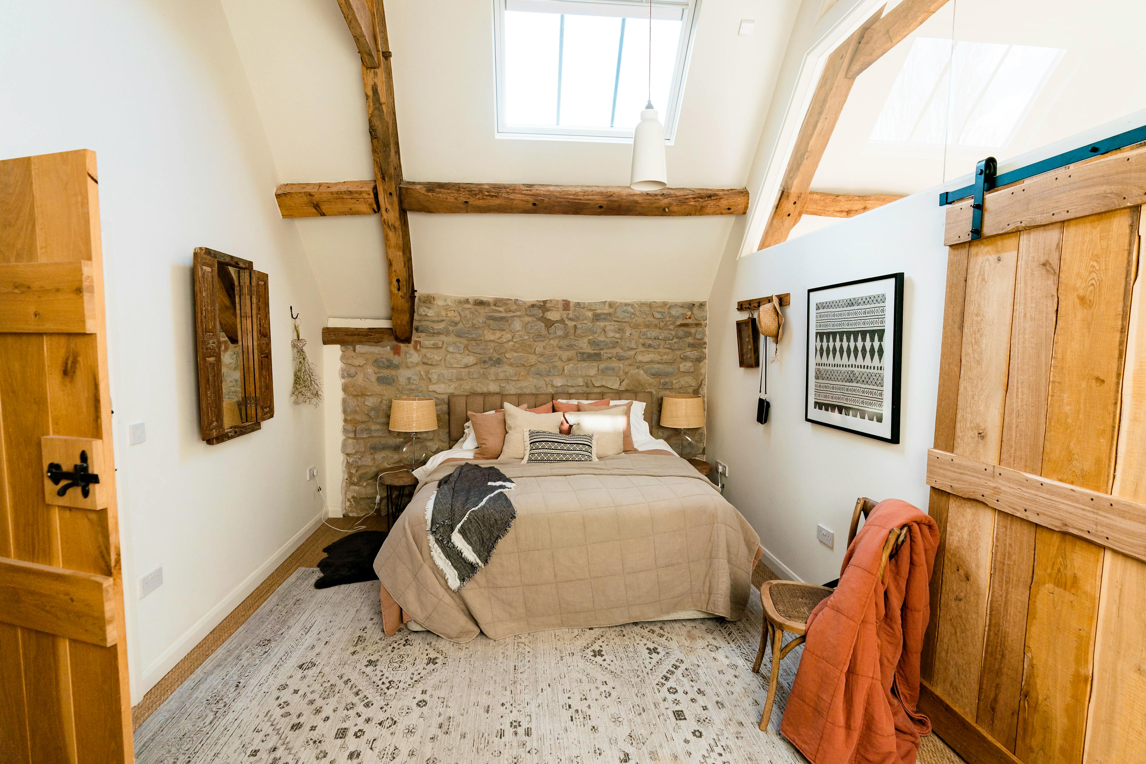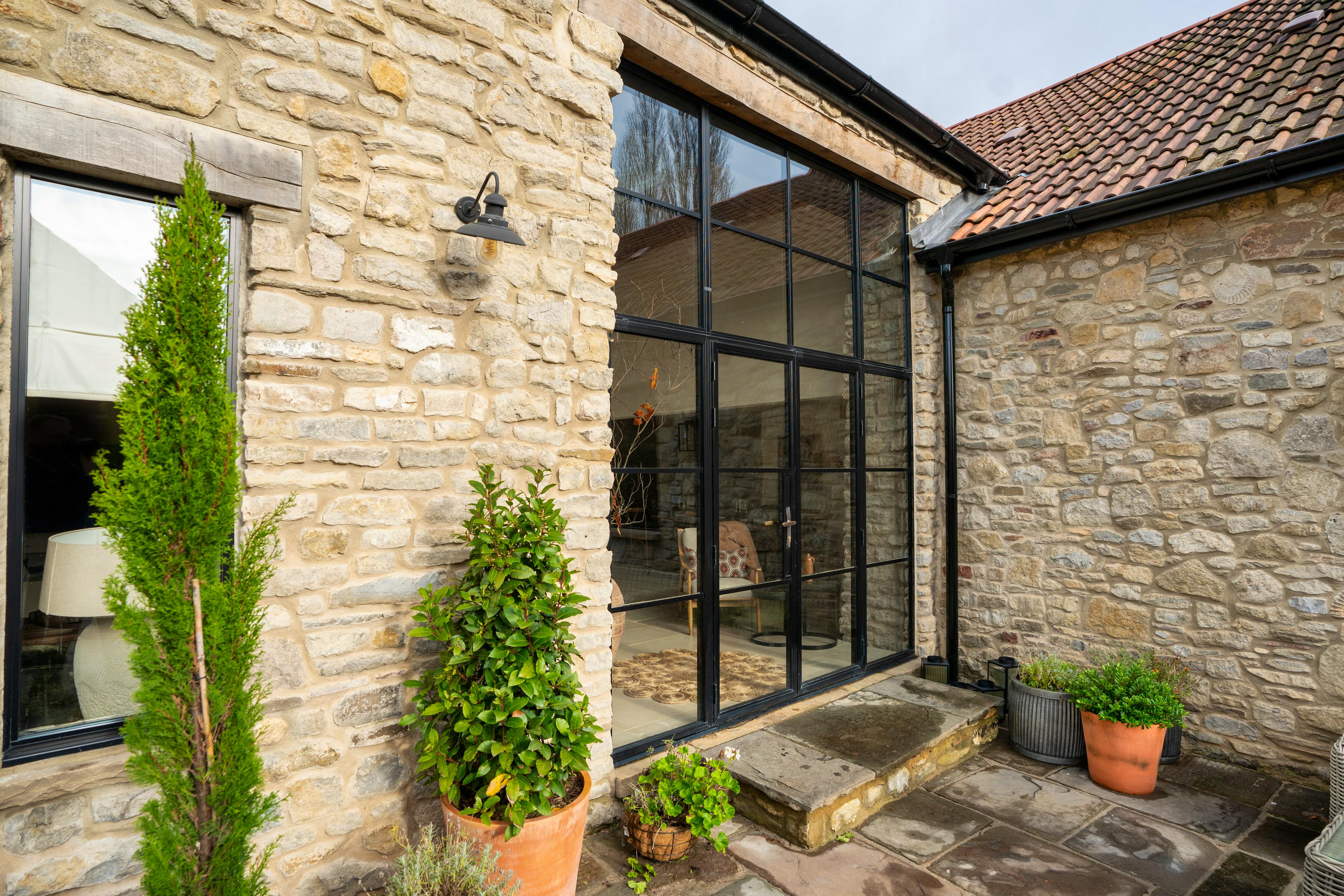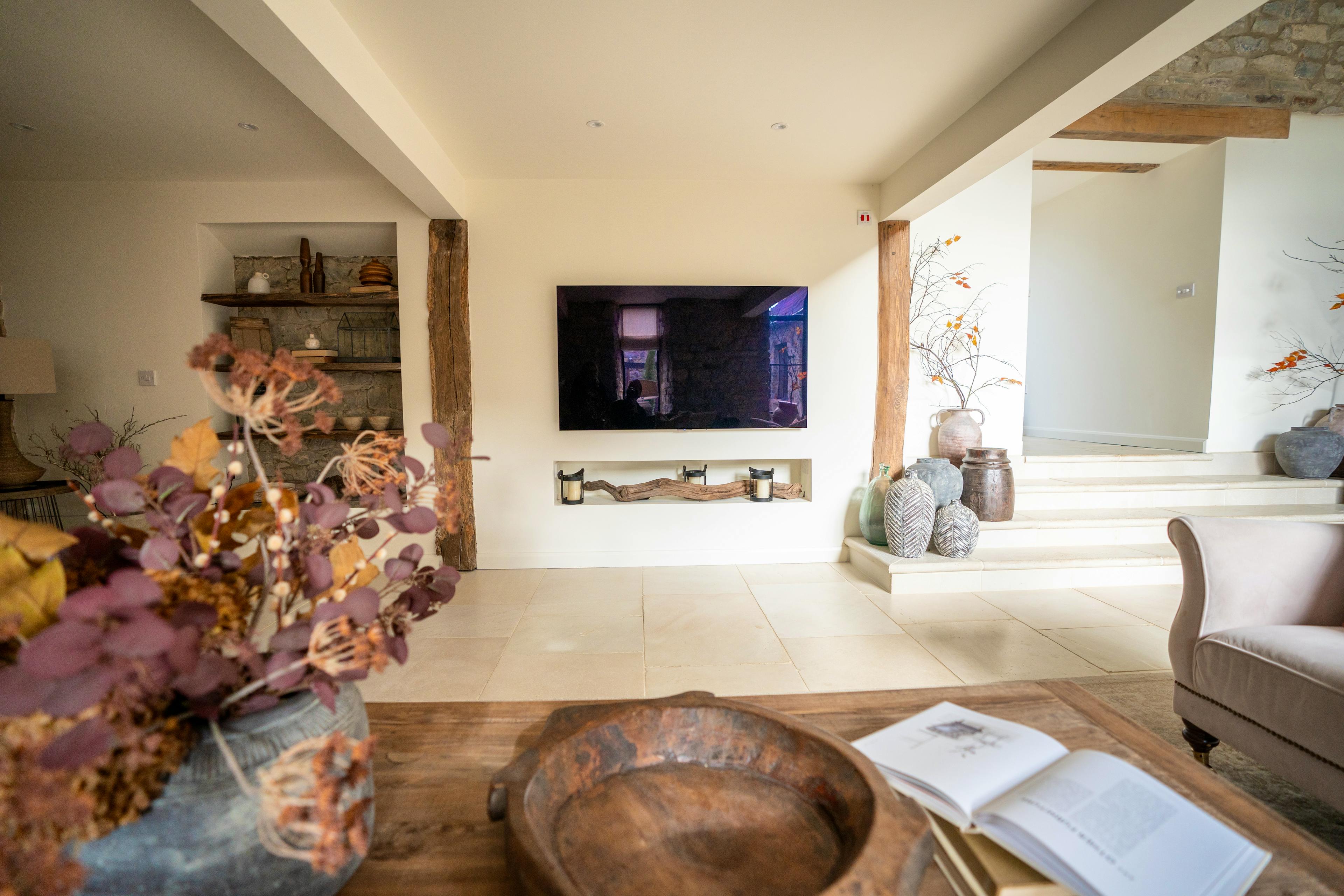 Stylish barn conversion with a heated indoor pool and a hot tub located between Bath and Bristol, perfect for a peaceful family getaway.