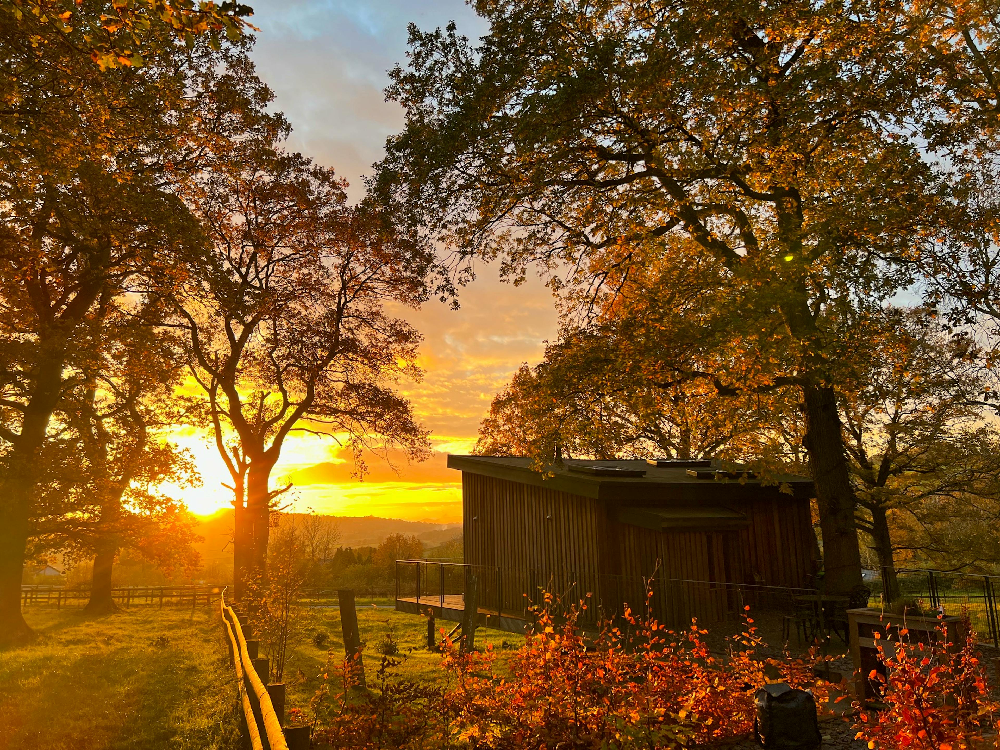 Hidden among rolling hills and ancient woodland, Orcop Treetops is a beautifully crafted escape where contemporary Scandi design meets the restorative power of nature. Hand-built by the owner alongside a local carpenter, these two bespoke cabins feel wonderfully considered and deeply connected to their surroundings. Expansive glass frontages frame far-reaching views across valleys, hills and big skies, while calm, minimalist interiors make it effortless to slow down and switch off. The two cabins, Fifinella Retreat and Gainsborough Retreat, each offer their own distinct setting and outlook. Fifinella is tucked beneath ancient oaks with magical sunset views towards the Bannau Brycheiniog National Park, creating a woodland hideaway that feels cocooned and peaceful. Gainsborough sits within open pastureland, soaking up spectacular sunrises and sweeping views towards the Malvern Hills, with a lighter, more expansive feel. Inside, both cabins are designed for relaxed, easy living. Open plan living, dining and kitchen spaces are flooded with natural light, making mornings feel bright and unhurried and evenings cosy and calm. Each retreat features a king size bed, dressed for deep, comfortable sleep, along with a Japanese-style tatami cinema den. This clever, tucked-away space is perfect for movie nights, quiet reading or accommodating children on futon mattresses, making both cabins ideal for couples or small families. The kitchens are fully equipped for everything from slow breakfasts to laid-back suppers, while the bathrooms offer a touch of luxury with walk-in rainfall showers and modern fittings. Underfloor heating and wood burners keep things toasty year-round, adding to that lovely sense of comfort and retreat. Outside is where Orcop Treetops really comes into its own. Each cabin has its own private wood-fired hot tub, ready and waiting on arrival, inviting long, steamy soaks under the stars. Covered outdoor cooking and dining areas make alfresco meals easy in any weather, whether you’re firing up the BBQ, sliding pizzas into the Ooni oven or lingering over a glass of wine as the light fades. Hammocks, firepits and quiet corners complete the picture, offering space to unwind and reconnect. When you’re ready to explore, there are walks straight from the doorstep and an easy stroll to the local pub. Venture a little further to discover the beautiful landscapes of Herefordshire, the drama of the Bannau Brycheiniog National Park or the gentle hills and market towns that make this part of the country so special.