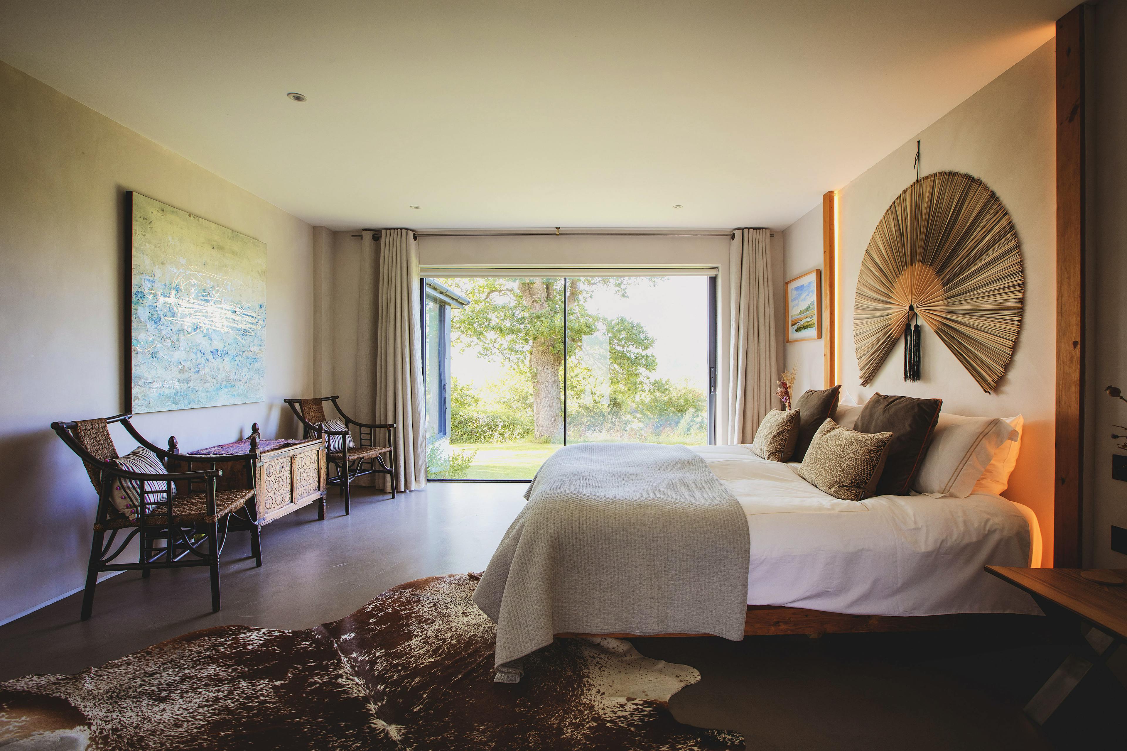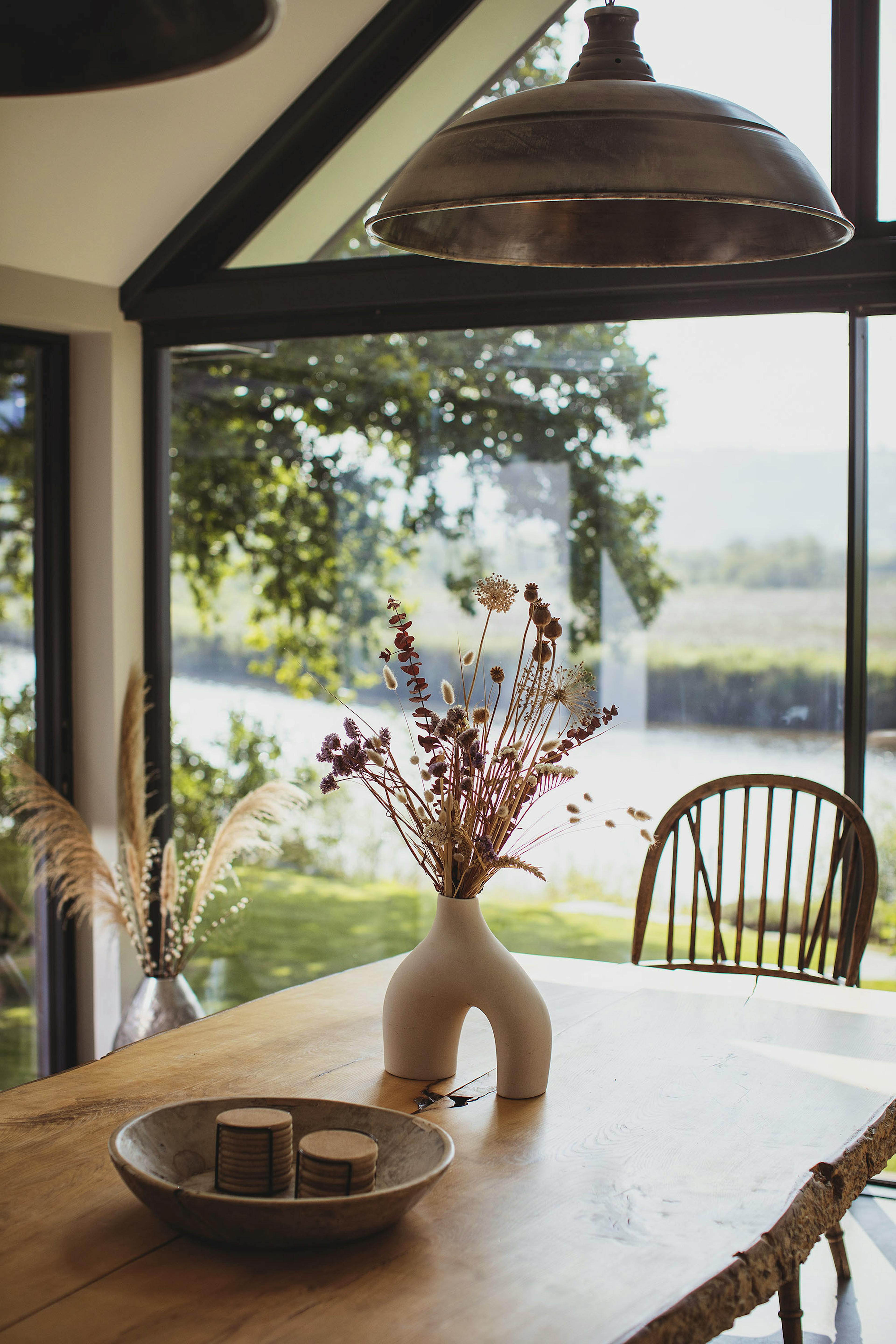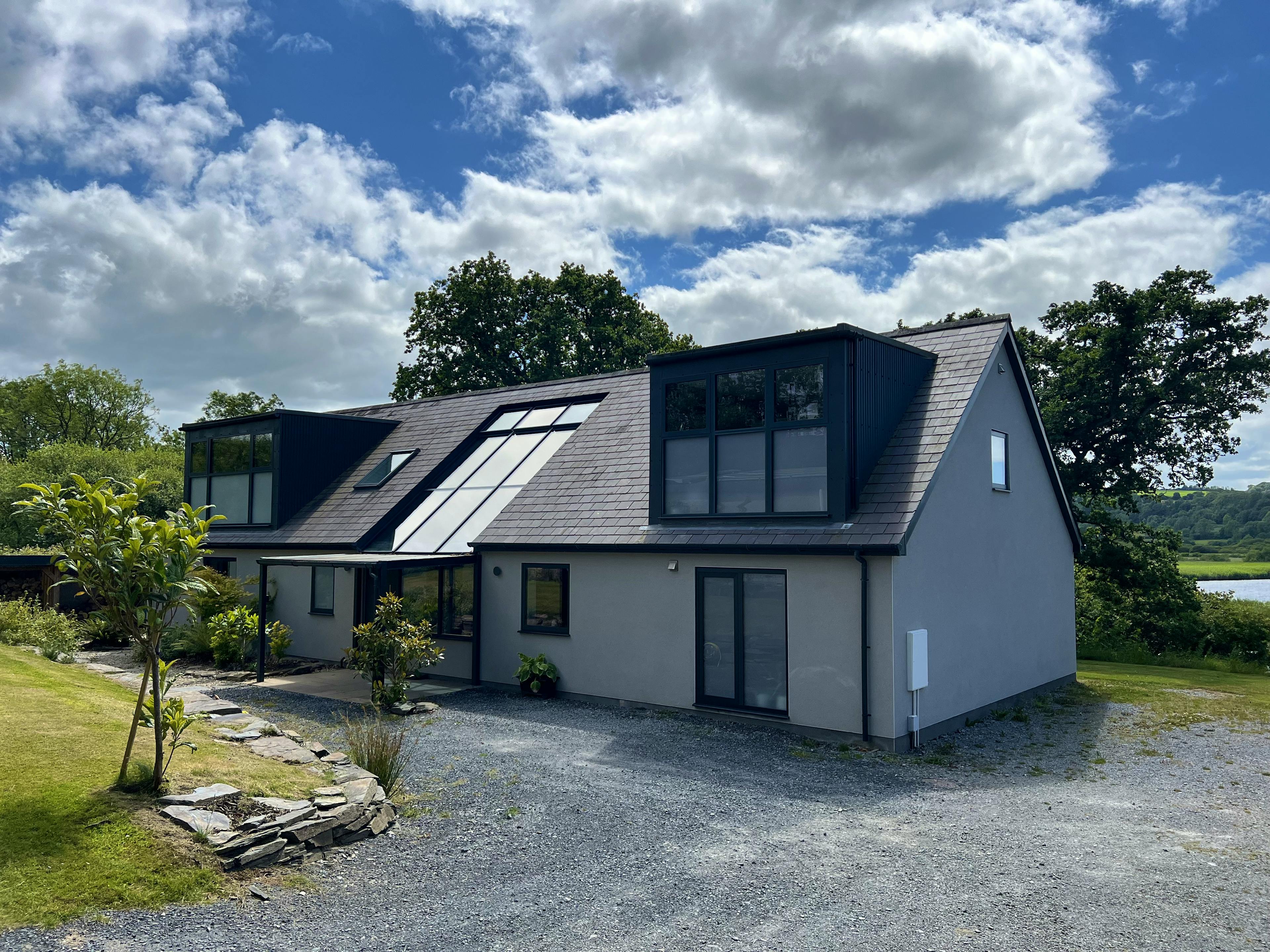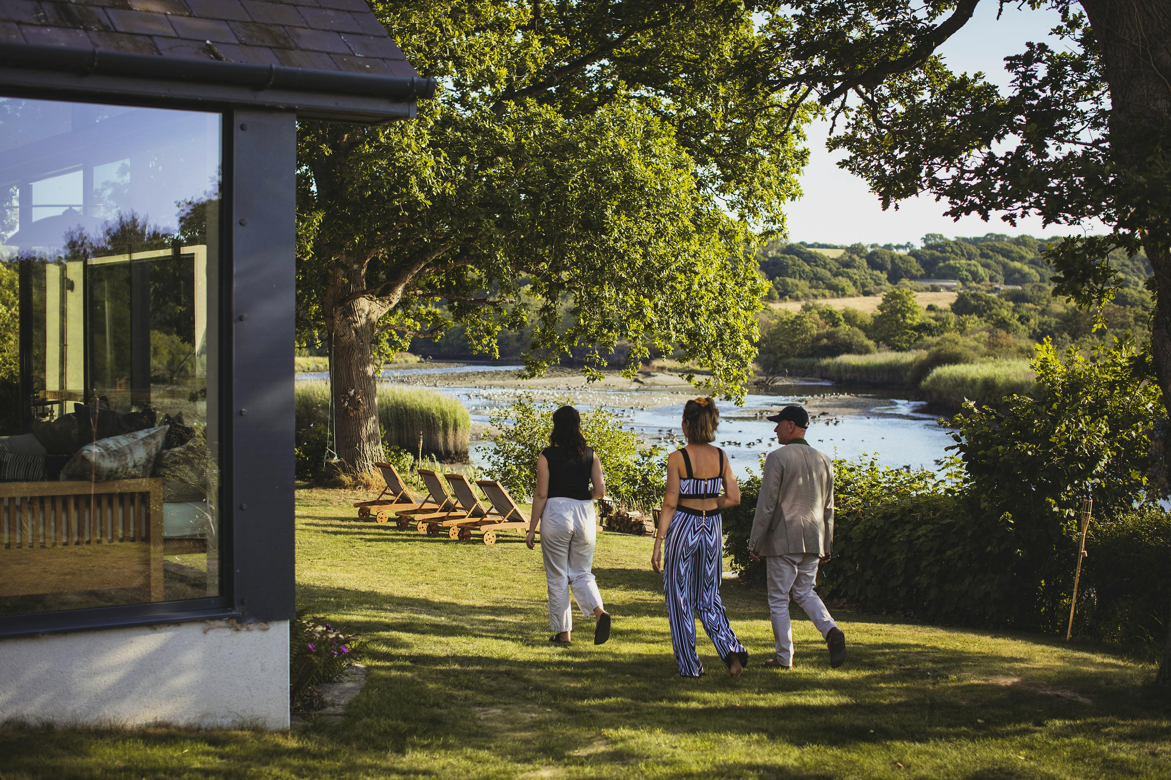 Stunning retreat on the River Teifi offering deluxe furnishings, grand social spaces, a wood-fired sauna and a hot tub overlooking the water.
