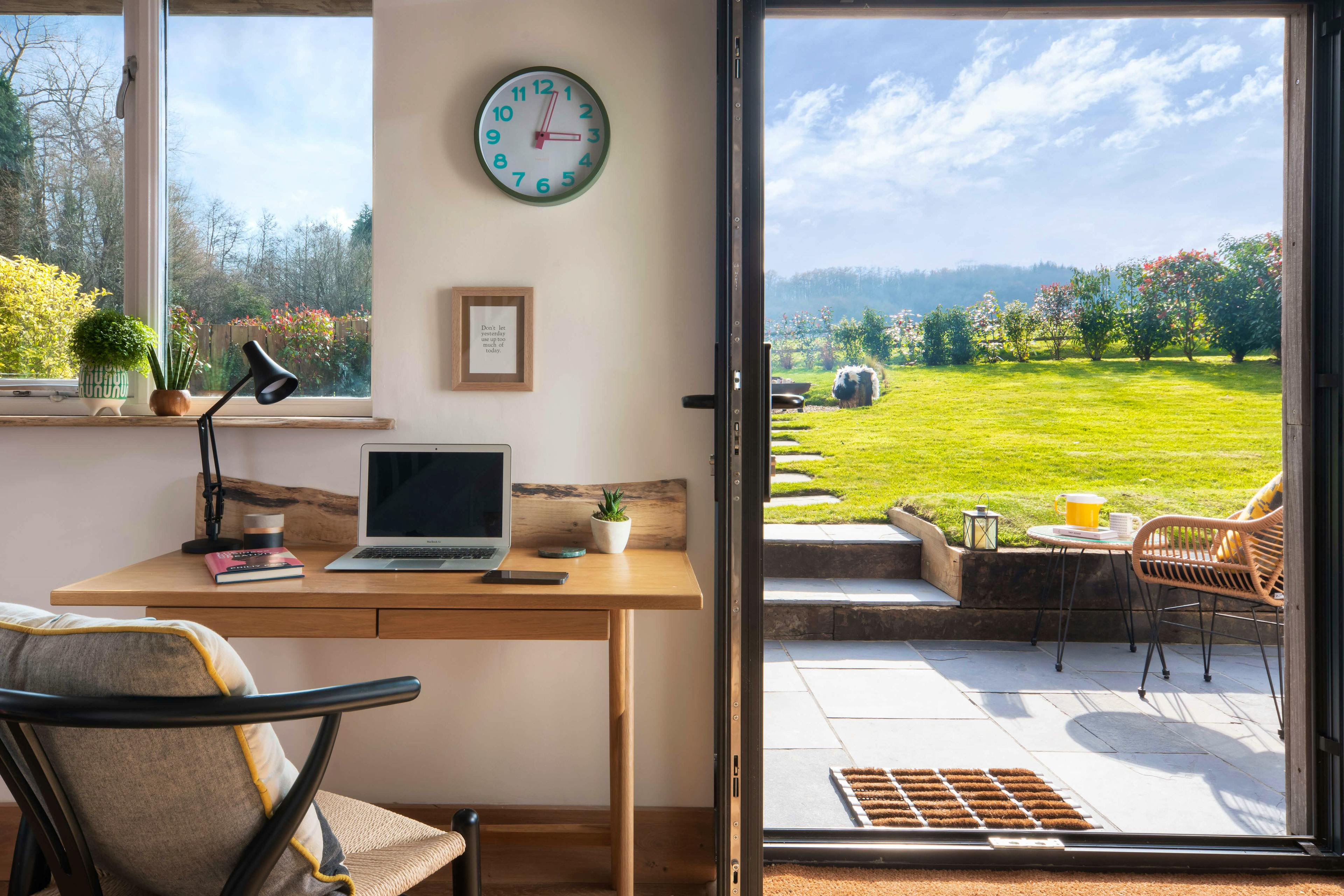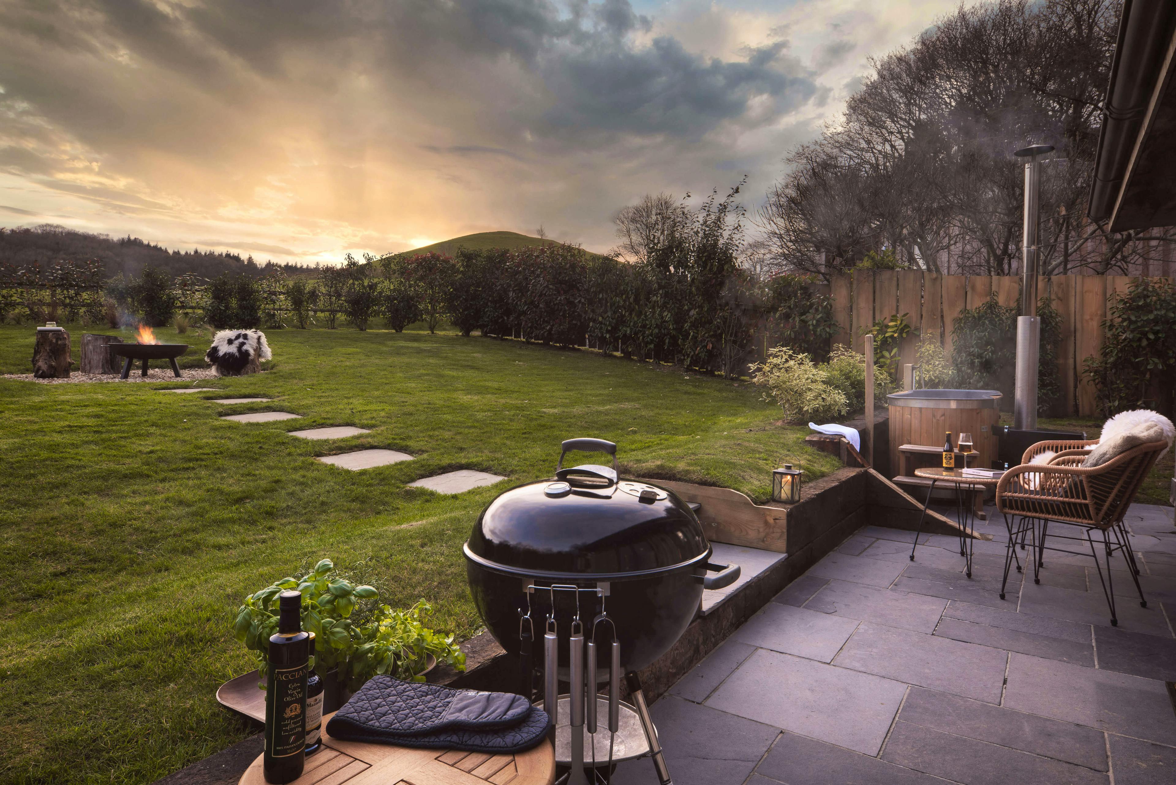 The spacious garden has a fire pit for long nights under the stars.