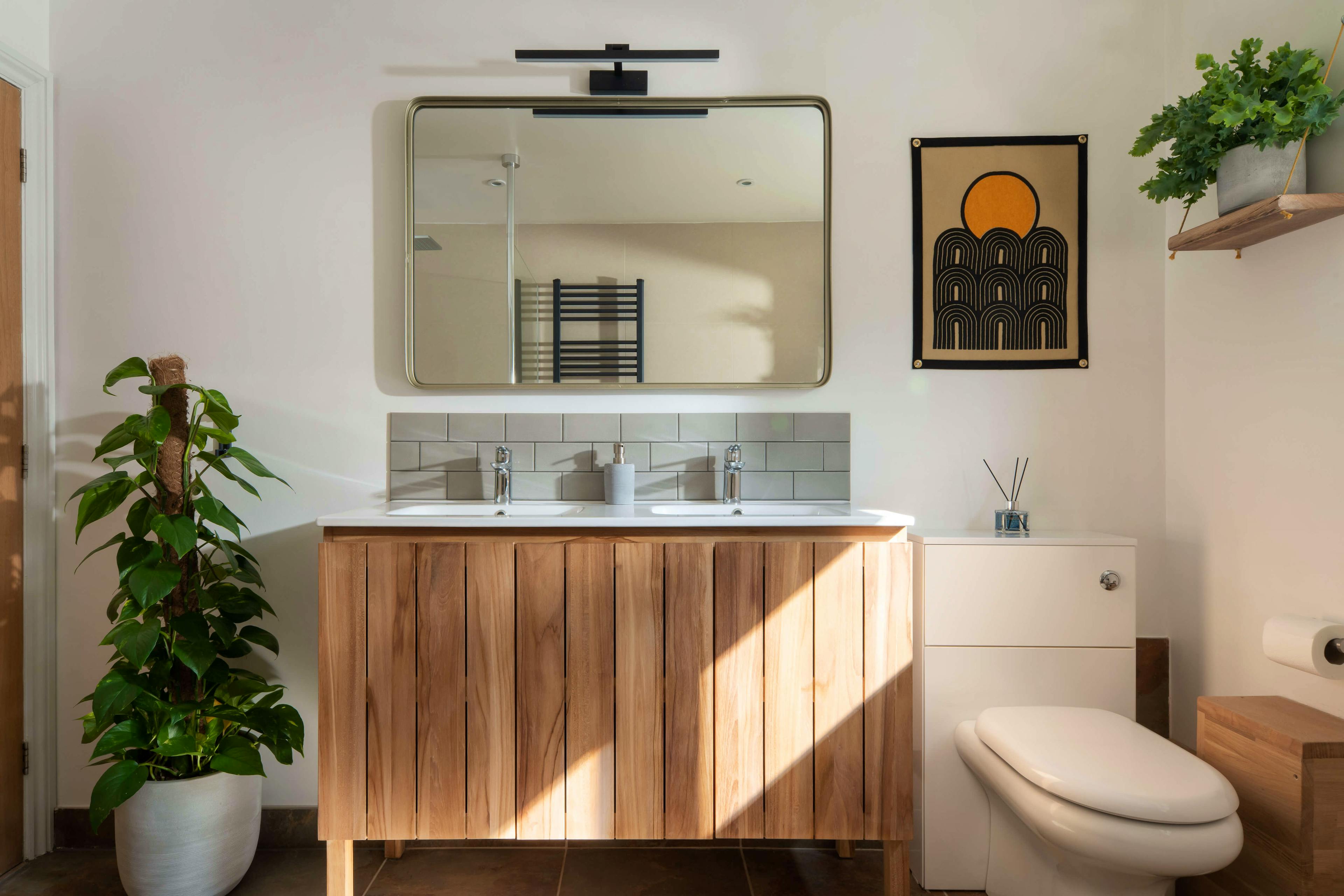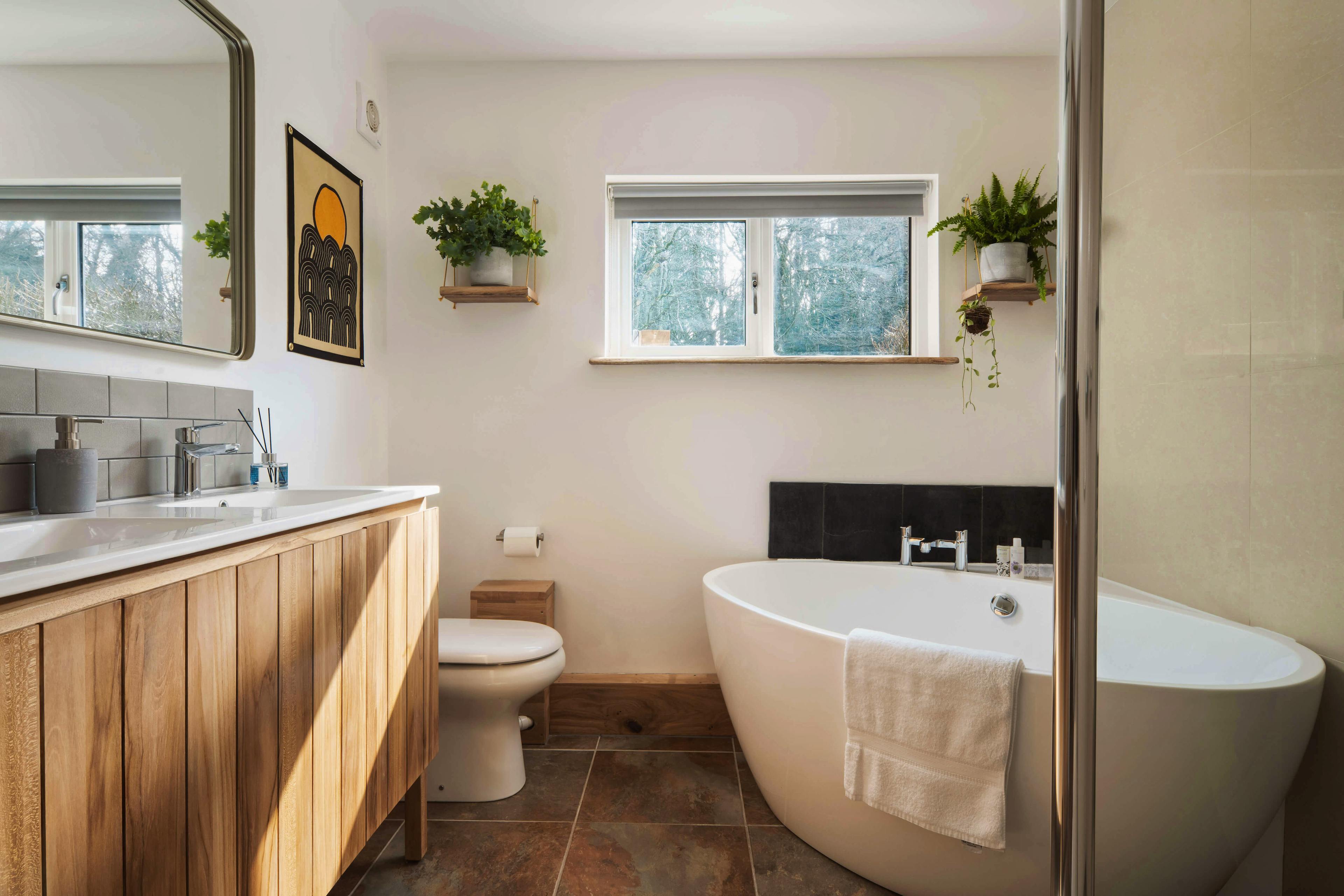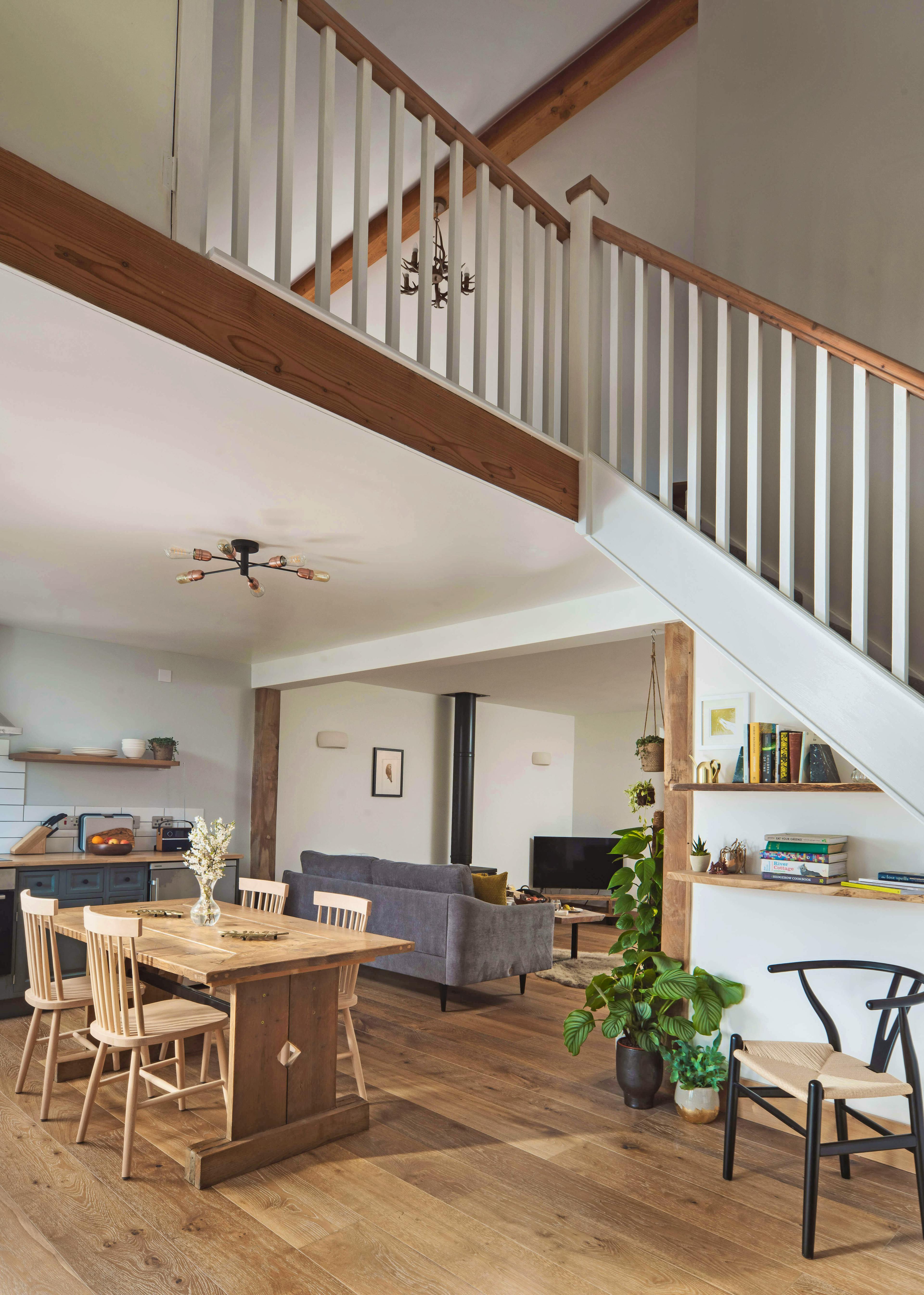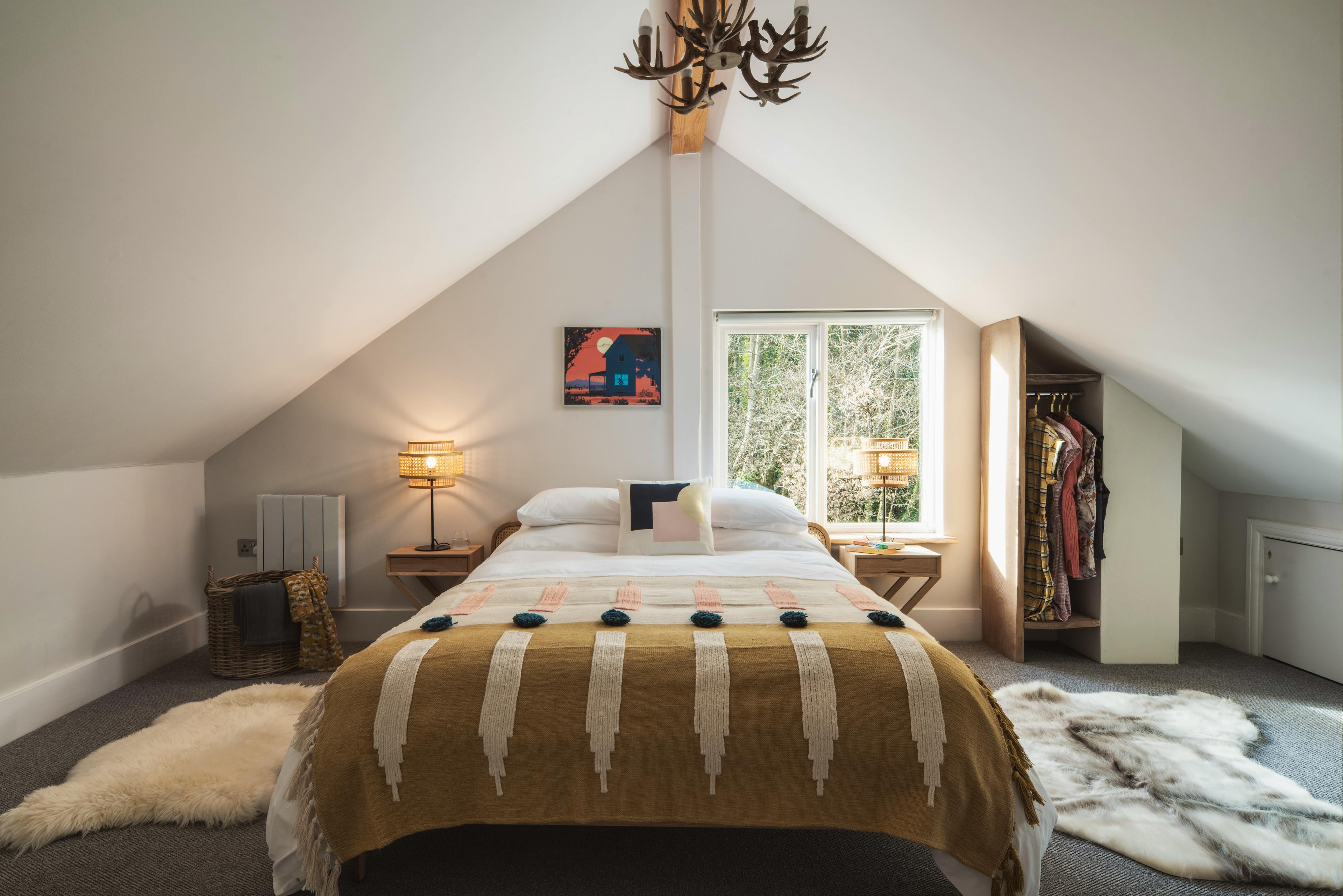 Spend magical evenings relaxing in the hot tub underneath the sparkling skies of this pretty Somerset idyll. Stare out at the beautiful garden and enjoy uninterrupted views of the fields beyond while the birds serenade you with their night song. For those looking to relax, unwind and reconnect with the natural world, then this is the perfect spot. Owl Cabin is a beautifully styled property sitting amongst woodland on an organic farm. The exterior is very much contemporary cabin style, with timber cladding, aluminium frames and an abundance of glass to maximise the experience of living amongst nature. The interior is no less impressive, a vaulted ceiling creates a spacious feel and allows natural light to pour in. The kitchen is country-style with pretty blue cupboards and all the modern conveniences guests might need to put together meals. You will love enjoying lengthy breakfasts at the large wooden kitchen table which sits in the centre of this spacious area, enjoying the tranquility and wonderful views through patio doors which lead out to the garden Should inspiration hit, there is a handy workspace where guests can enjoy the natural world outside while writing a journal or a poem or maybe simply checking the emails. A stylish sitting room awaits guests after long days exploring the area, leave the boots at the door, grab a glass of wine from the kitchen, put up your feet and stretch out in front of the cosy wood burning fire or binge watch a box set on the flat screen television. Come bedtime and a lovely exposed staircase curves around the kitchen and takes guests onto a large mezzanine level. There you find a kingsize bed dressed with white linens and a woollen blanket, whilst sheepskin rugs which cover the floor to keep feet cosy. A modern take on the traditional antler-style chandelier is a lovely quirky touch which adds character to this beautiful cabin. There is a handy toilet en-suite and larger family bathroom can be found on the ground floor, with a large rainfall shower and freestanding bath tub. Visitors may be excused for never leaving the comfort of the cabin but those wishing to explore will find a lovely gastro-pub, The Lord Poulett Arms, just a 15 minute stroll from the cabin. Or pack a picnic and head to the Jurassic Coast for some fossil hunting and sea swimming. You're also close to the East Devon Area of Outstanding Natural Beauty and the Blackdown Hills Area of Outstanding Natural Beauty, so be sure to bring your walking boots!