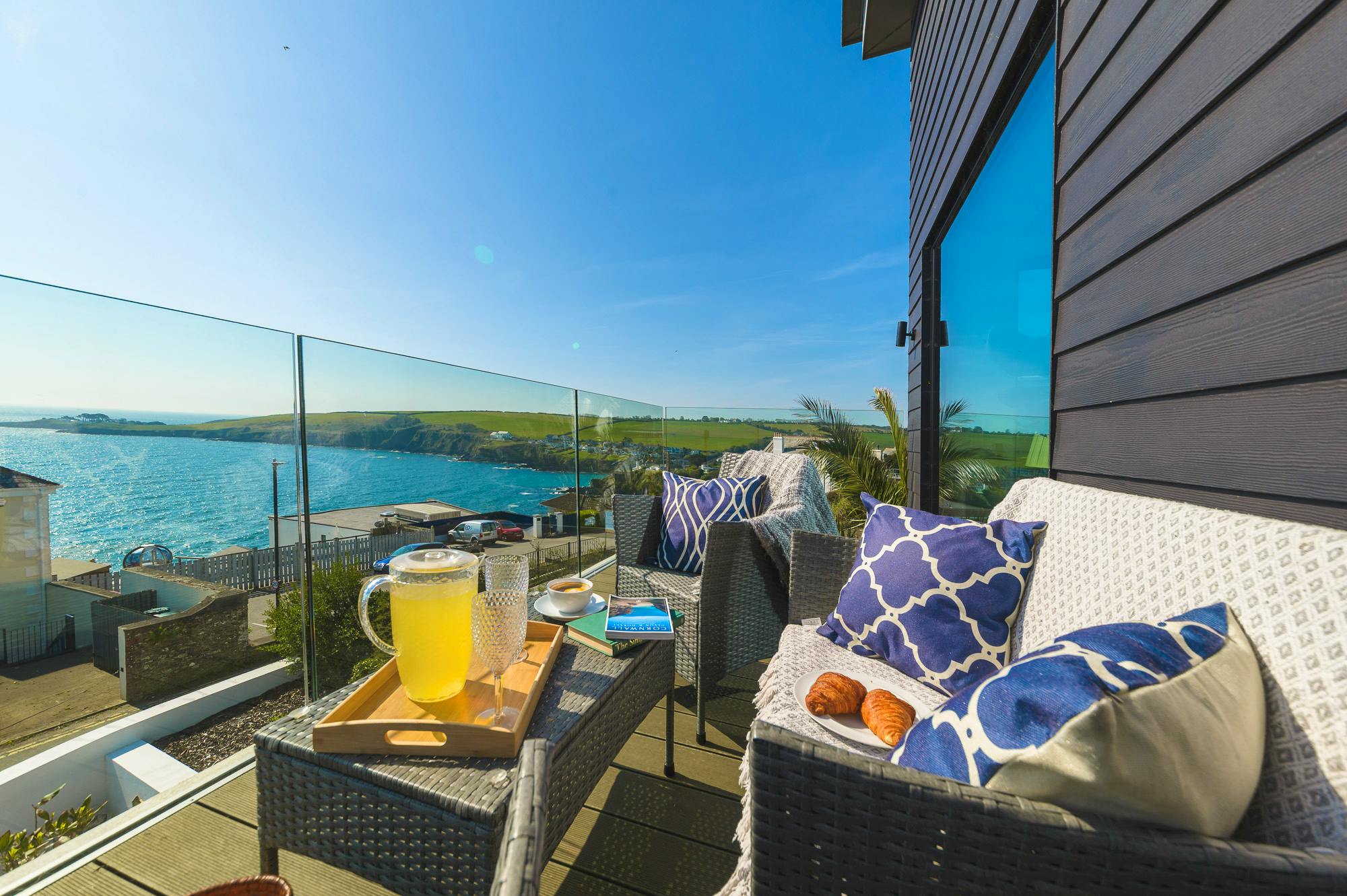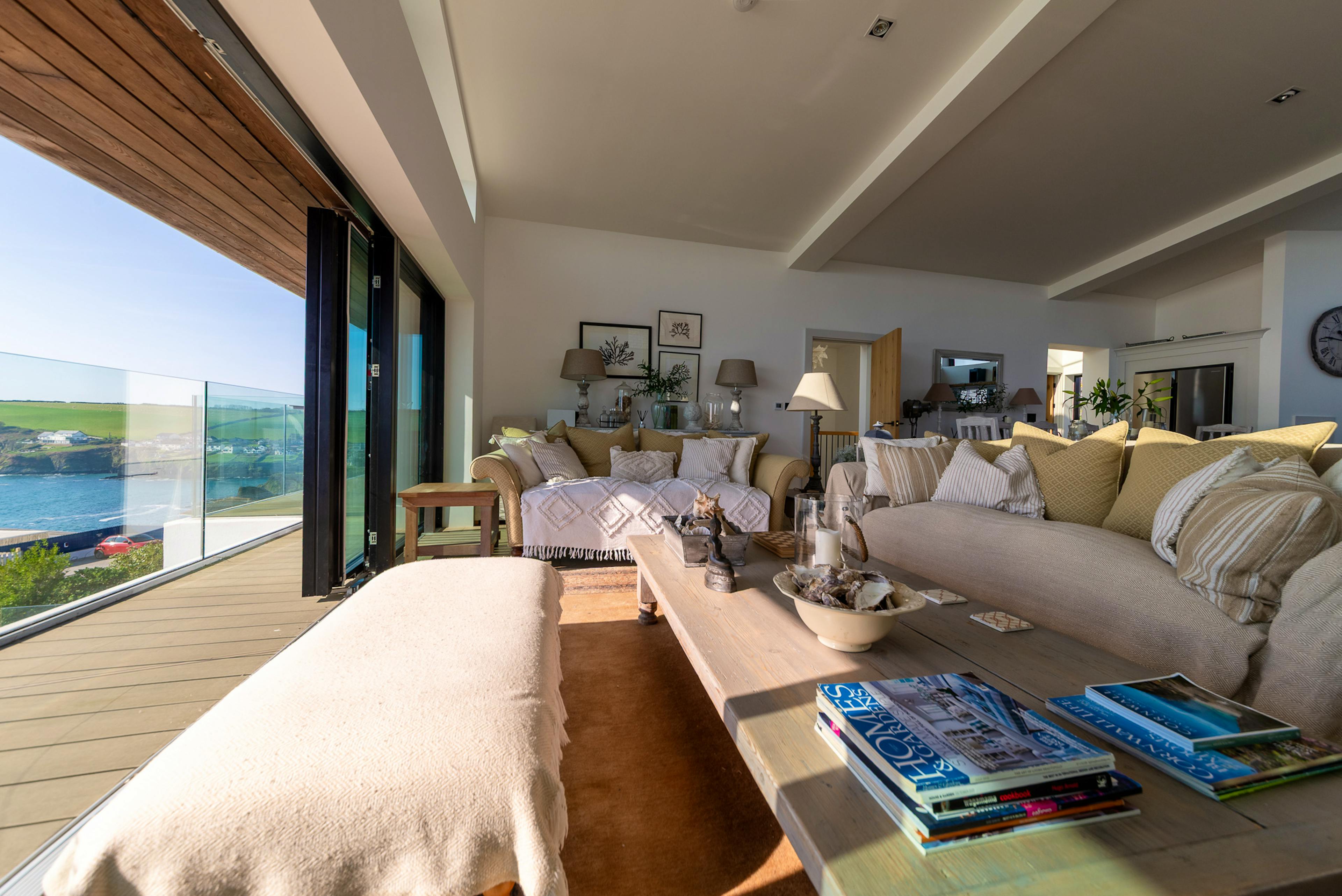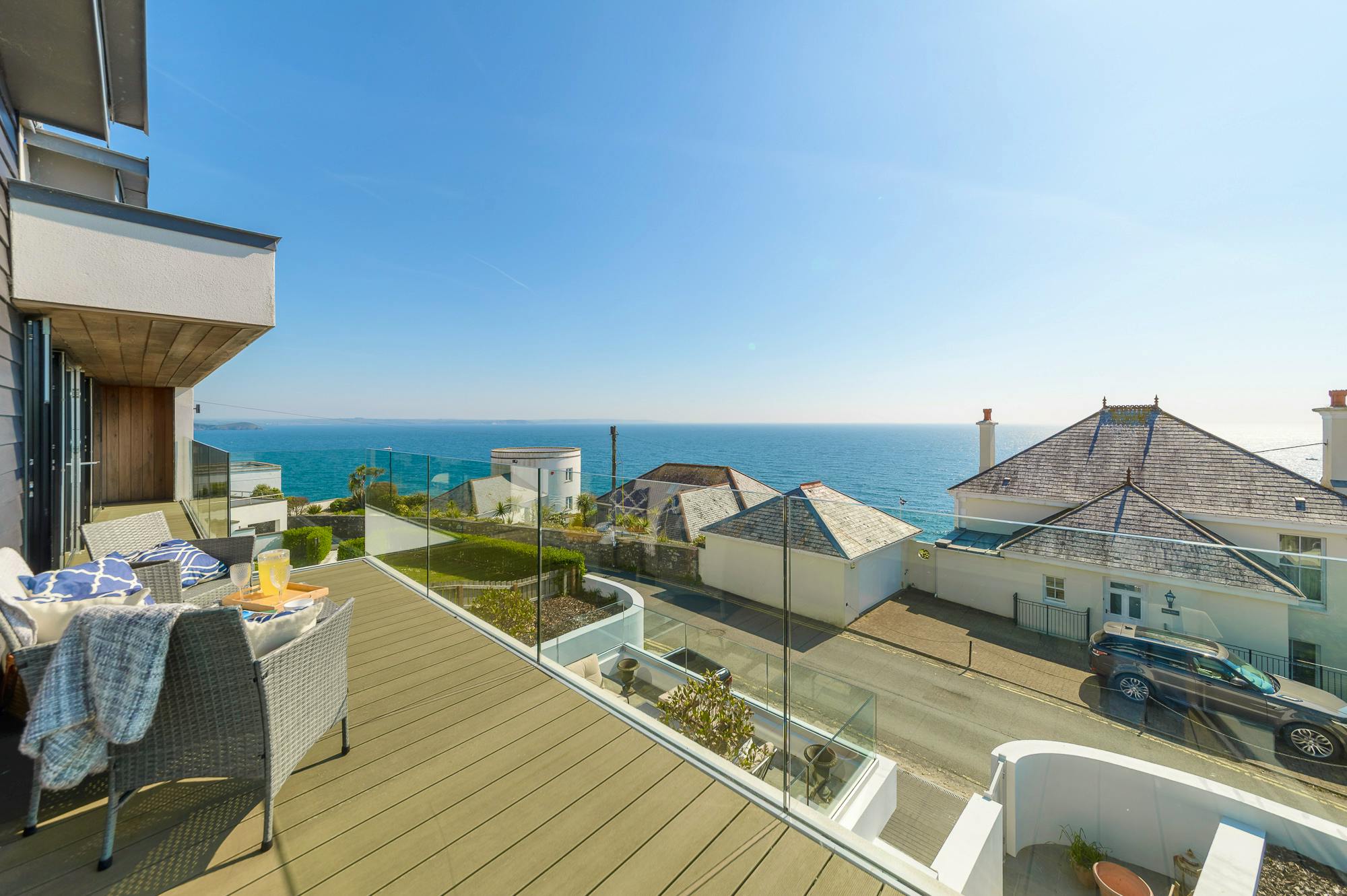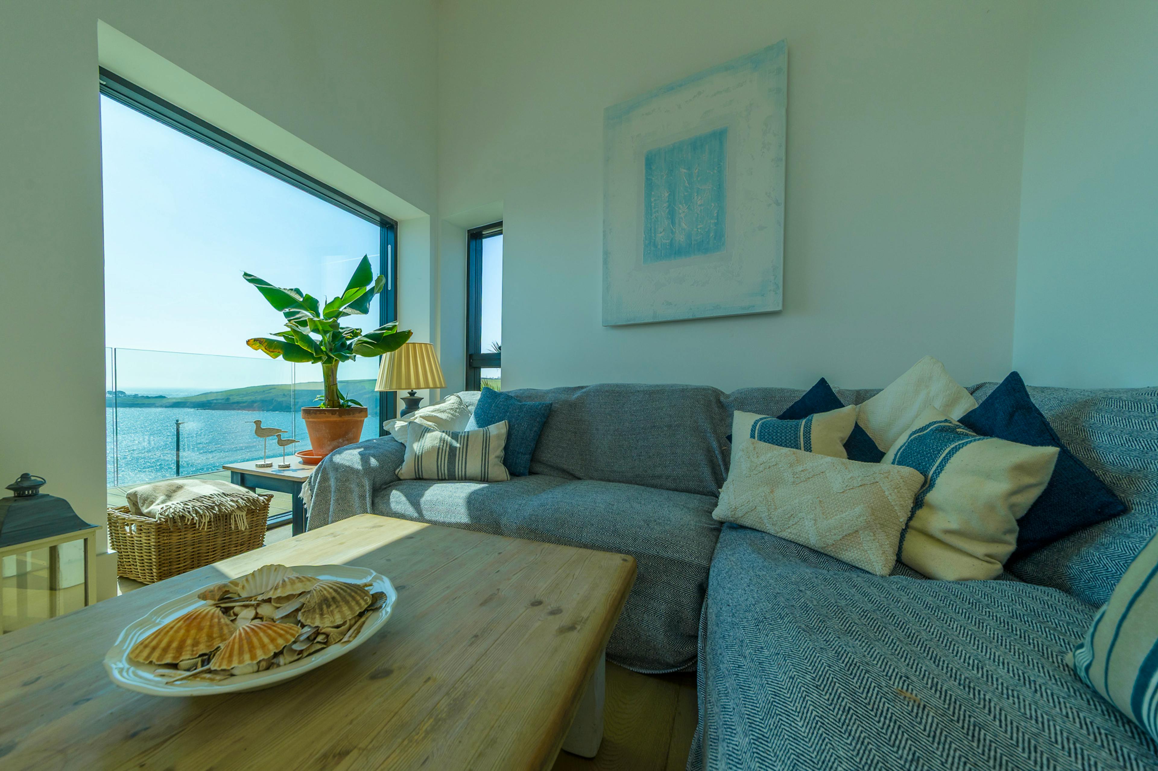 Contemporary, light-filled holiday home with stunning sea views over St Austell Bay on the south coast of Cornwall.