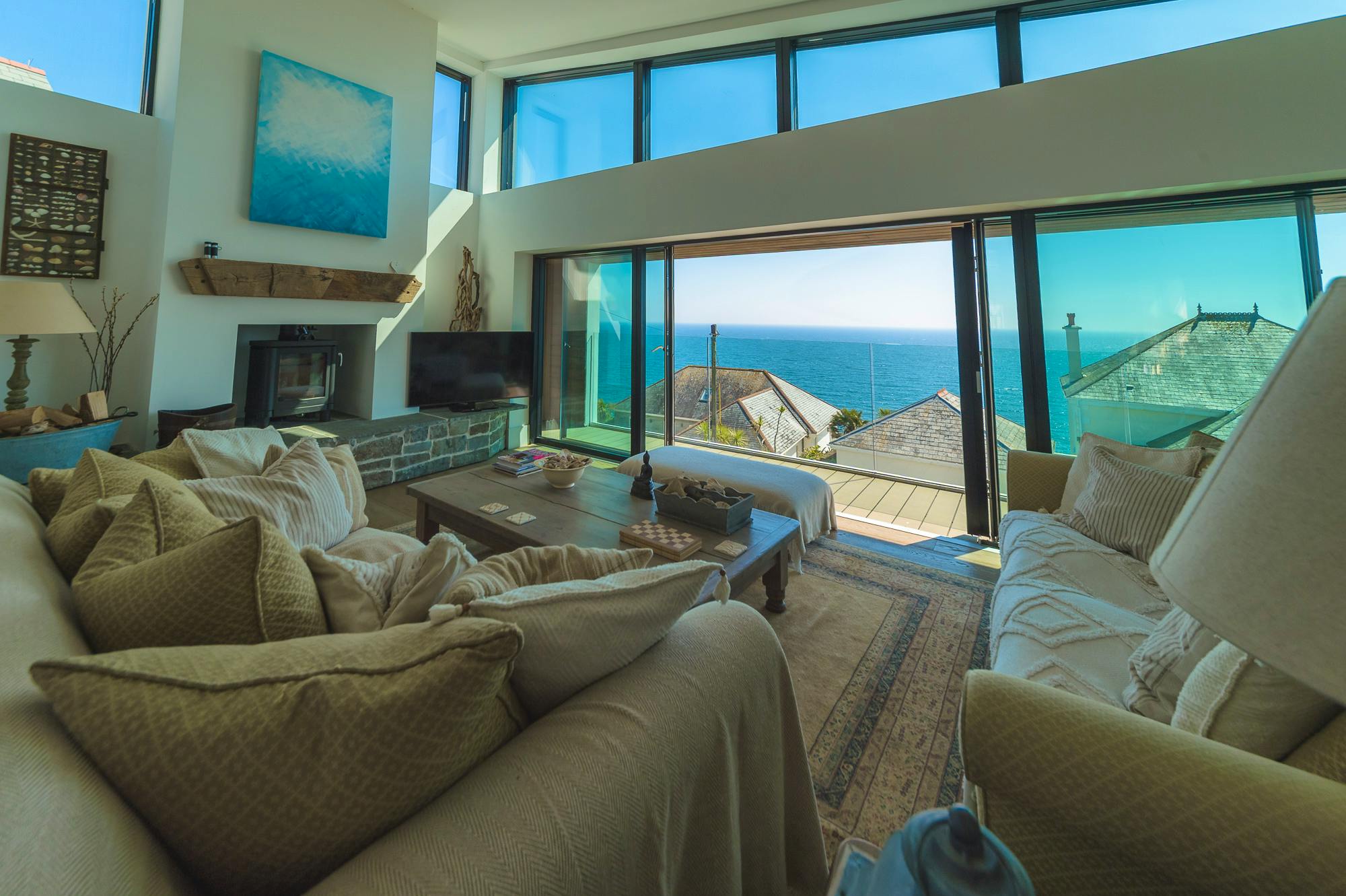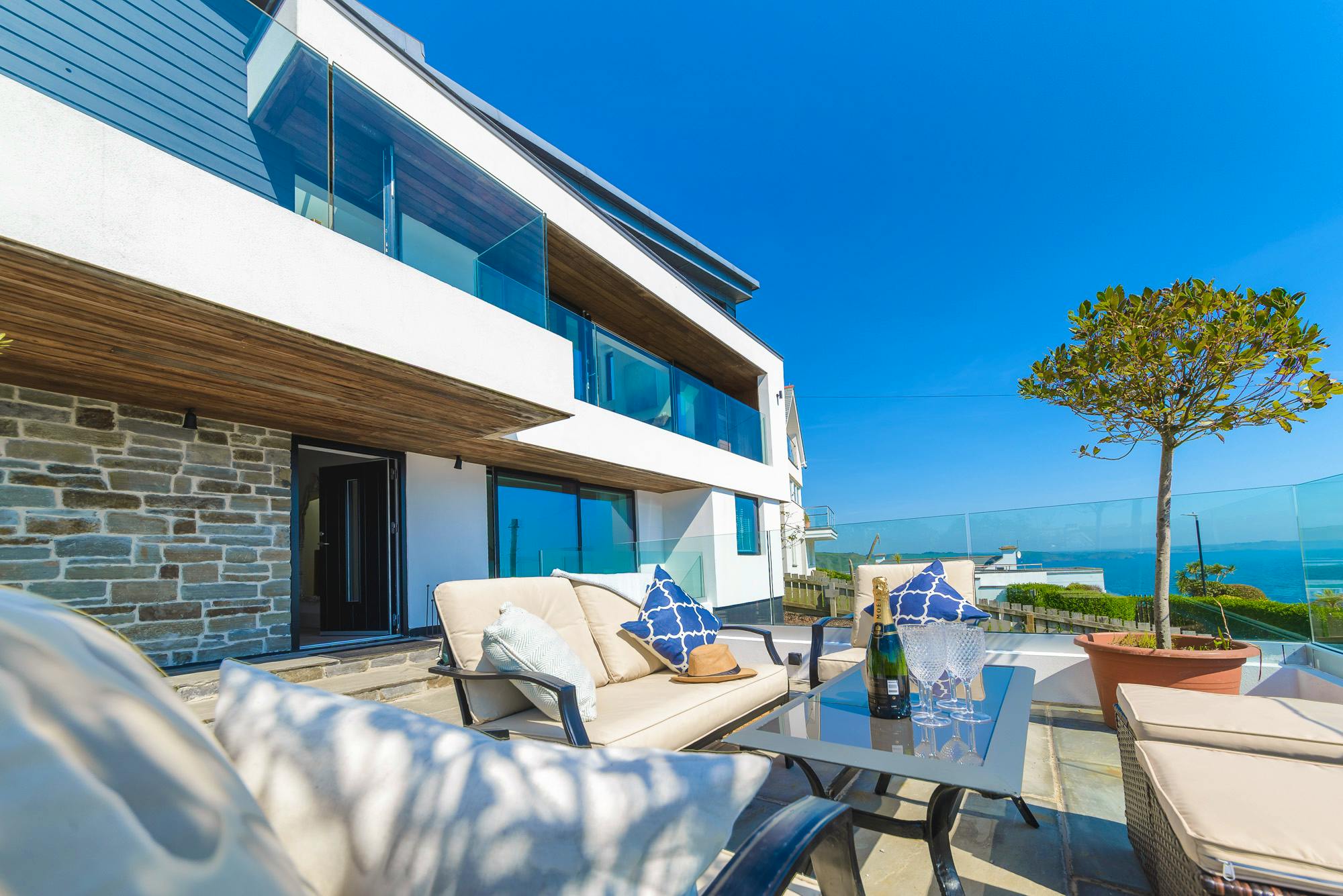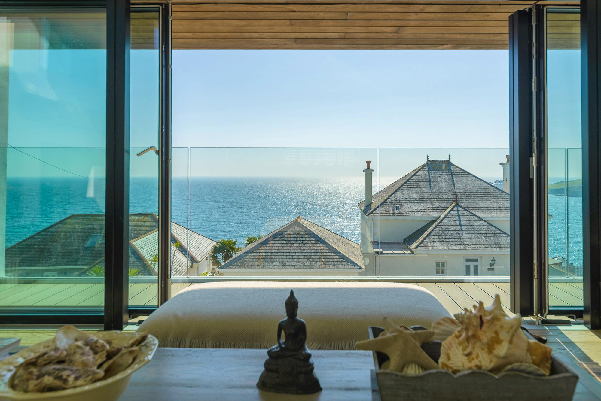 Contemporary, light-filled holiday home with stunning sea views over St Austell Bay on the south coast of Cornwall.