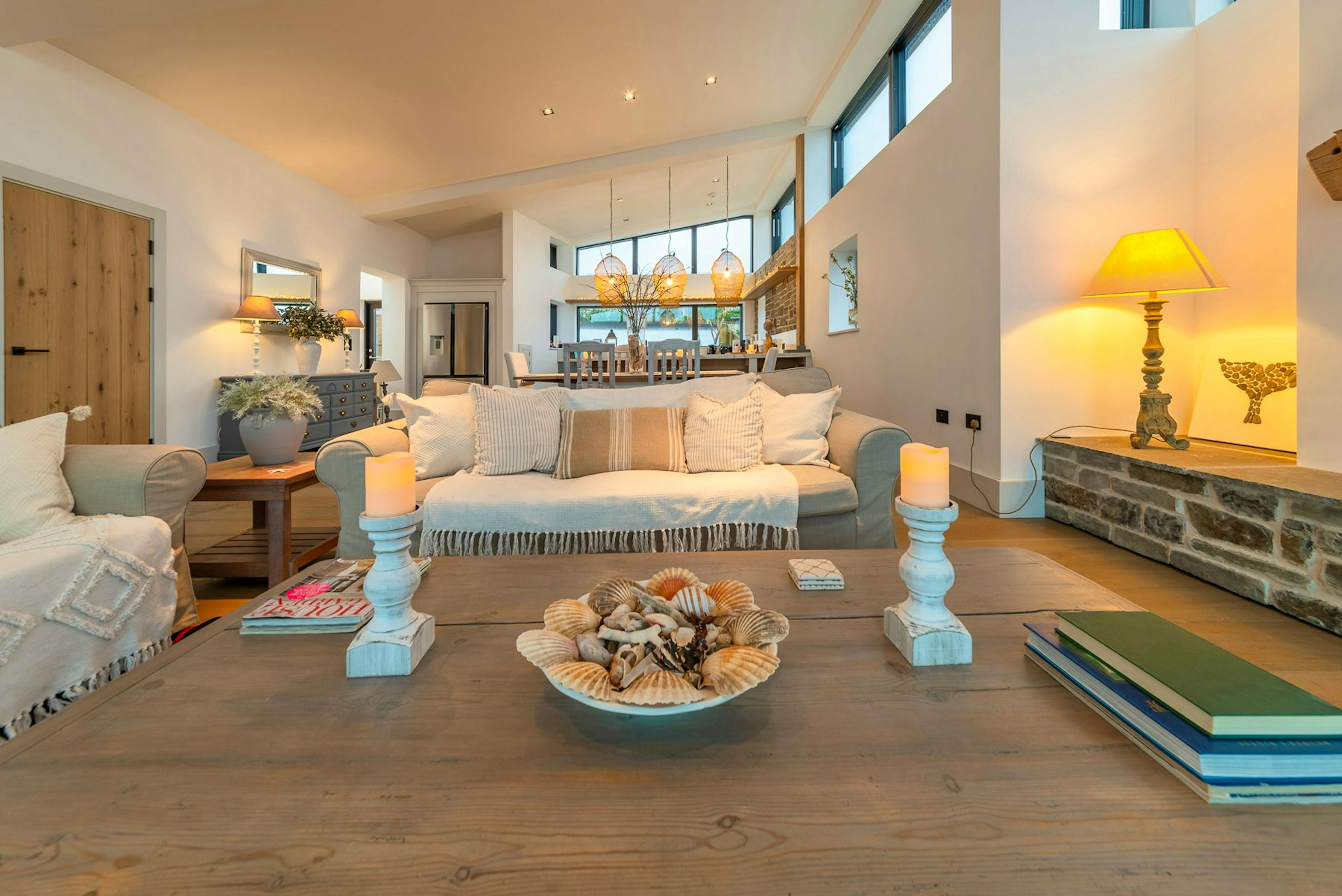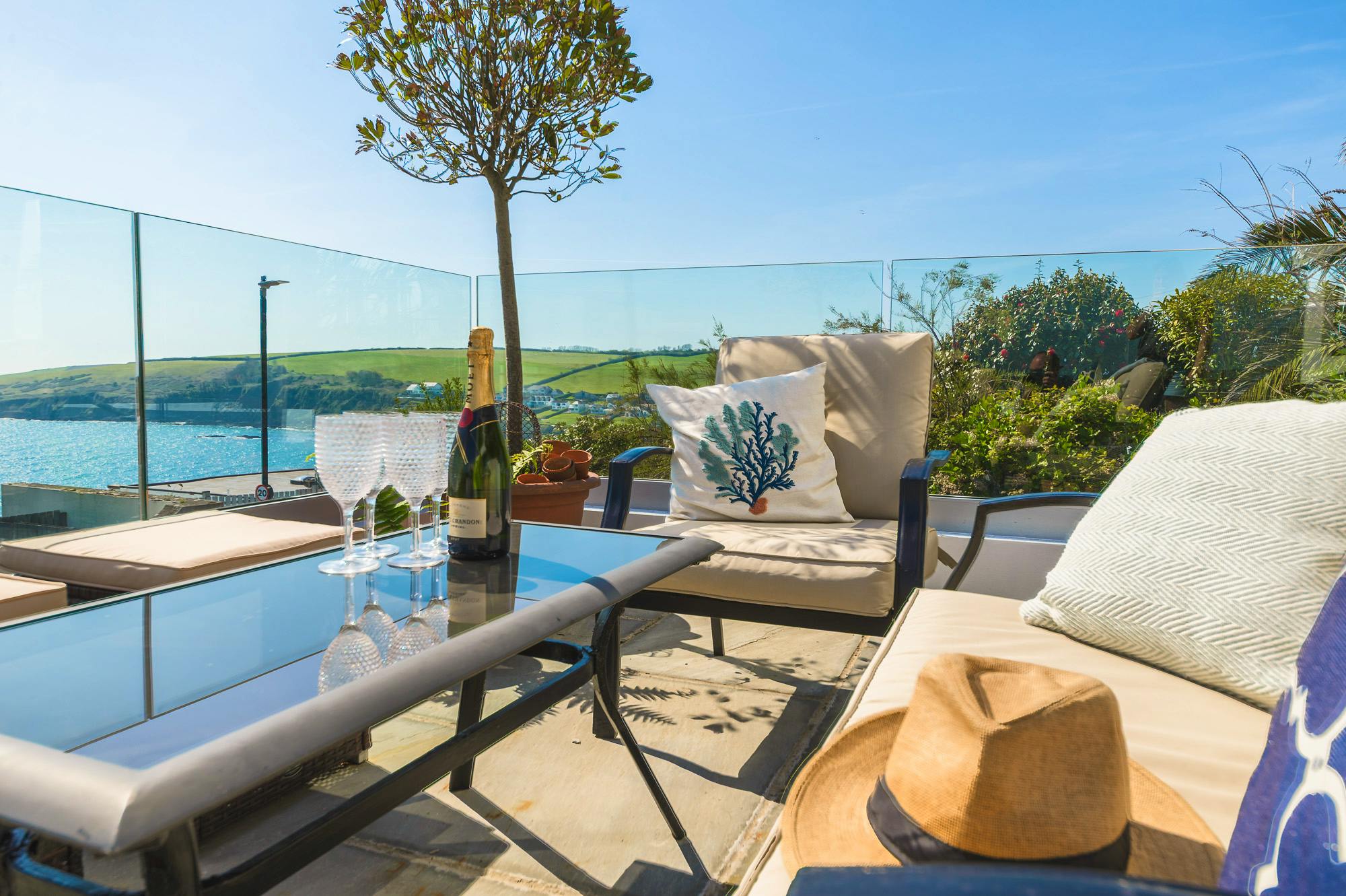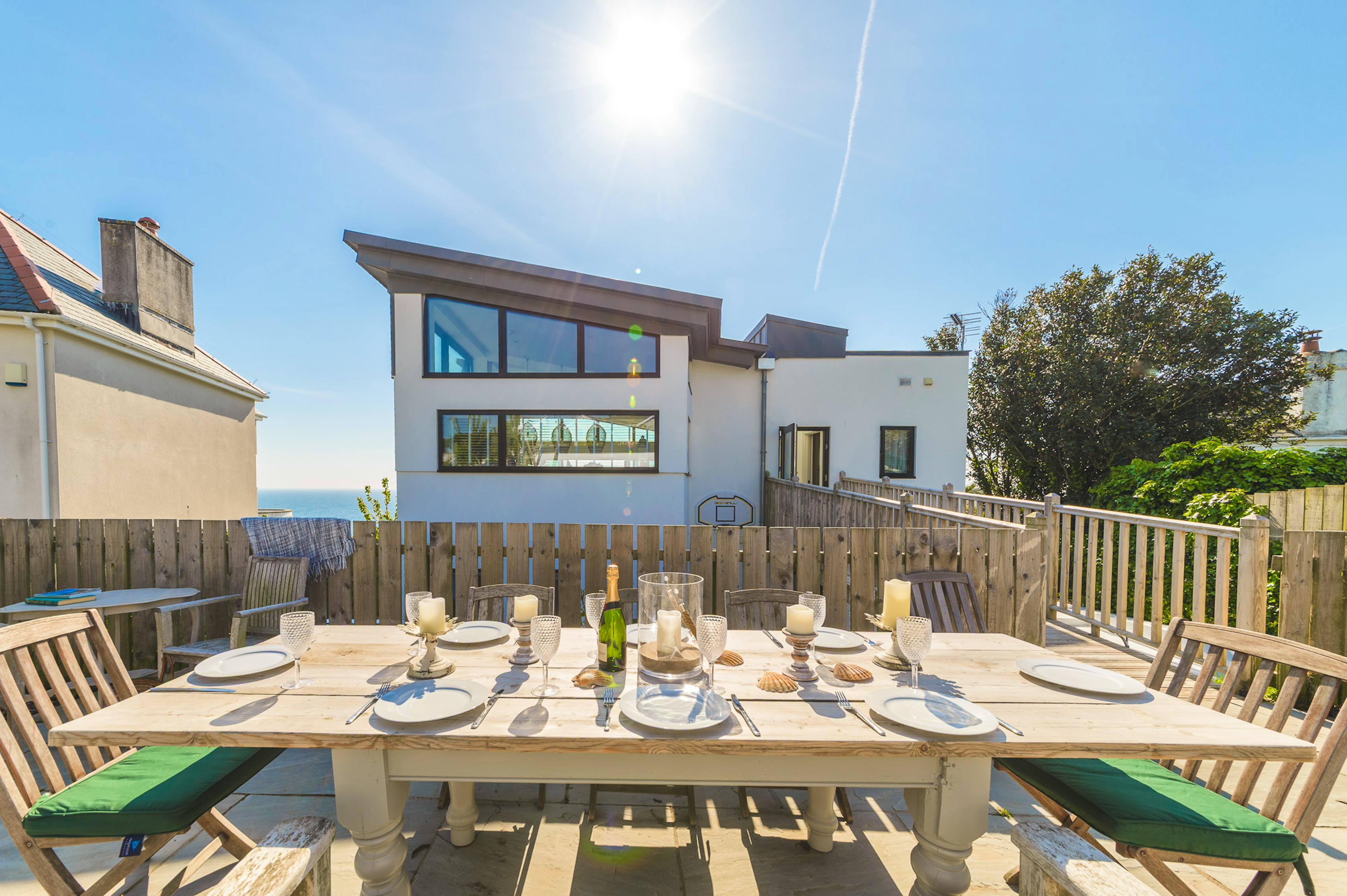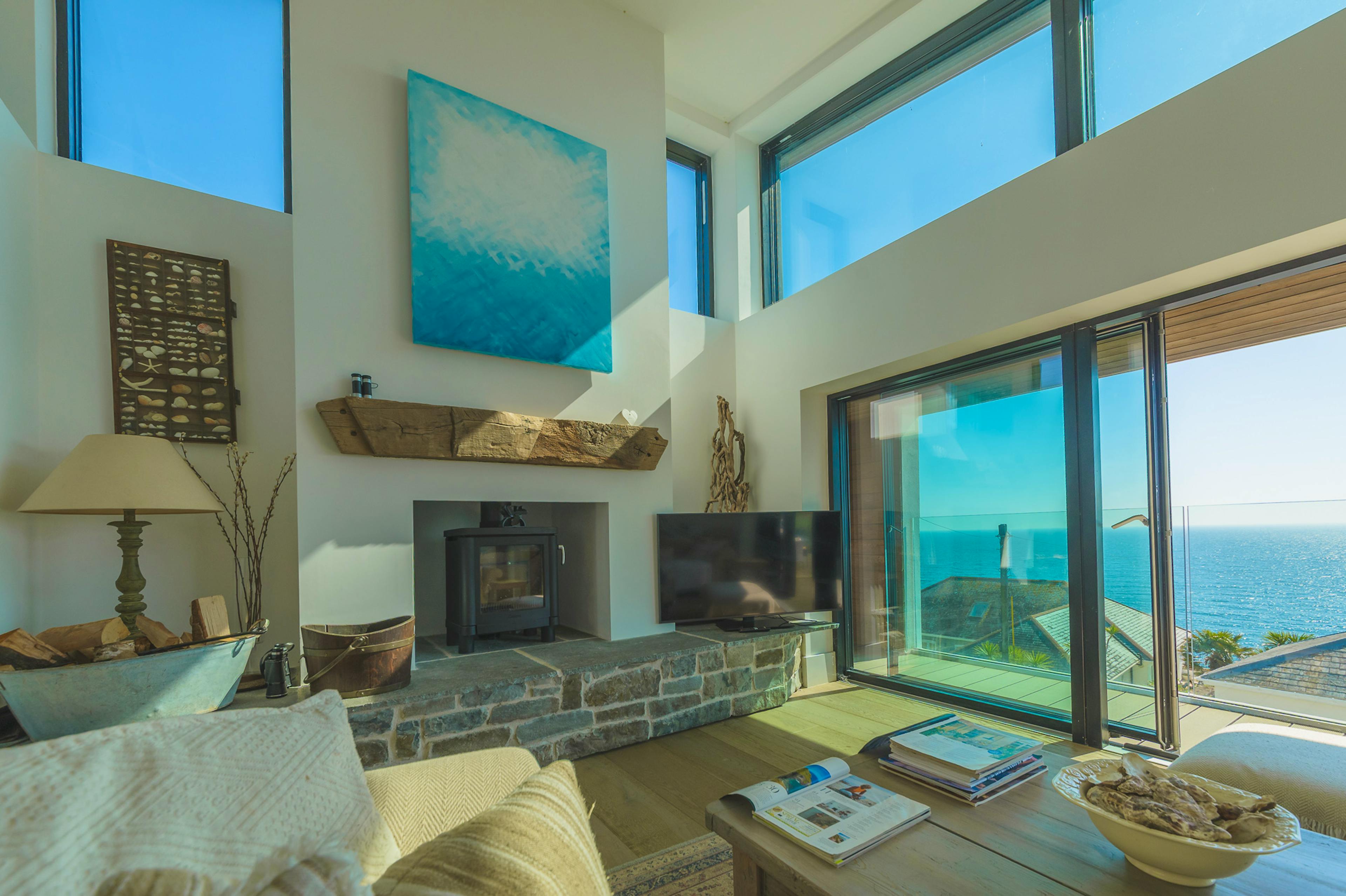 Contemporary, light-filled holiday home with stunning sea views over St Austell Bay on the south coast of Cornwall.