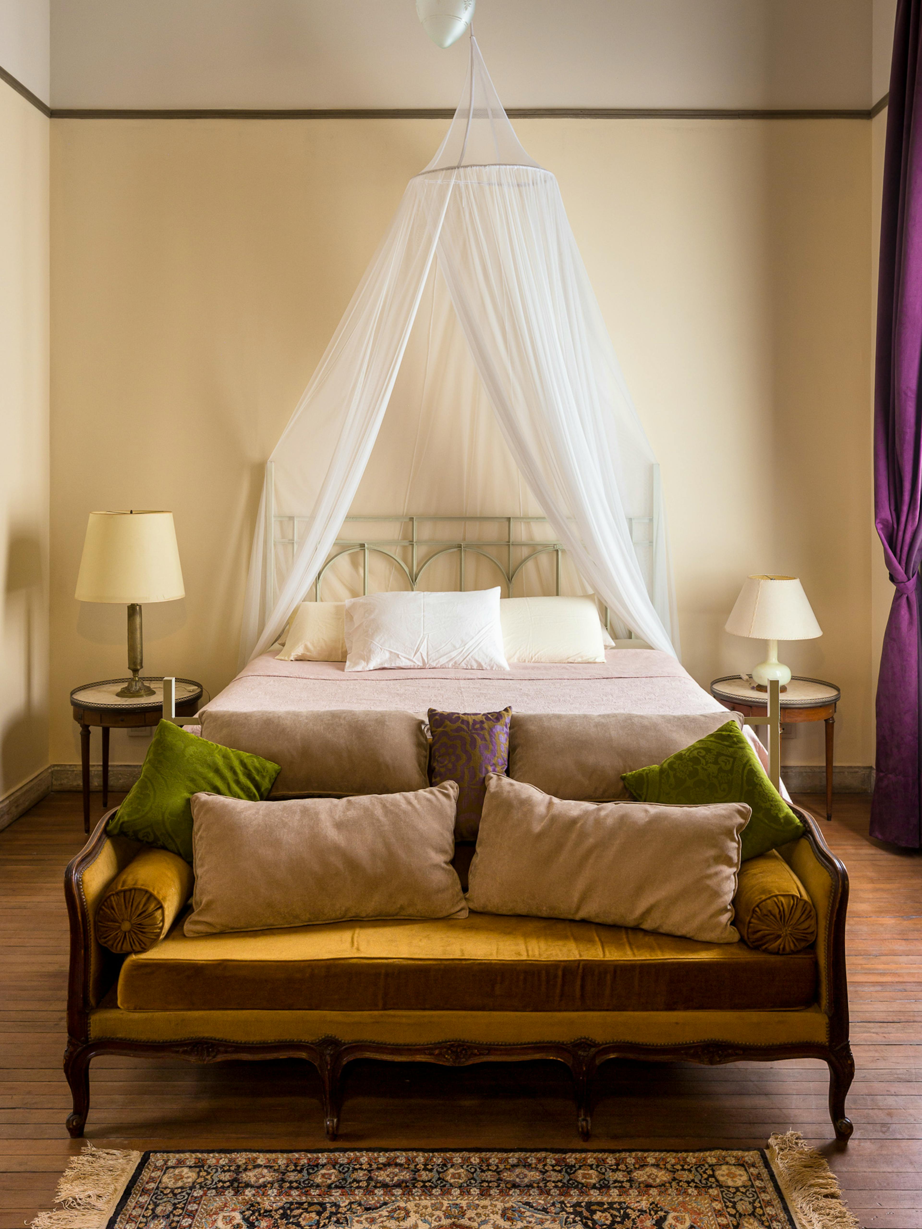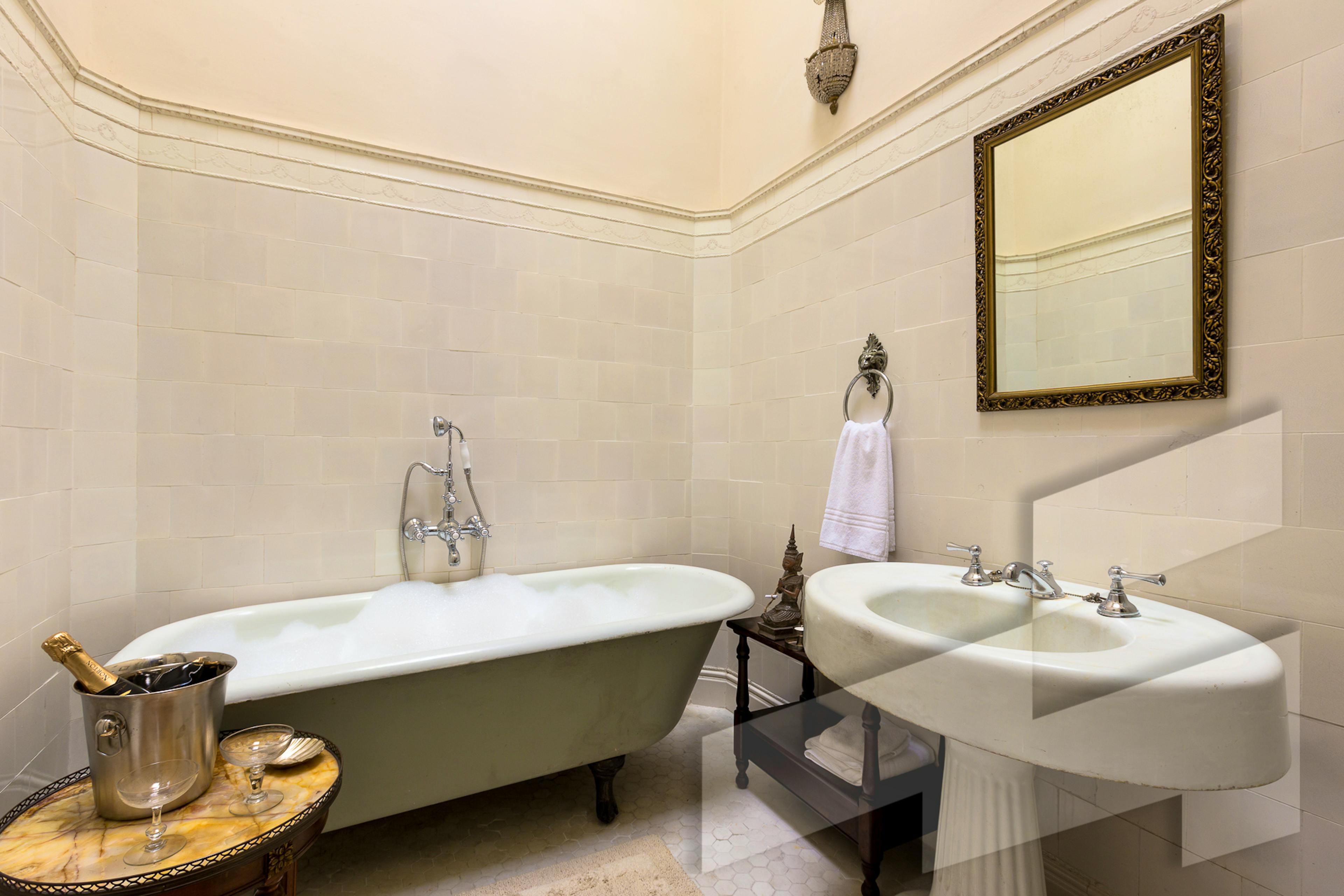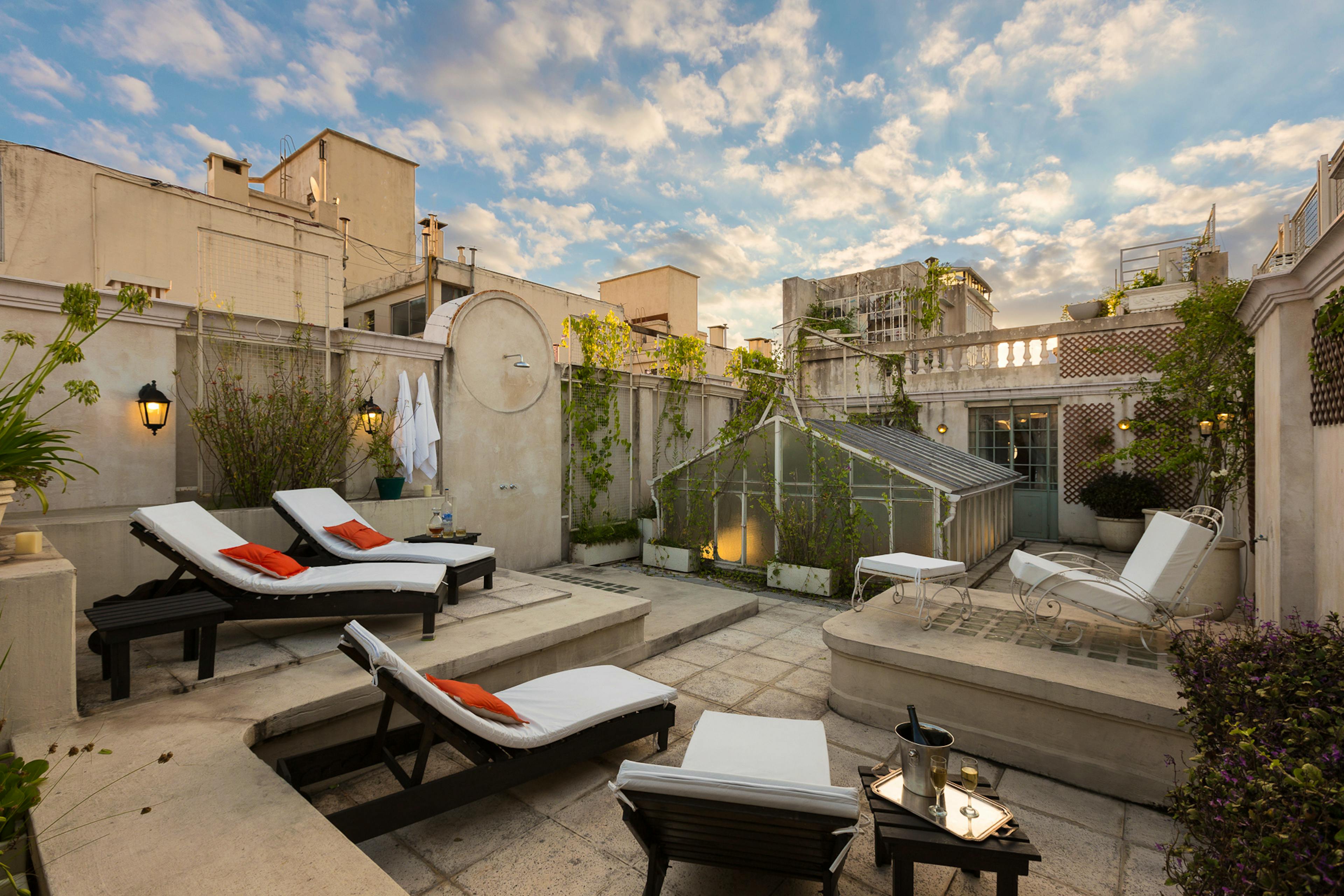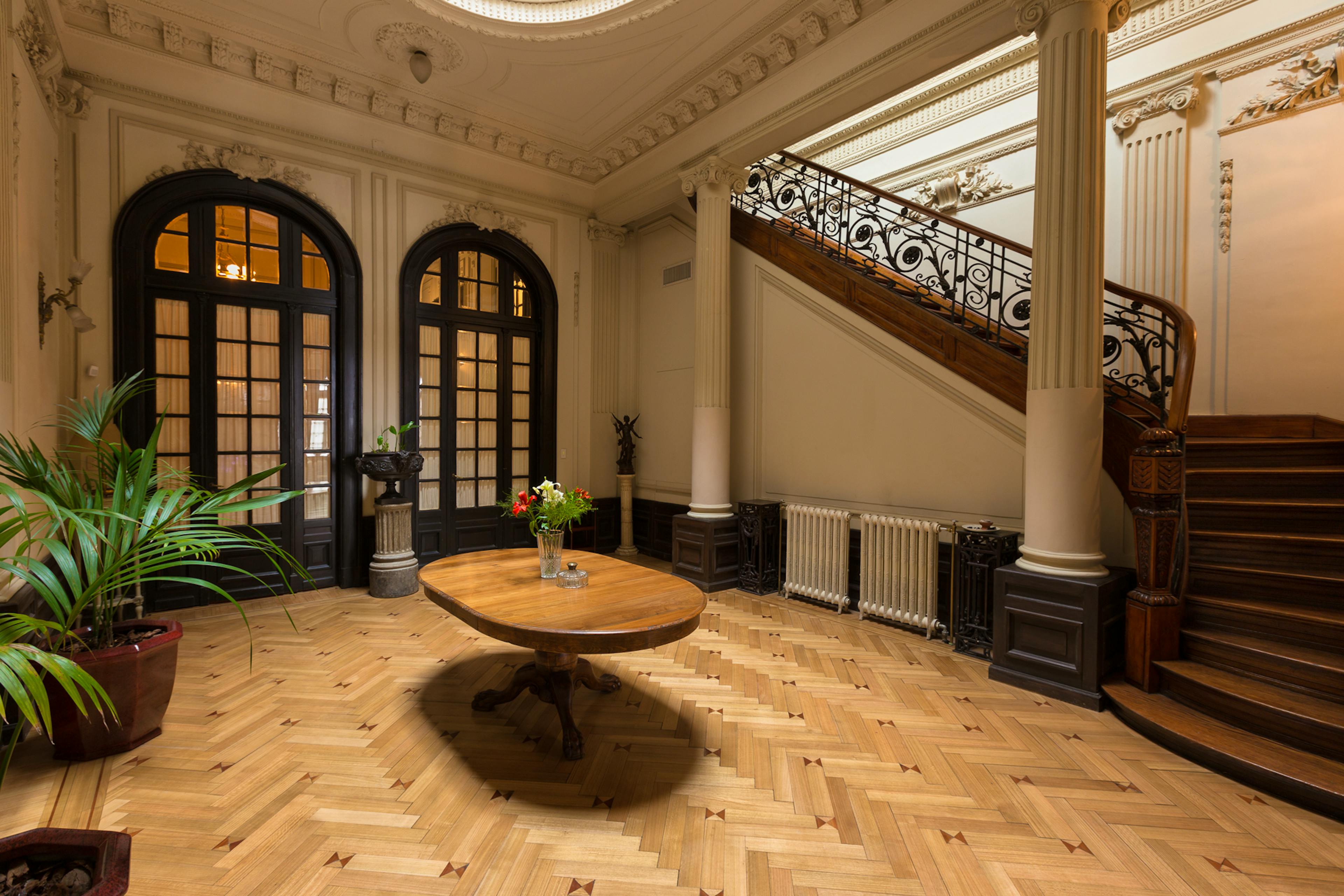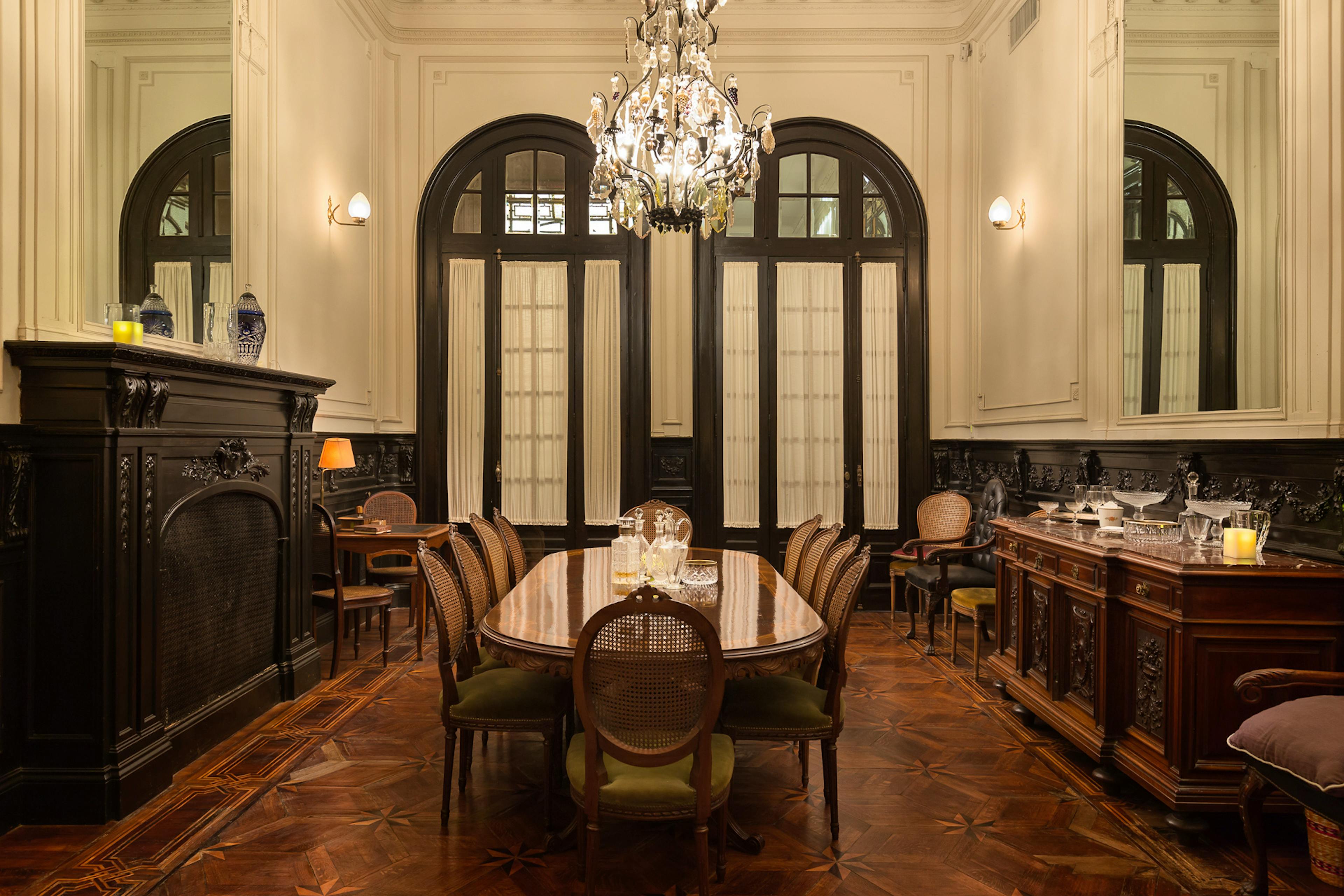Situated in the bustling heart of one of Buenos Aires' busiest and most historically significant regions, Palacio Ezeyza is a one of a kind house dating back to the early twentieth century. This home was subtly restored to bring contemporary luxuries and systems to a property brimming with charm, original features, and simply exquisite furnishings. Ideally located and appointed for every kind of group, from families to colleagues, multi-generational groups to old friends, Palacio Ezeyza is the ultimate Buenos Aires pad for groups looking to stay in the city in serious style. The property itself is simply palatial, with well over nine thousand feet of living space. Every inch of this home is elegant, tranquil, historic and charming, including the original tiled floors, the arched windows, the vine-clad dining terrace and the heated private swimming pool. As you sit down to a sumptuous dinner beneath the chandelier or as you recline in an air-conditioned bedroom opposite a Netflix-equipped television, this is the sort of house which immediately instils in occupants a sense of joy and grandeur, and is bound to stay with you long after you've departed. The house benefits from six beds across five bedrooms, meaning twelve guests can sleep comfortably. There is also ample additional space in studies, drawing rooms and lounges, making it an ideal space for colleagues, students, or groups where some individuals have to work. The kitchens combine the house's historic architectural charm with world-class brand new amenities, meaning that whether you choose to dine out in San Telmo's fantastic restaurants or prepare your meals at home using local ingredients, you're bound to eat well. The swimming pool is a standout feature, entirely private for the duration of your stay, and beautifully designed and fitted, while the house also benefits from a sauna. The bedrooms each have high ceilings and great views, and there are plenty of bathrooms to go round. Across the board, every element of this house has been judiciously updated to create a unique space which has retained all of its original charm. The neighborhood is very much the cultural epicentre of Buenos Aires, long celebrated for its fantastic markets, extraordinary restaurants and the world-famous architecture on display in its churches and museums. The ecological reserve and international restaurants of Puerto Madero are just a few blocks away, and you are within easy walking distance of great bars, coffee shops, independent shops and iconic restaurants specialising in traditional Argentine cuisine. Whether you're a family spending your first week in Argentina looking to immerse yourself in culture or a corporate team looking to eat well and relax between client meetings, you won't find a better neighbourhood than San Telmo.