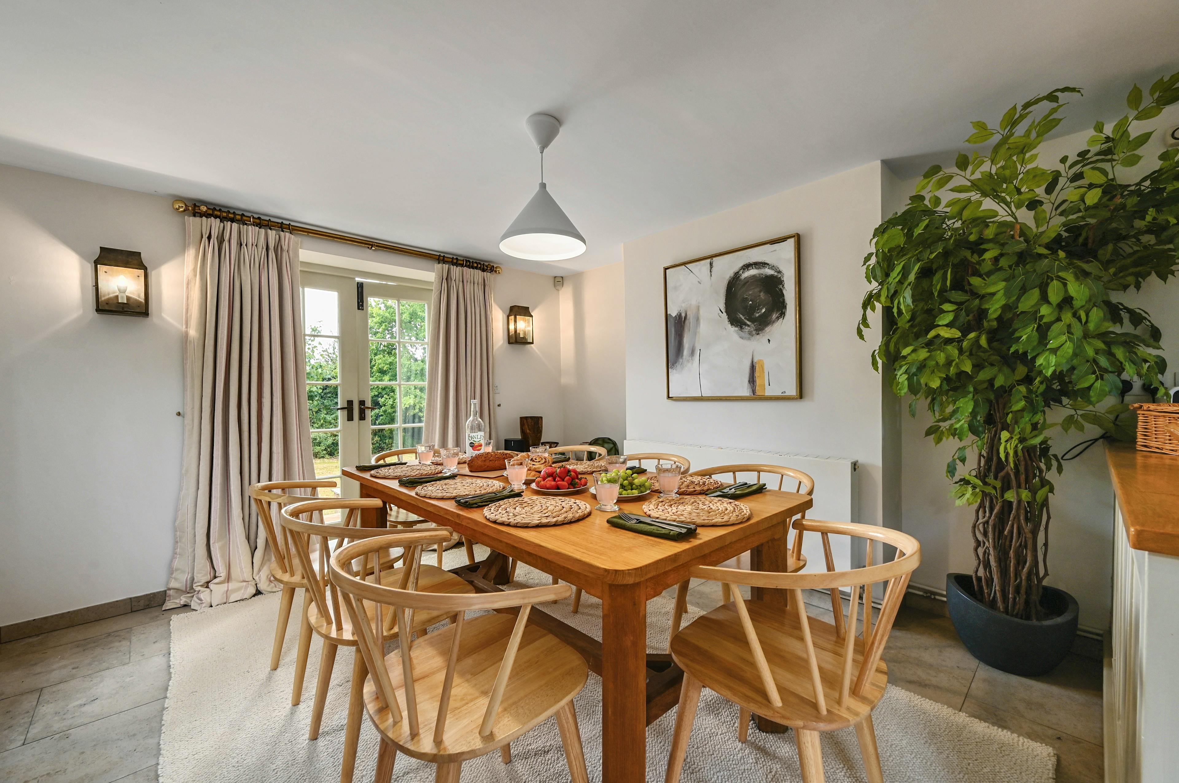 Hidden away within a large private countryside estate, Pelsham Farm Cottage is the kind of place that instantly encourages you to slow down and settle in. Surrounded by rolling fields, pockets of woodland and big open skies, this beautifully presented farmhouse offers space, privacy and a wonderfully relaxed feel, making it an ideal escape for families or groups looking to enjoy the Sussex countryside together. Inside, the cottage blends classic farmhouse character with modern, contemporary styling. The generous living room is made for long, lazy afternoons, with deep comfy sofas, a crackling woodburning stove and a colourful wall of books inviting you to curl up with a good read. At the heart of the home is the open-plan kitchen and dining room, where mornings begin around the large table with coffee brewing, plans forming and the day stretching ahead. The kitchen is well equipped for feeding a crowd, whether that’s big family breakfasts or leisurely suppers after a day exploring. There are four welcoming bedrooms spread across the first floor, offering flexible sleeping arrangements for up to eight guests. A king bedroom with ensuite shower room provides a peaceful retreat, while the remaining rooms include a king bedroom, a double bedroom and a twin zip and link room, all served by a family bathroom with a bath. Premium White Company duvets, crisp linens and thoughtful touches throughout ensure everyone sleeps soundly after days spent outdoors. Step outside and you’ll find a secure, secluded garden wrapping around the cottage. With a grassed lawn for children and dogs to roam, a private patio with seating for eight and a BBQ for alfresco meals in warmer months, it’s a lovely extension of the living space. Beyond the garden gate, footpaths and bridleways lead straight into the surrounding countryside, while Tillingham Vineyard sits right next door, perfect for wine tastings, events and memorable meals. When you do feel like venturing further, the medieval town of Rye is just a short drive away, with its cobbled streets, independent shops and excellent places to eat. Wide sandy beaches at Camber, historic castles, vineyards and classic Sussex villages are all within easy reach, making Pelsham Farm Cottage a superb base for exploring this rich and varied corner of the country.