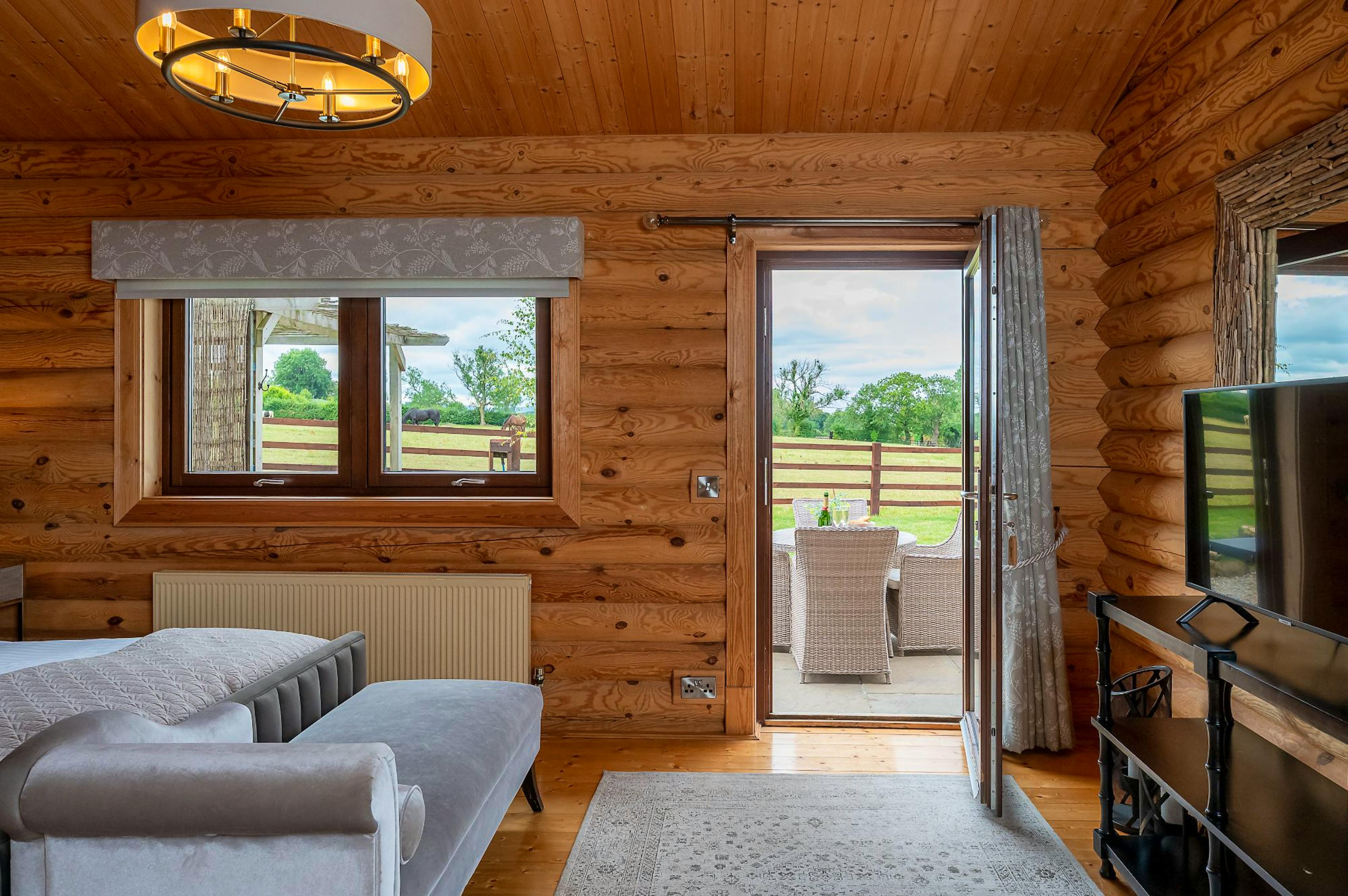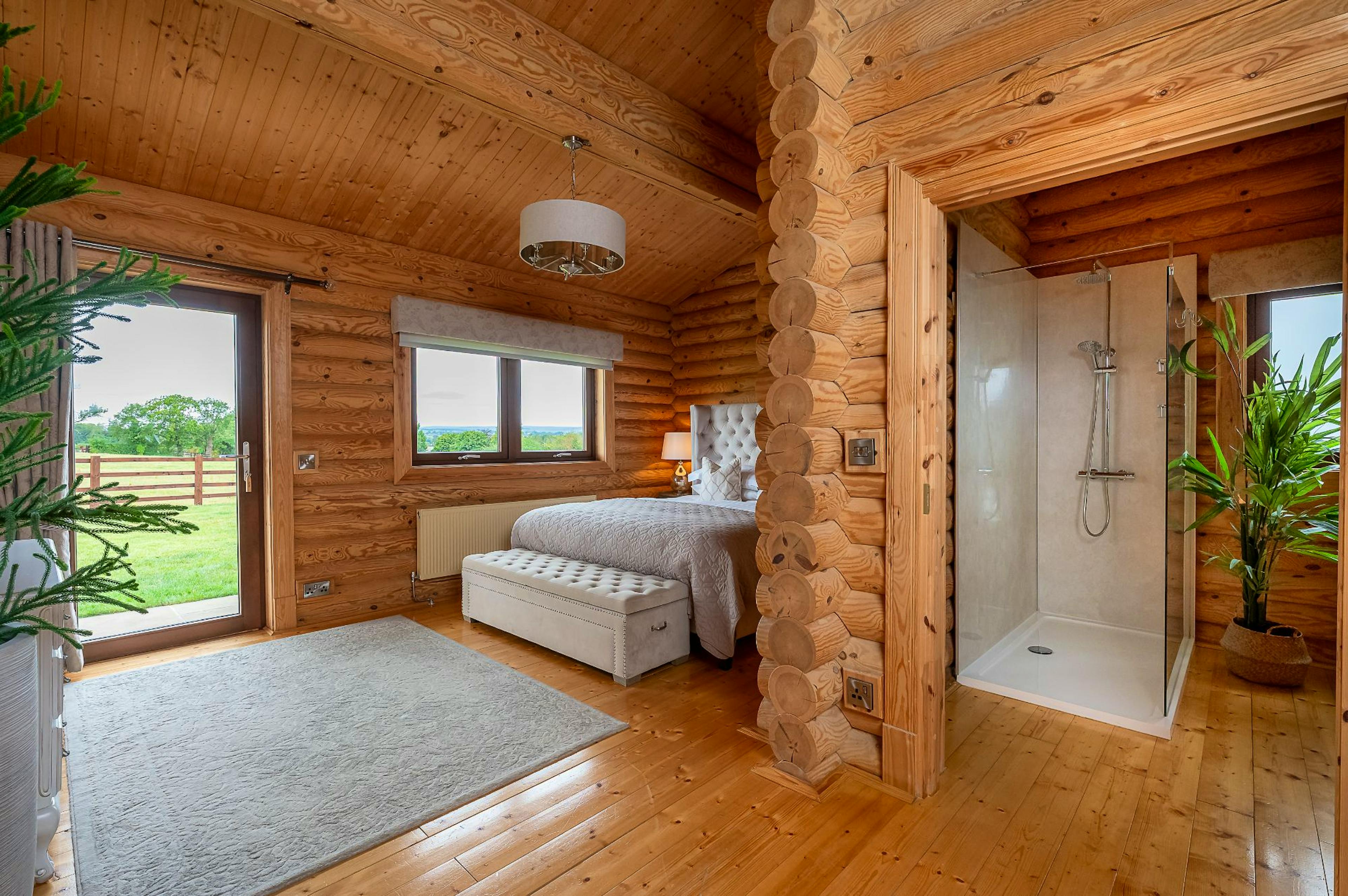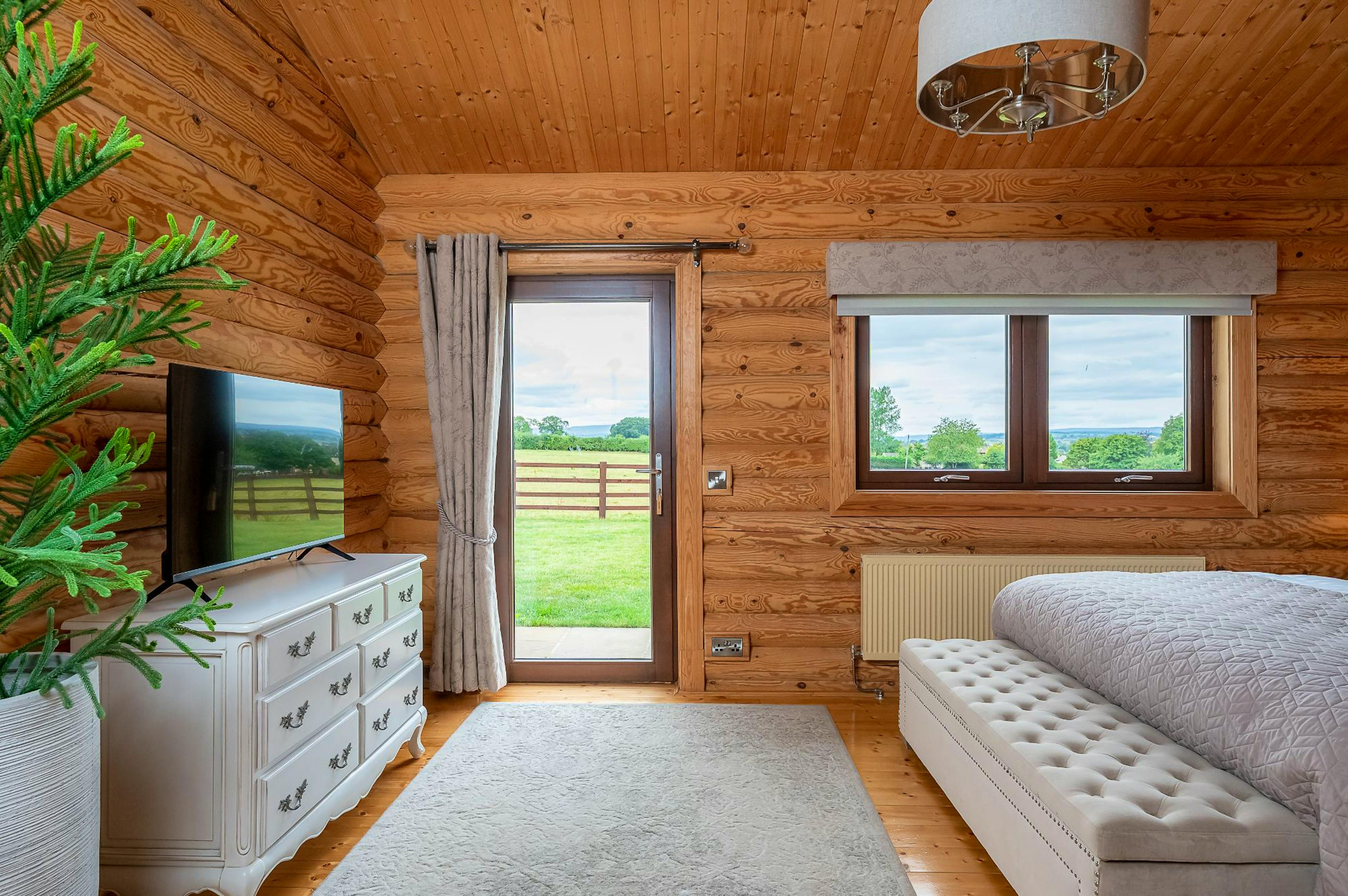 Set in secluded grounds on the edge of the Yorkshire Dales, Pen Hill Lodge is a luxurious two-bedroom cabin with a hot tub and breathtaking countryside views. Perfect for two couples or a small group of up to four guests, this dog-friendly lodge blends rustic log cabin charm with modern comfort, offering a serene retreat where you can unwind and reconnect with nature. Surrounded by rolling fields and grazing horses from Sun Hill’s racing yard, the setting provides both privacy and a picture-perfect backdrop for a peaceful rural getaway. Inside, Pen Hill Lodge exudes style and warmth. The open-plan living space is centred around a woodburning stove, with comfy sofas and armchairs positioned to make the most of the large picture windows framing the spectacular views. A Smart TV provides entertainment, while the well-equipped kitchen includes a Nespresso machine with a starter pack of capsules, plus all the essentials for cooking a relaxed meal. The dining table is perfect for gathering over breakfast or a cosy dinner after a day exploring the area. The lodge features two ensuite bedrooms, each with a fixed super-king bed, walk-in rainfall shower and Smart TVs for ultimate comfort and privacy. French doors from both bedrooms lead straight to the private patio and hot tub area, where you can soak in the bamboo-covered jacuzzi-style tub while admiring the North Yorkshire scenery. Large windows in each room ensure that every morning starts with the rolling countryside as your backdrop. Step outside onto the patio to enjoy alfresco dining at the rattan table or fire up the gas BBQ for a summer feast. The fire pit offers a cosy spot for evenings under the stars, while the hot tub is ideal for long, relaxing soaks in complete privacy. The fully enclosed garden also makes Pen Hill Lodge perfect for dogs to roam safely, ensuring the whole family can enjoy this tranquil retreat. Just four miles from Leyburn, the lodge combines countryside calm with easy access to local amenities. Explore the independent shops, artisan chocolate from Inspired Chocolate, or stock up on essentials and fine wines at Campbell’s of Leyburn. The nearby weekly market and dog-friendly pubs make it easy to enjoy local life while still returning to the peaceful luxury of Pen Hill Lodge.