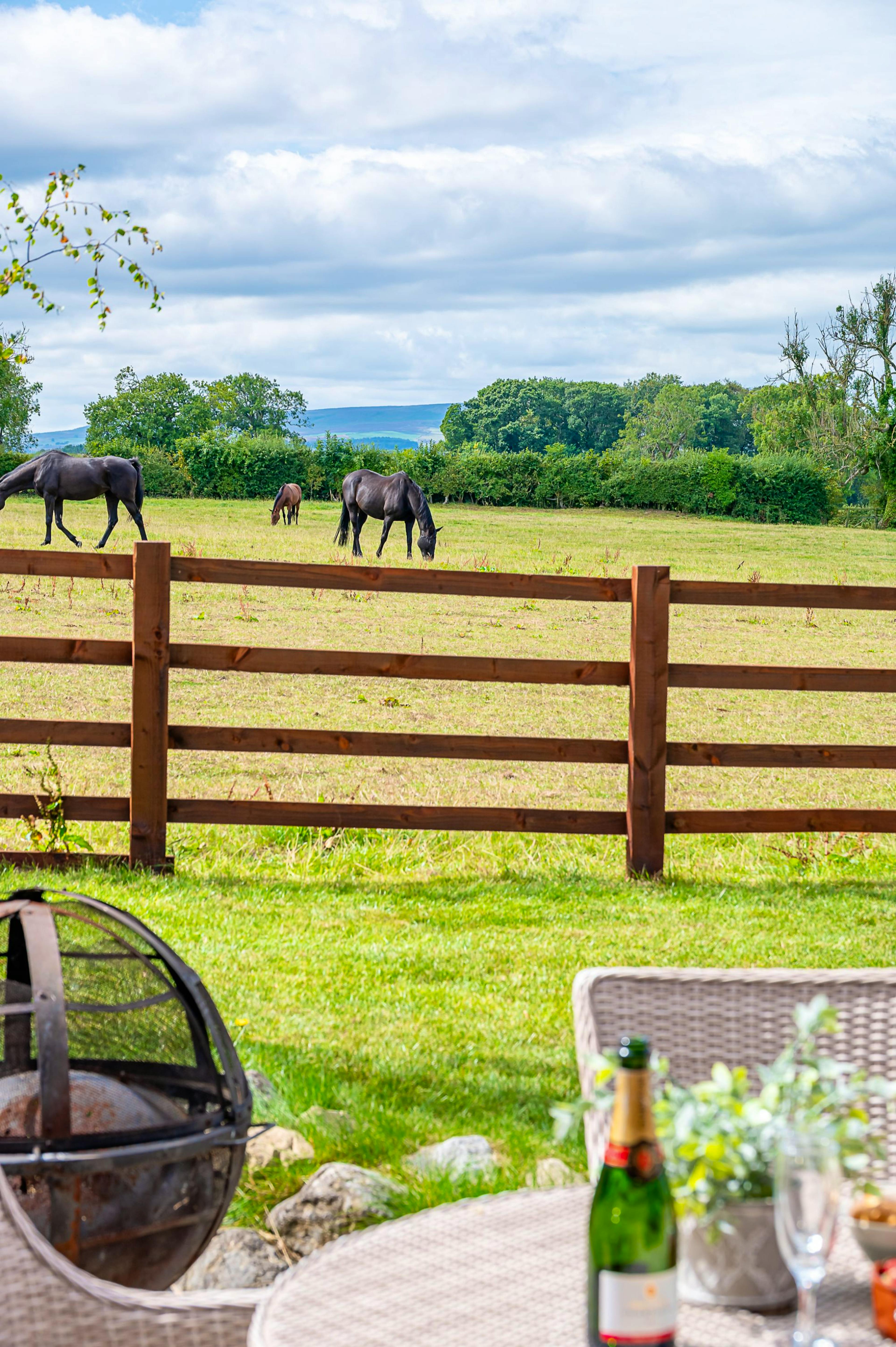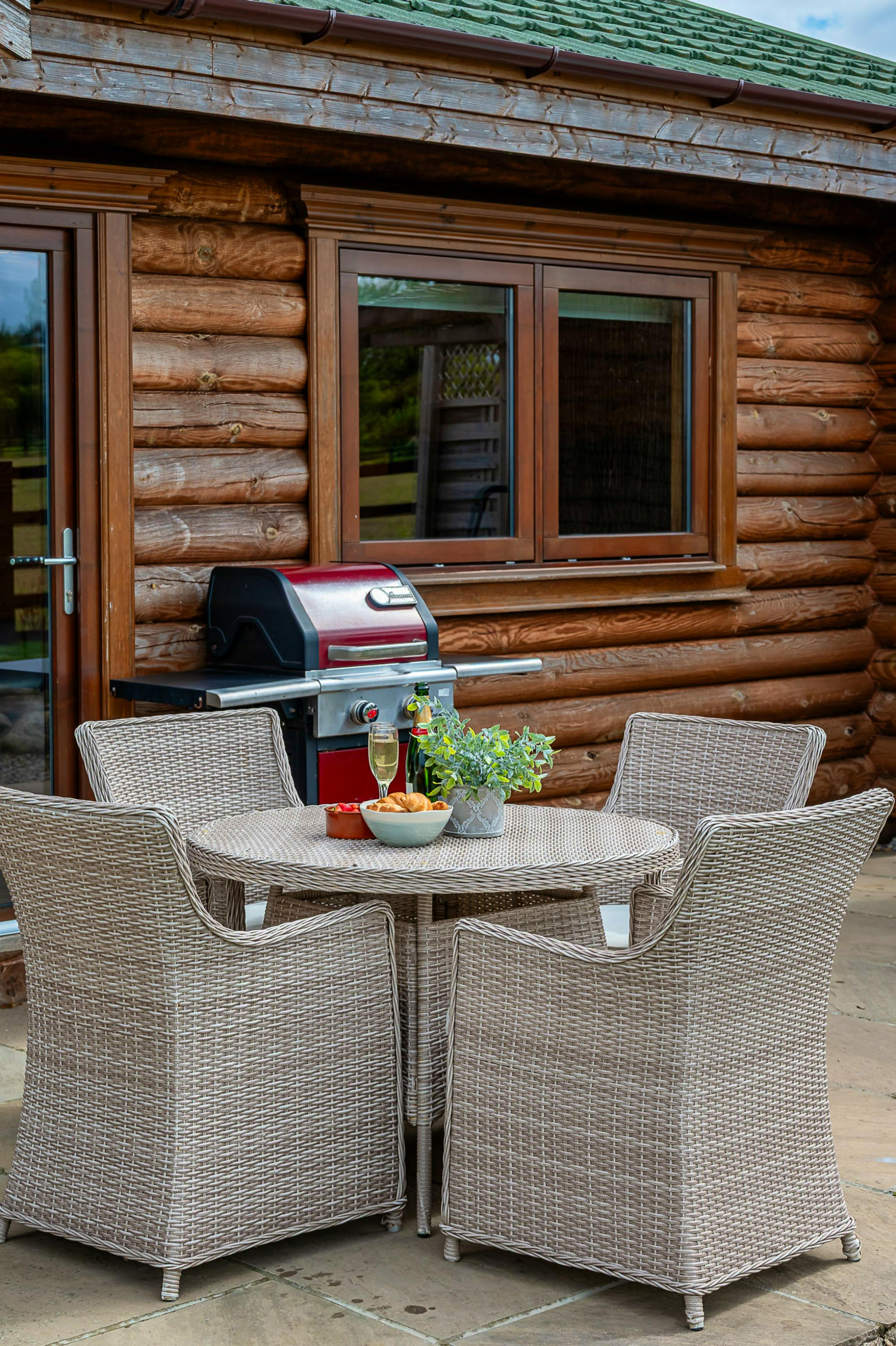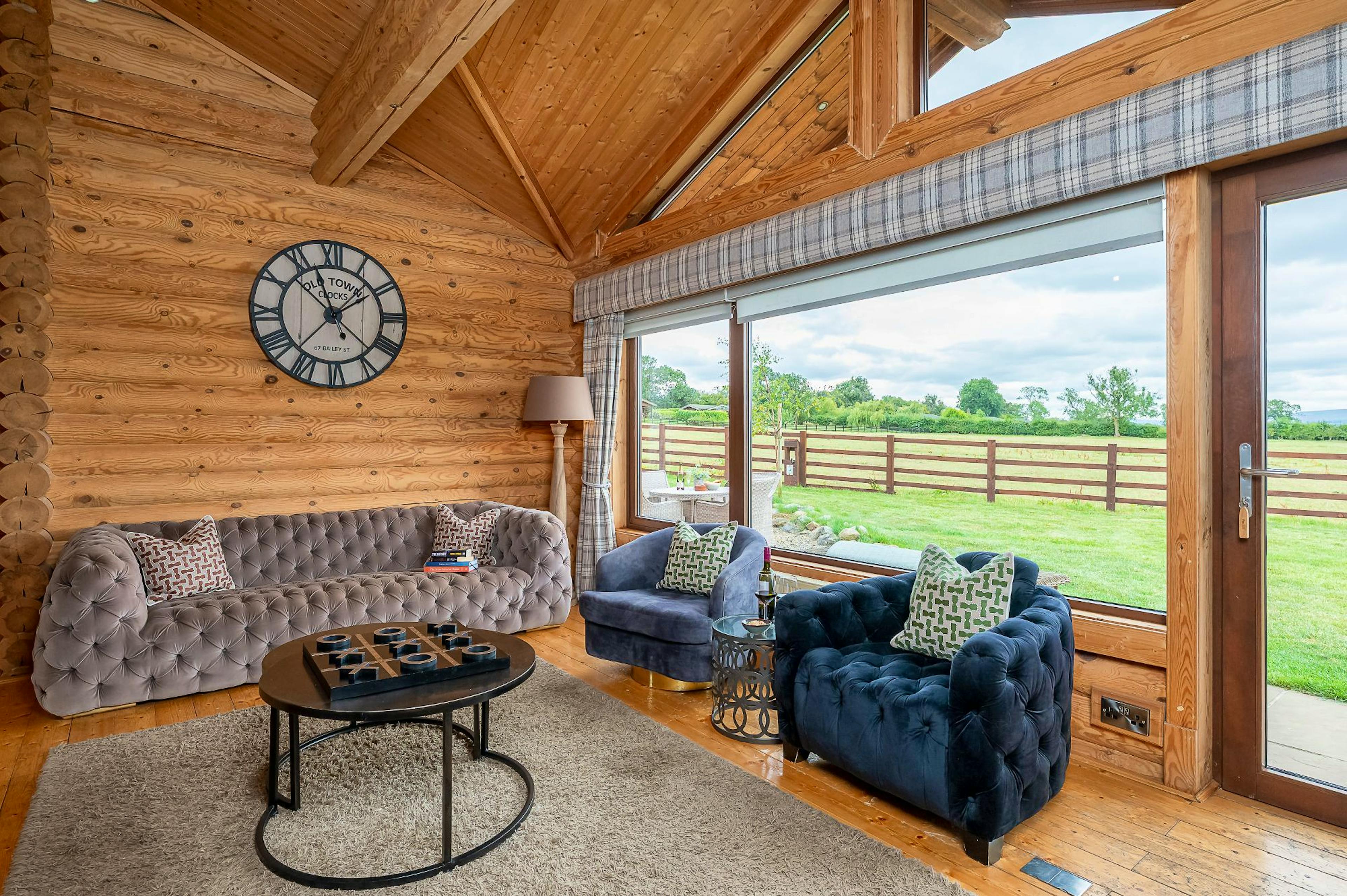Set in secluded grounds on the edge of the Yorkshire Dales, Pen Hill Lodge is a luxurious two-bedroom cabin with a hot tub and breathtaking countryside views. Perfect for two couples or a small group of up to four guests, this dog-friendly lodge blends rustic log cabin charm with modern comfort, offering a serene retreat where you can unwind and reconnect with nature. Surrounded by rolling fields and grazing horses from Sun Hill’s racing yard, the setting provides both privacy and a picture-perfect backdrop for a peaceful rural getaway. Inside, Pen Hill Lodge exudes style and warmth. The open-plan living space is centred around a woodburning stove, with comfy sofas and armchairs positioned to make the most of the large picture windows framing the spectacular views. A Smart TV provides entertainment, while the well-equipped kitchen includes a Nespresso machine with a starter pack of capsules, plus all the essentials for cooking a relaxed meal. The dining table is perfect for gathering over breakfast or a cosy dinner after a day exploring the area. The lodge features two ensuite bedrooms, each with a fixed super-king bed, walk-in rainfall shower and Smart TVs for ultimate comfort and privacy. French doors from both bedrooms lead straight to the private patio and hot tub area, where you can soak in the bamboo-covered jacuzzi-style tub while admiring the North Yorkshire scenery. Large windows in each room ensure that every morning starts with the rolling countryside as your backdrop. Step outside onto the patio to enjoy alfresco dining at the rattan table or fire up the gas BBQ for a summer feast. The fire pit offers a cosy spot for evenings under the stars, while the hot tub is ideal for long, relaxing soaks in complete privacy. The fully enclosed garden also makes Pen Hill Lodge perfect for dogs to roam safely, ensuring the whole family can enjoy this tranquil retreat. Just four miles from Leyburn, the lodge combines countryside calm with easy access to local amenities. Explore the independent shops, artisan chocolate from Inspired Chocolate, or stock up on essentials and fine wines at Campbell’s of Leyburn. The nearby weekly market and dog-friendly pubs make it easy to enjoy local life while still returning to the peaceful luxury of Pen Hill Lodge.