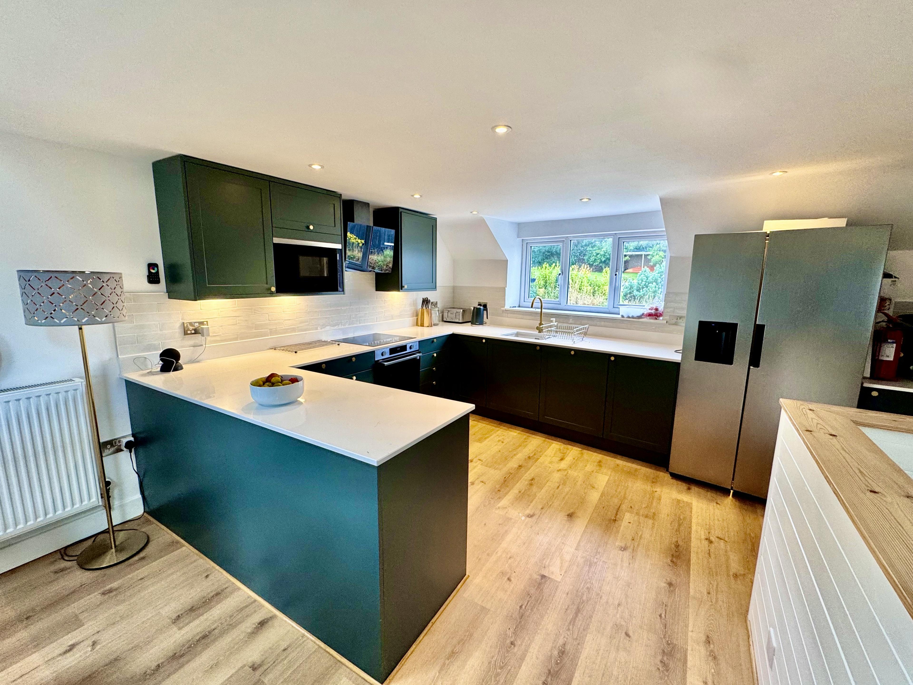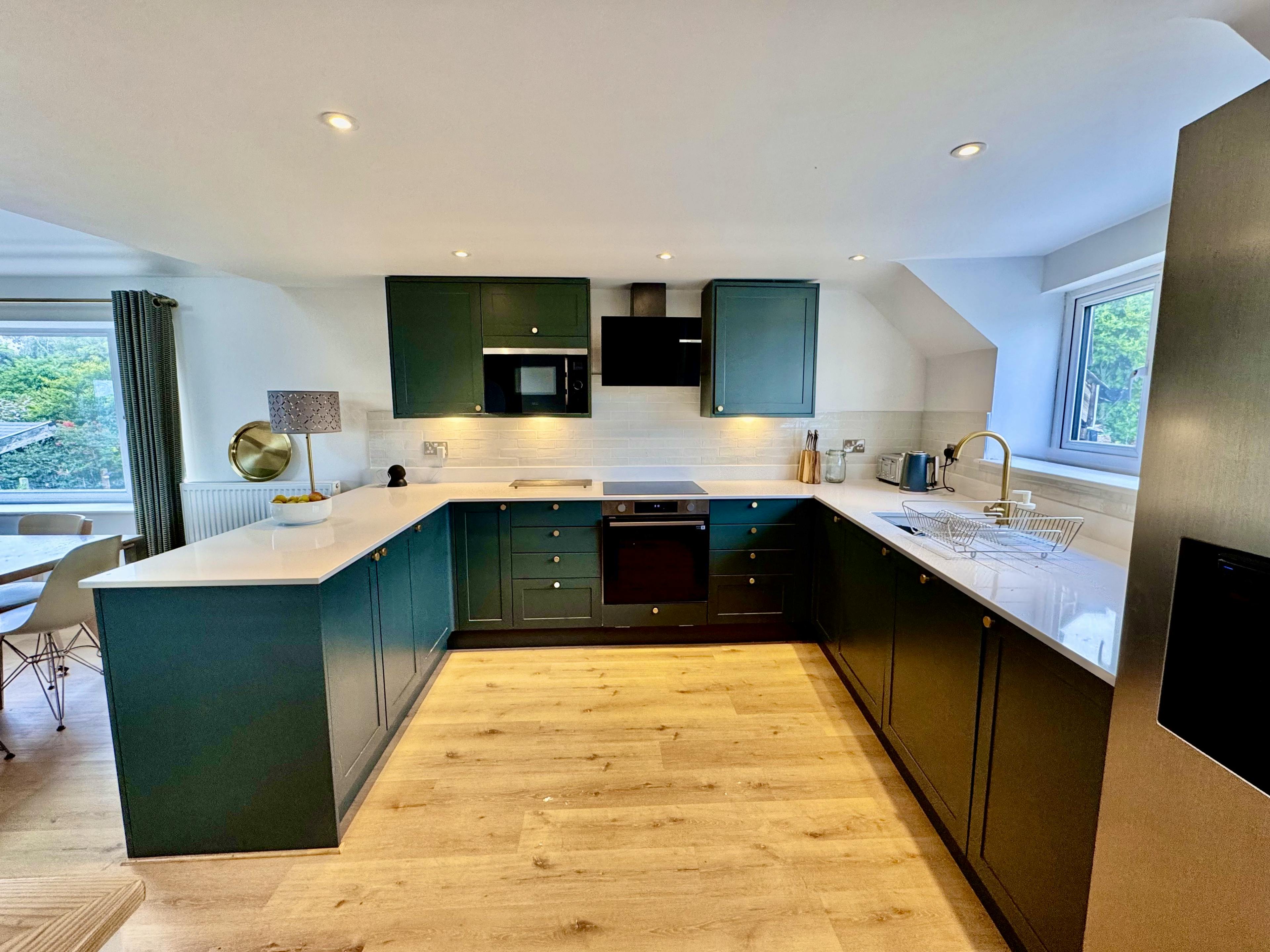 Sleek, sociable kitchen with generous worktops and modern appliances, perfect for cooking up feasts to share with family and friends.