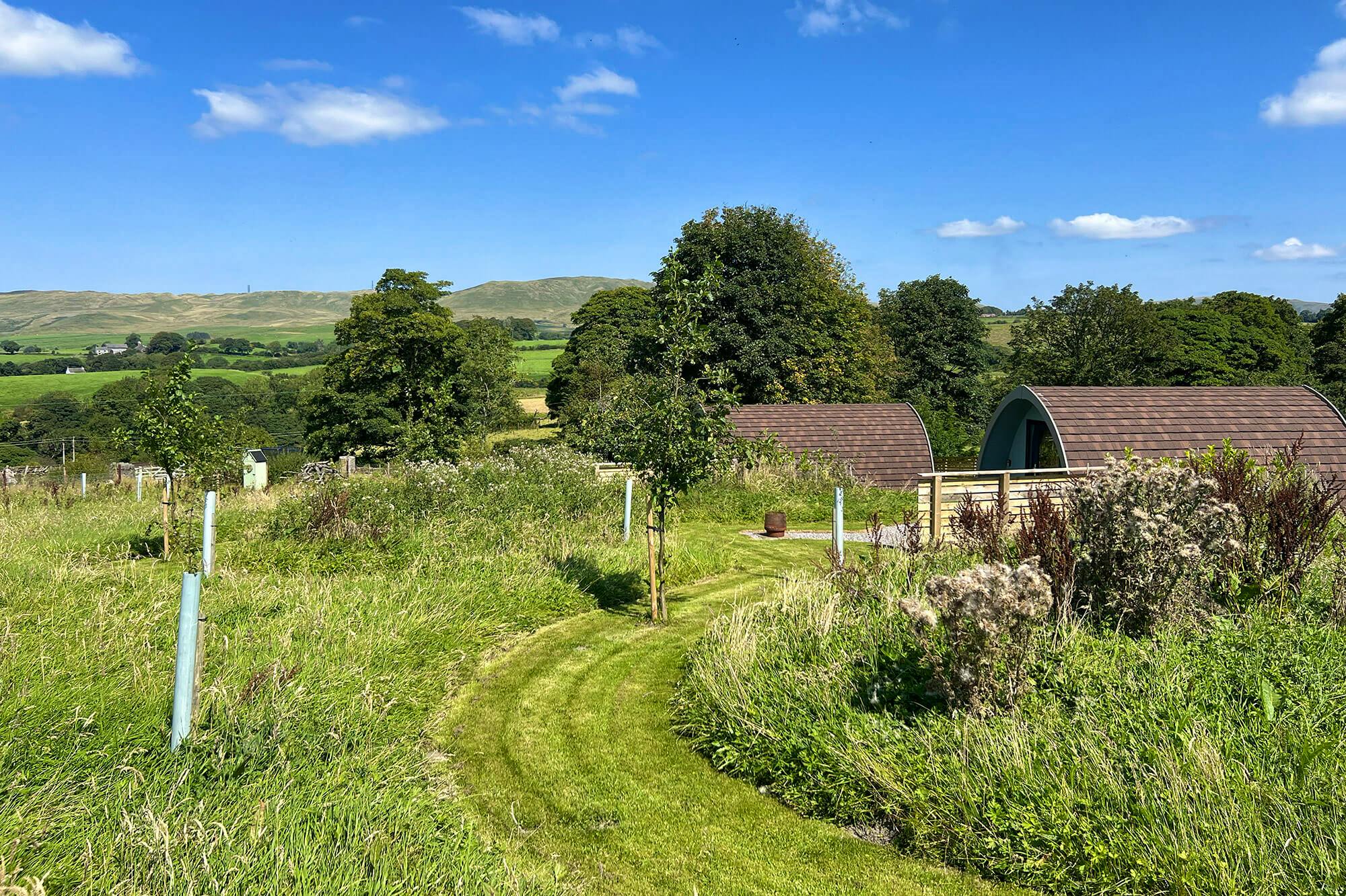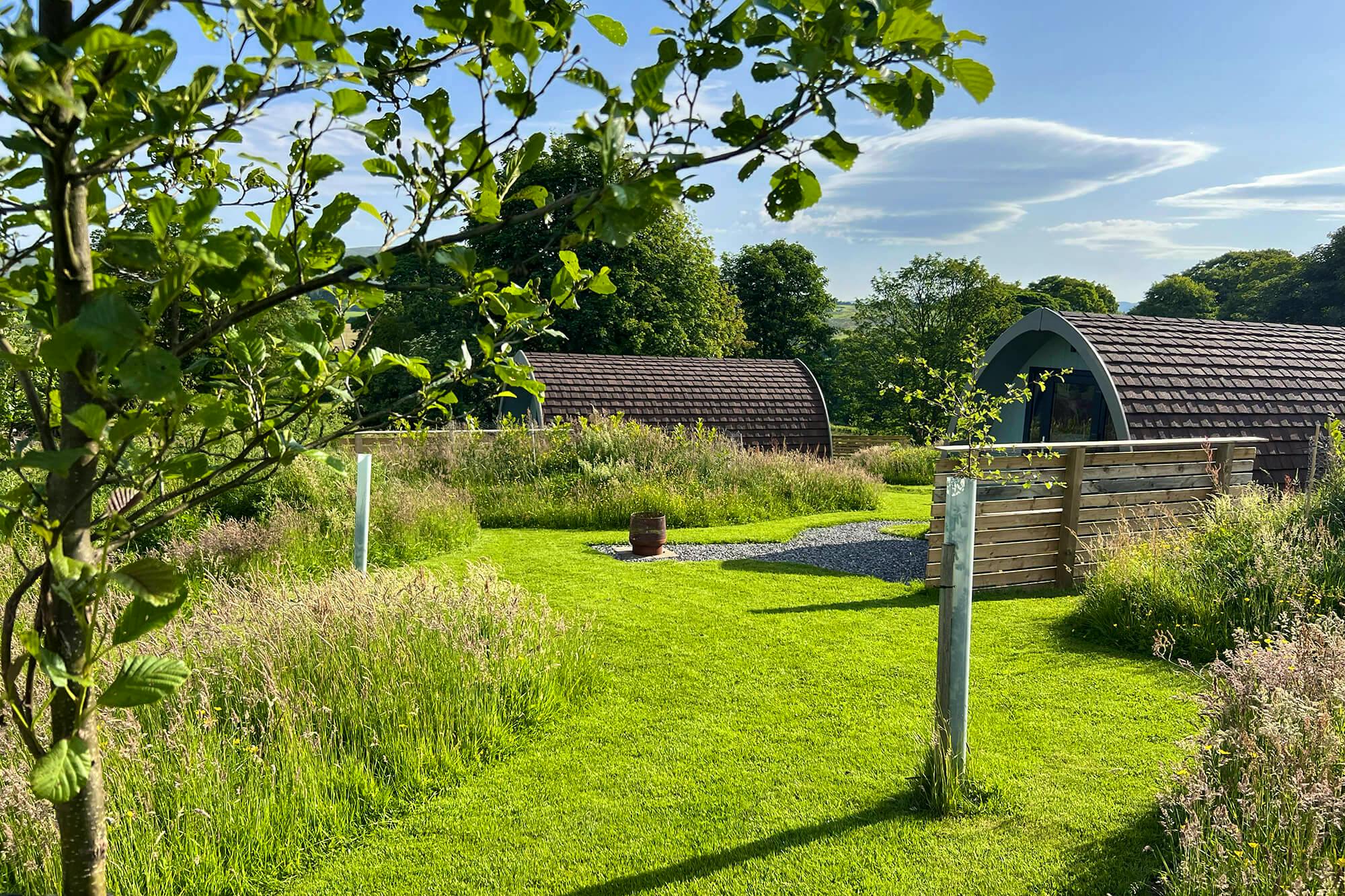 Peaceful glamping pods on a working sheep farm near Kendal with Lake District and Yorkshire Dales views.