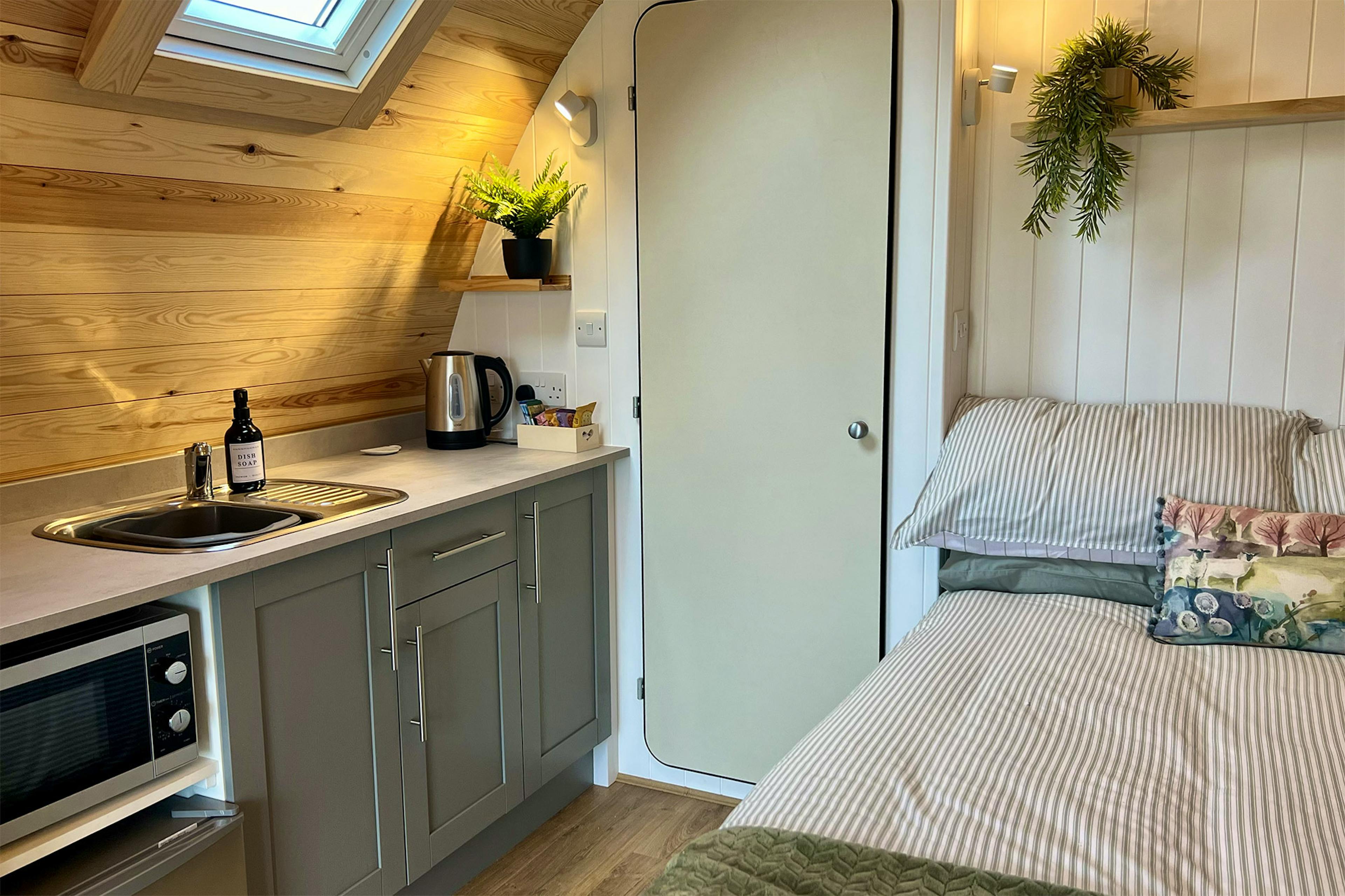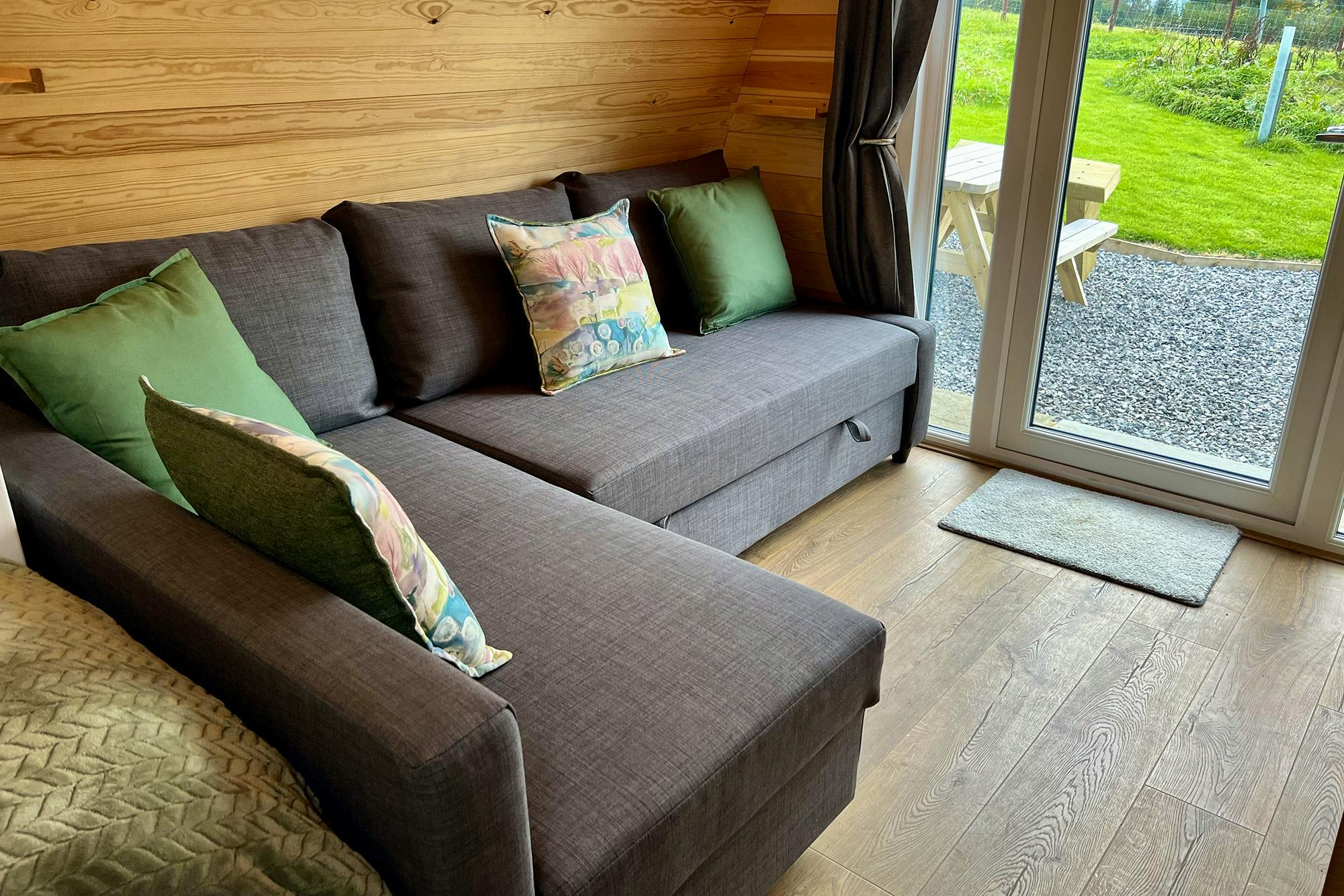 The heated floor was lovely! The pod was immaculate and had everything we needed for a weekend stay. It was easy to find, and the bed was very comfy. The sofa bed was easy to make and collapse, plus the shower was great too. An all round excellent stay - we would love to come back.