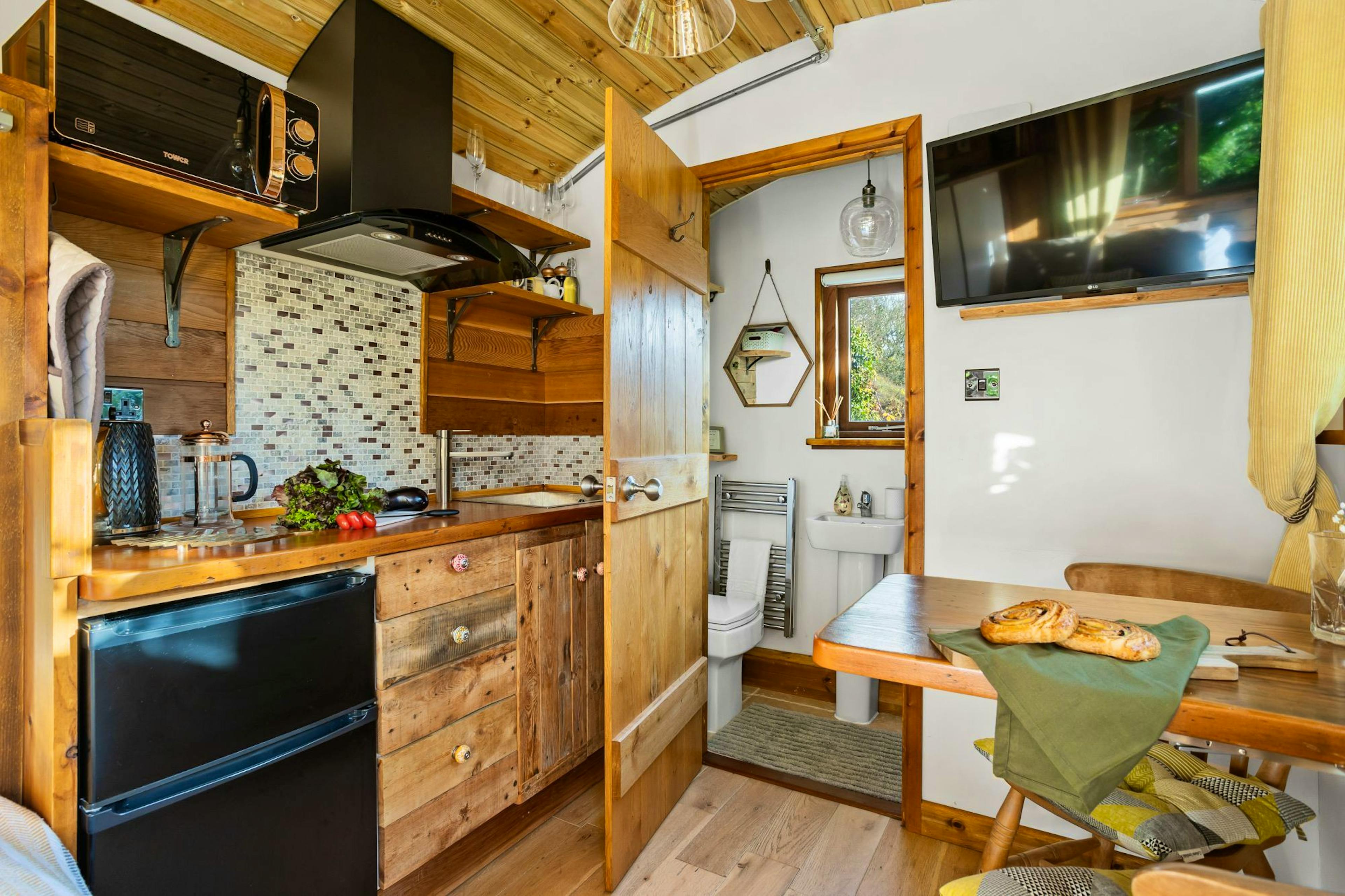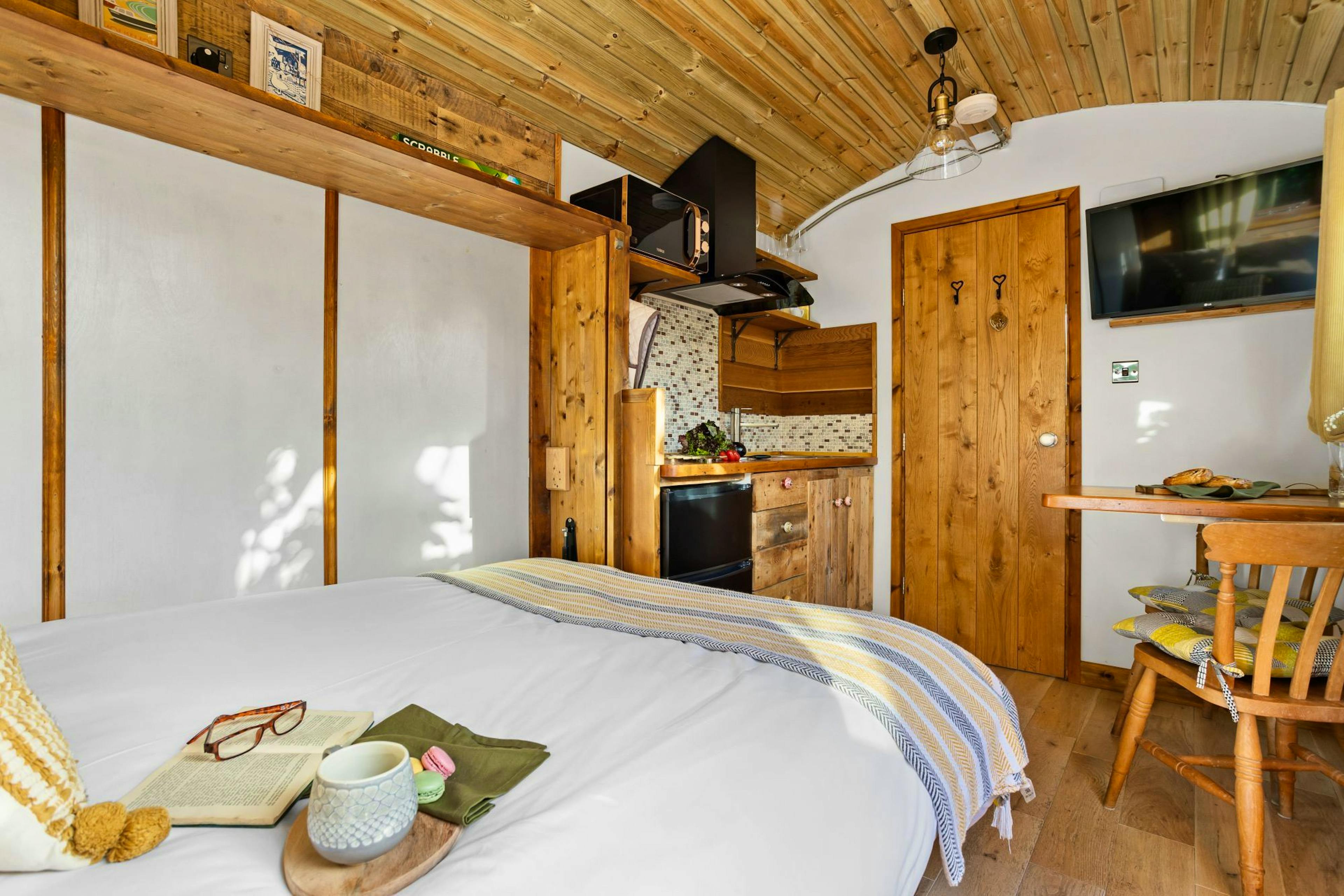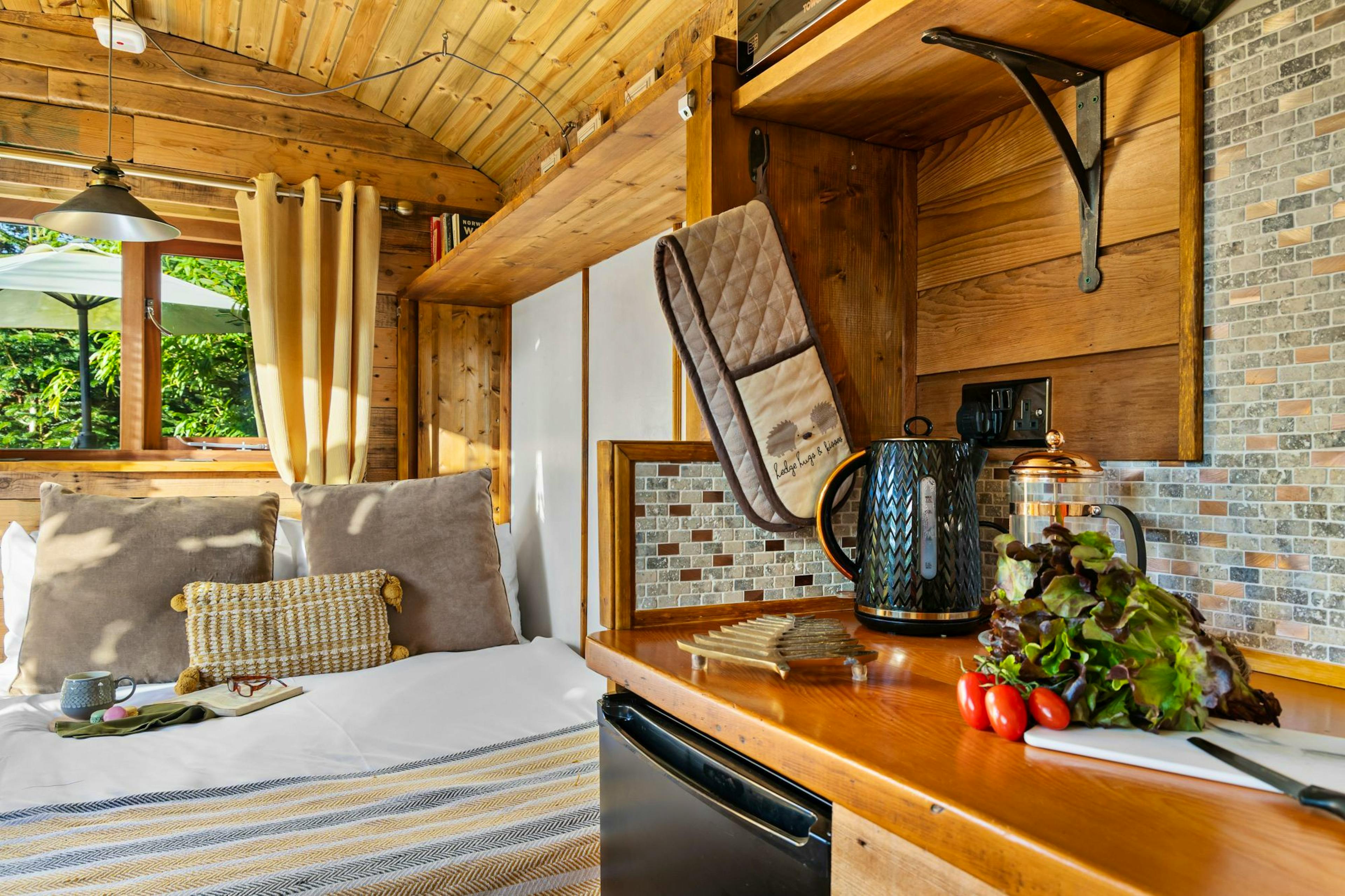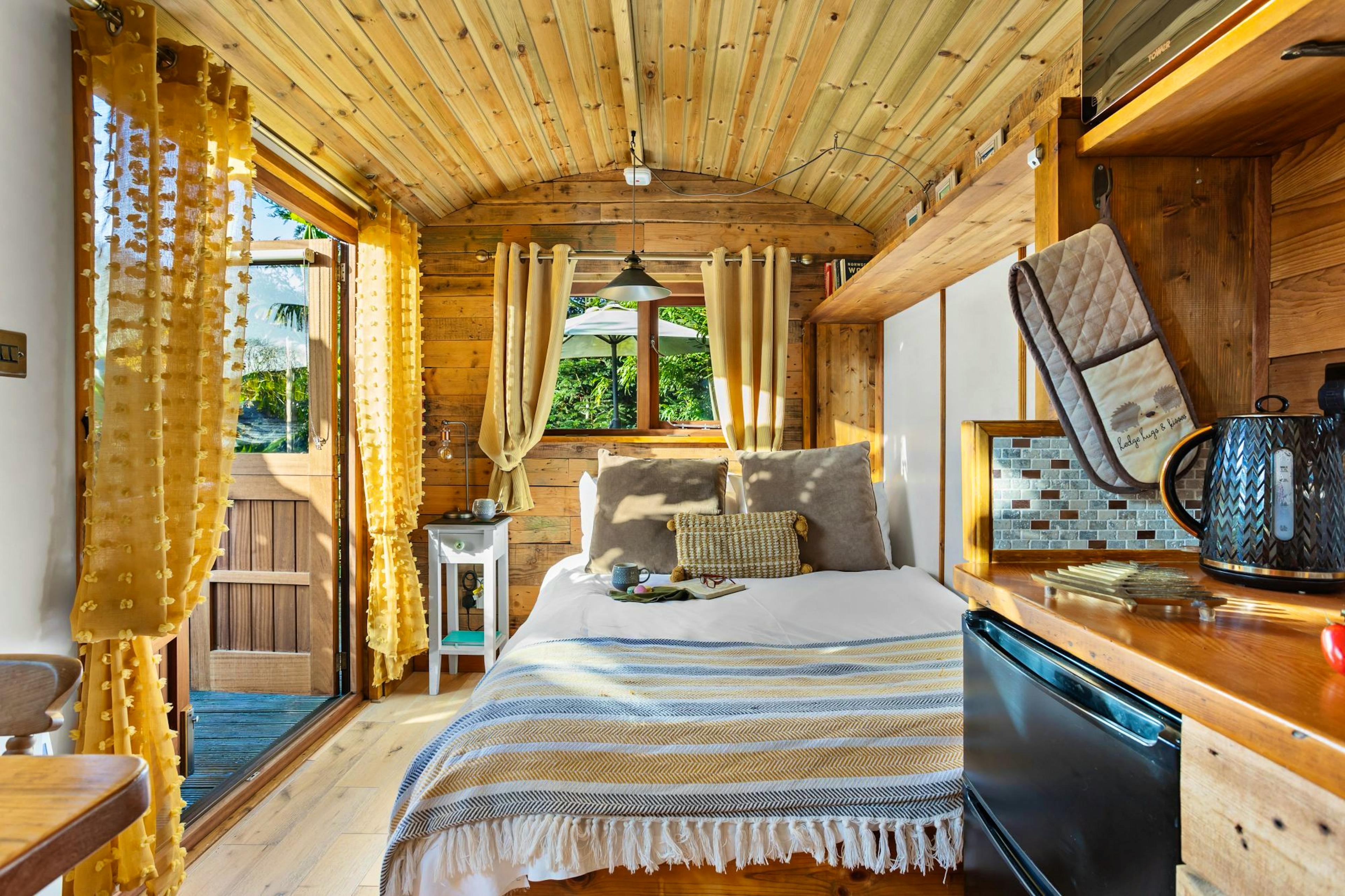 Drift into restful sleep in the cosy double bed, waking to views of greenery and birdsong drifting through the windows.