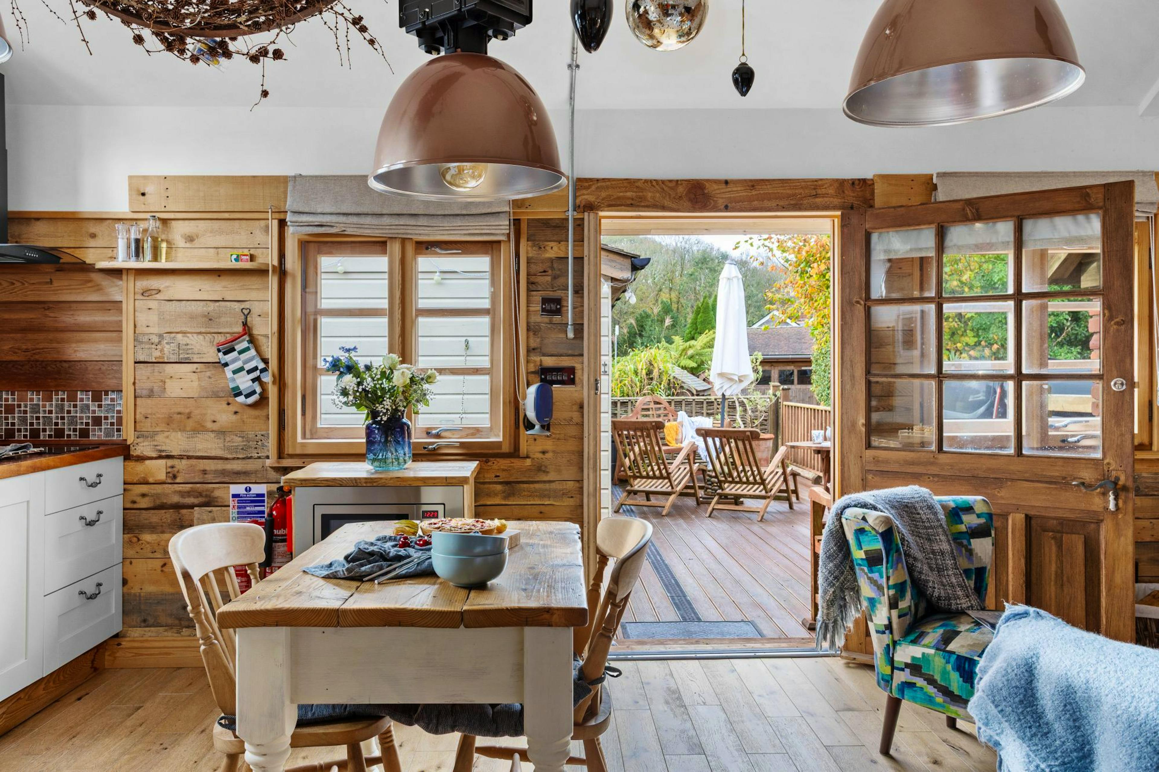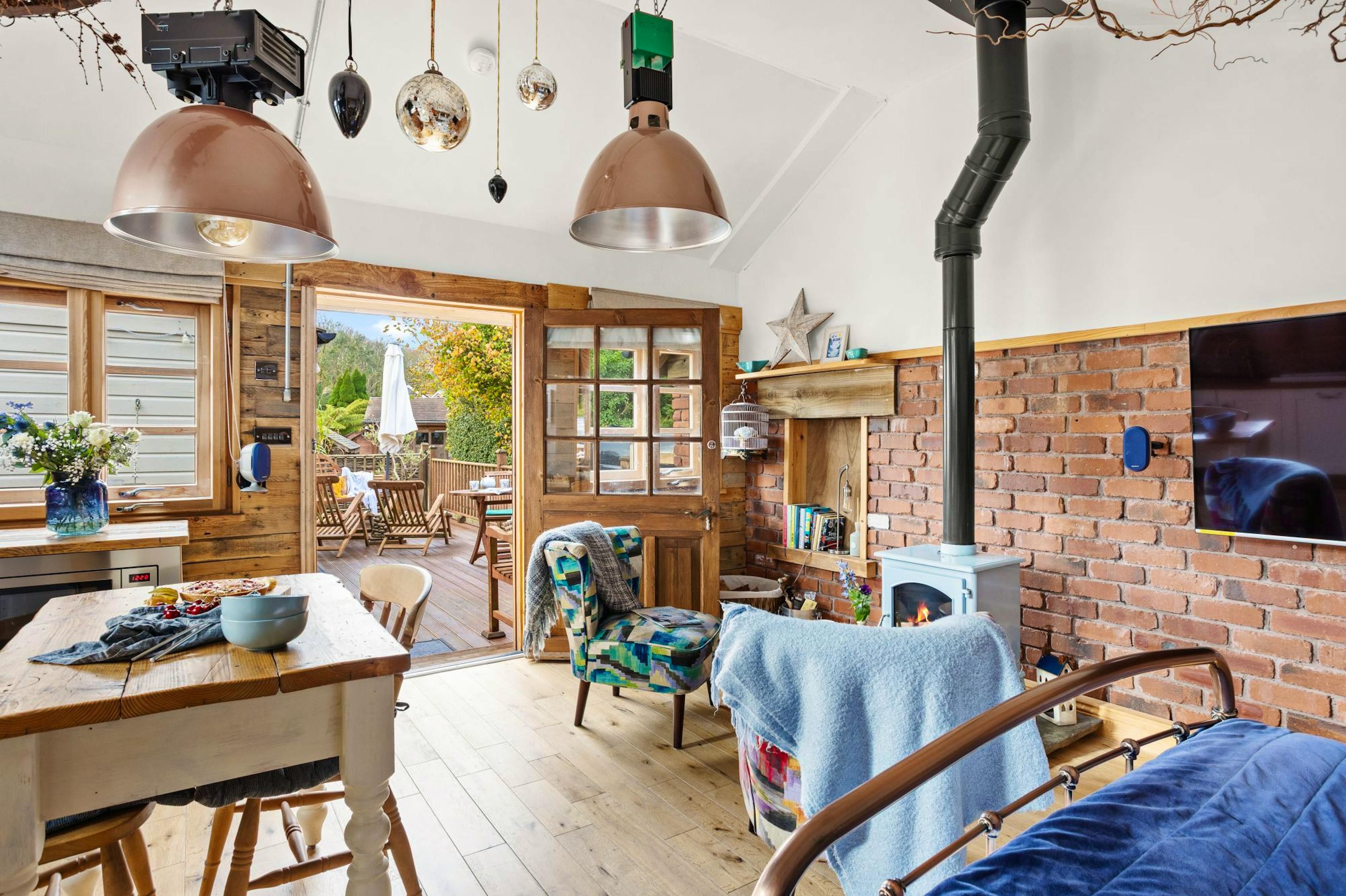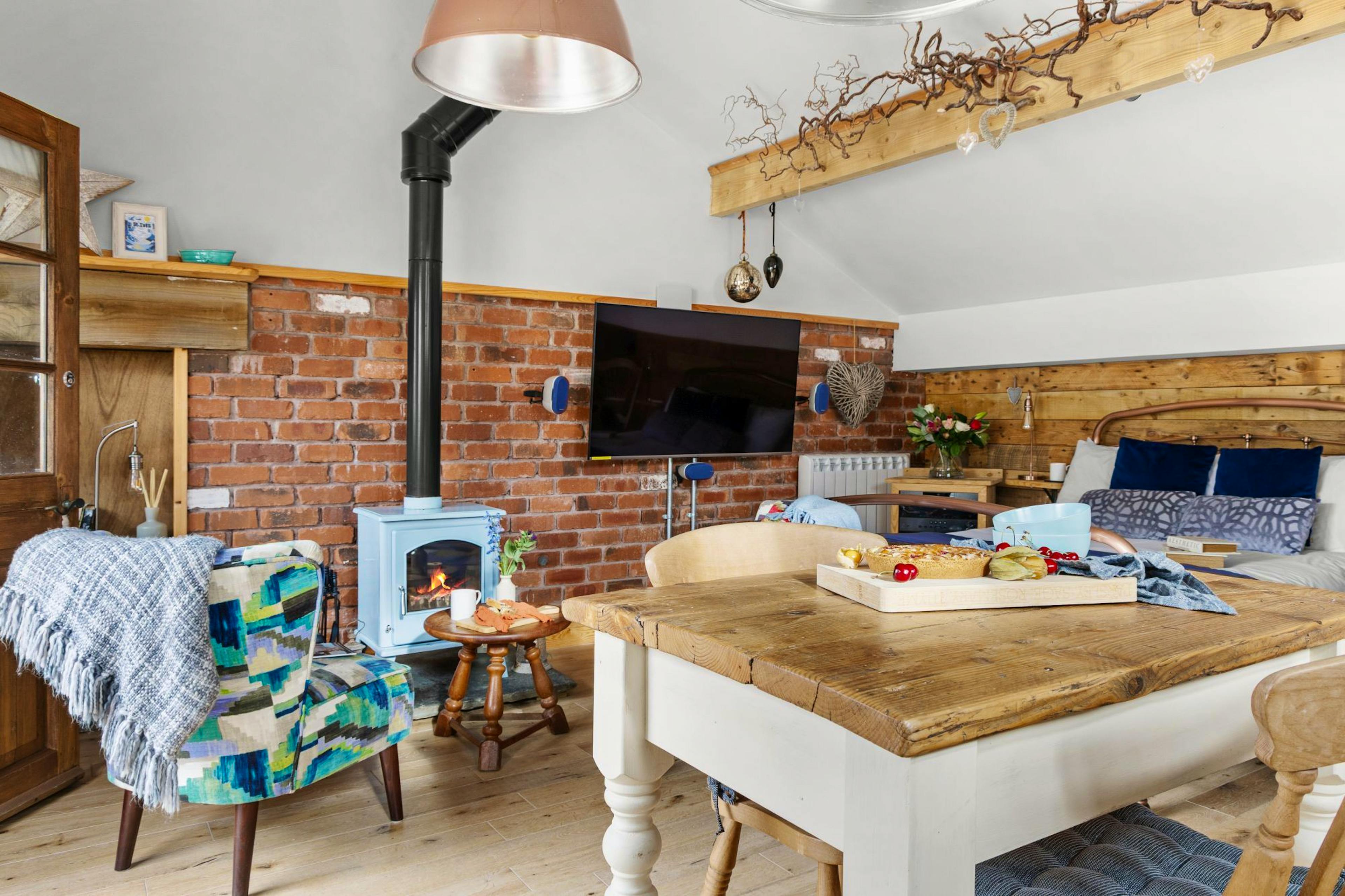 Snuggle into the armchairs beside the glowing log burner as the surround-sound music plays softly and the evening settles in around you.