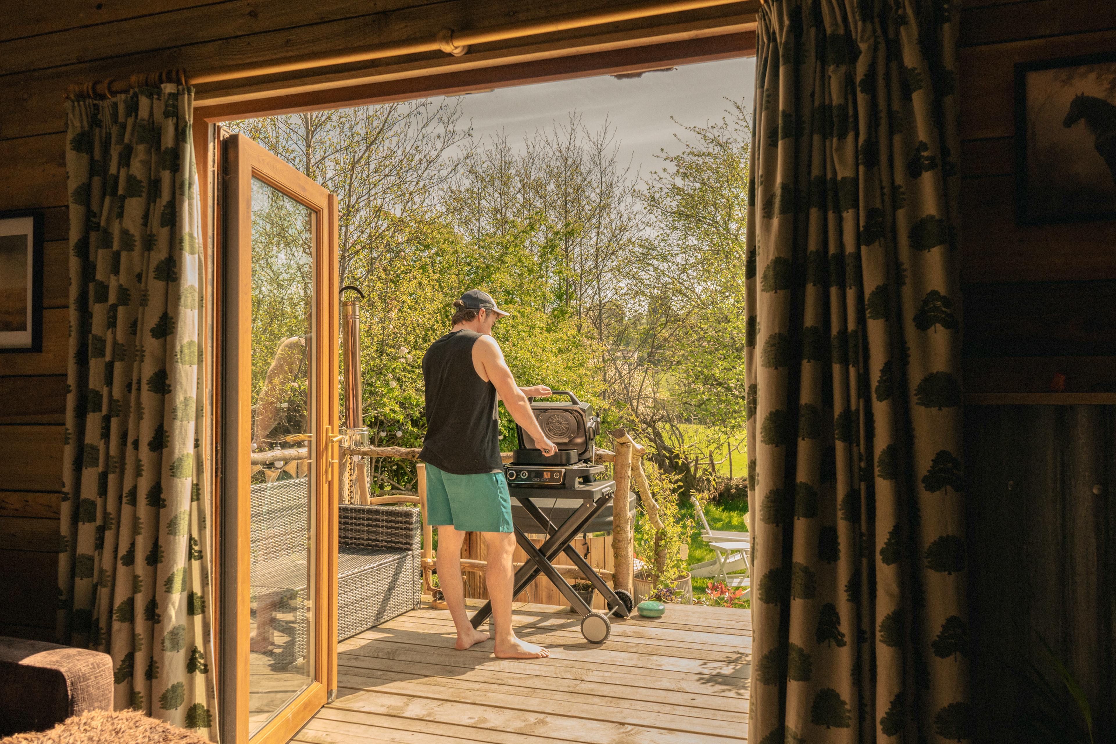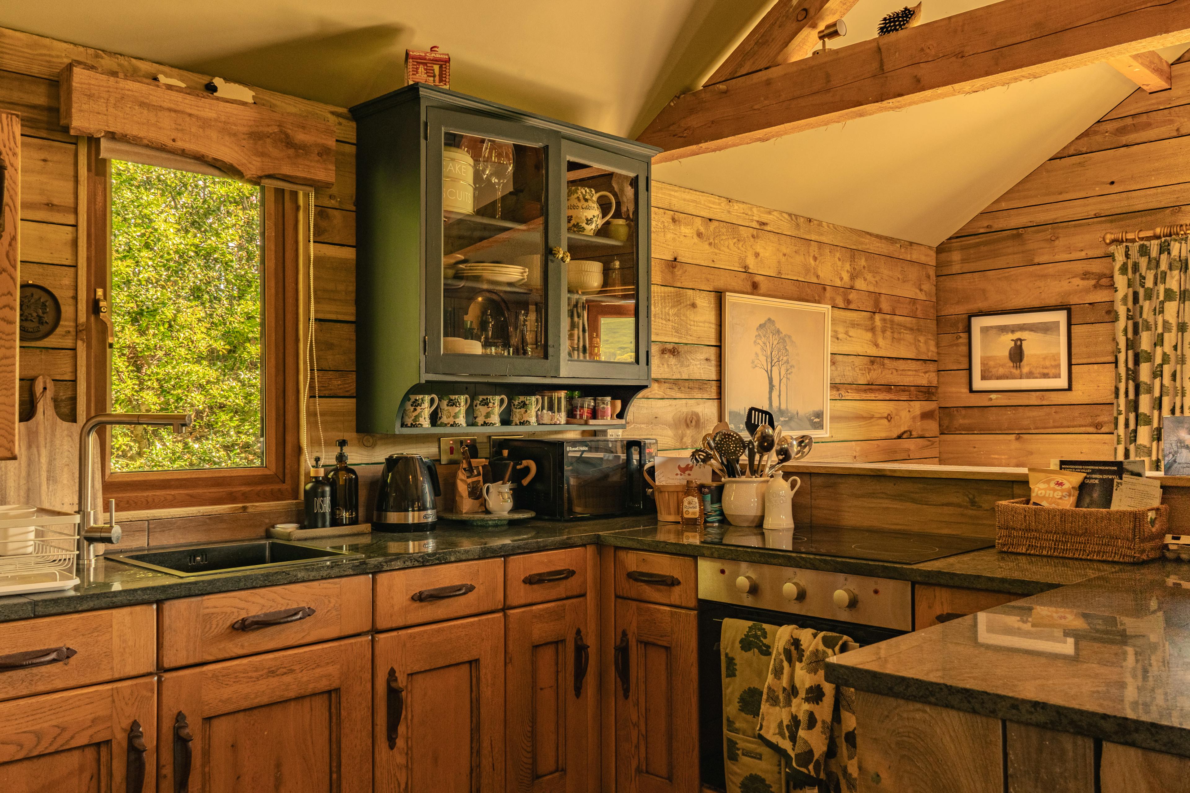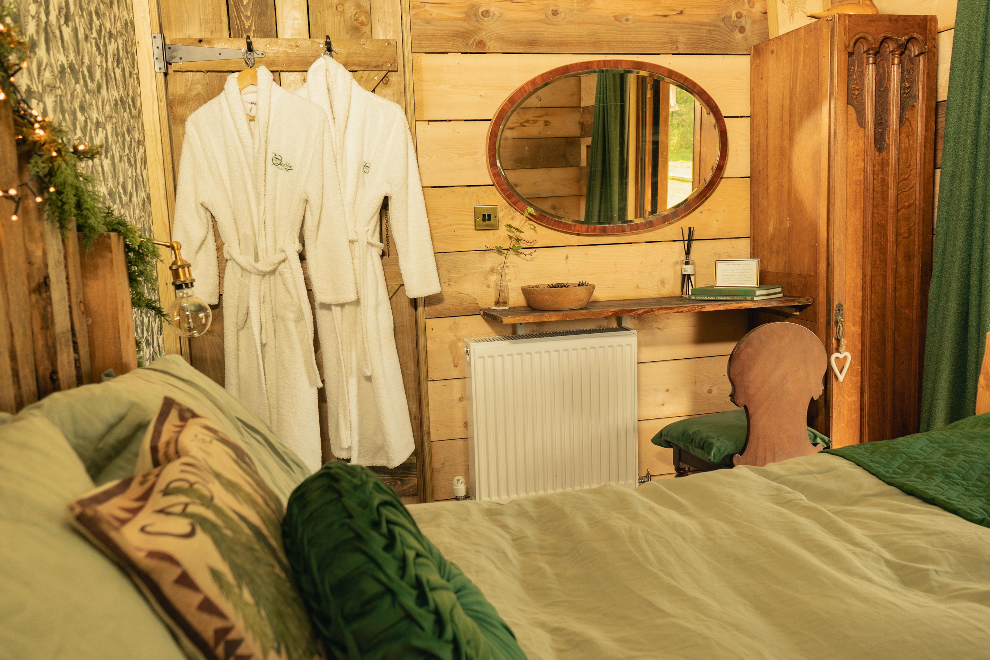 Tucked away in a quiet corner of the Welsh countryside, Quabbs Cabin offers a true sanctuary of peace and privacy. Thoughtfully positioned for maximum seclusion, every window looks out onto a different, captivating view - from rolling hills and ancient ridges to flower-dotted meadows and wandering horses. Whether you're here to reconnect with nature or each other, this little cabin for two is designed to help you relax and unwind in style. Follow the winding path through a leafy orchard until the cabin comes into view - its wooden frame gently emerging from the trees. Climb the steps and onto the wraparound porch, which offers a delightful spot to sit with a morning coffee and take in your surroundings. Then, step inside, and you’ll find that Quabbs offers a warm blend of rustic craftsmanship and quiet luxury. Vaulted ceilings with hand-hewn beams frame the open living space, while a soft, squashy sofa sits ready beside the flickering log burner - perfect for an afternoon reading or an evening chatting with your loved one. If you’re after true indulgence, then you have a few options at your fingertips. There’s a superb free-standing copper bath that promises deep relaxation, allowing you to unwind in the bubbles with a glass of something delicious to accompany you. Or, if you fancy heading outside, the hot tub allows you to stargaze in style with your loved one whilst taking in the surrounding scenery. You also have fluffy towels, monogrammed robes, and handmade, sustainable toiletries to use throughout your stay. Also outside, you’ll find hammocks for lazy mornings and sprawling grass for afternoon picnics. There’s also a firepit with some chairs, where you can enjoy an evening tipple watching golden sunsets that stretch over Graig Hill and Rhos Hill. In winter, the view opens up even more, revealing Offa’s Dyke tracing its ancient path along the distant ridge. Back inside, the kitchen is fully equipped for slow breakfasts and evening feasts alike, whether you’re frying up eggs from the farm shop or opening a bottle to enjoy on the porch. There’s also a BBQ out on the deck, should you wish to grill up some delicious local produce. When night falls, the bedroom has a handcrafted bed dressed in pure linen that faces southwest, offering views across Quabbs Meadow. Every element here has been chosen with care to ensure you enjoy a perfect night’s sleep. If you wish to venture out and explore, the area around Knighton, Powys is a haven for outdoor lovers, offering a rich mix of walking and cycling routes. With 32 dedicated cycling trails and access to the National Cycle Network, it's a designated Cycle Break Centre known for scenic day rides. Walkers are spoilt too - Knighton is the only place in Wales where two National Trails meet: Offa’s Dyke Path and Glynd?r’s Way. For more adventure, explore the Shropshire Hills, Long Mynd or the rugged beauty of the Stiperstones.