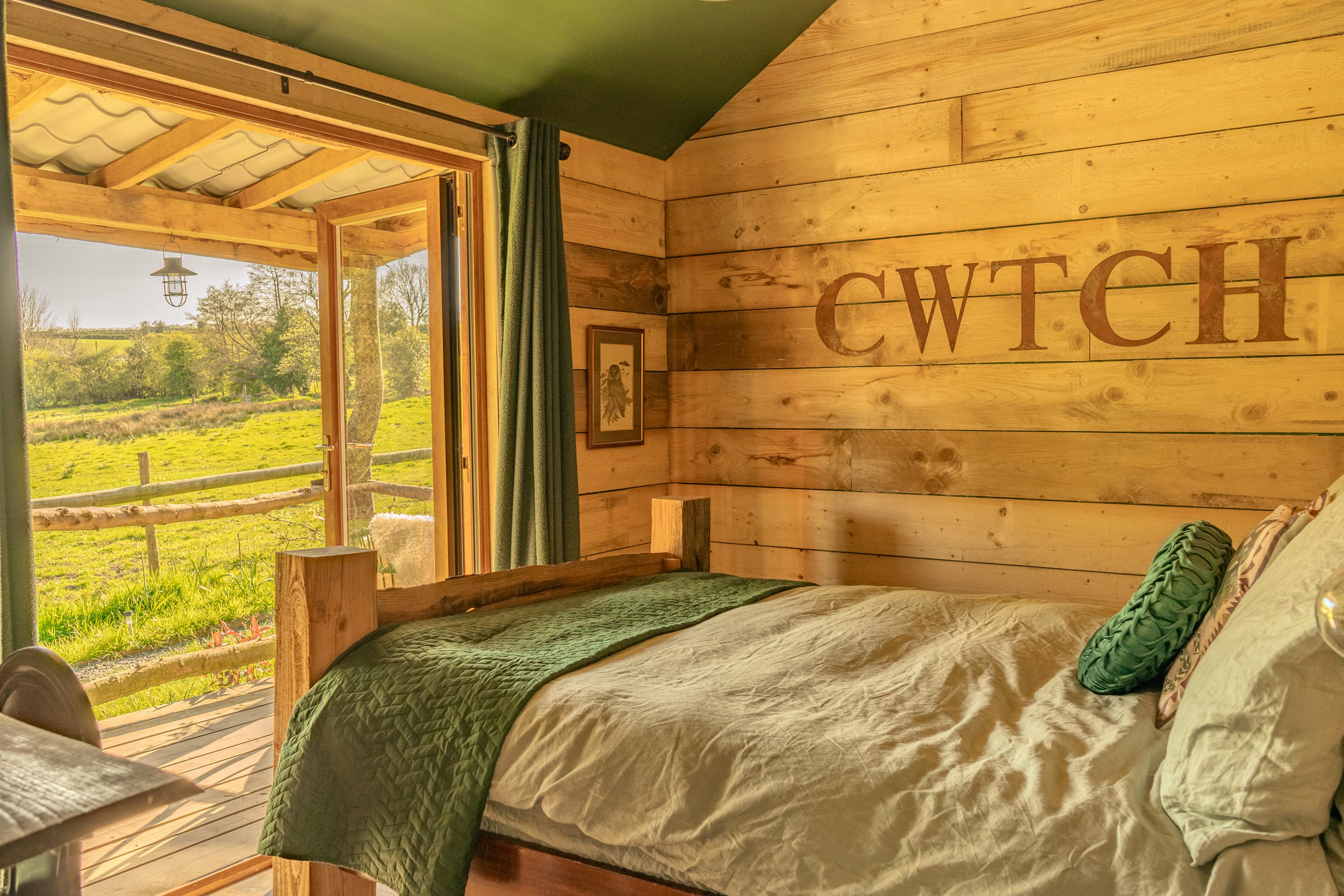 Secluded, romantic cabin for two, nestled in the Welsh countryside with breathtaking views from every window – from wildflower meadows to ancient ridgelines.