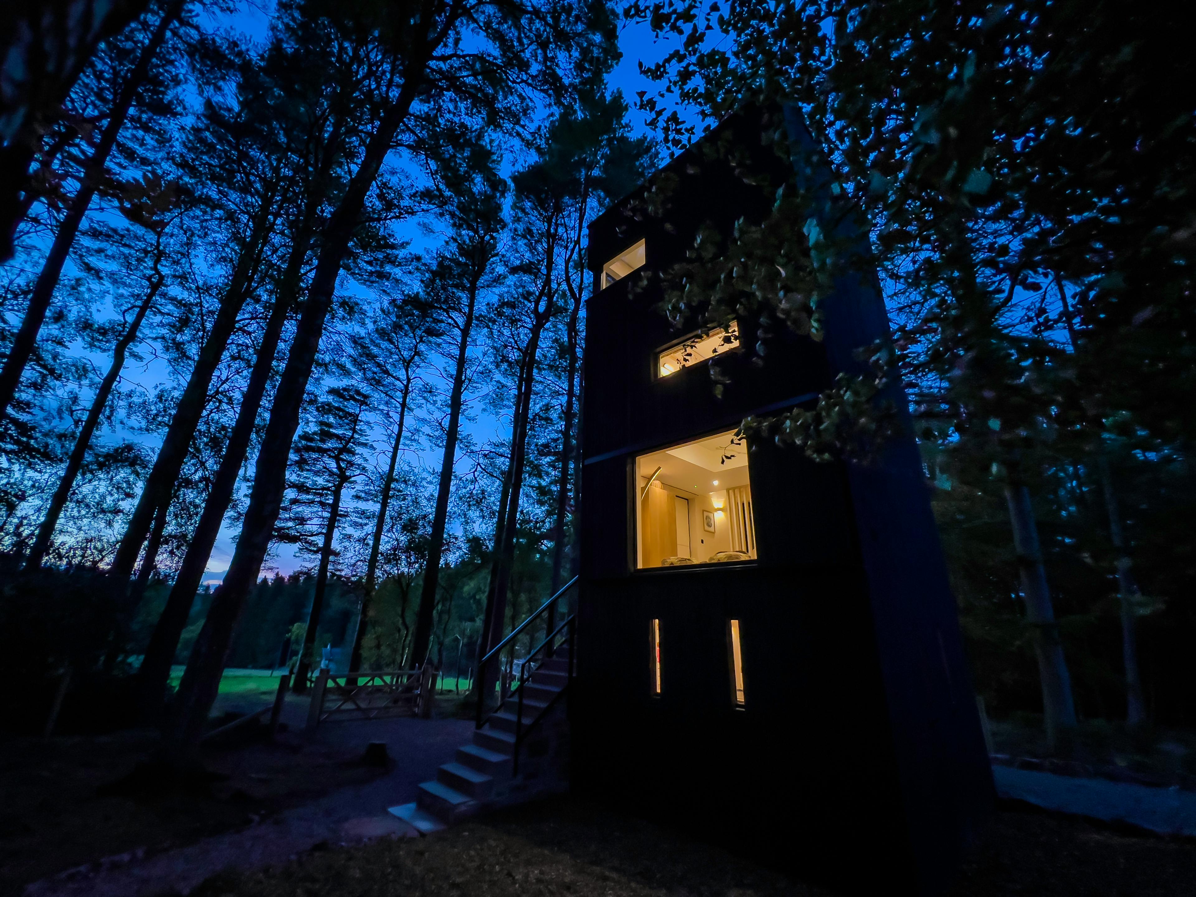 Raven watchtower gives you the opportunity to be Lord or Lady of your own castle, immersed in the spectacular wildness of Northumberland and surrounded by nature. Escape the rat race and switch off with just the sounds of wildlife to relax you and views of the Milky Way from your own private battlement. You can enjoy the simple life without compromising on luxury. Climb the stone steps and enter the cosy lounge where you’ll find comfy seating, furry wraps and a rustic wood burning stove. Wallow in nostalgia by spinning a record on the record player and indulging in a cocktail from the drinks cabinet. Windows overlook the pine and birch woods around you making this the perfect location to snuggle up with a hot drink and watch out for deer among the trees. The kitchen with its island seating area contains everything you need to rustle up a delicious meal, including a gas hob, oven and grill, fridge, kitchen sink and dishwasher, but you might prefer to really connect with nature by cooking on the firepit outside. You’ll feel like you’ve stepped back in time but with all mod cons. There are even marshmallows and treats for both you and your canine companion! The bedroom is bright, fresh and spacious and boasts a king size bed, luxury mattress and fine Egyptian cotton bedding. With idyllic forest views by day and the soft hooting of owls at night, it doesn’t get more relaxing than this. The modern bathroom is dominated by a huge, hand-crafted wooden bathtub for a soak with a difference. Lie back, press a button and watch the stargazing roof retract revealing the protected night sky. Romantic, dramatic, luxurious, a truly unique and memorable experience. There is also a shower room, flushing loo, fluffy towels and complimentary toiletries for your convenience. A telescope and stargazing kit are provided to help with your star spotting. By day, sit on the surveying deck and greet the sunrise bathing the North Tyne Valley whilst enjoying freshly ground coffee. From the Roman ruins of Hadrian’s Wall, 20 minutes’ drive away, and magnificent historic houses and gardens dotted around the county, to the spectacular scenery of the Northumberland coastline and the world-renowned Dark Skies at the Kielder Observatory, 30 minutes away, there are a multitude of places to discover, all within easy reach of Raven for those looking to venture out and discover what Northumberland has to offer. If you’re feeling more adventurous you will find fishing, cycling and numerous other activities on offer too.