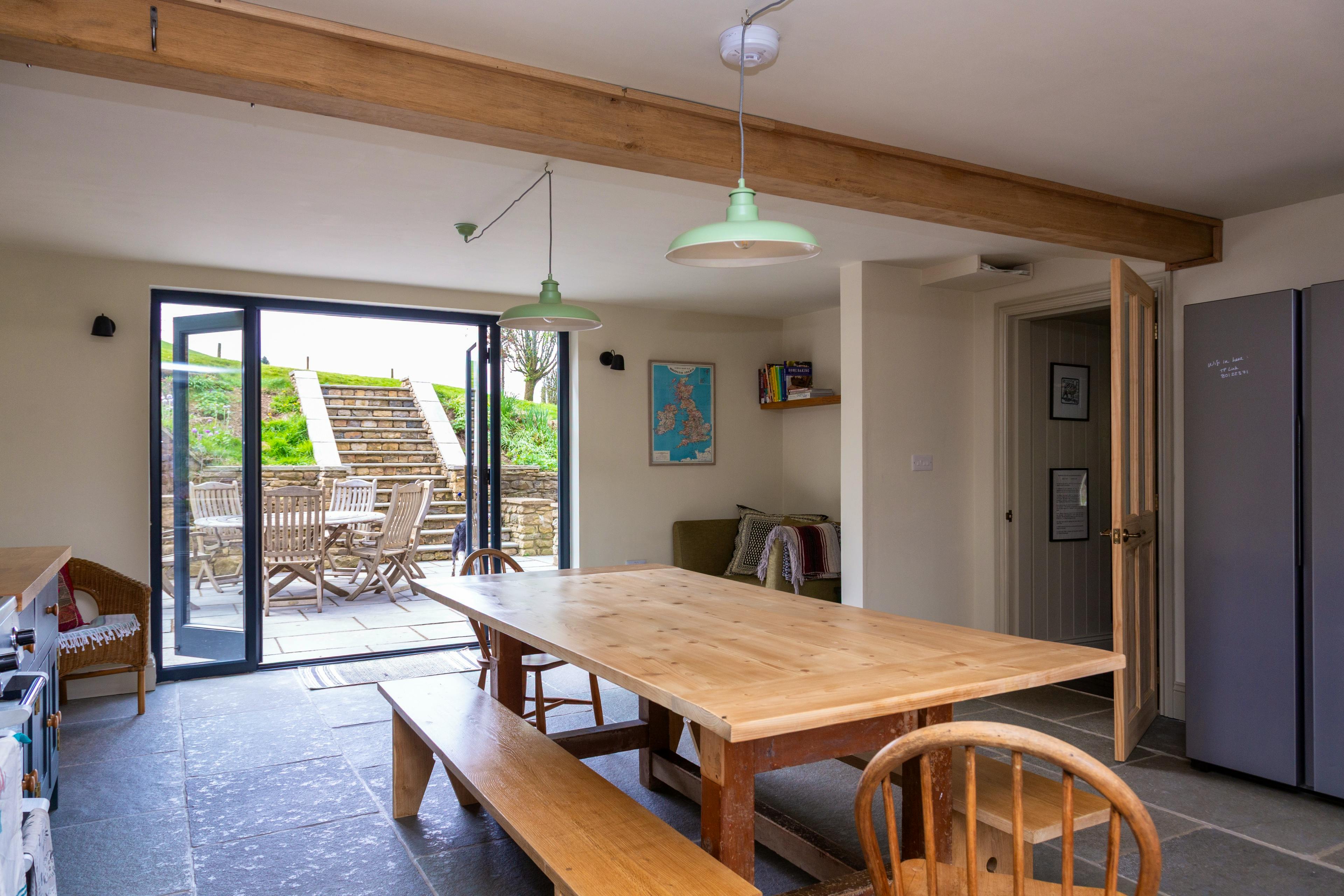 Nestled amidst sweeping green hills and meadows that stretch for miles, this idyllic country hideaway offers a dreamy escape for families and friends seeking peace, space and connection. Wake each morning to birdsong and soft light spilling across the valley, before stepping outside to breathe in the crisp Cumbrian air. This is the kind of place where time slows down — where you can gather, rest and savour life’s simple pleasures. Inside, the house has been beautifully designed to blend rustic charm with modern comfort. The heart of the home is the spacious kitchen-diner — a wonderfully social space centred around a farmhouse table handmade from reclaimed scaffold boards. Here, you can cook hearty breakfasts on the range cooker, chat over coffee as sunlight pours through the French doors, and later throw them open for long alfresco lunches on the sun-soaked patio. After a day exploring the hills or wandering through nearby woodlands, sink into the large sofa in the main sitting room as the wood burner crackles beside you. There’s even an upright piano waiting to be played — the perfect touch for cosy evenings together. For quieter moments, retreat to the snug with its comfy sofa and TV, ideal for a lazy afternoon film or a sneaky nap. Upstairs, three lovely double bedrooms promise restful nights under soft duvets, with the master boasting an ensuite shower room and space for a cot if you’re travelling with little ones. The other two bedrooms share a generous family bathroom with both a separate bath and shower, making it perfect for families. Step outside and you’ll find a spacious patio nestled into the hillside — a sheltered suntrap that warms beautifully in summer. With its walled edges and sweeping views of the fells, it’s a magical spot for morning coffee or evening wine as the sun dips behind the hills. Beyond lie two acres of gardens and woodland, inviting children to roam and dogs to explore. From your doorstep, the Cautley Spout waterfall and the vast Howgill Fells beckon. Whether hiking, cycling or simply meandering through lush meadows, there’s adventure all around. Or head into nearby Sedbergh to browse independent shops, grab a pub lunch or discover the area’s literary charm — then return to your hillside haven to watch the stars appear over the valley.