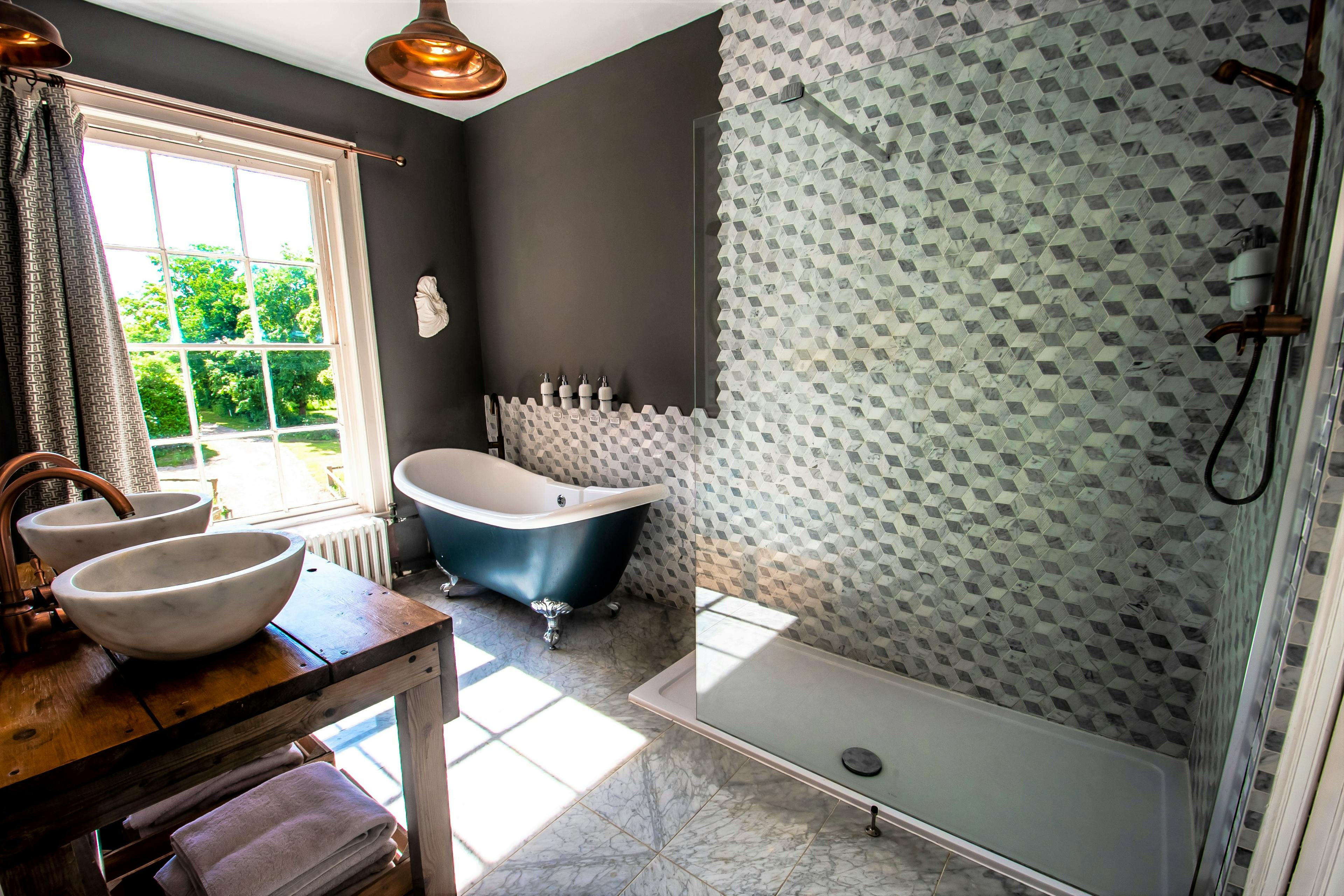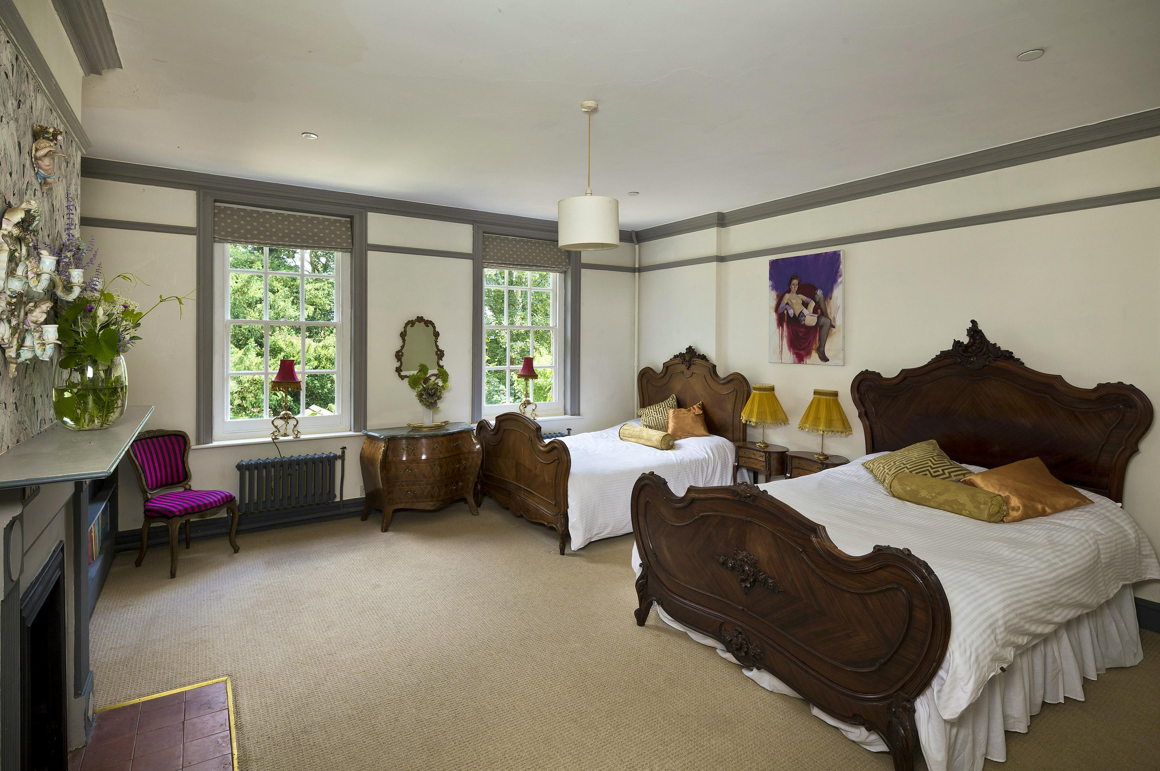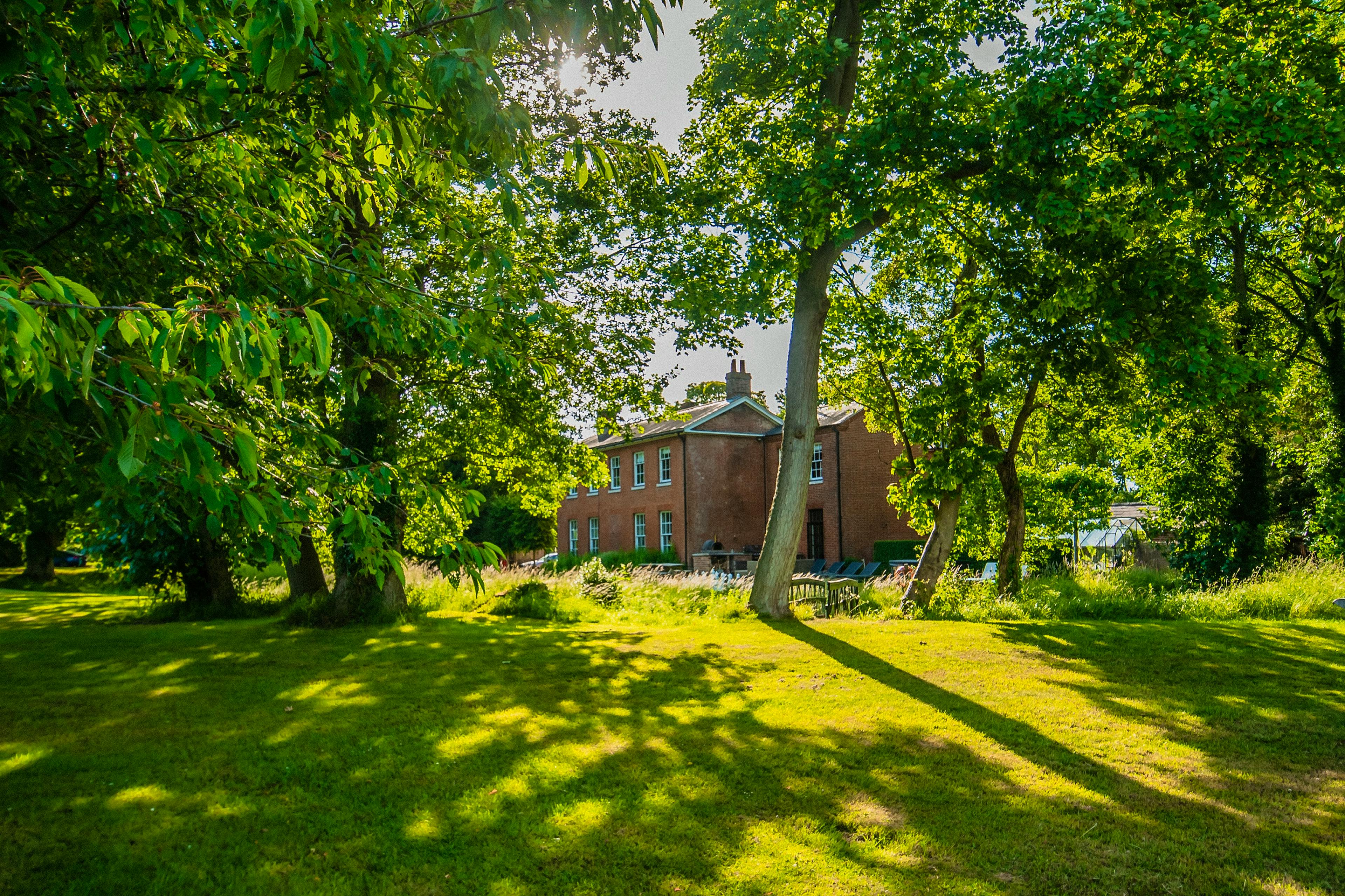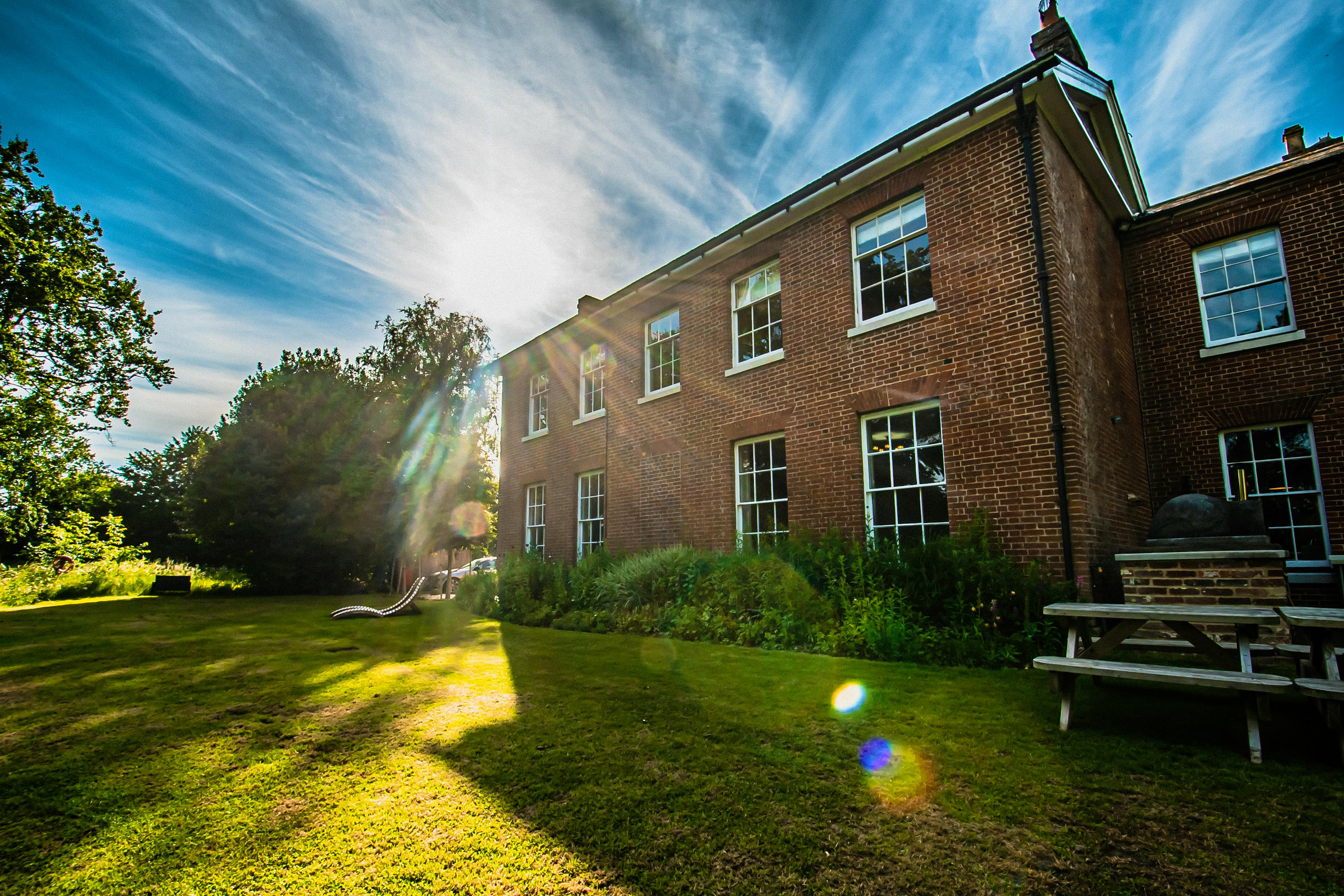 Grand, moated manor house in its own private estate in the Suffolk countryside with hot tub, stylish interiors, and spacious gardens.