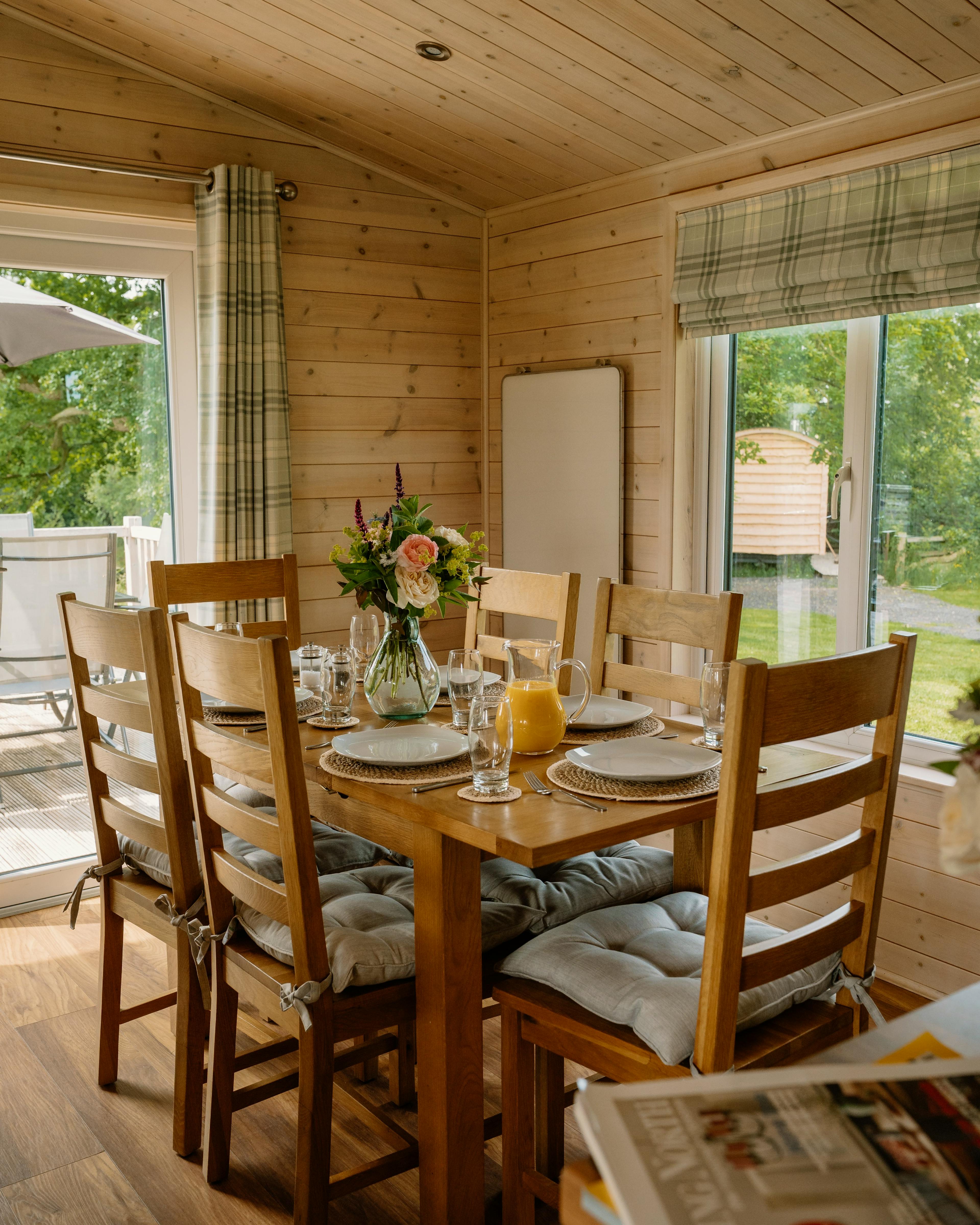 Luxurious riverside lodges in North Yorkshire offering stylish seclusion, scenic views and a wood-fired sauna experience.