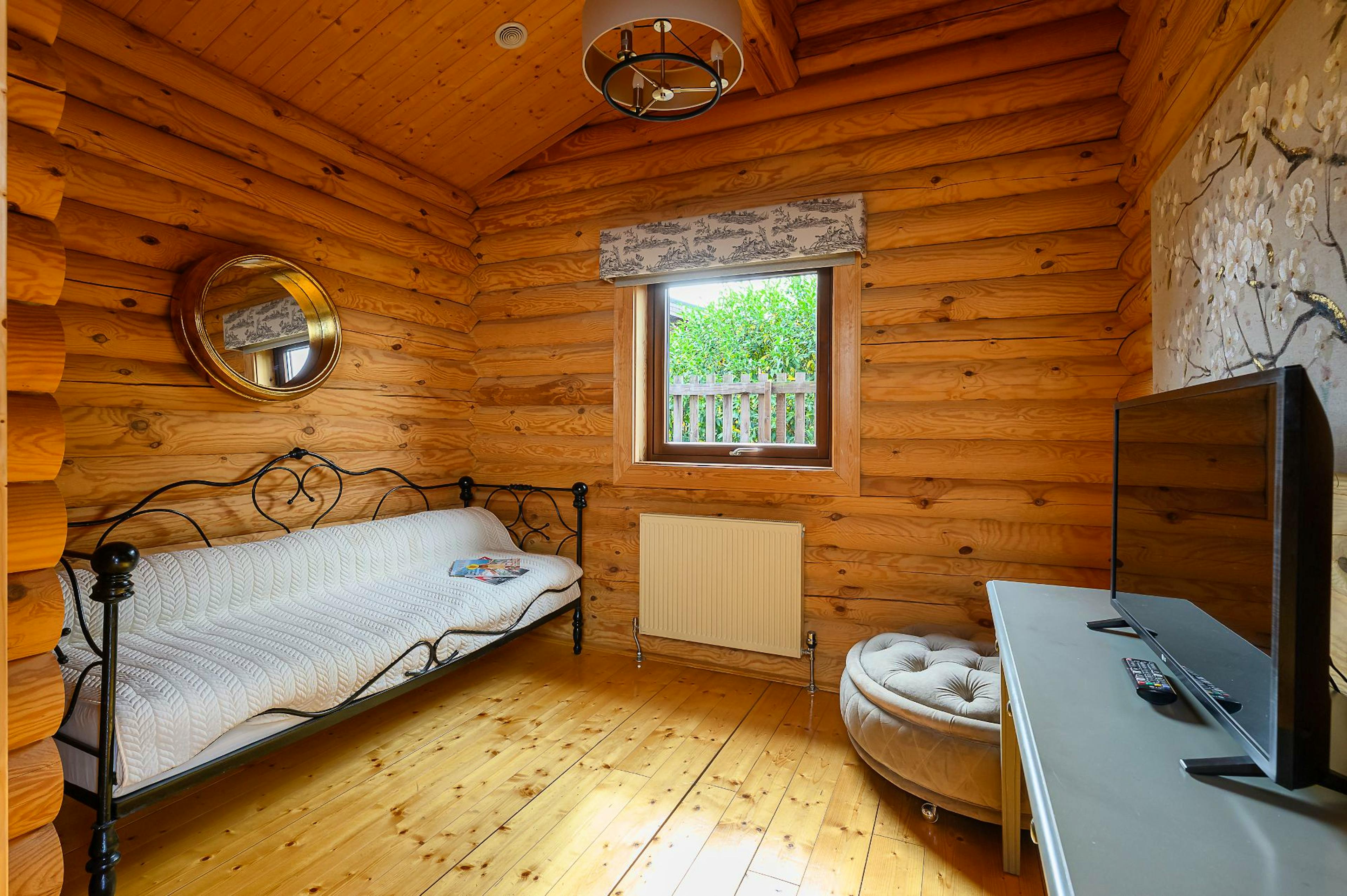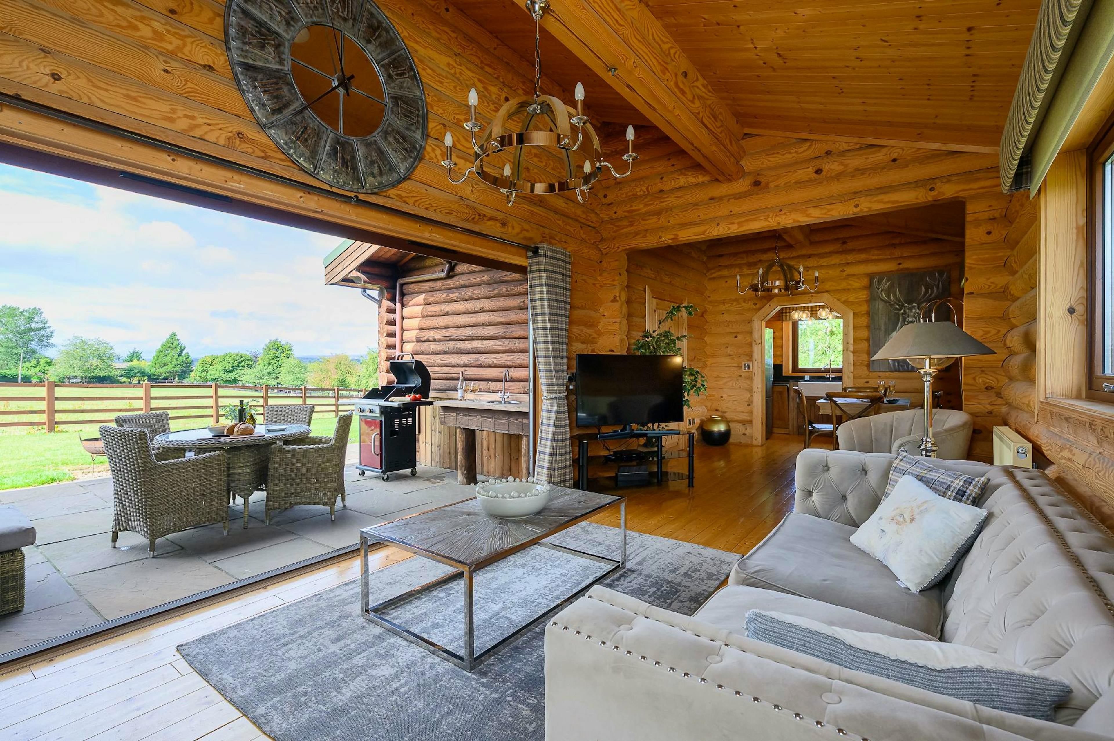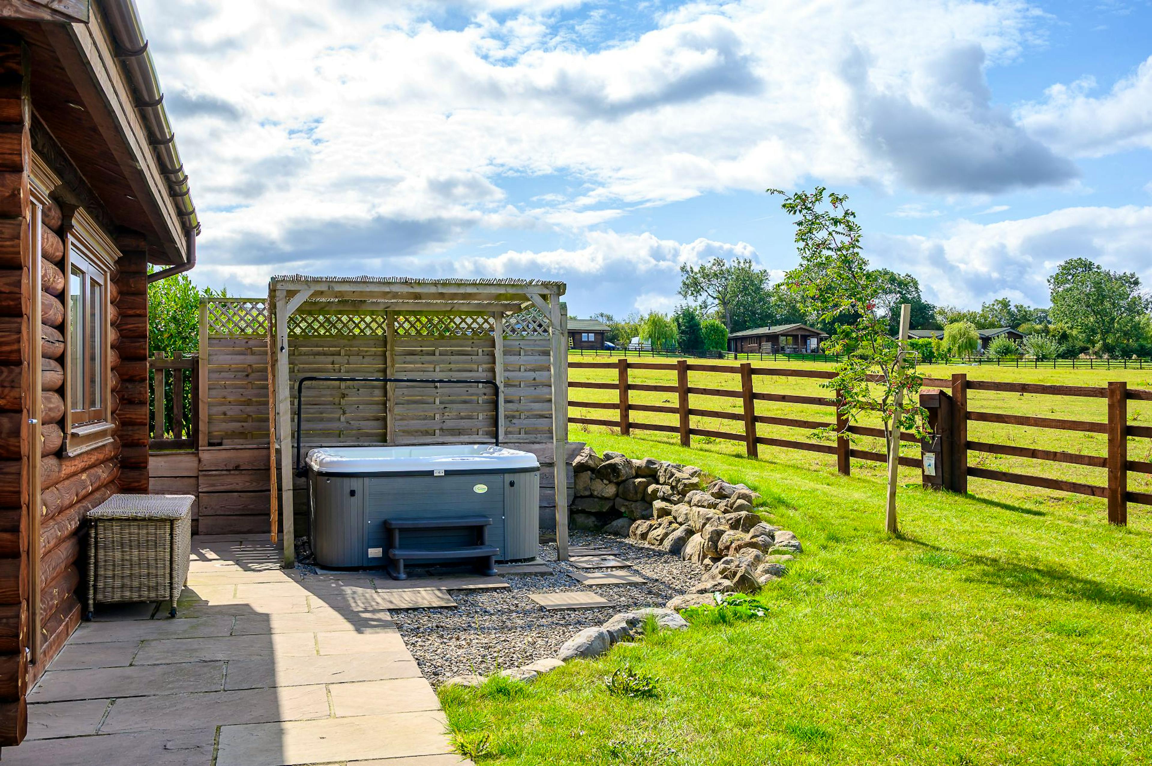 One-bedroom luxury lodge with private hot tub, infrared sauna and large enclosed garden offering uninterrupted views of the North Yorkshire countryside.