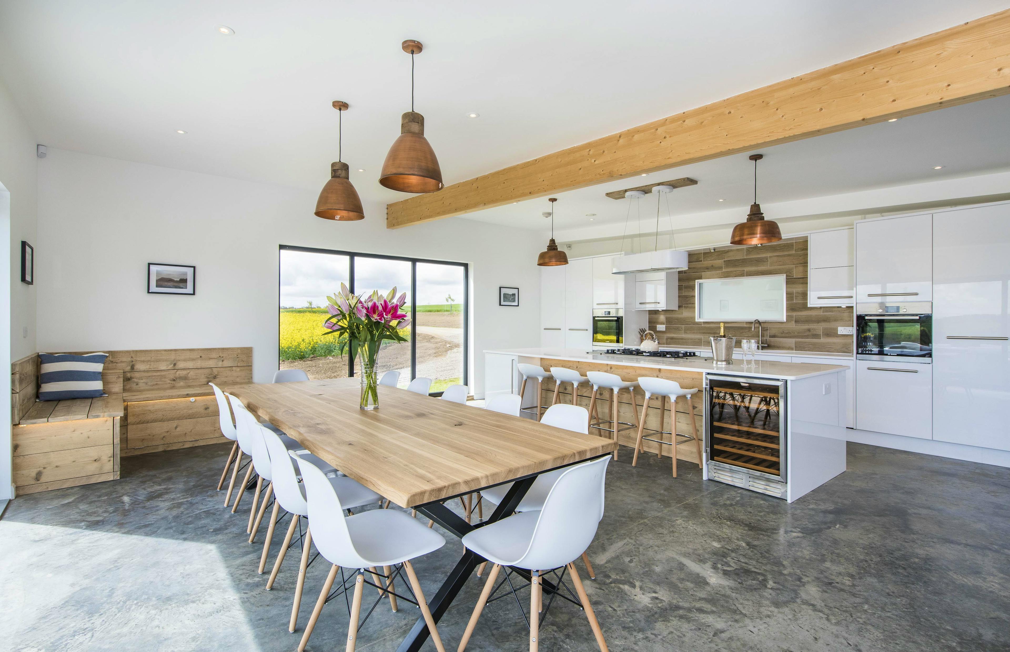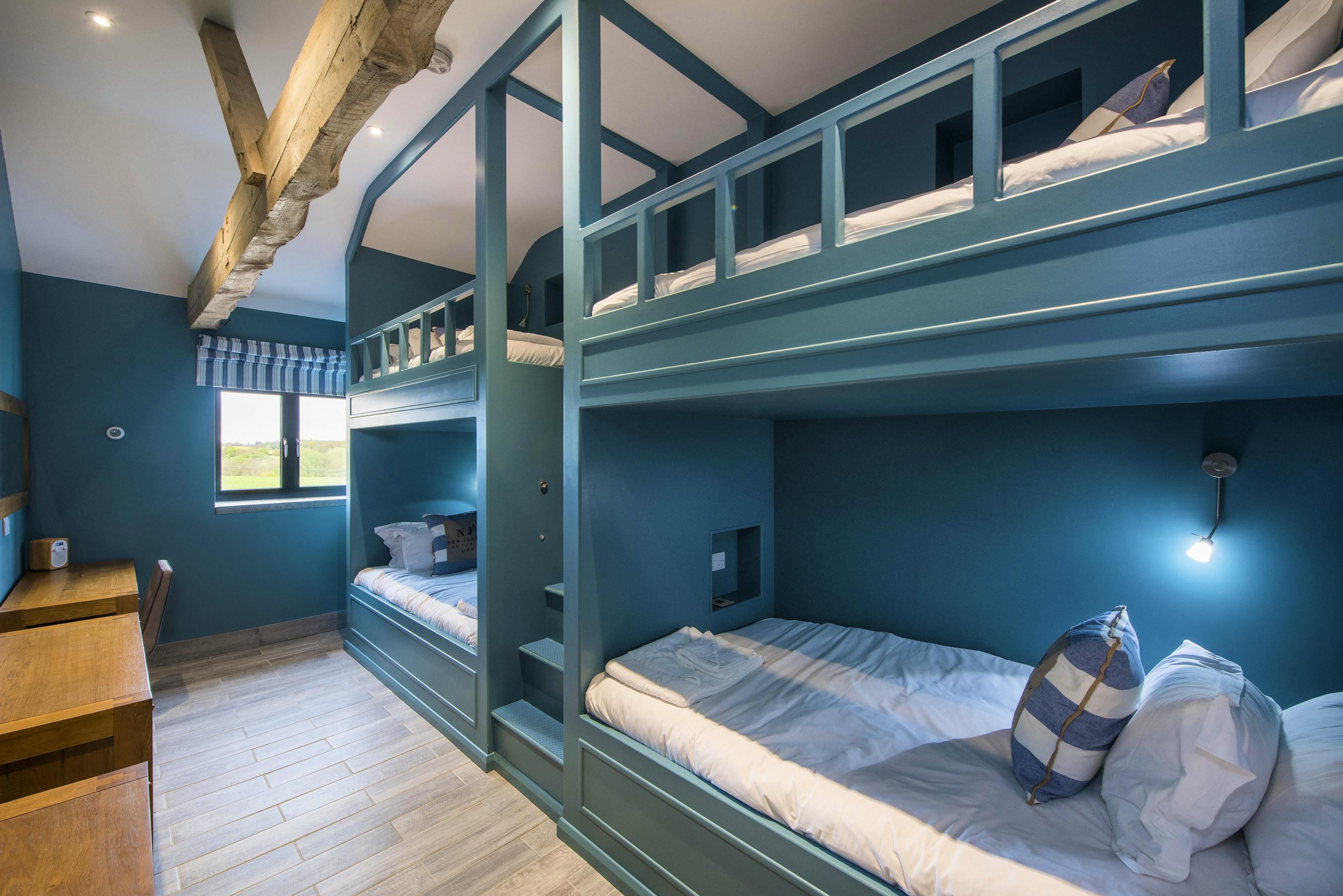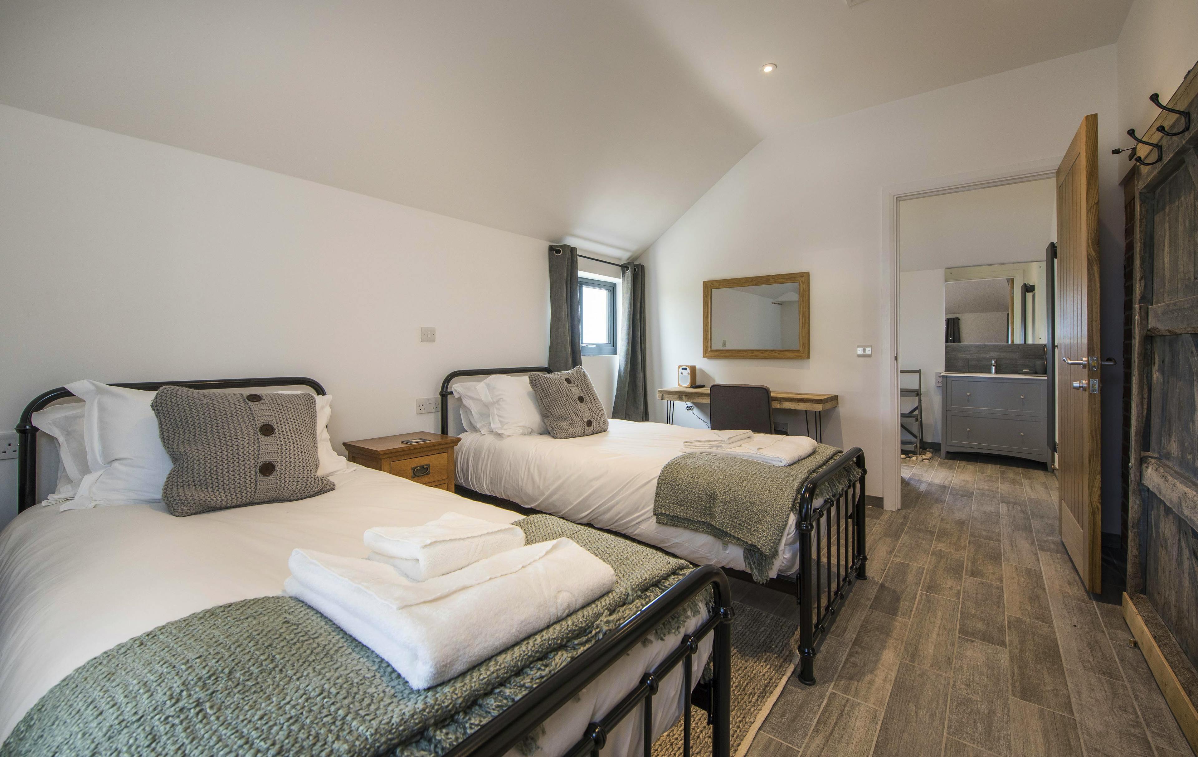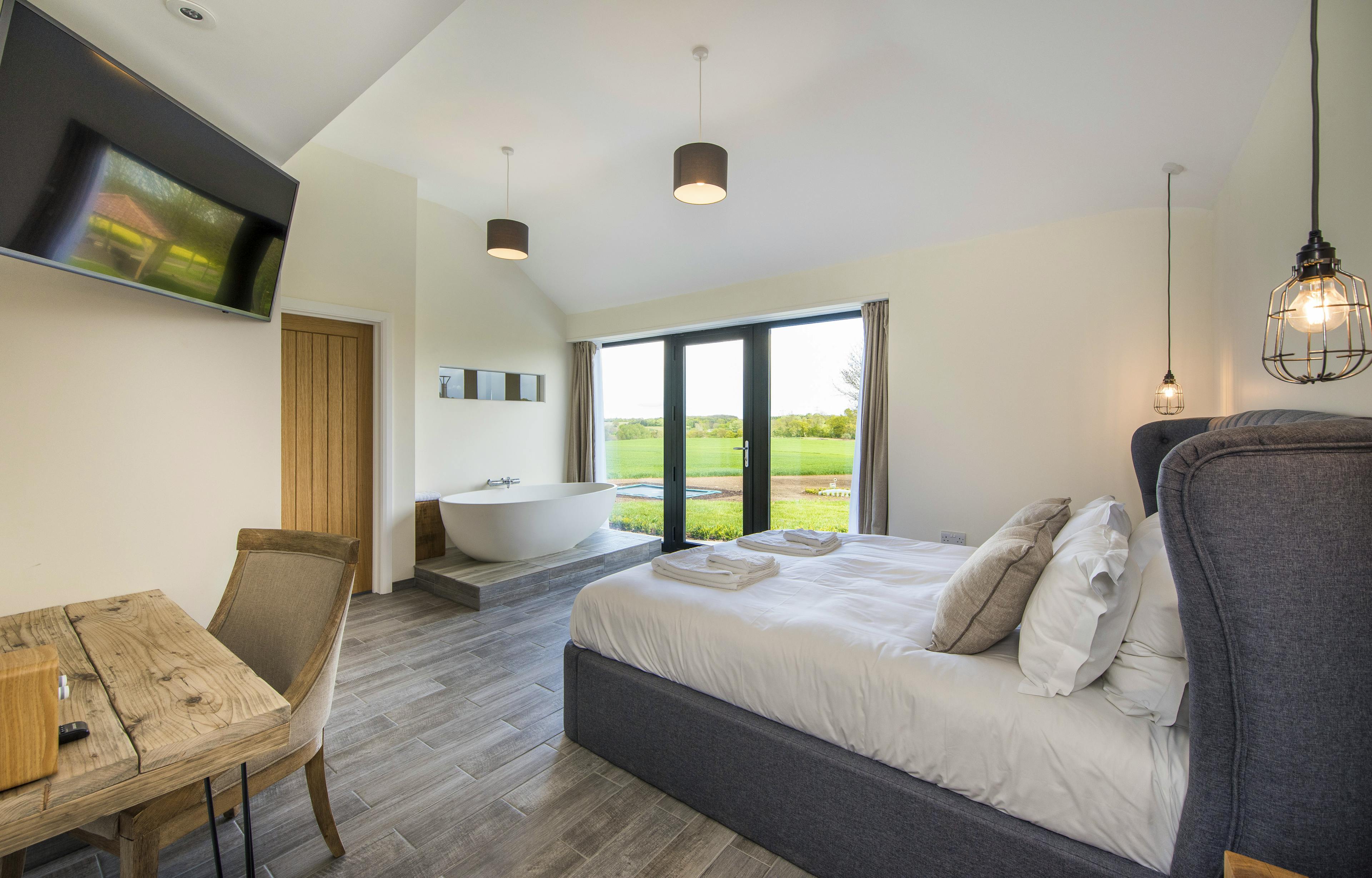 This spectacular barn is situated in a peaceful, rural location, one mile off the road and is surrounded by luscious fields and woodlands under the expansive blue Suffolk sky. Sheepyard Barn is a luxurious modern sanctuary, the perfect place to unwind, relax and spend precious moments with friends and family. There is something for everyone to enjoy, the kids will love the 'Sheep Dip' swimming pool, which even has a Fastlane counter-current machine. It is situated at the heart of the home and is accessible from the lounge, but adults can keep an eye on the fun through handy windows in the kitchen and hallway. The games room will also prove popular giving the young ones space to game, watch and chill while the grown-ups can enjoy late-night drinks in the hot tub and leisurely outdoor dinners. Foodies won't be able to keep out of the stylish kitchen, surrounded by expansive windows showing off the beautiful countryside which encompasses the property. Fellow guests can enjoy canapés at the kitchen counter before the party moves to the large dining table, beautifully lit with pendant lamps, for supper catching up and making memories. Cosy chats can be continued on the huge sofa which occupies the living area of this wonderful space. Again, chic and modern, the hues are grey and off-whites, giving a spacious contemporary atmosphere. Alternatively, simplify the suppers and cook homemade pizzas in the wood fired pizza oven before finishing the party in the hot tub under the expansive skies, spotting constellations while sipping bubbly. Bedrooms are lush, peaceful and beautiful, tastefully decorated in bright whites while beds have deep, comfy mattresses dressed in quality linens. And that view is never far away, as the large windows stretch around the quality offering natural light and views in all of the rooms. There are two super king doubles, a twin and a bespoke bunk room, which has been designed for all ages with high ceilings, double beds and phone charging shelves. The bathrooms all have huge walk-in showers and there are two Corian baths. The barn has been renovated to such a high standard that guests would be forgiven for not budging an inch from this lovely spot but those wishing to explore the wider area will not be disappointed. There are circular walks from the door of the barn and Suffolk is a hidden treasure with lovely sandy beaches, quaint villages and market towns and lots of cosy pubs for Sunday roasts with the family or romantic evenings out.