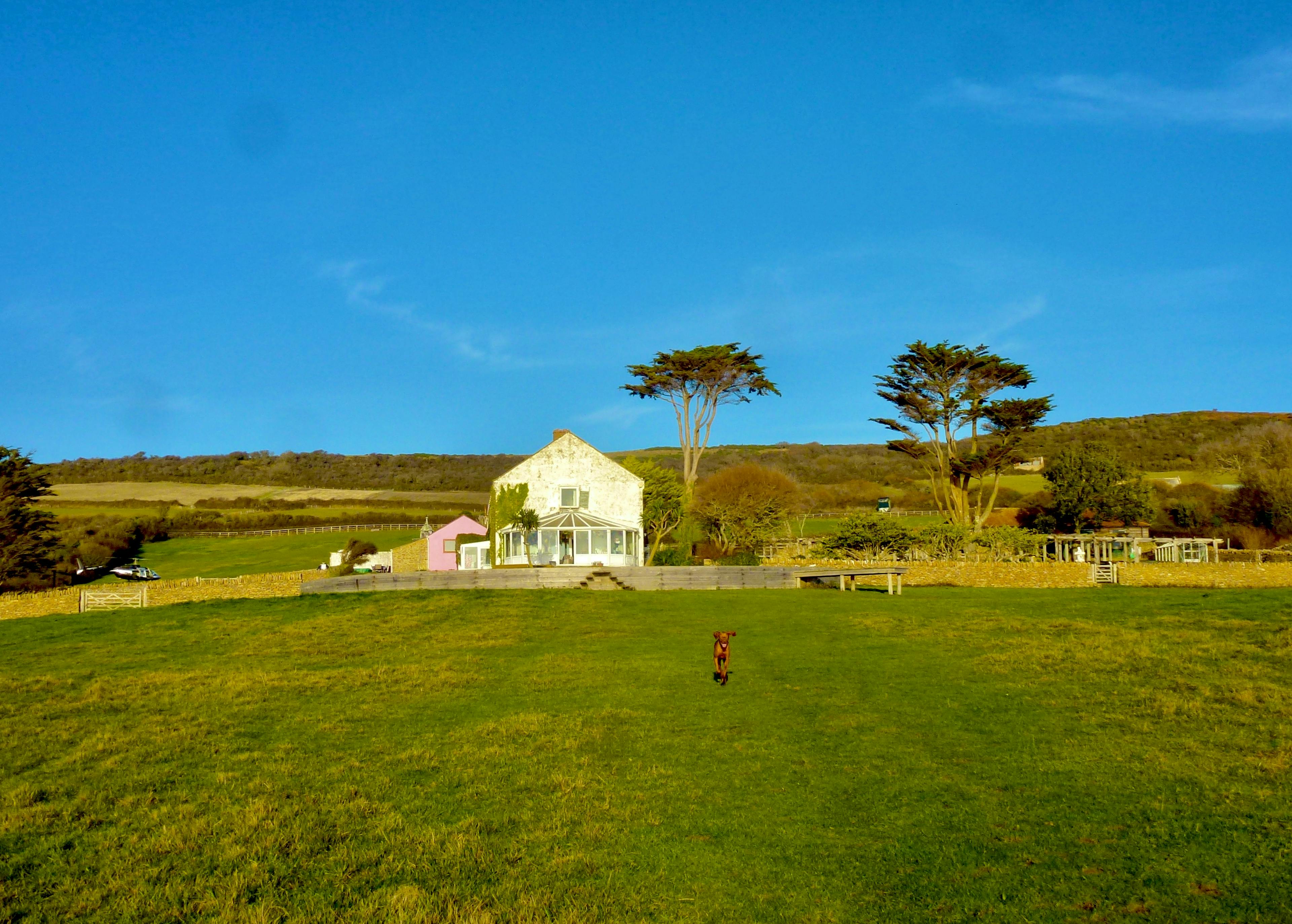 Short House Chesil Beach is a serene seaside retreat on Dorset’s Jurassic Coast, in an Area of Outstanding Natural Beauty. Surrounded by National Trust farmland with private access to a secluded section of Chesil Beach, Short House is a magical ’Stop the world, I want to get off’ sort of place. Revive the senses with fresh country sea air, soak up the view of Lyme Bay and watch the sunset over the sea with a barbecue on the beach. Jump over the country stiles and take some of Britains best country walks. Country Life Magazine described the walk along the nearby Wears Hill as having the best natural view in England; over Abbotsbury and Chesil Bank to Portland. This beautifully converted barn is set on a small private country estate, a couple of miles west of Abbotsbury, one mile east of the pretty seaside village of West Bexington. It's original Purbeck stone walls have been restored and combined with pink render. Soaring pines frame the garden and look down on the sea view terrace and al fresco dining area. Inside, the cottage fuses eclectic, retro chic with contemporary design. Comfy vintage armchairs, Victorian coats of arms and bold modern canvasses. Purple doors add to its vibrant palette with Turkish kilims and oak floors. The open-plan living area has a great kitchen with everything you need to cook up a storm, a farmhouse dining table for six or extends to eight, and a cosy, sink-in sofa with proper squashy cushions. An open ceiling adds to the spacious feel, with natural light flooding in through two large roof lights. Bed 2 also has a roof light for star gazing from the bed. Two sea-view bedrooms lead off the living area, each with their own stone tiled bathroom. Soak in the roll top baths; the bathroom off Bed 2 has a sea view from the bath itself and a hand shower, the bath from Bed 1 has a stand up shower and hand shower. Wrap up in fluffy towels and curl up in comfy beds with feather and down pillows and duvets with fine Egyptian linen. The sea is in clear view from both bedrooms; from the bed in Bedroom 1 and from the bedroom and bath in Bedroom 2. The view from the living room is of the coastal slope. A very agreeable aspect with horses in the field, the Pampas grass swaying up the drive and unspoilt green hills beyond, but there is no sea view from that room. There is a superb view of the sea and Devon coastline from the terrace, which has loungers, chairs and an 6 seater dining table. Sunsets from the terrace, with the sun setting over the water or the Devon coastline, are very good. There is also excellent star gazing from there. With no ambient light for miles around, the night sky is very clear. Outside is bags of space to romp, a private tennis court (rackets and balls provided) and riding stables (where you can bring your horse - just ask). Take a 15 minute walk to the Manor House pub in the village, with three dining areas and a lovely garden, or a 5 minute drive to the farm shop for a greta selection of fresh organic produce, homemade jams and unpasteurised milk from their own Jersey herd. Chesil Beach is a 5 minute walk from your door, across the garden and front meadow; one of Dorset’s longest coastal stretches and an undiscovered gem. Wander the beach track or drive along the stunning coast road to visit Abbotsbury Swannery or the local towns; Bridport and West Bay (aka Broadchurch on telly) are 15 minutes away. Lyme Regis, Weymouth and Dorchester are 30 minutes. There are lots of great places to eat within a few minutes: The Riverside in West Bay is one of the best fish reataurants on the south coast, Hive Beach Cafe wins lots of awards, The Seaside Boarding House Bar & Restaurant and Mark Hix in Lyme Regis are all excellent. Soulshine Cafe and Cafe Bean in Bridport are favourites as is the bustling street market on Wednesday and Saturday mornings, with a band playing in the square outside the Bridport Arts Centre. Bridport has the UK’s largest hat shop (T. Snook), where you can buy a hat and a tweed jacket to make yourself very country, the oldest family business in the UK - a butchers shop established in 1515; R. J. Balson & Son (and 25 generations of sons of sons), two bakeries and lots of other great independent shops; remember those? It also has a Waitrose, Morrisons and Co-op supermarkets. You can see Lyme Regis twinkling in the distance across Lyme Bay from the Short House terrace. On a clear day you can see 55 miles to Start Point; the tip of Devon. After that it’s 5,000 miles to Brazil, but you can’t see that! On a clear night the low ambient light makes for brilliant star gazing from the loungers on the terrace.