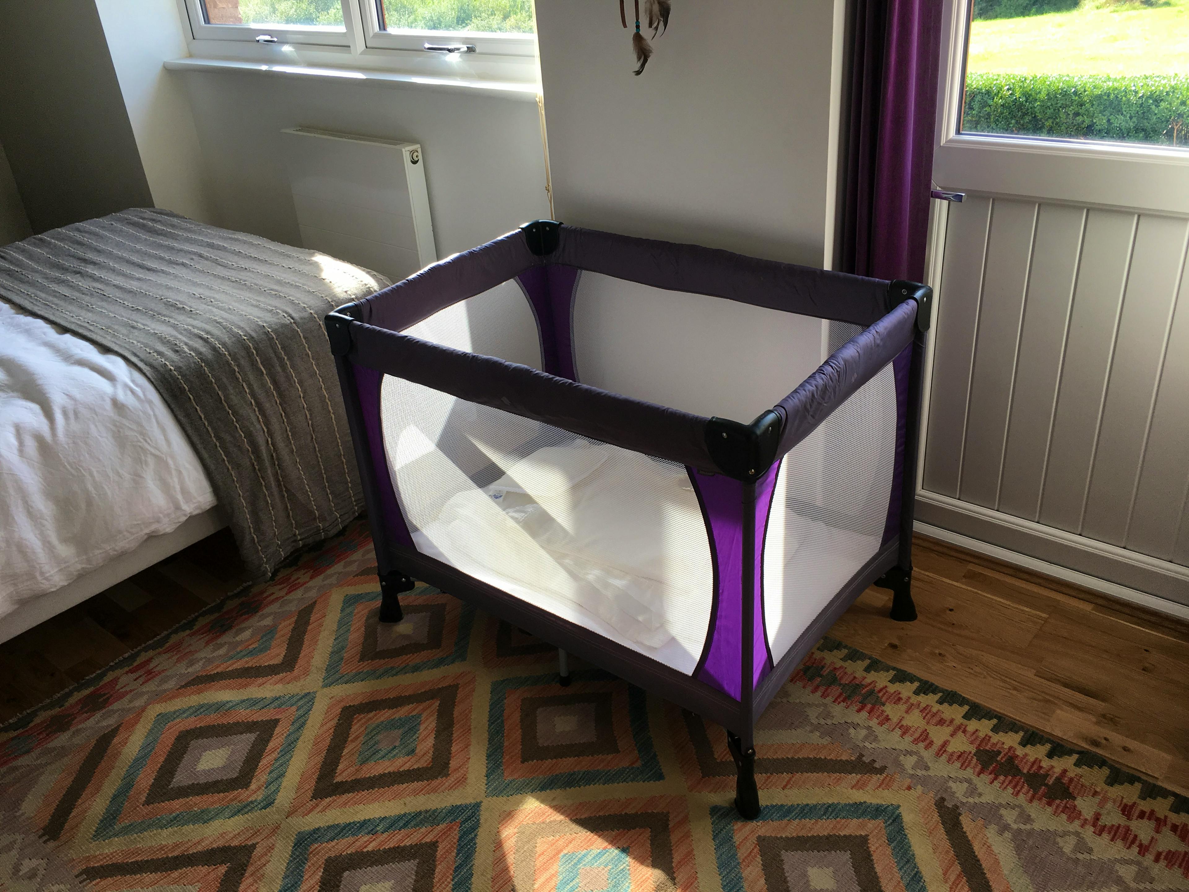 A travel cot (which fits in either Bedroom 1 or 2), and a sturdy put-you-up bed (fits in Bed 2 only), are available at no extra charge. An additional (very low ceiling) attic space with two mattresses on the carpeted floor, accessed by a drop down attic staircase from Bathroom 1, can also be used as a (a kids only) bed space on request but a liability waiver must be signed before use.