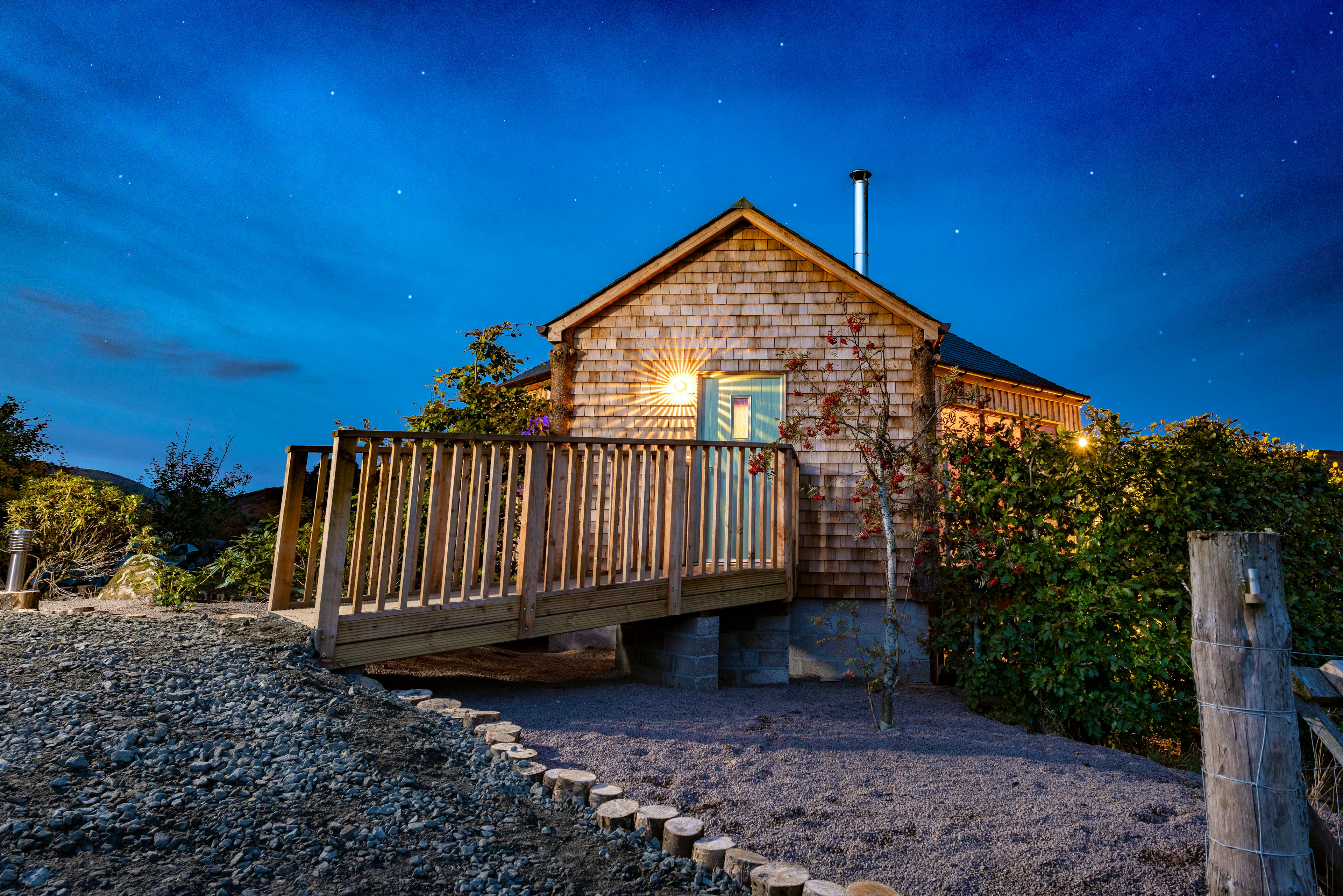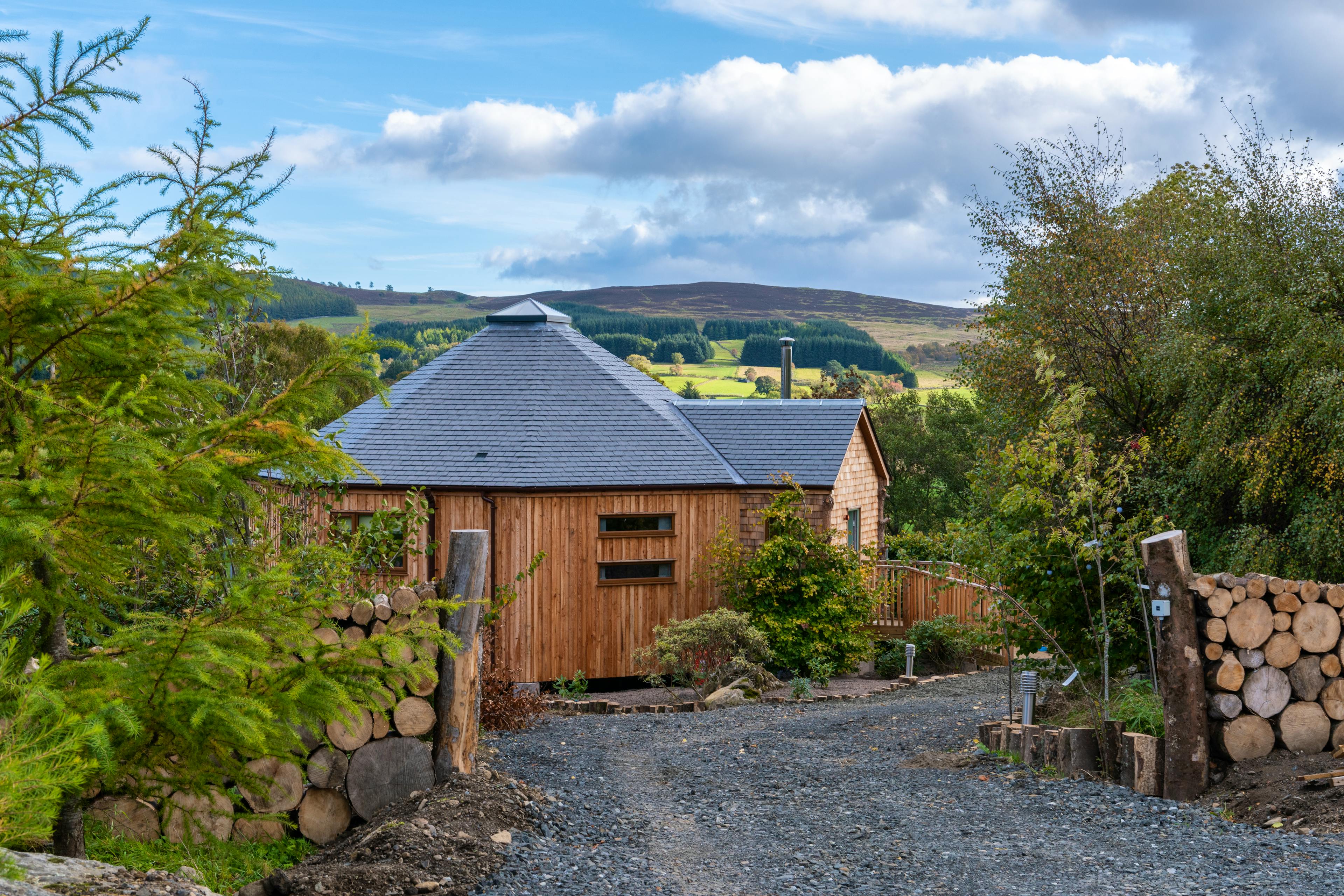 Slip down the spiral staircase to your private hot tub, hidden through an arched hedge-way for a magical soak with far-reaching Highland views.