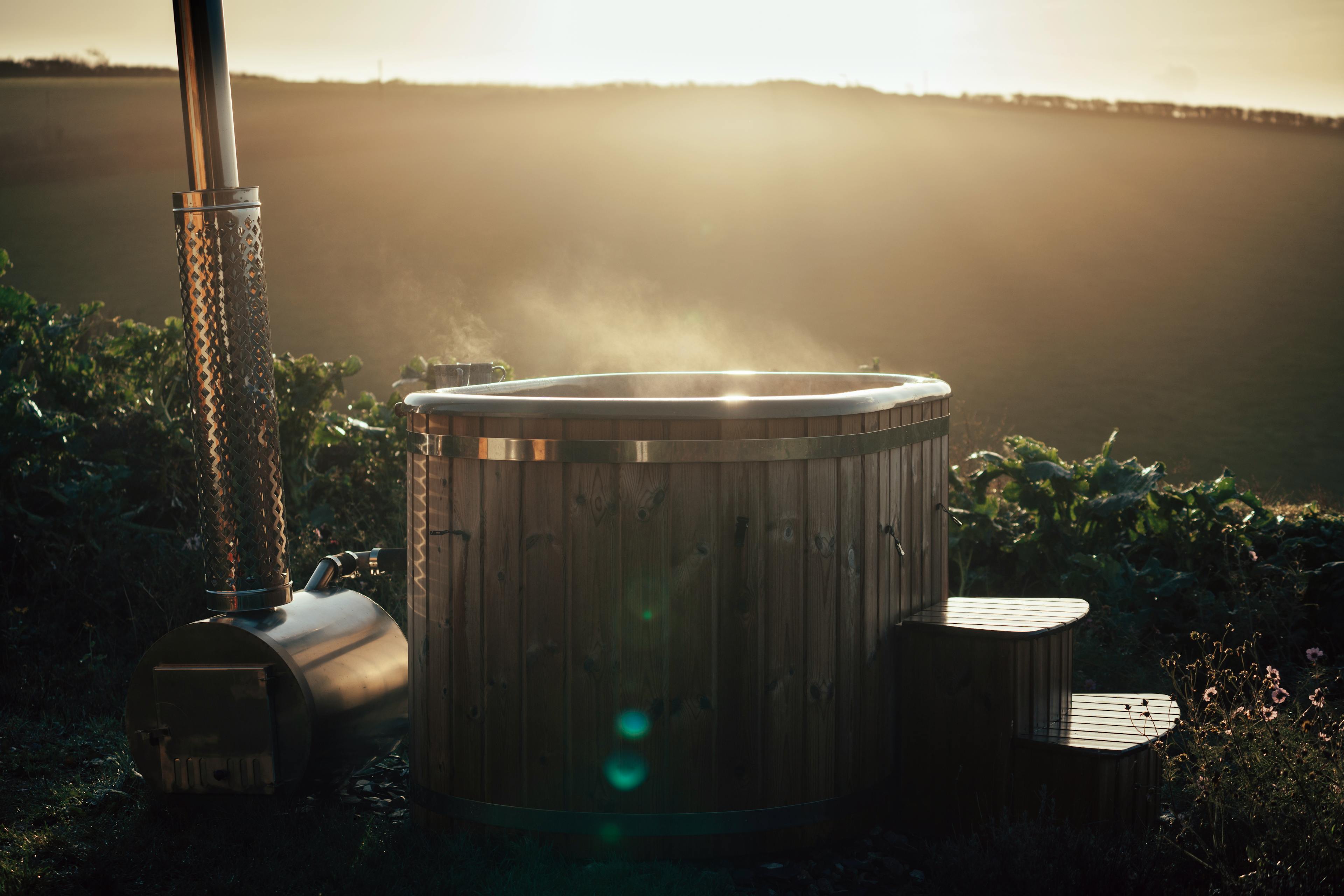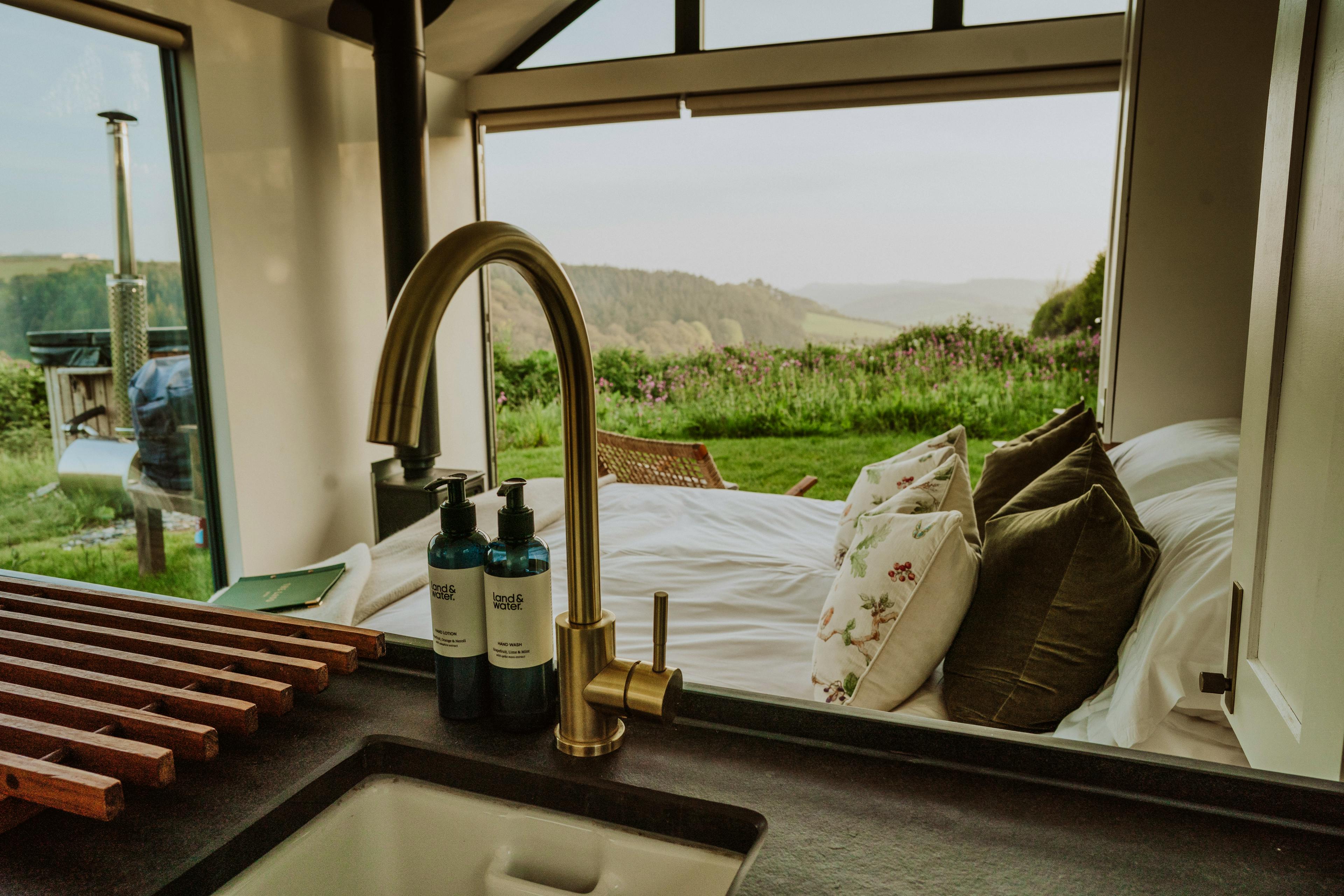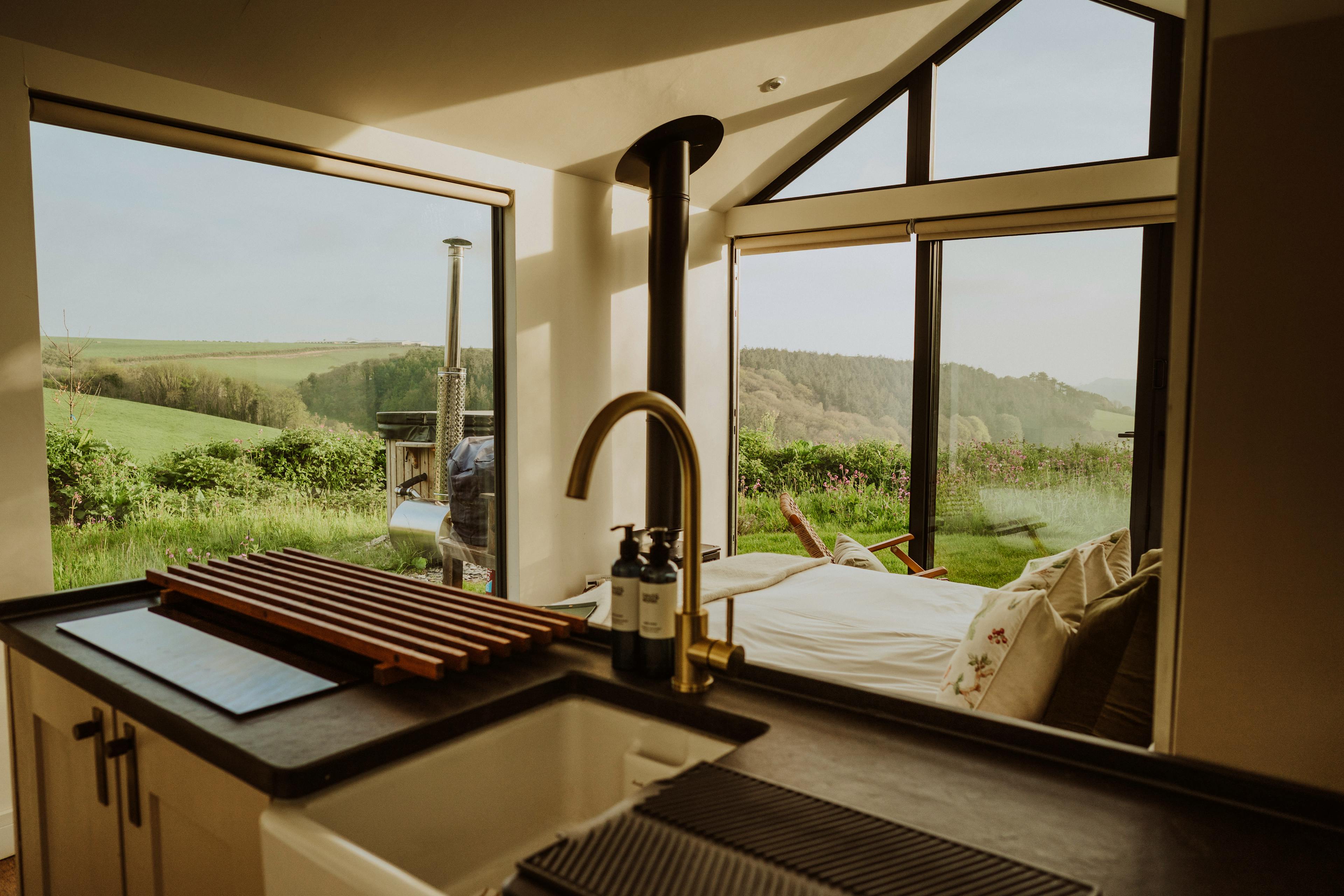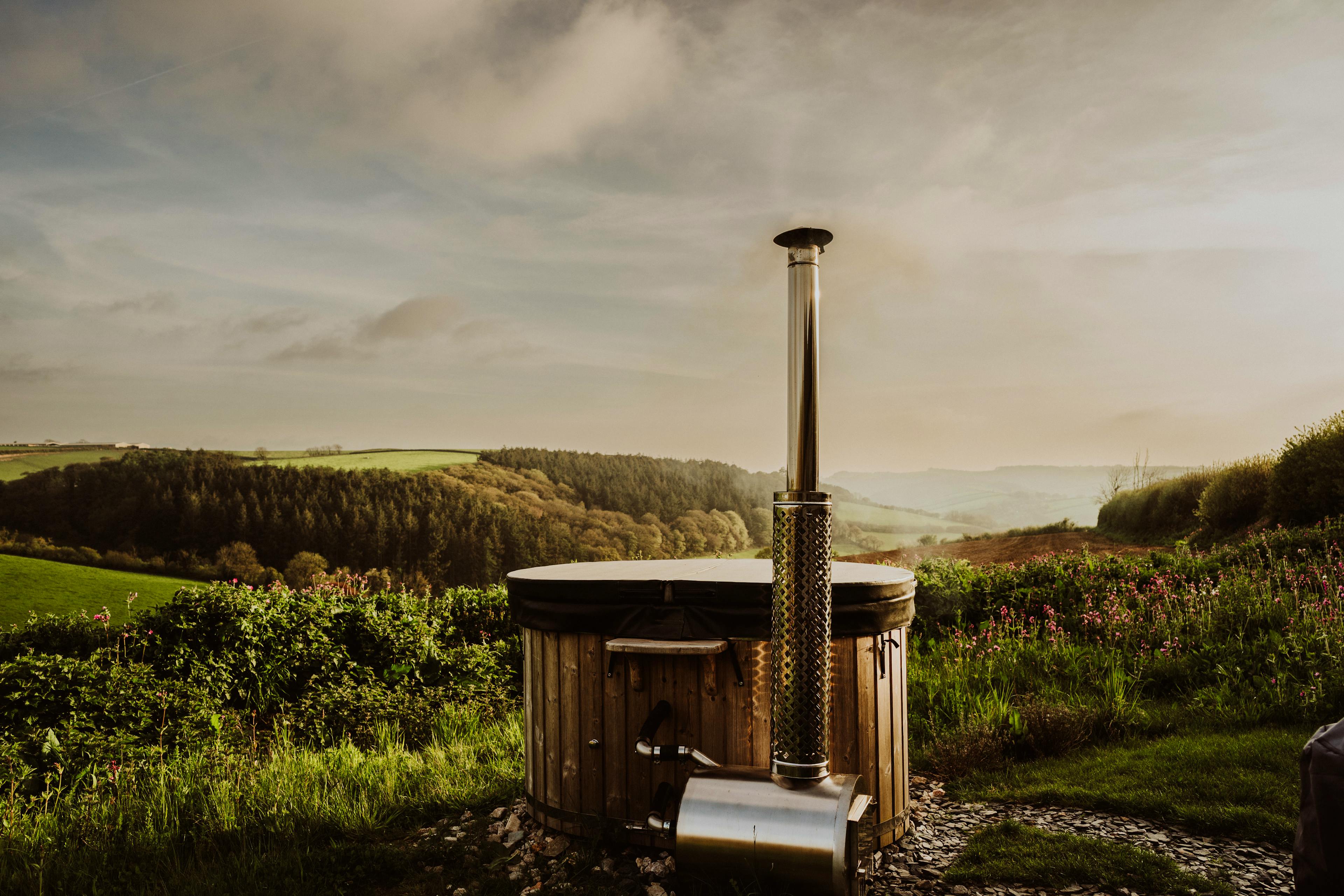 Enjoy the view as you relax in the wood-fired hot tub before rustling up some dinner on the BBQ.