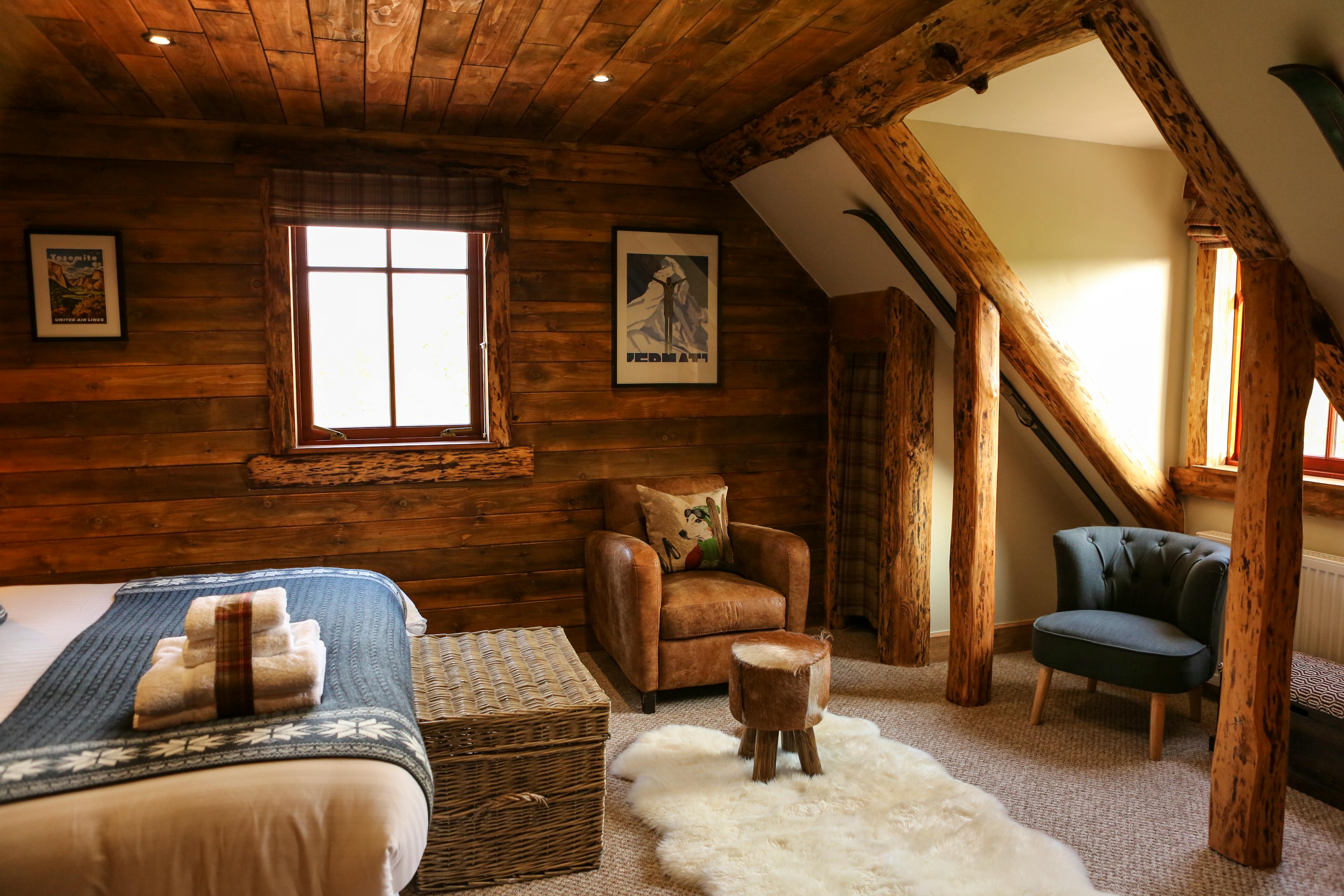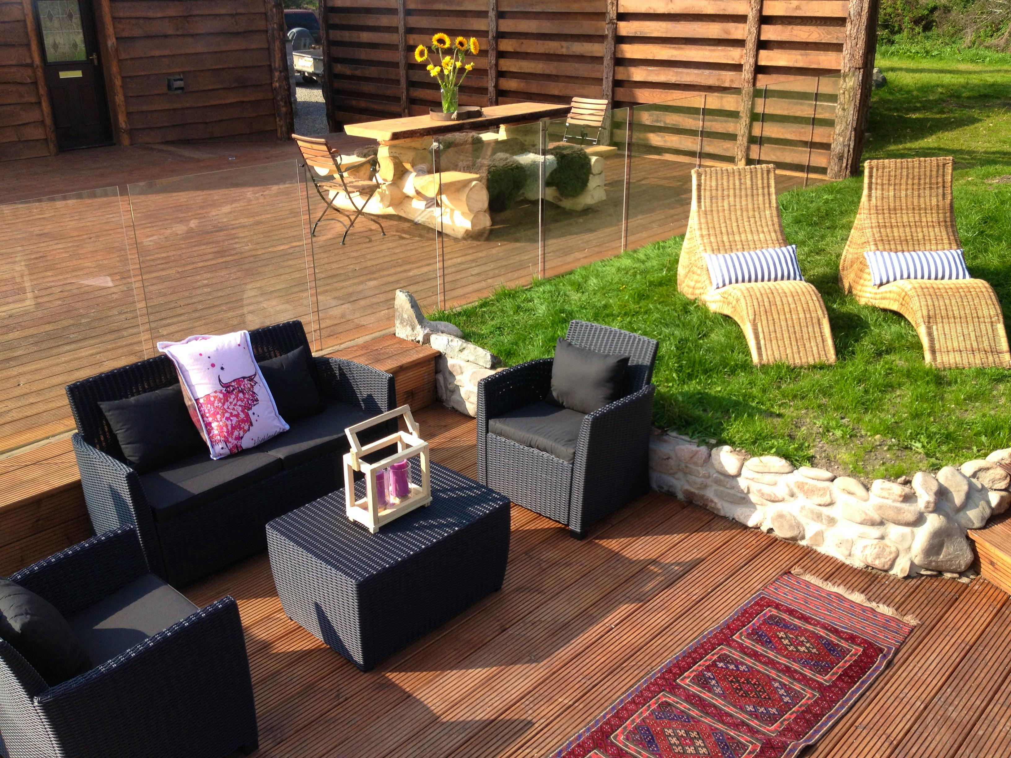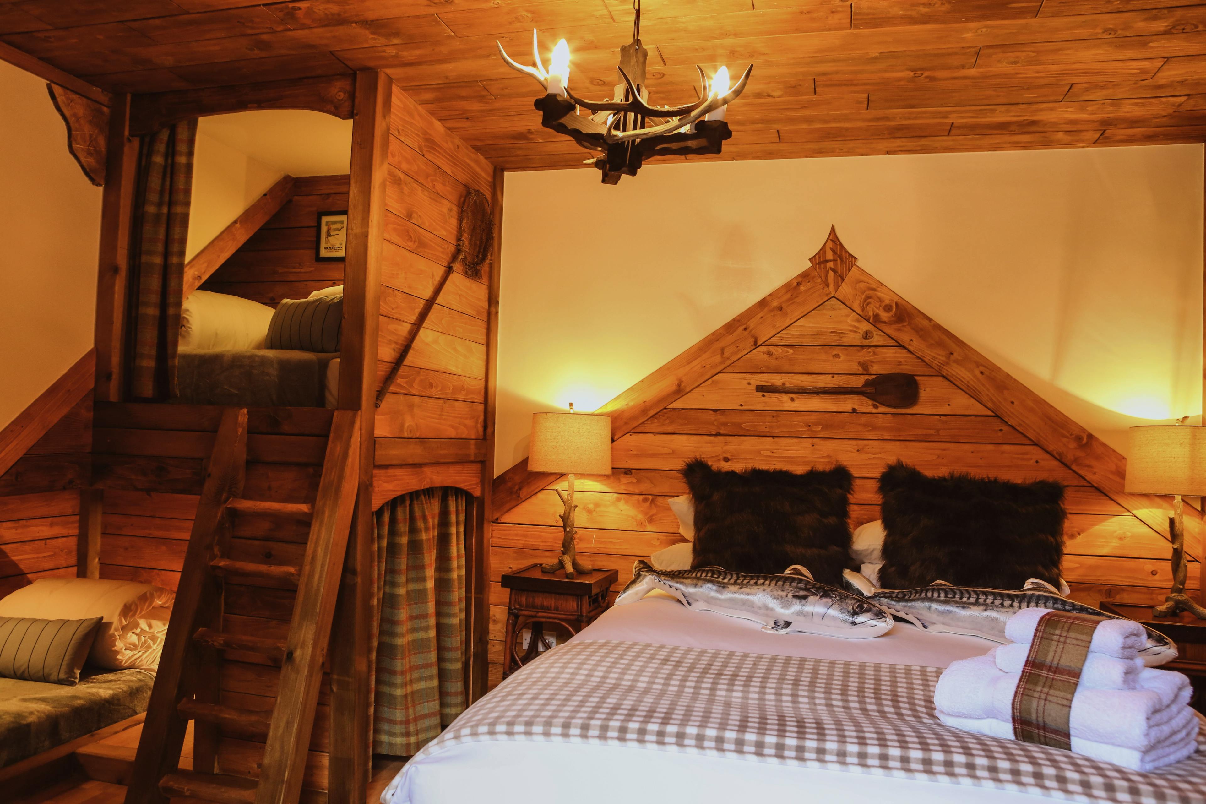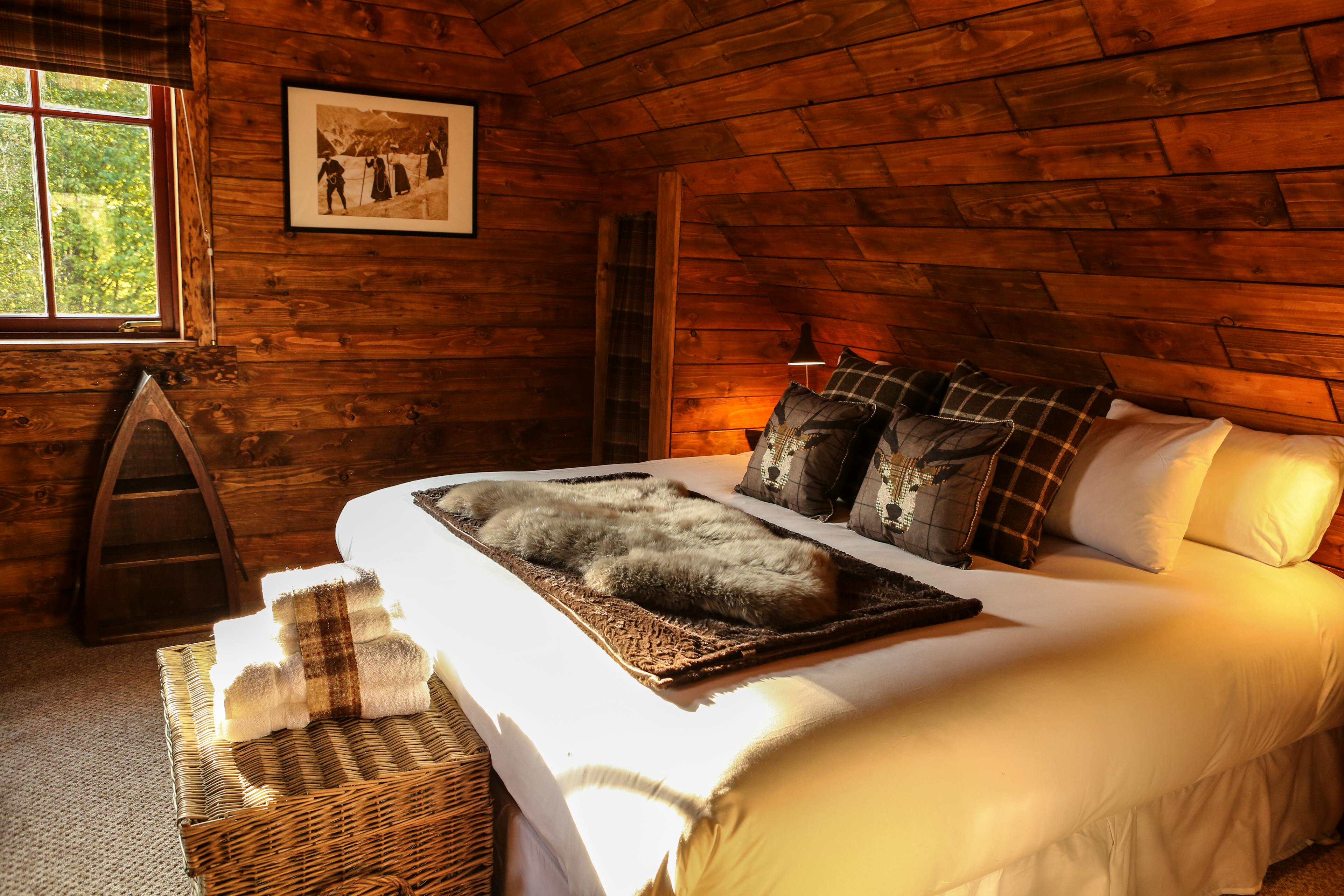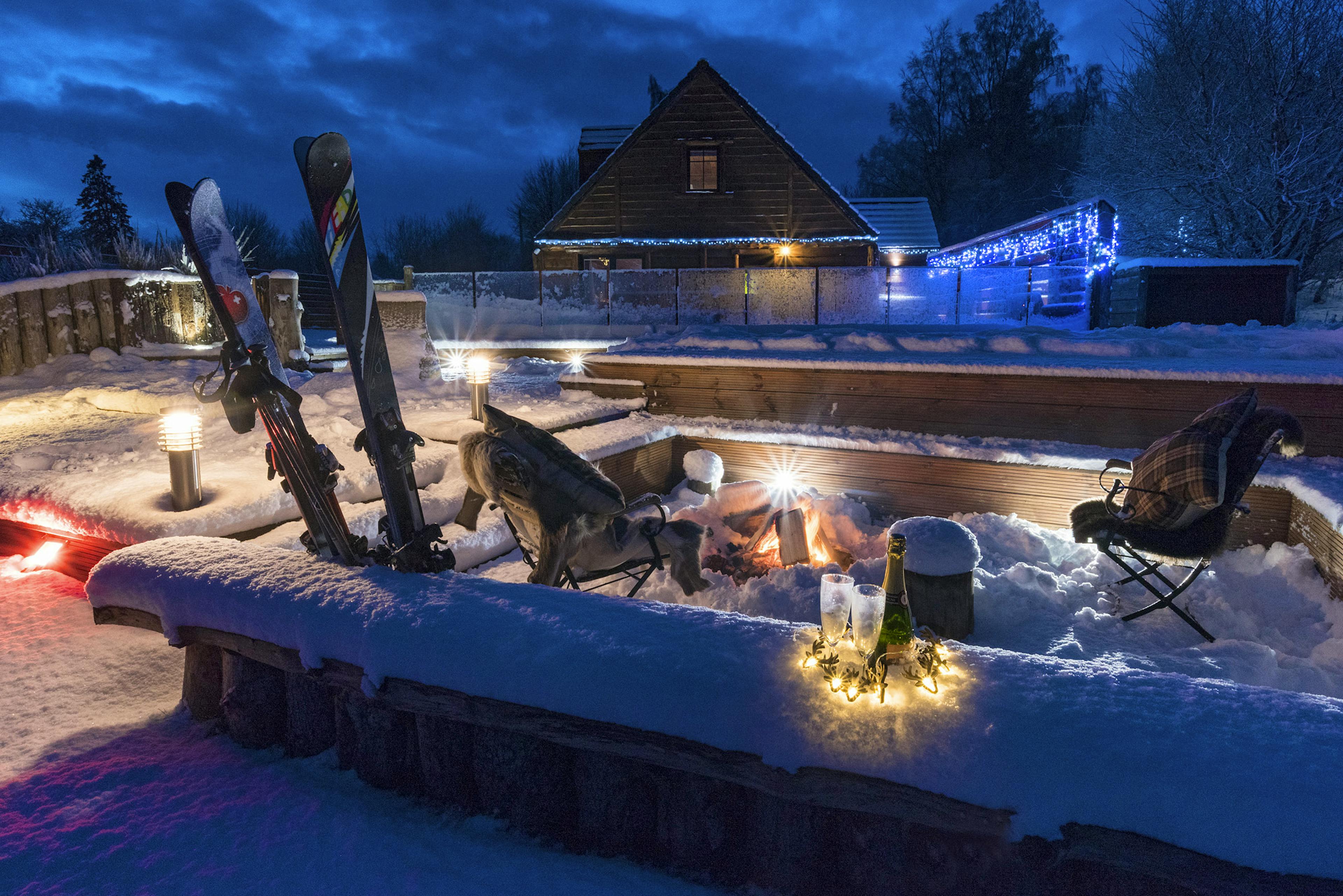 Huge log cabin on the banks of a river in the Cairngorms National Park with a hot tub and barrel sauna, perfect for Highland escapes with friends and family.