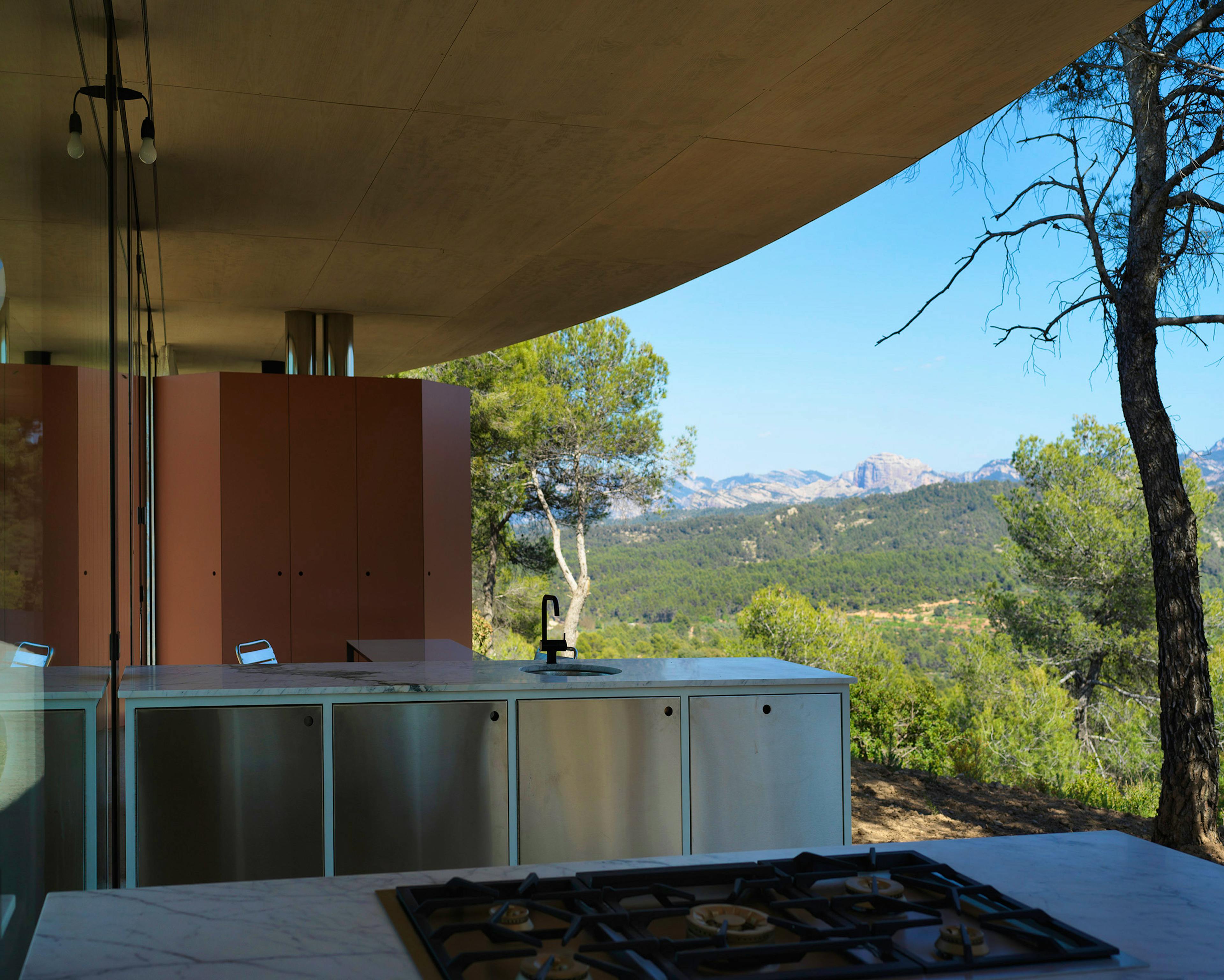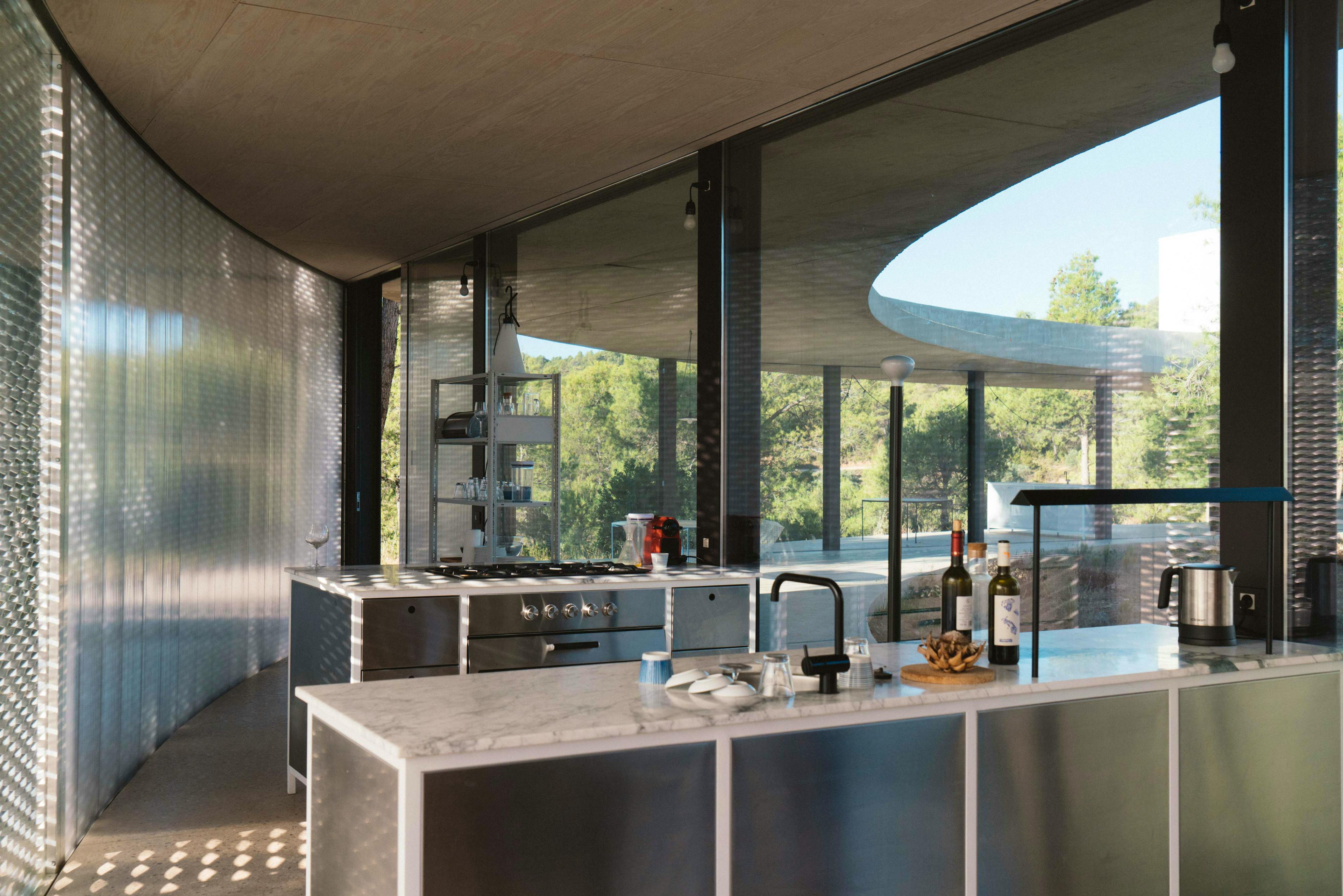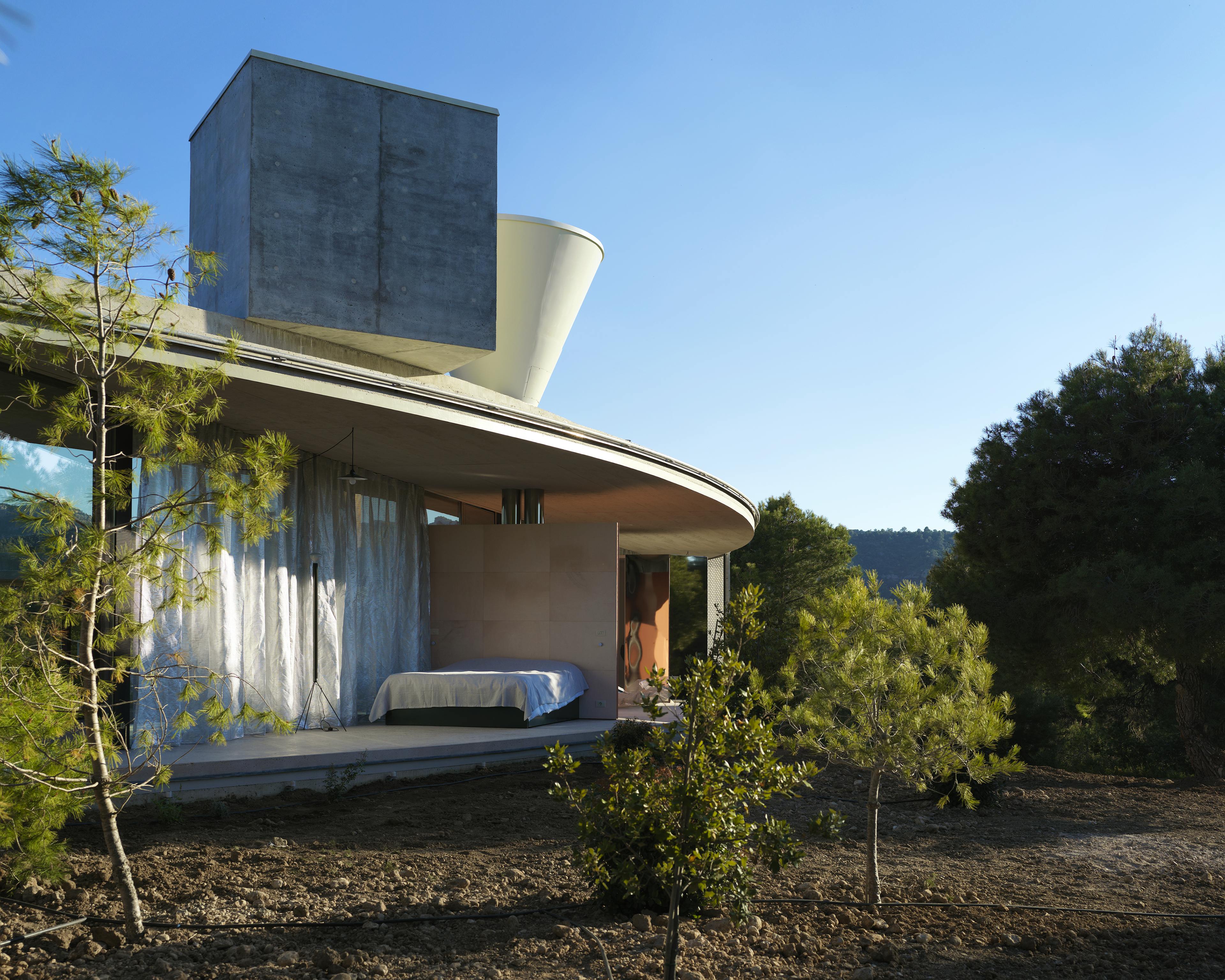 Solo Office KGDVS is a luxurious getaway in a beautiful Spanish forest. This modern, stylish holiday home complements its beautiful natural surroundings nicely offering guests a peaceful and relaxing stay. The circular building in the mountainous region of Matarrana flows around a large courtyard garden with a swimming pool. With spectacular views across the nature reserve on which the property is located, there is a real sense of bringing the outside in. All of the metal facades which encase Solo Office KGDVS can be fully opened to reveal the landscape beyond in all its glory. Inside the clever design and architecture has used the support posts to separate the bedroom and living areas from each other. While the sleeping quarters can be closed off, the rest of the house is open to its surroundings. The holiday home sleeps six guests across three stylish and sleek bedrooms. Minimalist in their design, each has a king size bed and storage. They have been constructed to act as their own private houses, with a bathroom with tub and seated section included. The fourth enclosed space is home to the fully equipped kitchen and dining area. The intersecting communal areas are created to be fluid with their surroundings, with the contemporary furnishings of the dining table and chairs, loungers, and other seating able to be moved from inside to out with minimal effort. With the house effectively being off-grid it is also self-sufficient. Solar panels supply the heating and electricity, while water is collected on the roof and then purified through a filtration system and stored in tanks. It is a truly unique design and the brainchild of French developer, Christian Bourdais - who works with a new wave of young and inspiring architects. The surrounding area, known as the Tuscany of Spain, offers many opportunities for hiking, cycling, and generally exploring. However, Solo Office KGDVS is also only two hours from Barcelona. Spain’s second city and the capital of Catalonia, it is a buzzing metropolis bursting with culture and things to do. Stroll along Las Ramblas, sunbathe on the beaches, and take in the glory of Sagrada Familia. With 20 Michelin stars in the city, there are also endless opportunities for great eating and drinking.