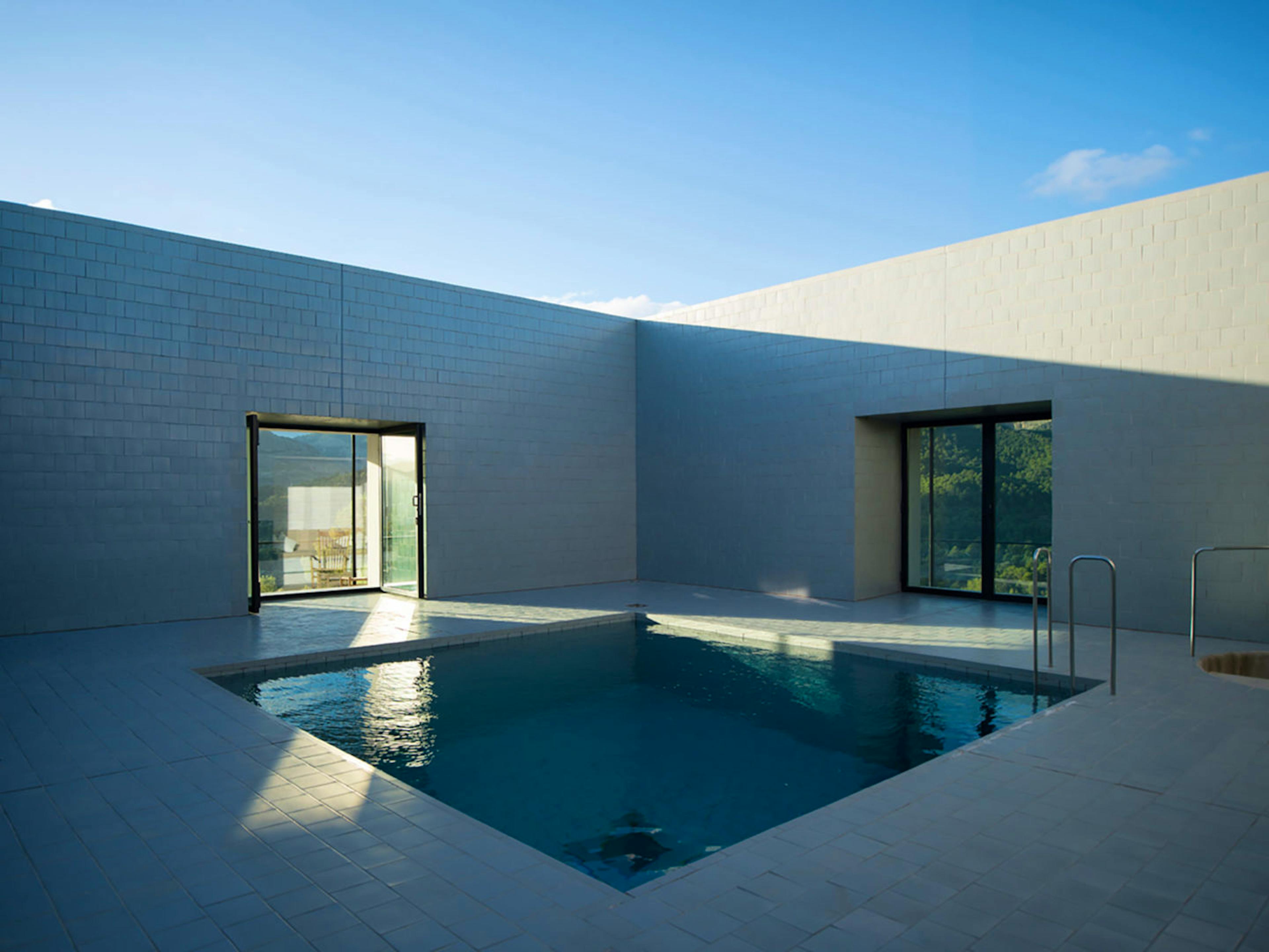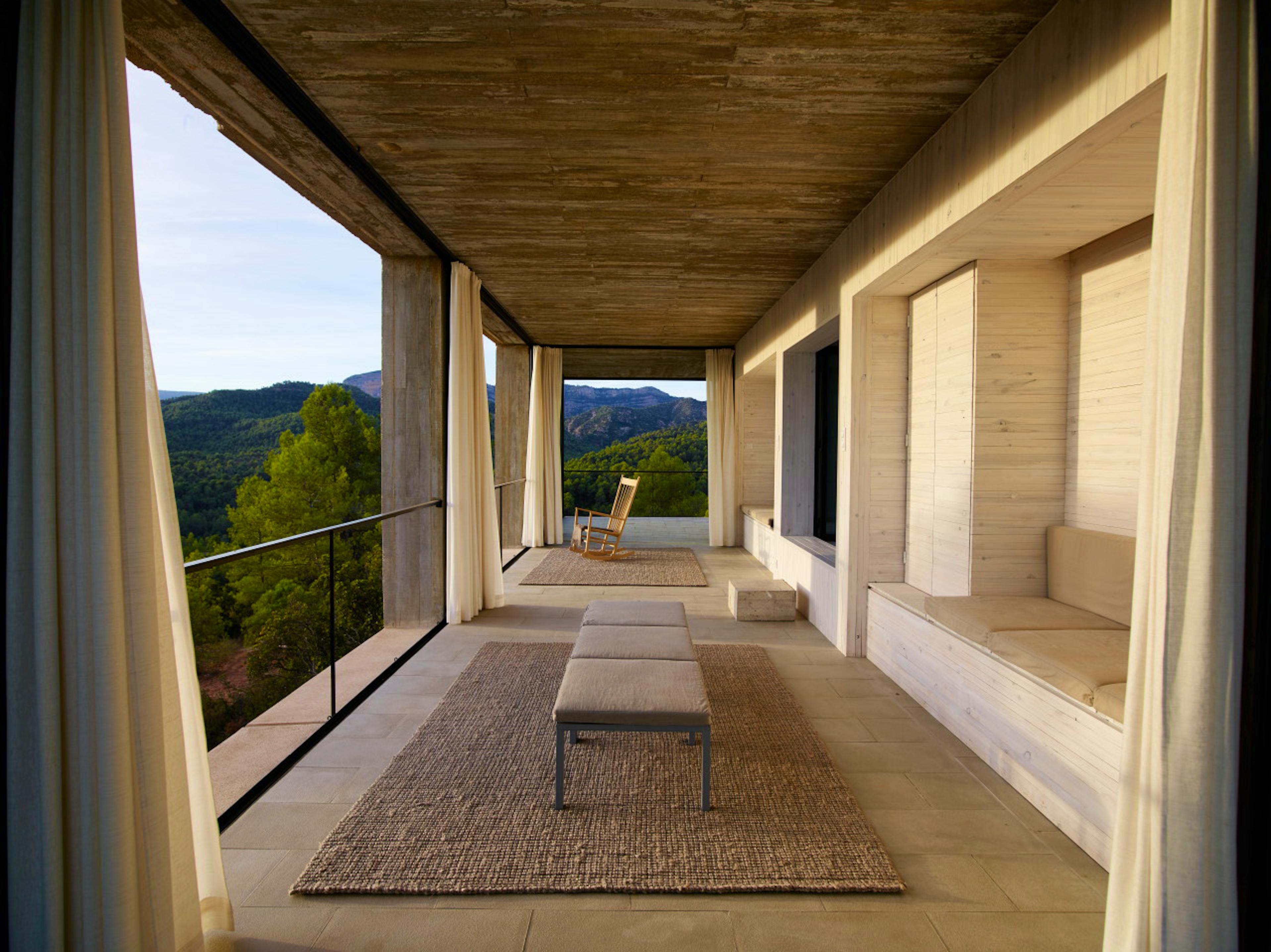 With spectacular views of the surrounding scenery, and a contemporary, super-stylish interior, Solo Pezo Von Ellrichshausen offers small groups an idyllic Spanish retreat. Perched on the edge of a beautiful nature reserve, this holiday home is made entirely of concrete, with a perfectly symmetrical design. Inside you have clean lines, minimalist design and a cool, airy atmosphere. And outside you can make the most of your private patio that sits in the centre of the property and is complete with a swimming pool. Solo Pezo Von Ellrichshausen sleeps five guests in two comfortable bedrooms. The master bedroom has a comfy double bed and its own en suite bathroom for added privacy. You also have a stylish oak desk should you want to use it. Then the second bedroom can be made up with three single beds, or one single and two doubles, offering some added flexibility depending on your needs. This room also has an en suite bathroom for guests to make use of. The kitchen is nicely equipped with everything you need, including an oven, stove, fridge, freezer, and a dishwasher so no one is left with the washing up. There's also a dining room with space to accommodate your entire group, making dinner times a real treat. Come winter light up the fireplace, put your favourite tunes on the bluetooth speaker, and socialise whilst staying toasty and warm. And in summer you can venture outside and make use of the variety of outdoor spaces. As well as the amazing central patio area, the property also has a number of wonderful balconies, complete with comfy seating areas that offer incredible views of the nature reserve. This is a fantastic place to roll out the yoga mats and enjoy the peace and tranquility of your surroundings. The balconies also have curtains so you can sit in the shade if needed. This is a truly unique property, that makes use of winding concrete staircases and a fabulous architectural design. It's contemporary, sleek, and cutting edge, meaning you can enjoy a modern break in this marvellous part of Spain. The backdrop of the majestic ‘Los Puertos de Beceite’ nature reserve is a beautiful location in the region of Matarraña in Spain. The charm of this area in the Aragonese hinterland is its mix of cuisine, nature and open-air activities. This region offers lots of lovely scenery to explore from wild beaches, and medieval villages, to nature reserves and renowned vineyards.