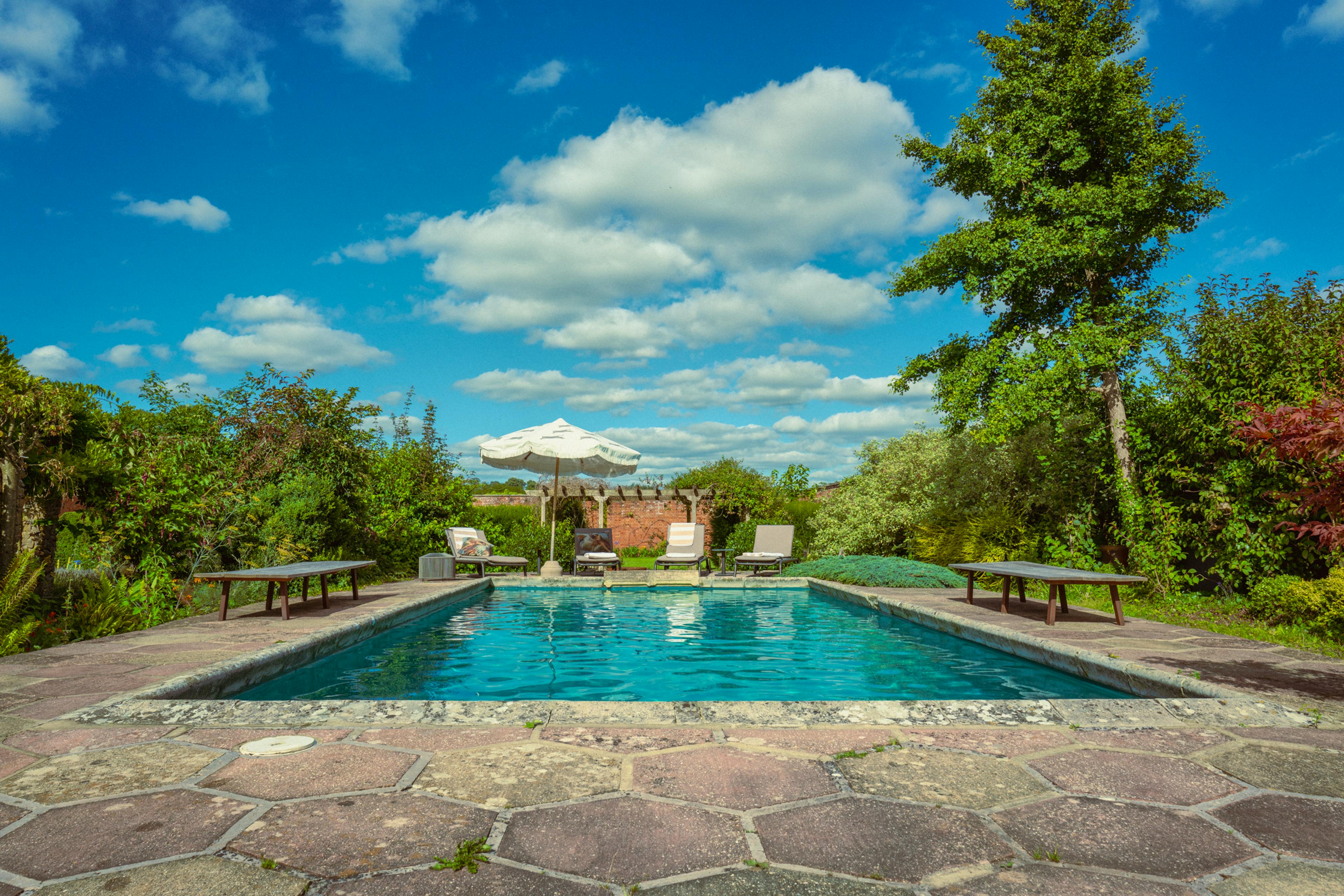Set among 12 acres of idyllic land, Somerleaze house boasts a walled garden with a heated pool, lawns, ancient trees and a private river beach for natural swimming.