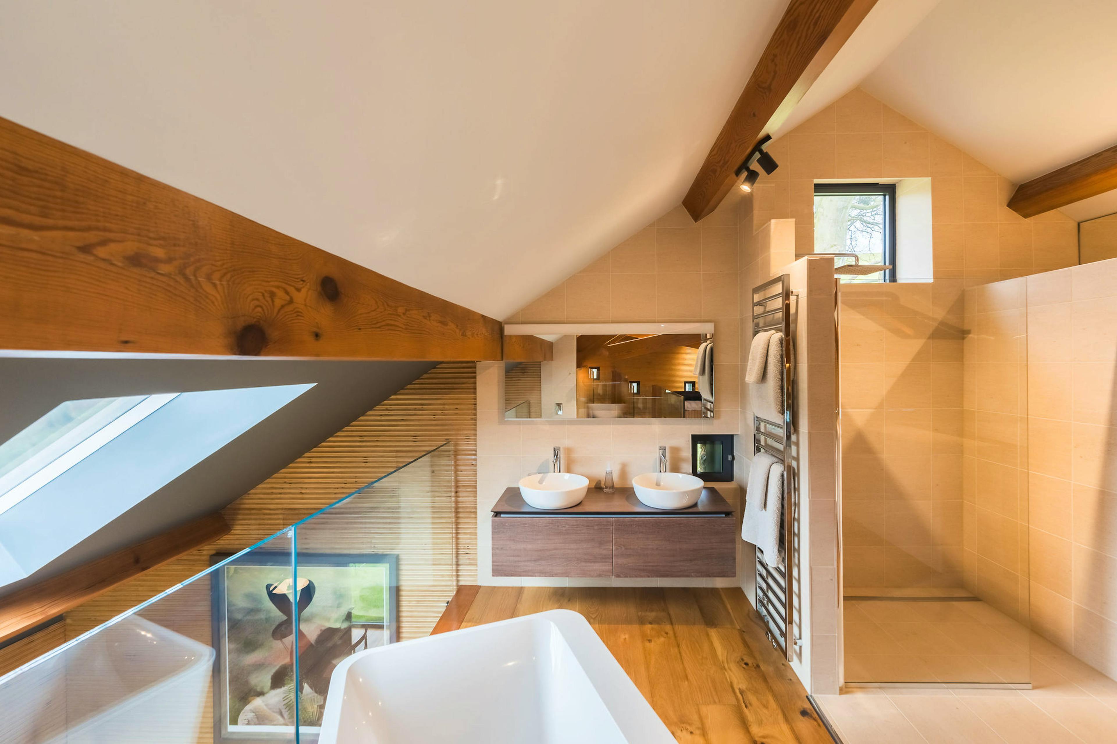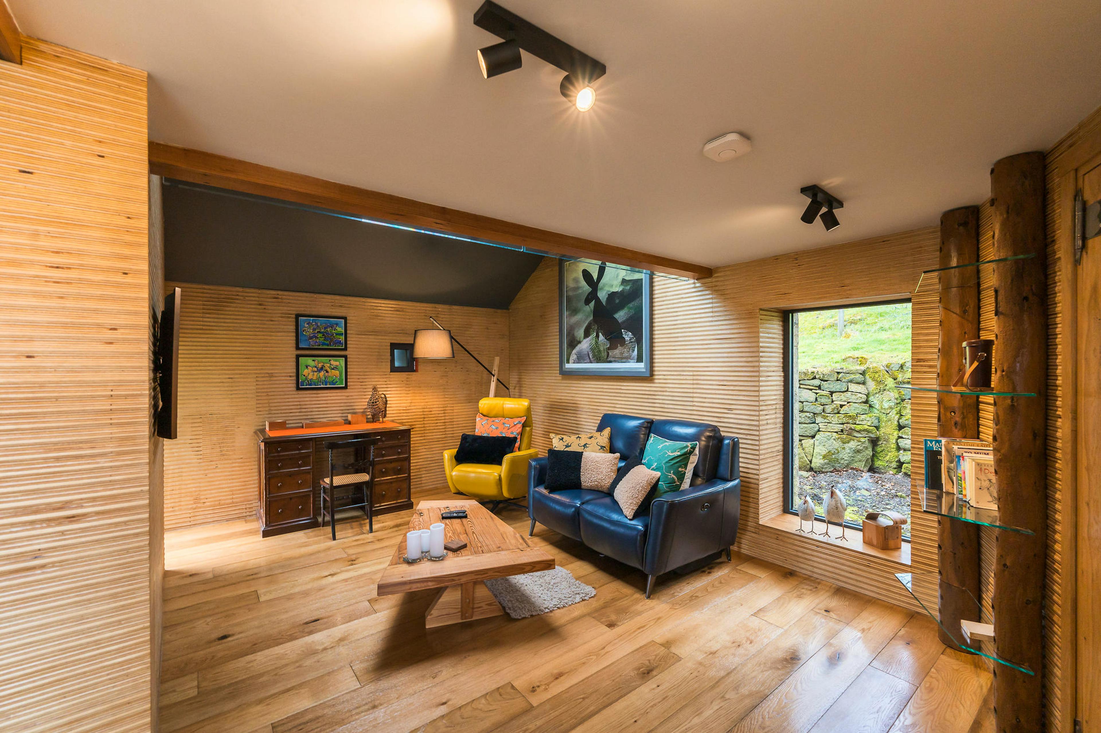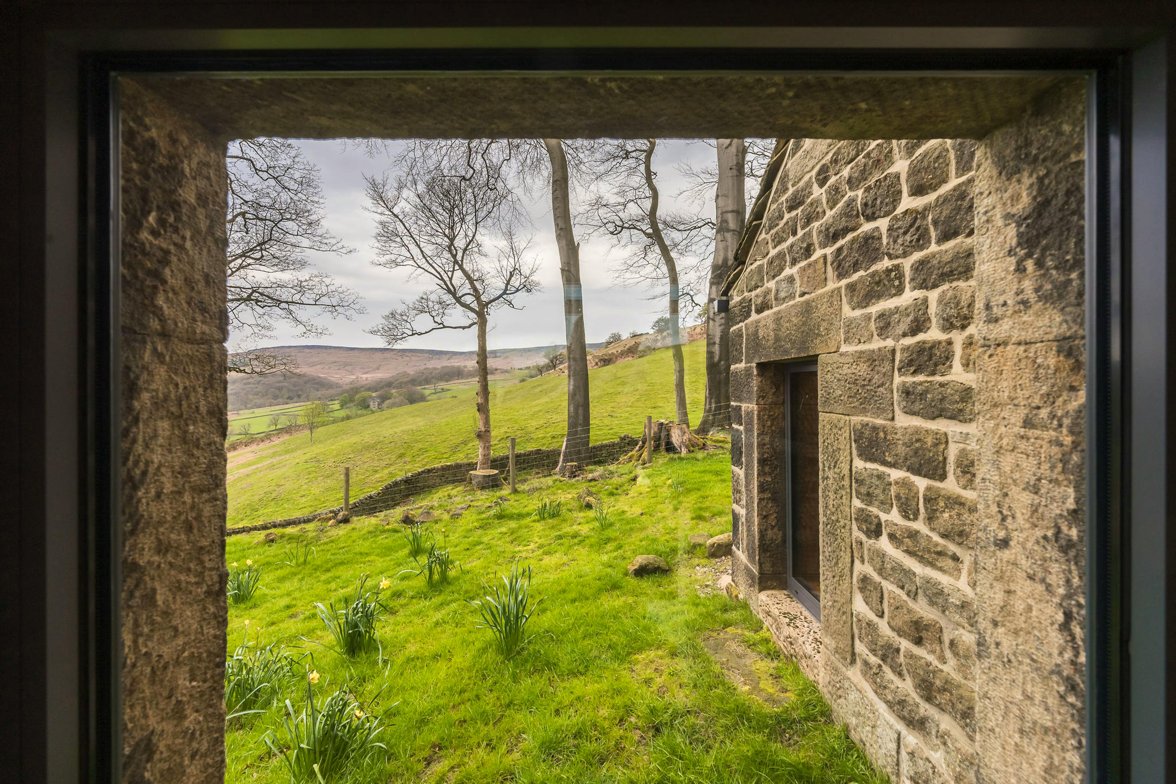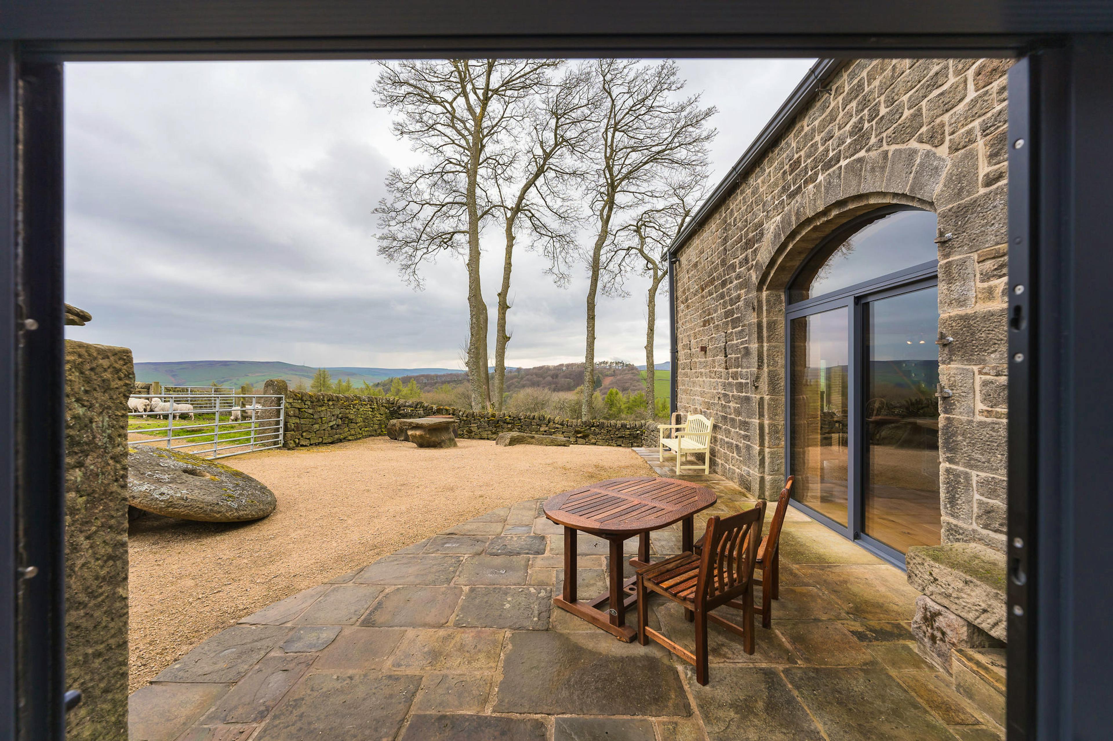 Architecturally renovated barn in quiet rural location with stylish interior, luxury facilities and a private courtyard for BBQs near Hathersage.