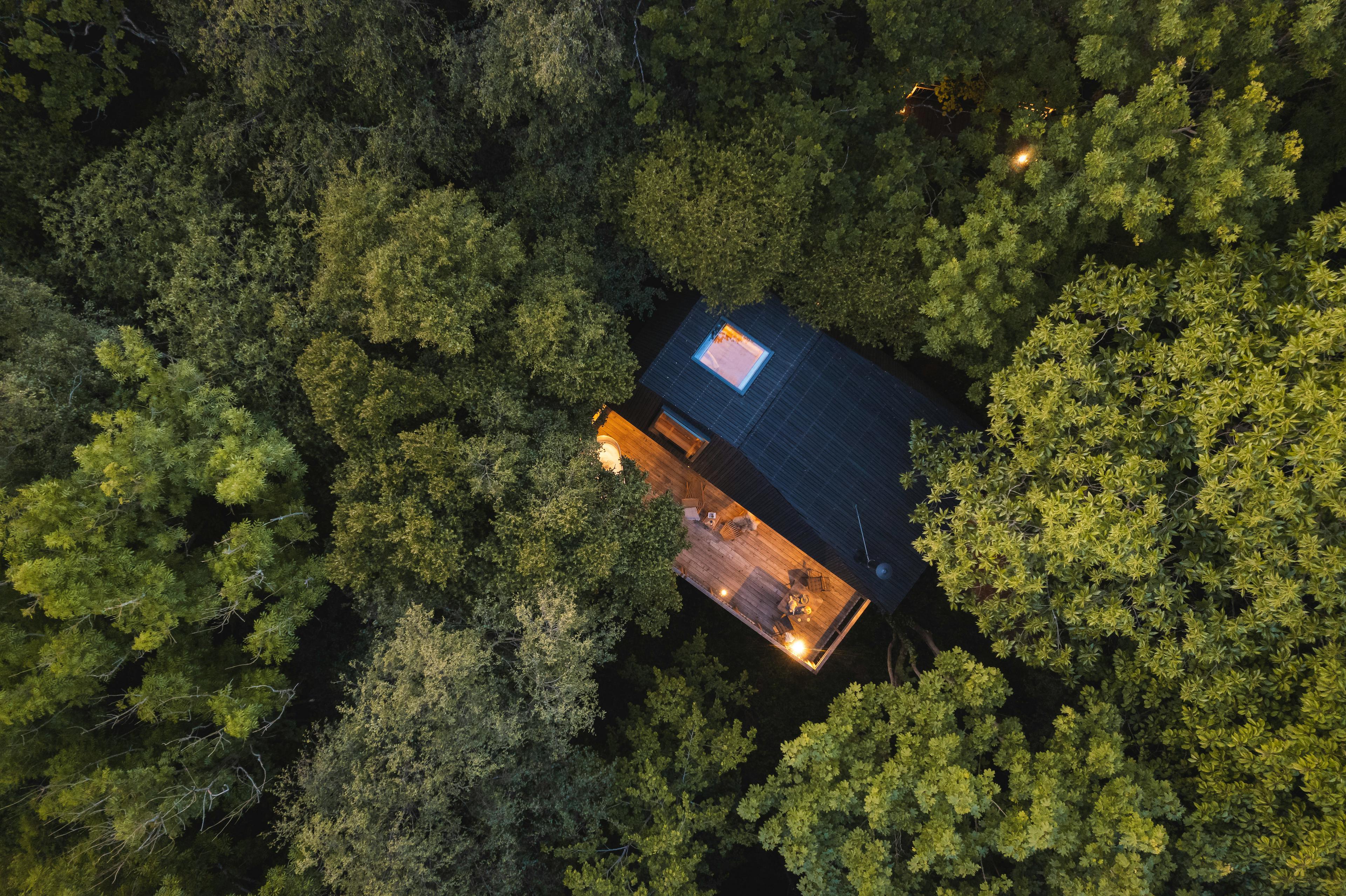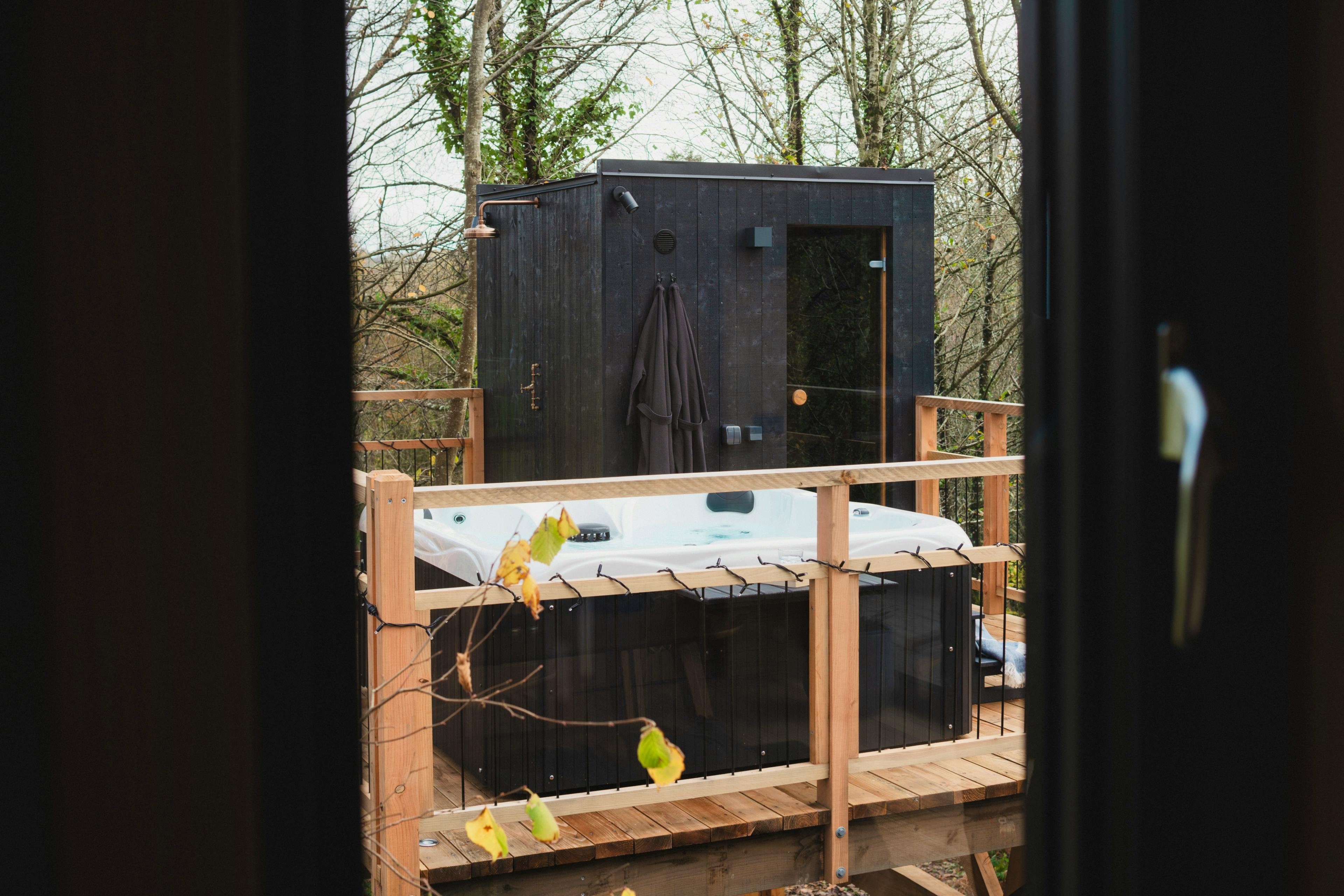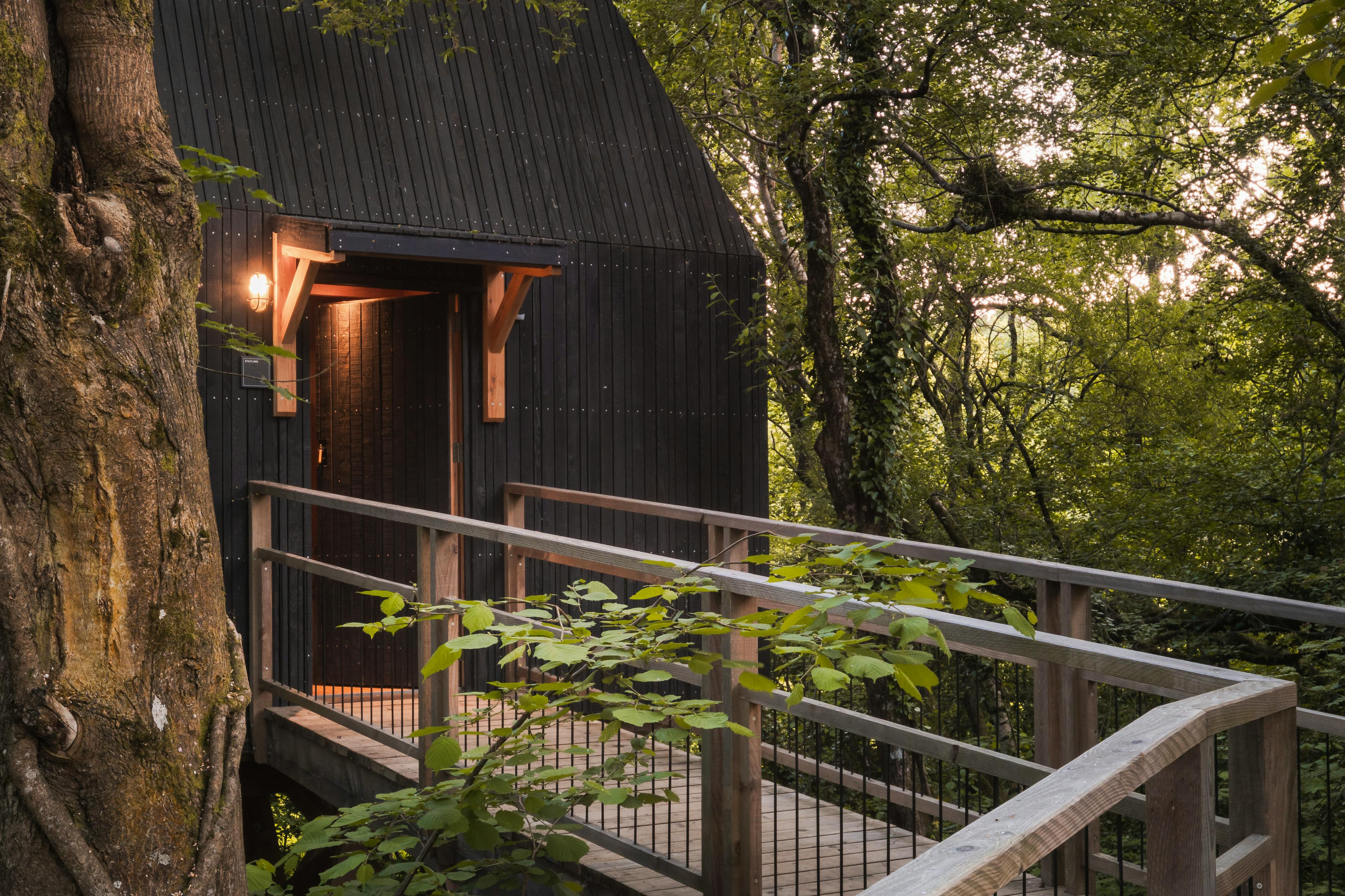 Retreat to Starling Spa Treehouse, a private treetop escape in Dartmoor with a hot tub, sauna, outdoor shower and a copper bathtub beneath the stars.