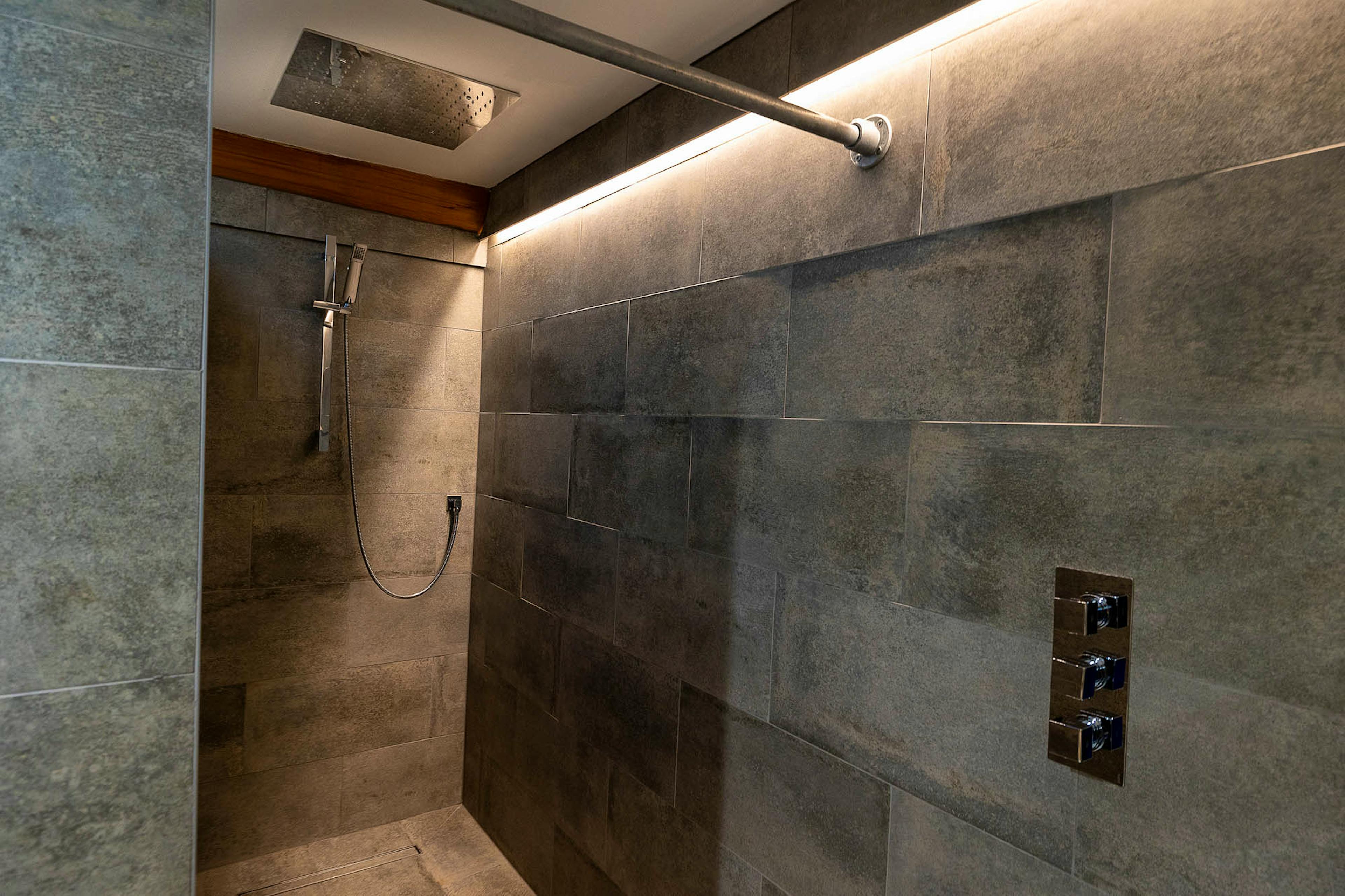 Luxury bathrooms featuring walk-in rainforest showers for two and Molton Brown toiletries.