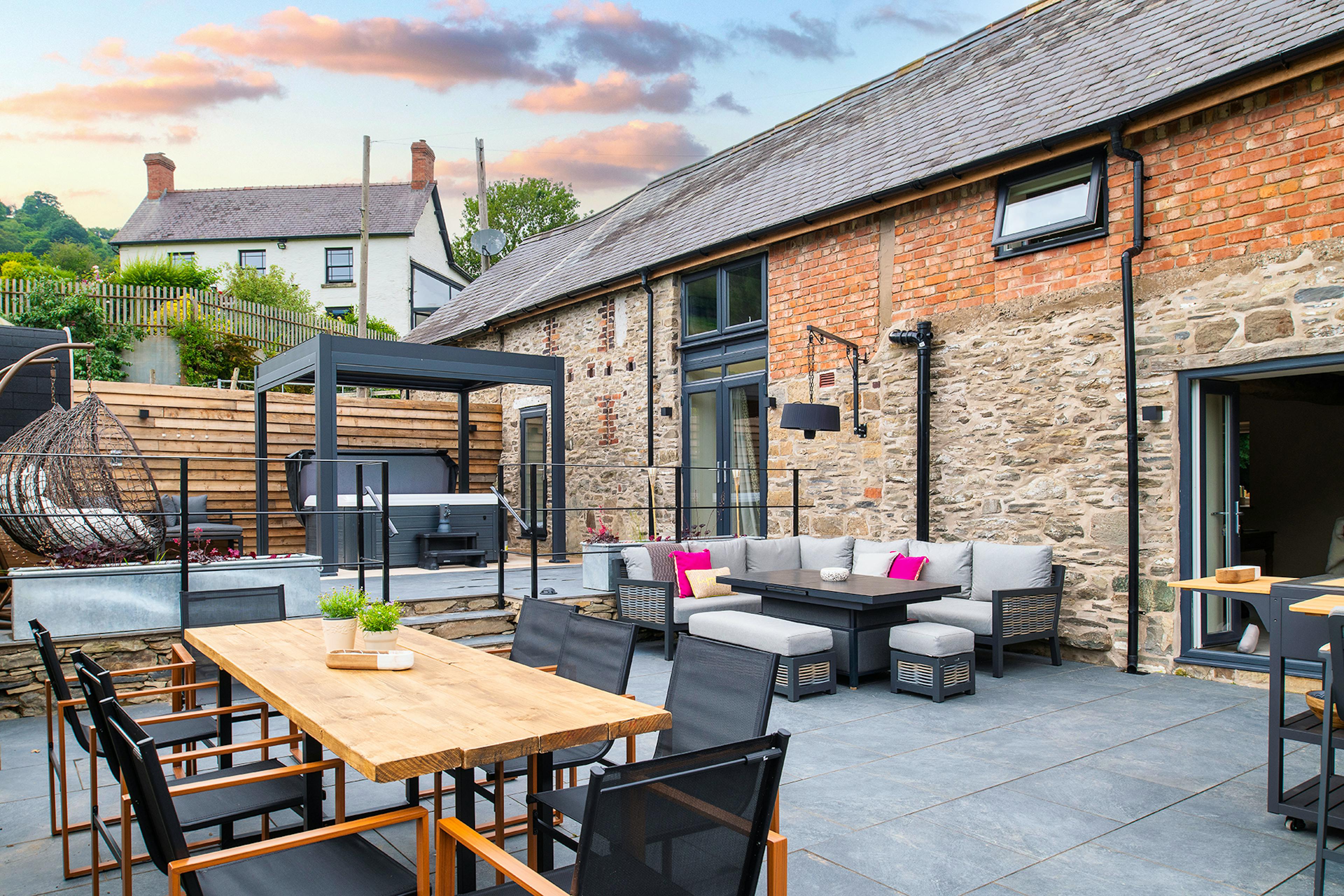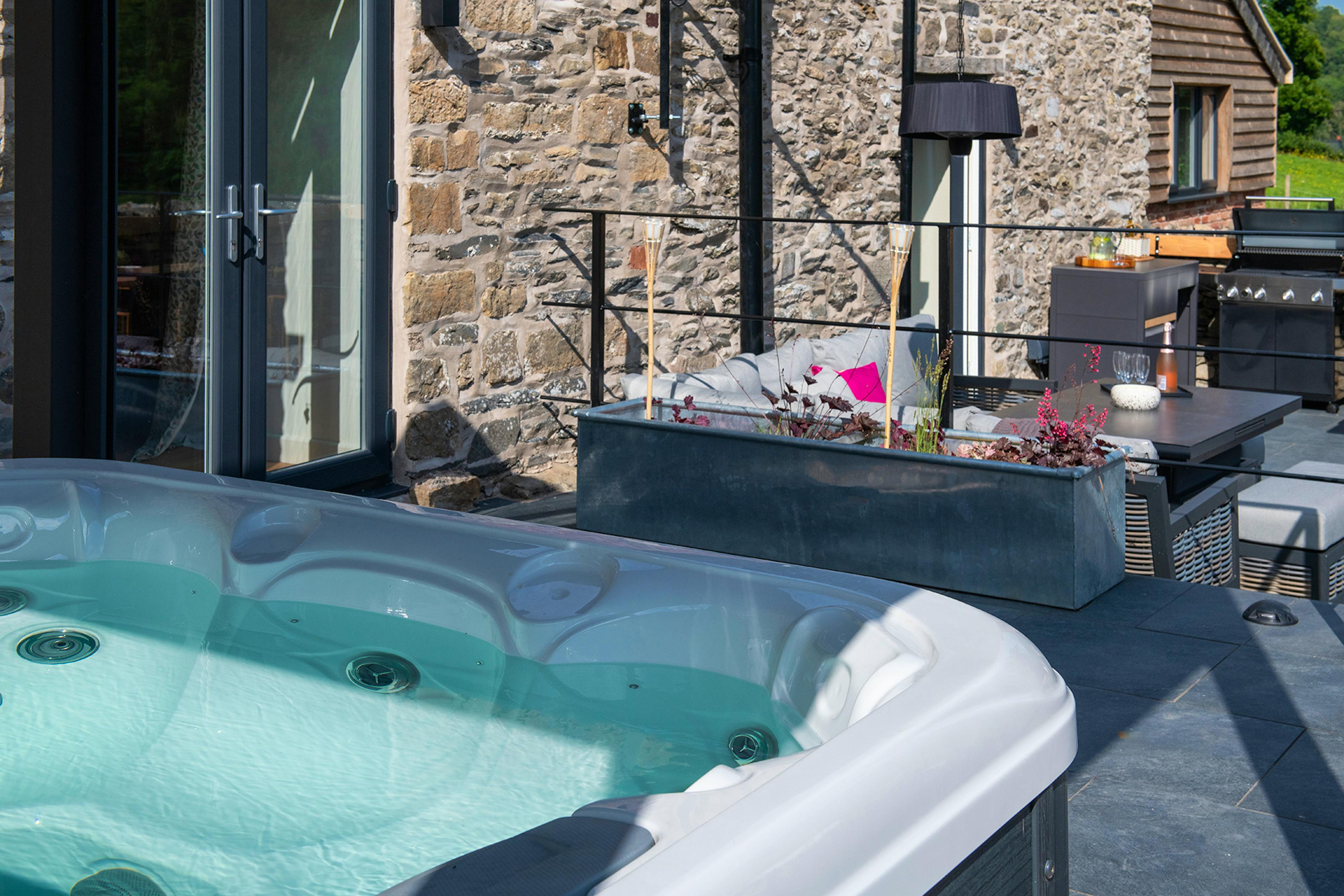 Beautiful converted barn in North Wales with stunning views a private hot tub, sauna and plunge pool.