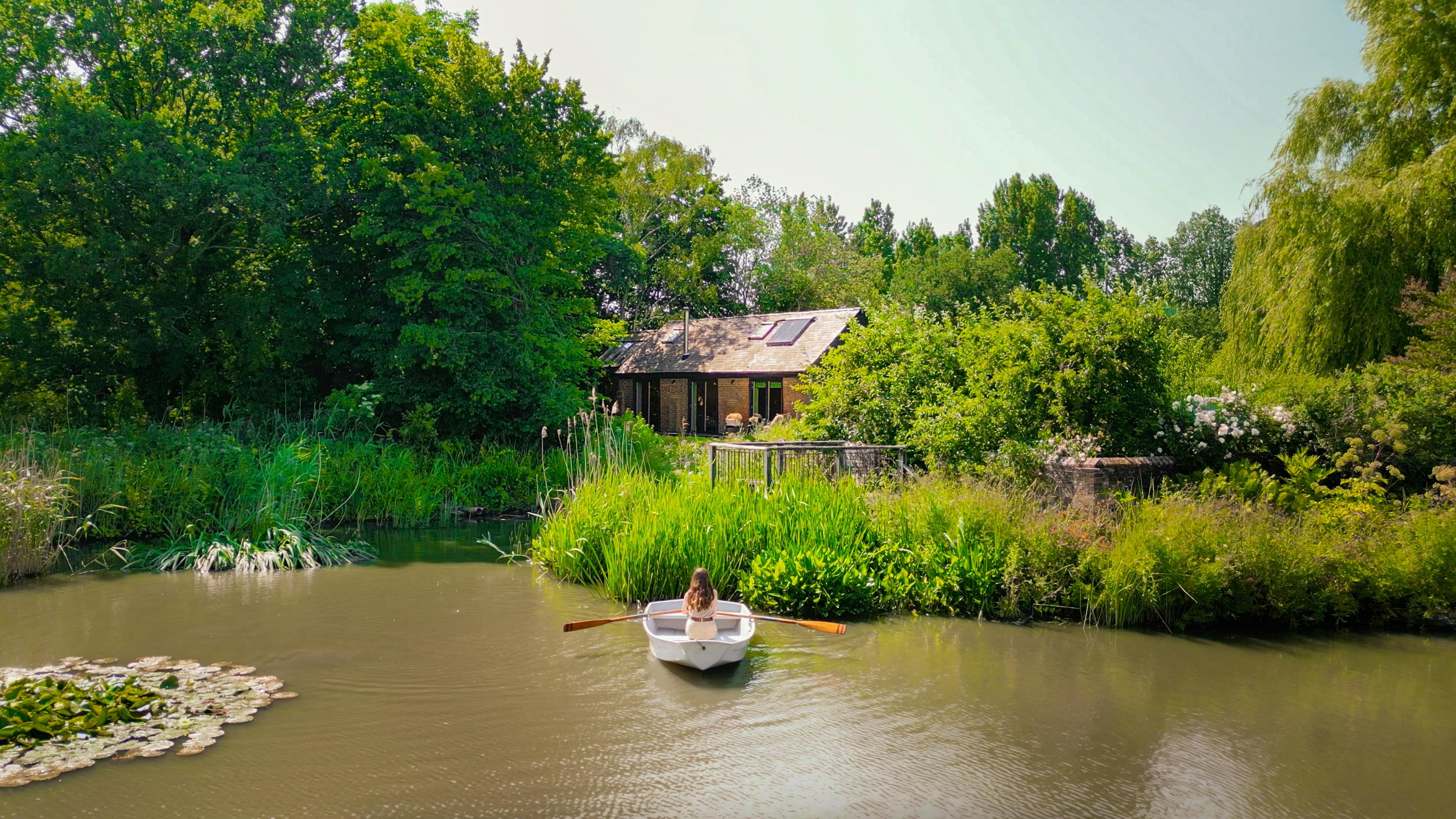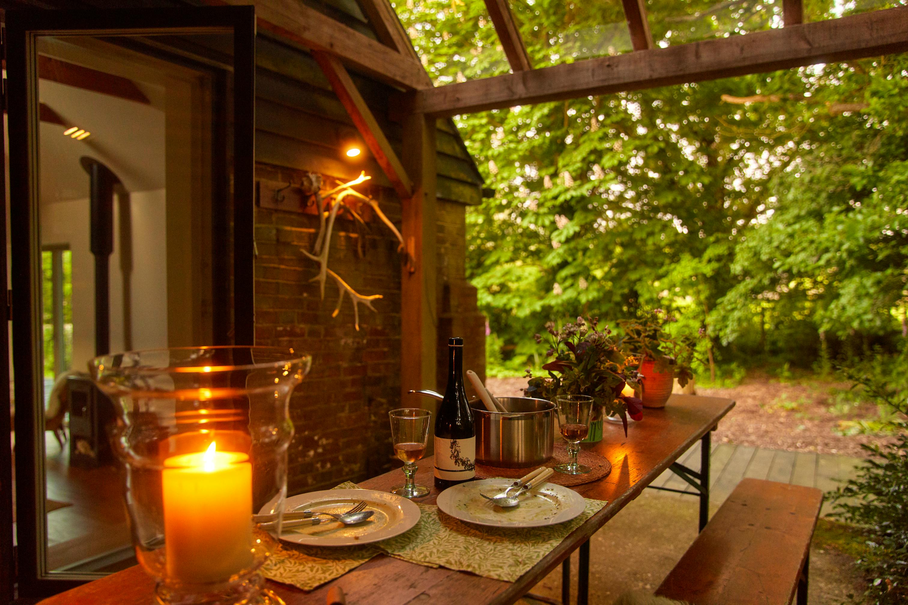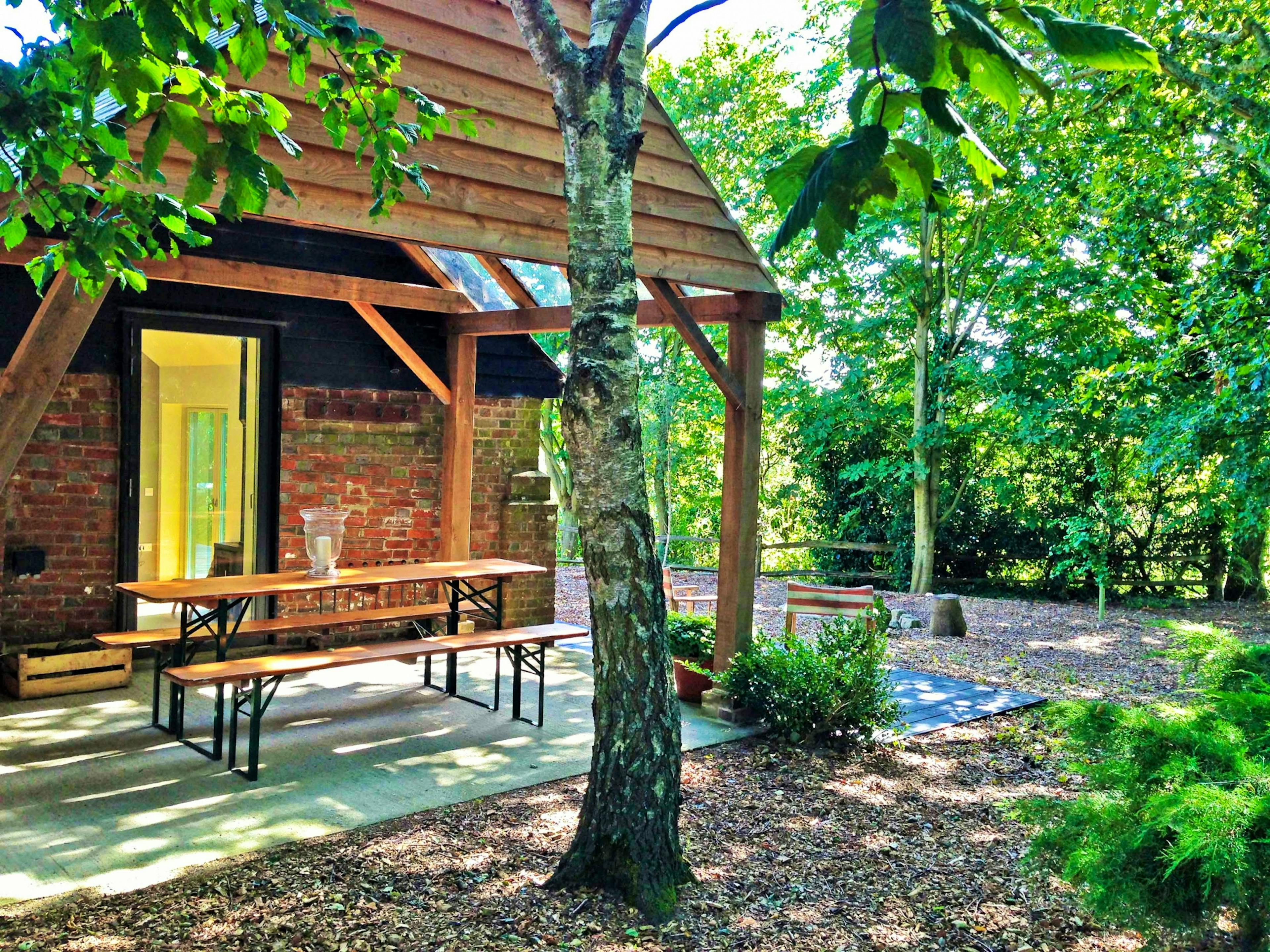 A beautiful eco-friendly hideaway in woods beside a lake in the Sussex countryside.