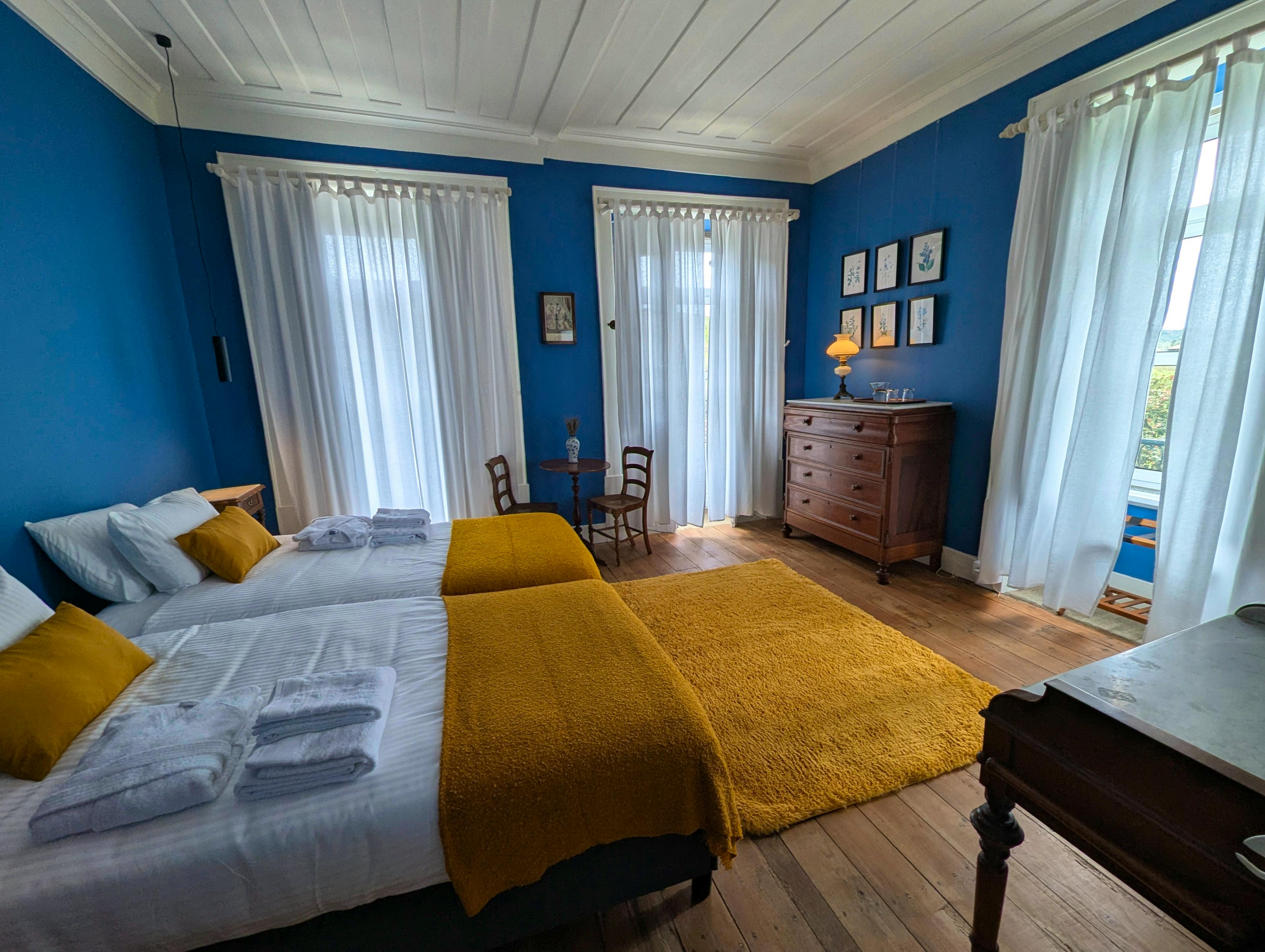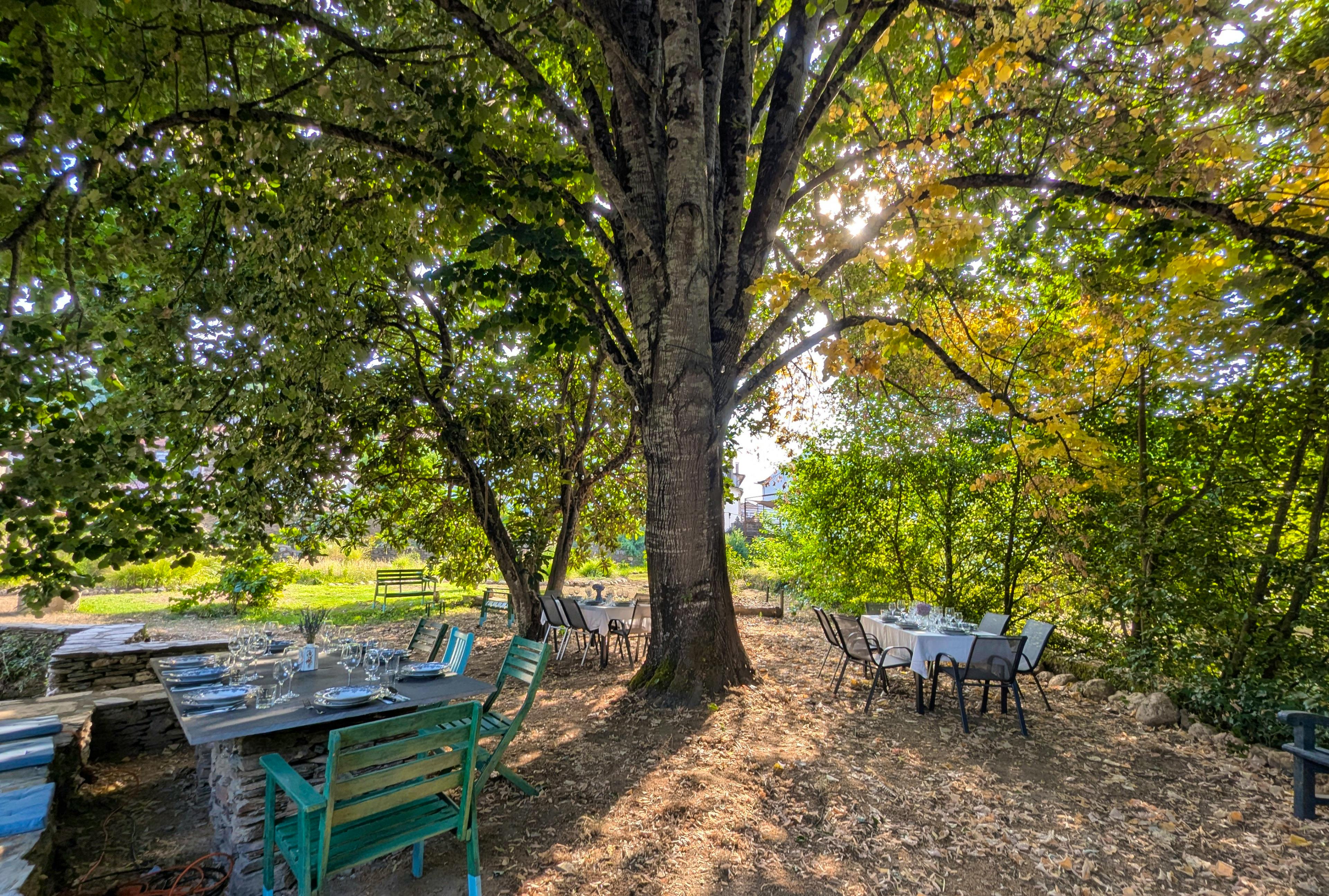 Terra Verde is a beautiful and tranquil home in the heart of Central Portugal that sits within 60 hectares of lush fields and ancient woodlands. This beautifully restored country house sleeps a total of 14 guests, and provides you and your loved ones with a peaceful place to slow down, recharge and connect with the nature around you. This 18th century country house has been lovingly and carefully restored, creating a space that still holds true its original character, whilst offering you and your group modern comforts and understated elegance. Each room tells a story, with antique wooden furniture and carefully curated decor that shows off timeless craftsmanship and astute attention to detail. On sunny days, relax in your peaceful gardens, breathing in that fresh country air. The gardens flow effortlessly from the living spaces and you can sit in the Bamboo Garden, unwind beneath the gentle shade of the Linden Tree Garden or gather at the Oriental Corner, where stone and wood create a tranquil, meditative atmosphere. The country house also features two serene terraces - one overlooking the gardens, the other facing the orchard - while shaded seating areas and stone tables near the stream below offer peaceful spots. To top it off, you also have your own private river beach, meaning you can enjoy a dip in the cooling water in peace or relax in the sand. When it comes to preparing meals during your stay, you have a superbly-equipped kitchen for self-catering, allowing you to whip up delicious feasts for your group. You can then dine in style in the grand dining room, which sets the scene for social meals together that stretch into the night. However, if you don’t fancy cooking yourselves, you have the option to make use of a private chef from the owners’ exceptional selection of international and local culinary experts. The home’s adaptable spaces offer plenty of flexibility, ensuring you have a number of options on how to enjoy your time. There’s a charming tea room, an art studio, a game room and areas for workshops, dance and movement, making this stay perfect for group activities, creative retreats and intimate gatherings. When night falls, you have seven beautifully restored bedrooms to choose from, each blending timeless charm with modern ease. From plush hybrid mattresses that convert between roomy doubles and singles, to Scandinavian-style individual duvets for uninterrupted sleep, every detail is taken into consideration. For added privacy, two rooms can be combined into a self-contained apartment, perfect for families or friends wanting a secluded stay away from the rest of the group. Terra Verde’s shared showers offer a spa-like experience, with pure spring water, strong pressure and eco-friendly heating from a state-of-the-art heat pump. Polished fixtures, generous space and a smart cleaning alert system ensure they’re always pristine and ready to enjoy. If you decide to venture out and explore the area, you’ll find that Central Portugal is a hidden gem where rugged mountains meet lush forests and crystal-clear waters. Nestled between the Serra da Estrela and Serra do Açor ranges, this region blends untouched natural beauty with rich history - from wildflower-filled valleys and soaring peaks to ancient architecture and thrilling outdoor pursuits. Near Terra Verde, the Fraga da Pena Waterfall offers a secluded cascade hidden within the peaceful woodlands of the Açor range. The Schist Villages (Aldeias do Xisto) feature a network of well-marked trails connecting traditional stone hamlets, each with its own unique character. Both guided and self-guided options are available, with skilled local guides providing nature walks, photography tours and survival skills workshops in the surrounding forests.