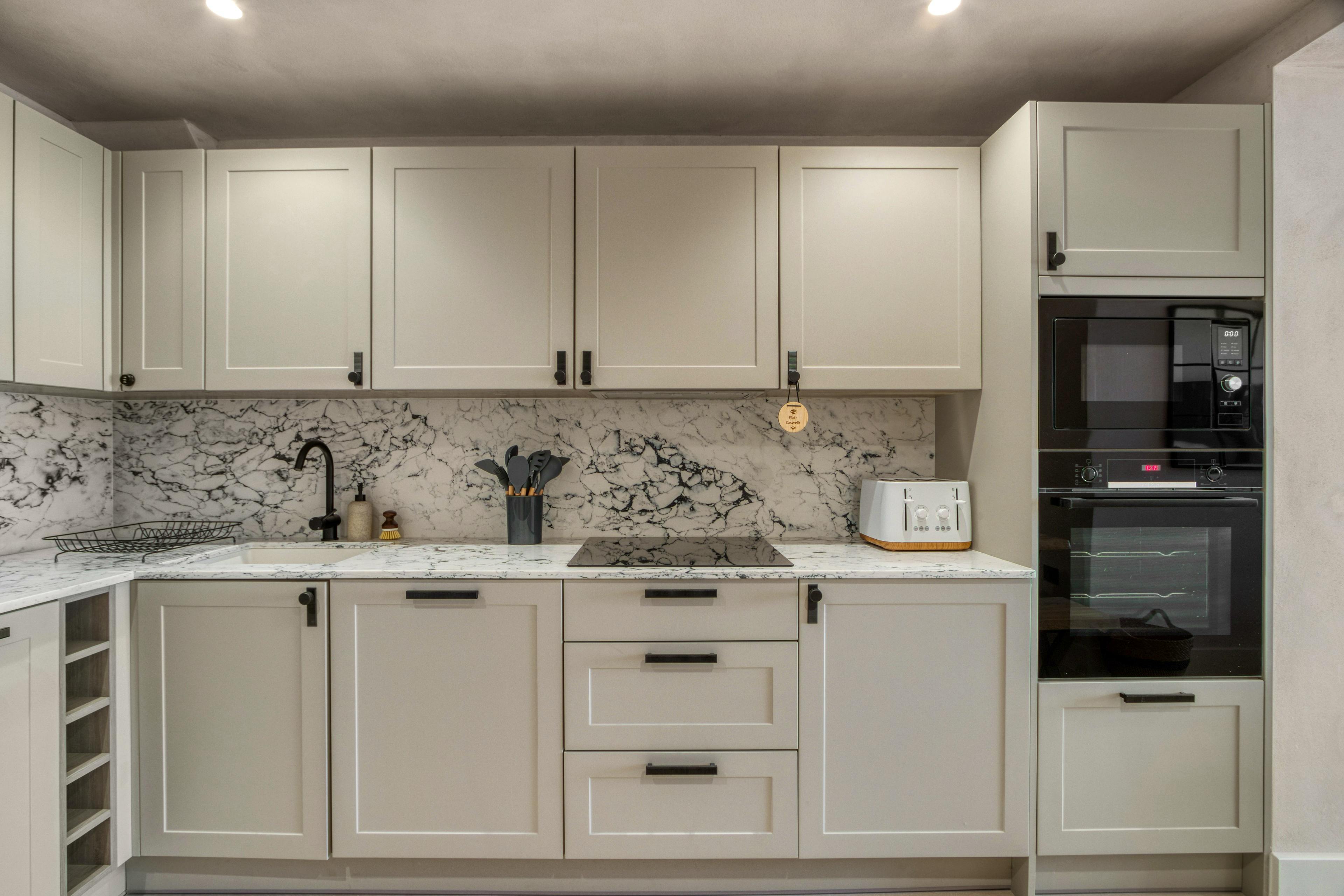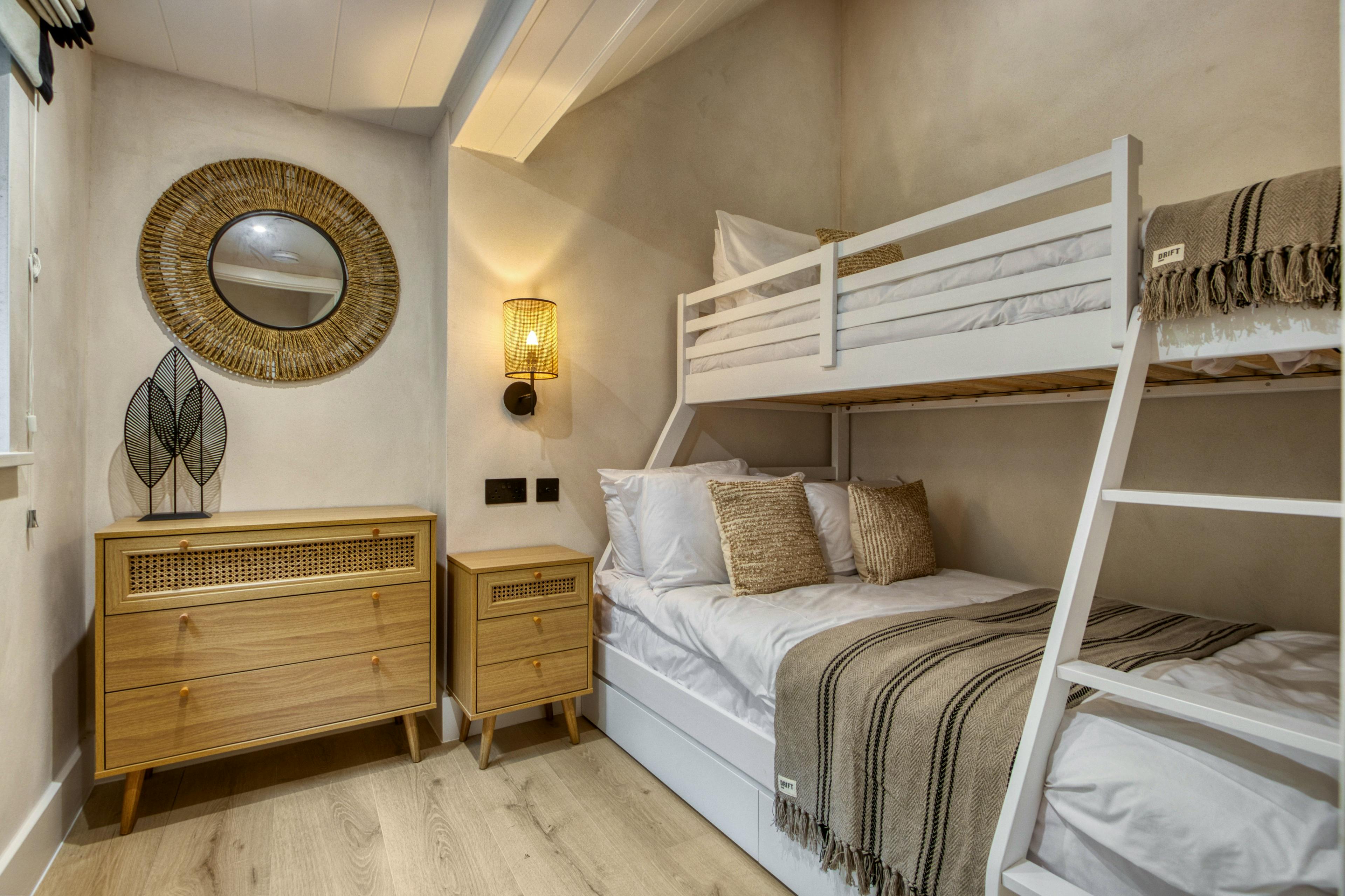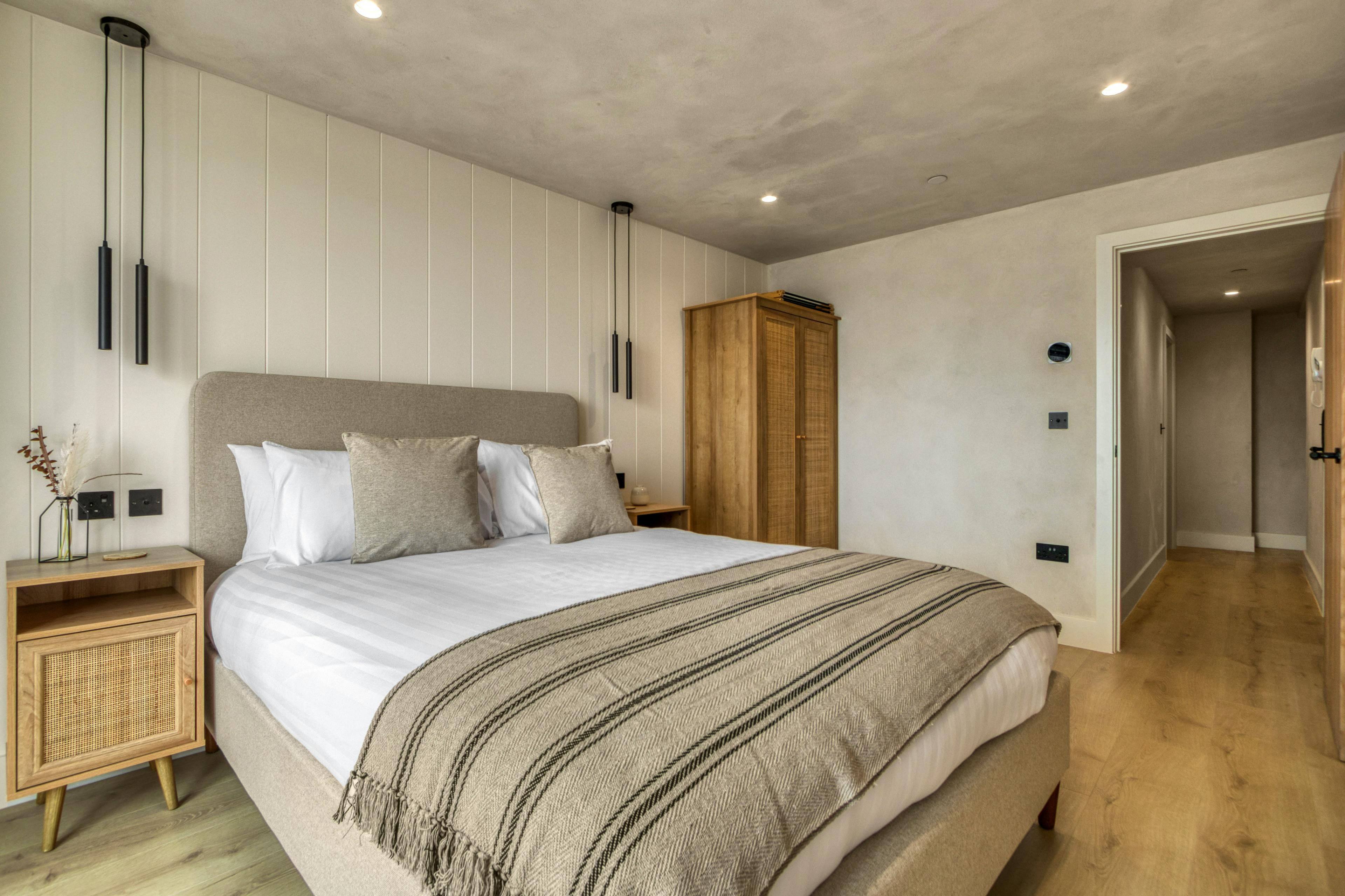 The AROS is a collection of three luxurious apartments offering a fabulous stay by the sea in the village of Mumbles. Tucked away on the edge of the Gower Peninsula, these three amazing retreats are ideal for families or groups of friends looking for a break by the sea. The three apartments offer delightful coastal views, modern amenities and an incredible location on the water’s edge. All of these apartments have been recently renovated and they make use of a combination of Japanese and Scandinavian design. The first apartment is the Coastal Penthouse. This incredible, top-floor apartment sleeps five guests across two bedrooms. This fabulous space offers breathtaking views of the sea and a calming open plan living room with high ceilings and beautiful decor. Get comfy on the L-shaped sofa in the lounge whilst watching a movie on the smart TV, whilst staying connected to your loved one as they prepare dinner in the superb kitchen. Then, when food’s served, dine together on the modern dining table that sits next to a window offering mealtimes with a view. The penthouse offers up two lovely bedrooms, one of which has a king size bed and the other a double with a single bunk above. There are also two spa-like bathrooms, one of which offers a walk-in shower and the other a bath and a shower. Guests in this apartment also have sole use of the terrace at the rear of the property where you can make the most of sea views over the roof top of the property. This is a delightful spot to spend the evening with a drink in hand after a day on the beach. Up next is The Cove. This apartment is equally stylish, yet slightly smaller than the penthouse. Here a cosy lounge offers comfy seating and a wall-mounted TV next to a big bay window where you can enjoy uninterrupted views out to sea. Just off the lounge is the stylish and modern kitchen, where there’s a dining table with room for your entire group. When bedtime beckons, The Cove has two bedrooms on offer, one of which has a king size bed and the other has two singles. There’s also a fab family bathroom, which has a walk-in shower and a luxurious free-standing bathtub where you can enjoy an indulgent soak in peace. The final of the three apartments is Ocean Retreat. This is another grand and spacious apartment, with a delightful open-plan living space that is similar to the penthouse. Again, you’re afforded fantastic views across the bay and the nature of the space ensures you can all socialise together whether you’re relaxing in the lounge, sitting up the dining table or cooking away in the kitchen. Ocean Retreat has two bedrooms on offer, one of which is a king bed and the other a double. Then there are two modern and stylish bathrooms, one of which features a grand walk-in shower and the other with a shower over the bath. When it comes to filling your days, you’re nicely placed on the enchanting coastline of South Wales. Mumbles is a charming seaside town where you can wander the promenade and soak yourself in the vibrant local culture. You’re also close to the Gower Peninsula, which is Britain's first designated Area of Outstanding Natural Beauty. Explore the rugged landscape where you’ll find golden sandy beaches, dramatic cliffs and serene countryside.