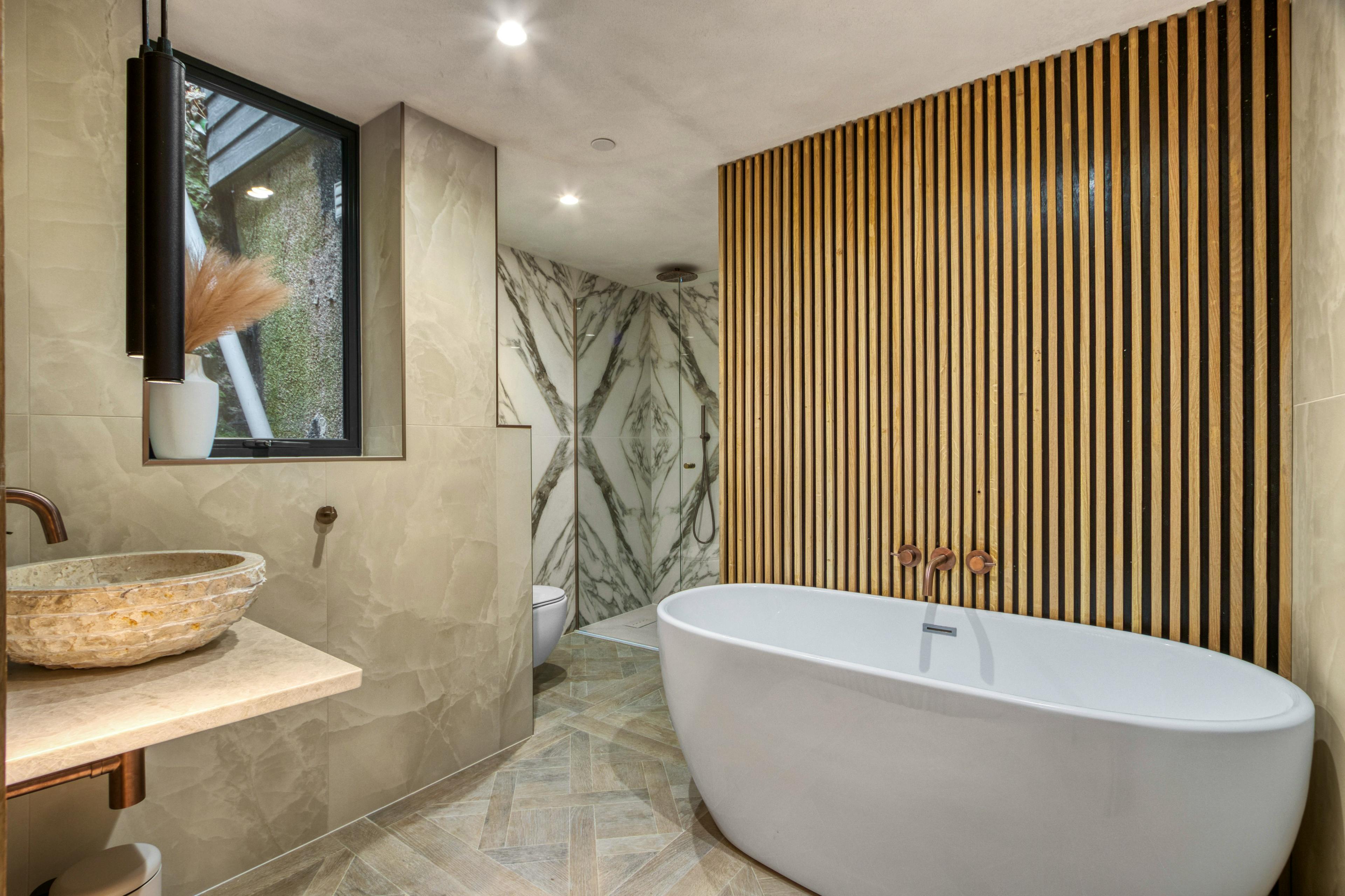 The modern bathrooms offer a combination of grand walk-in showers and beautiful baths for indulgent soaks.