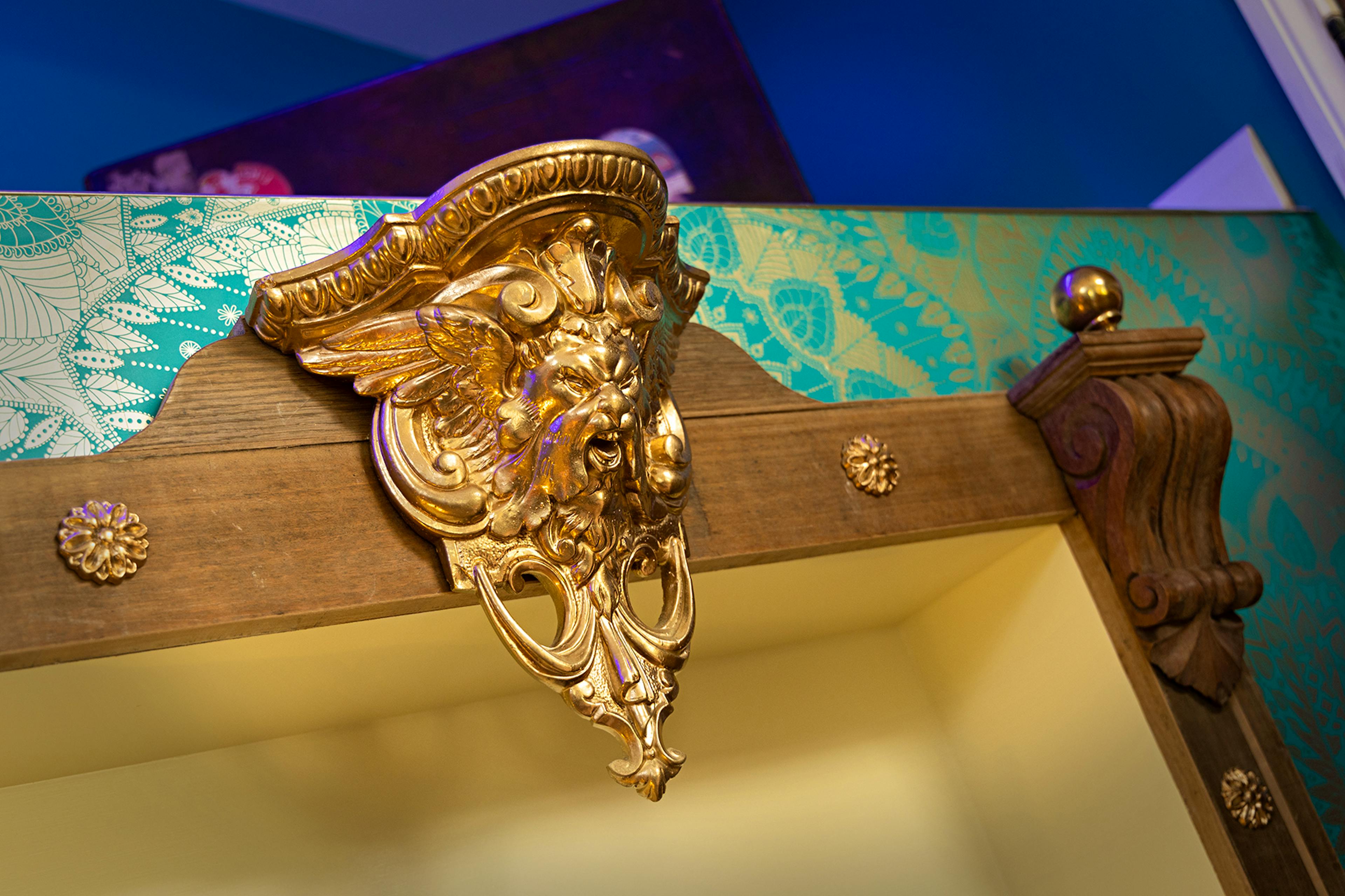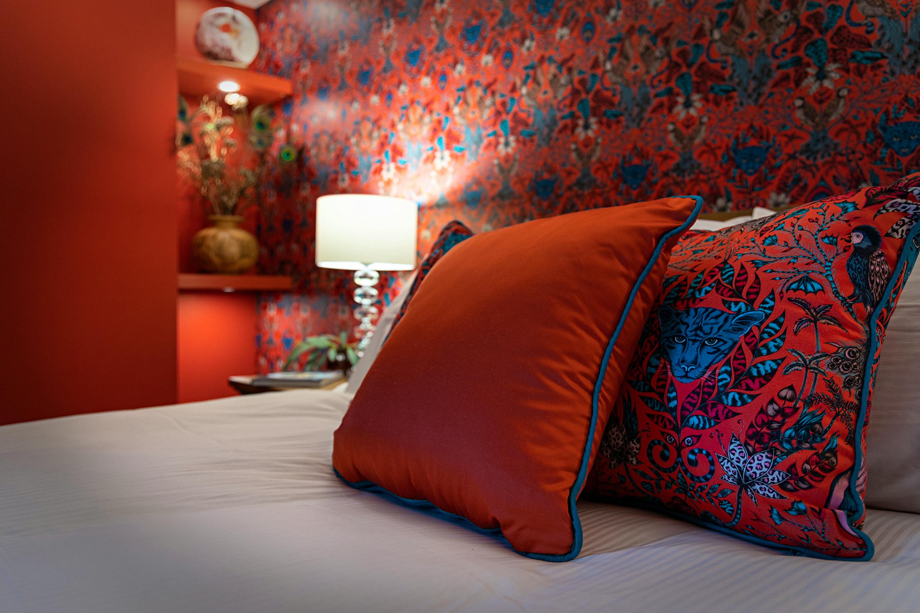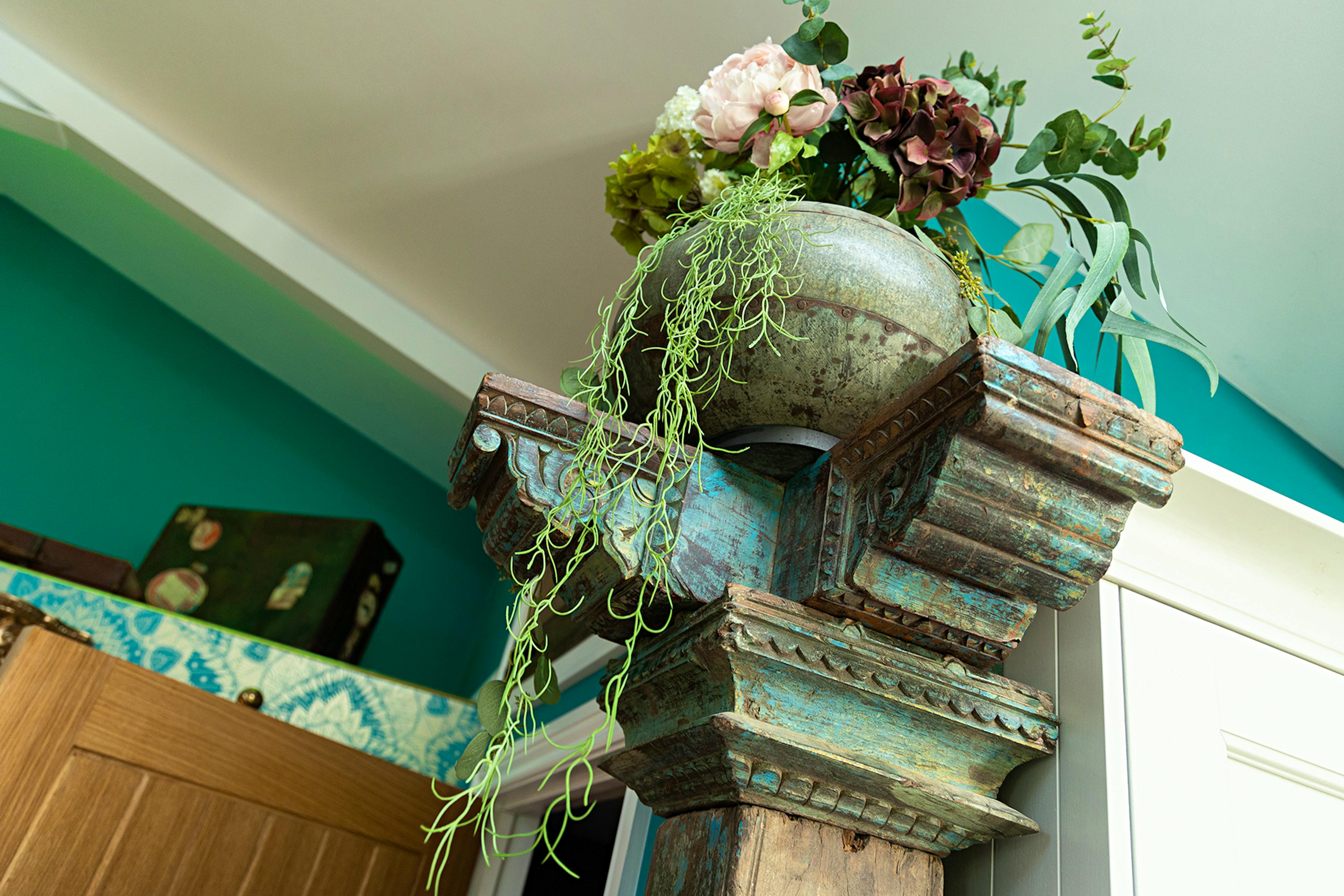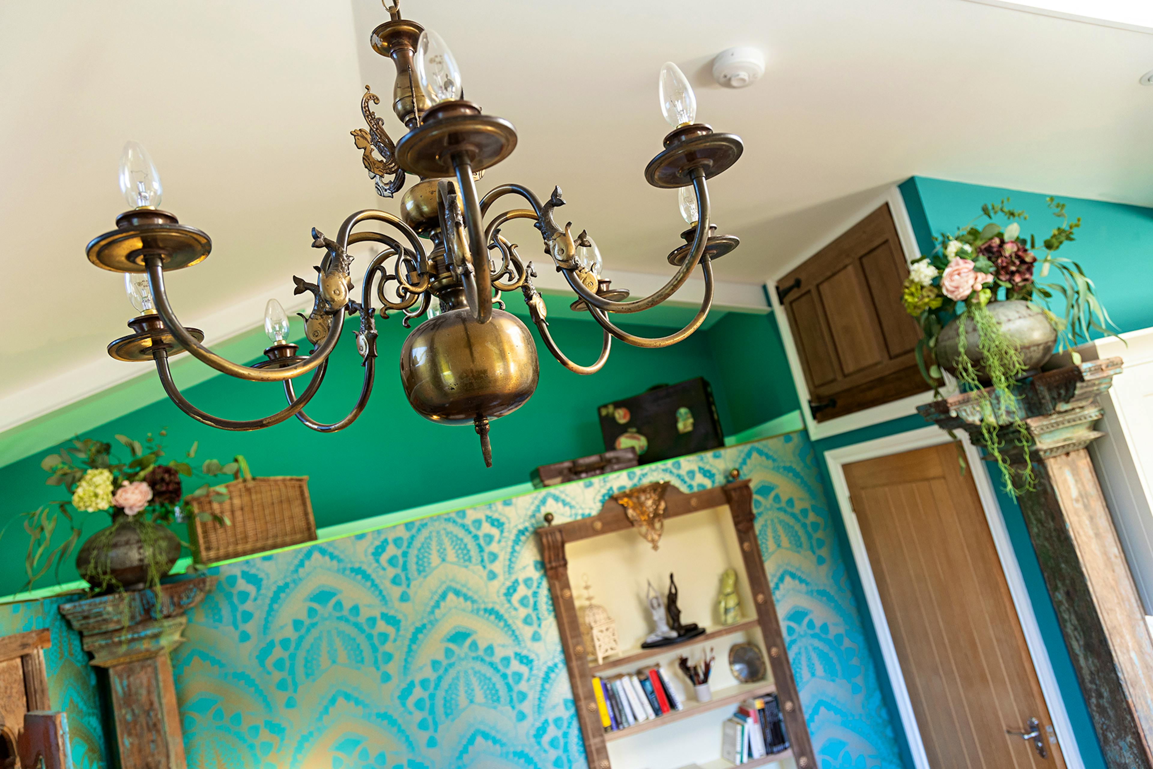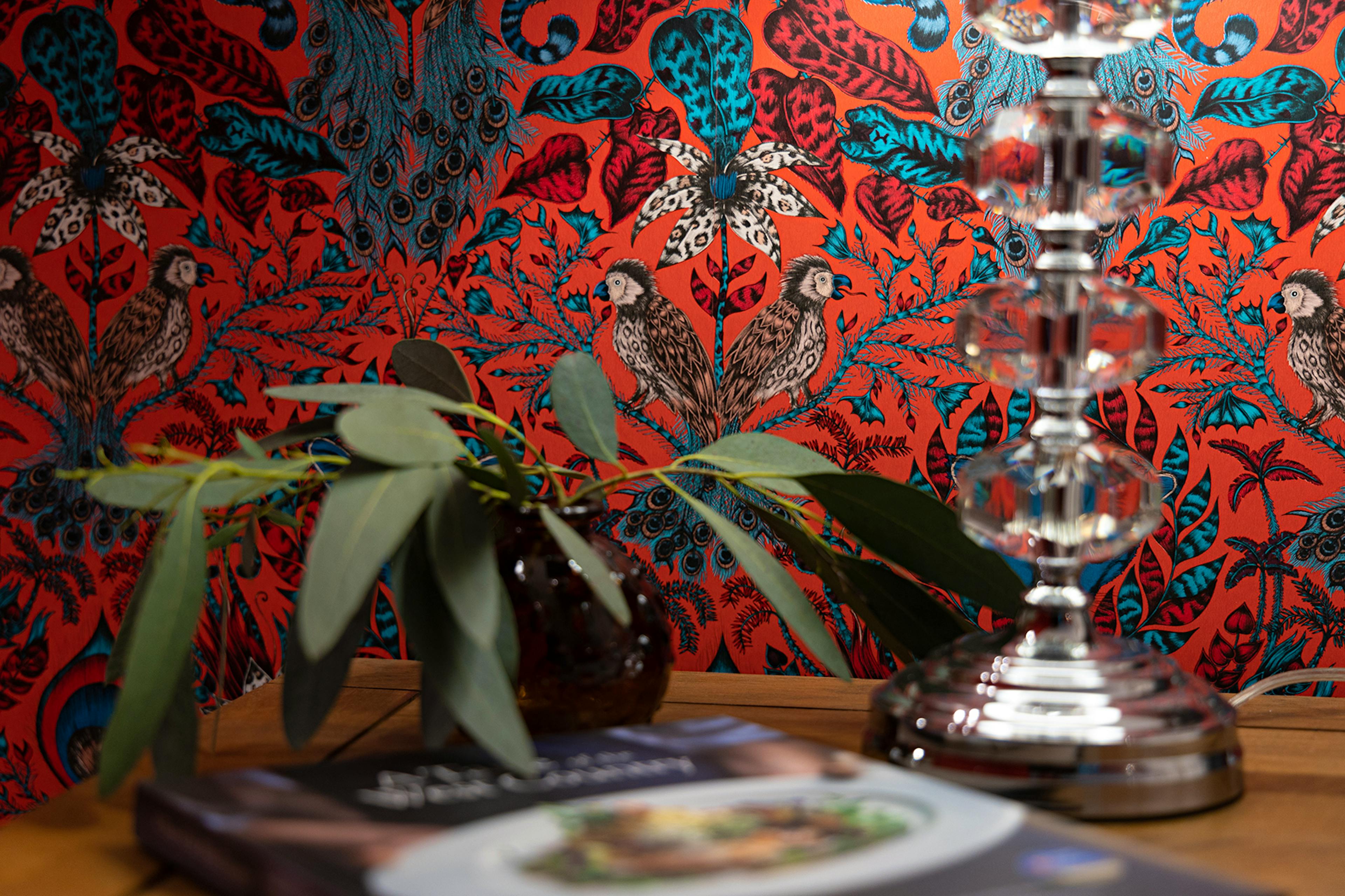 Step inside to find vibrant designer wallpaper, hand-carved Indian teak columns and a unique balustrade, all adding character to the chic living area.