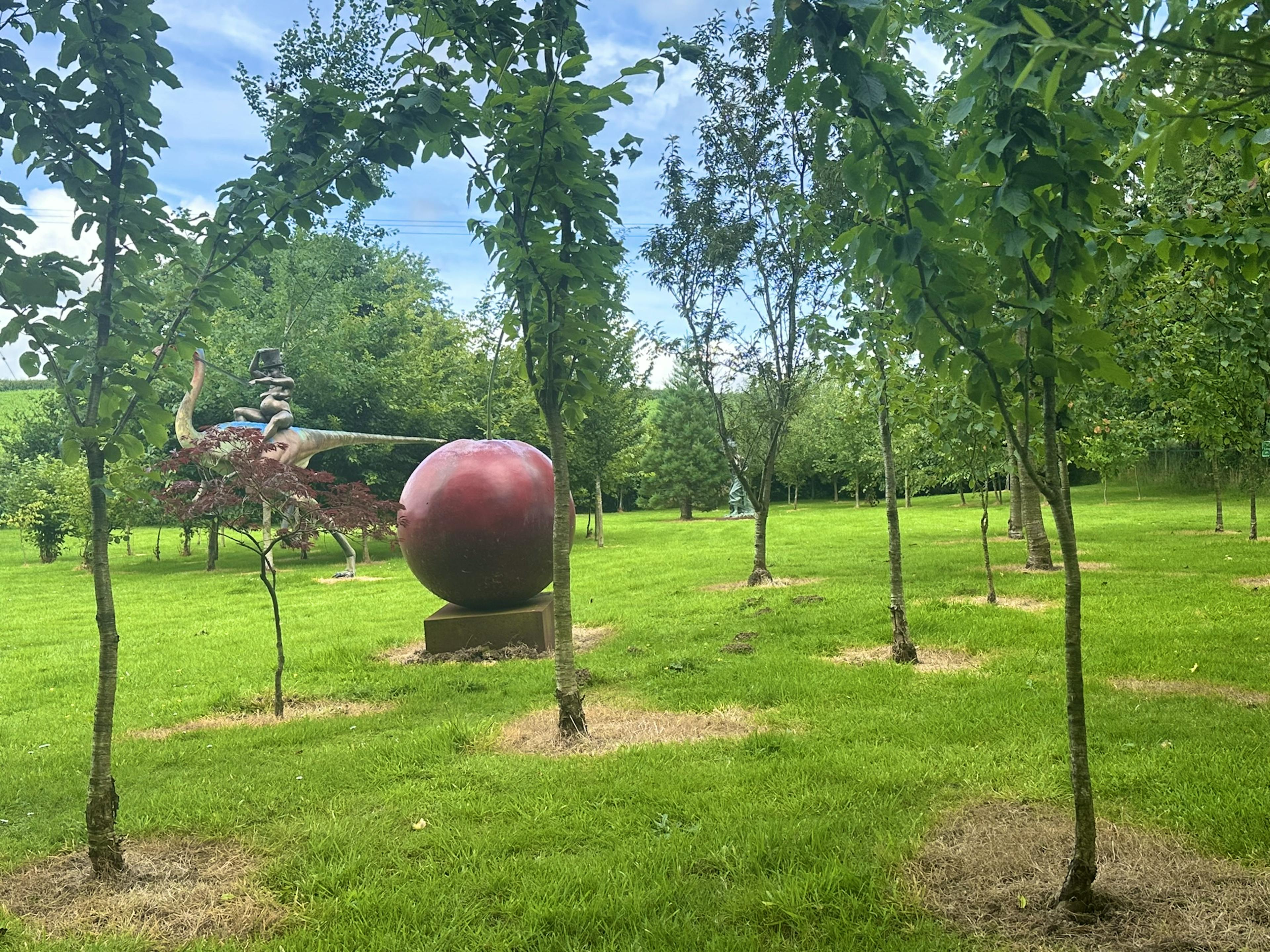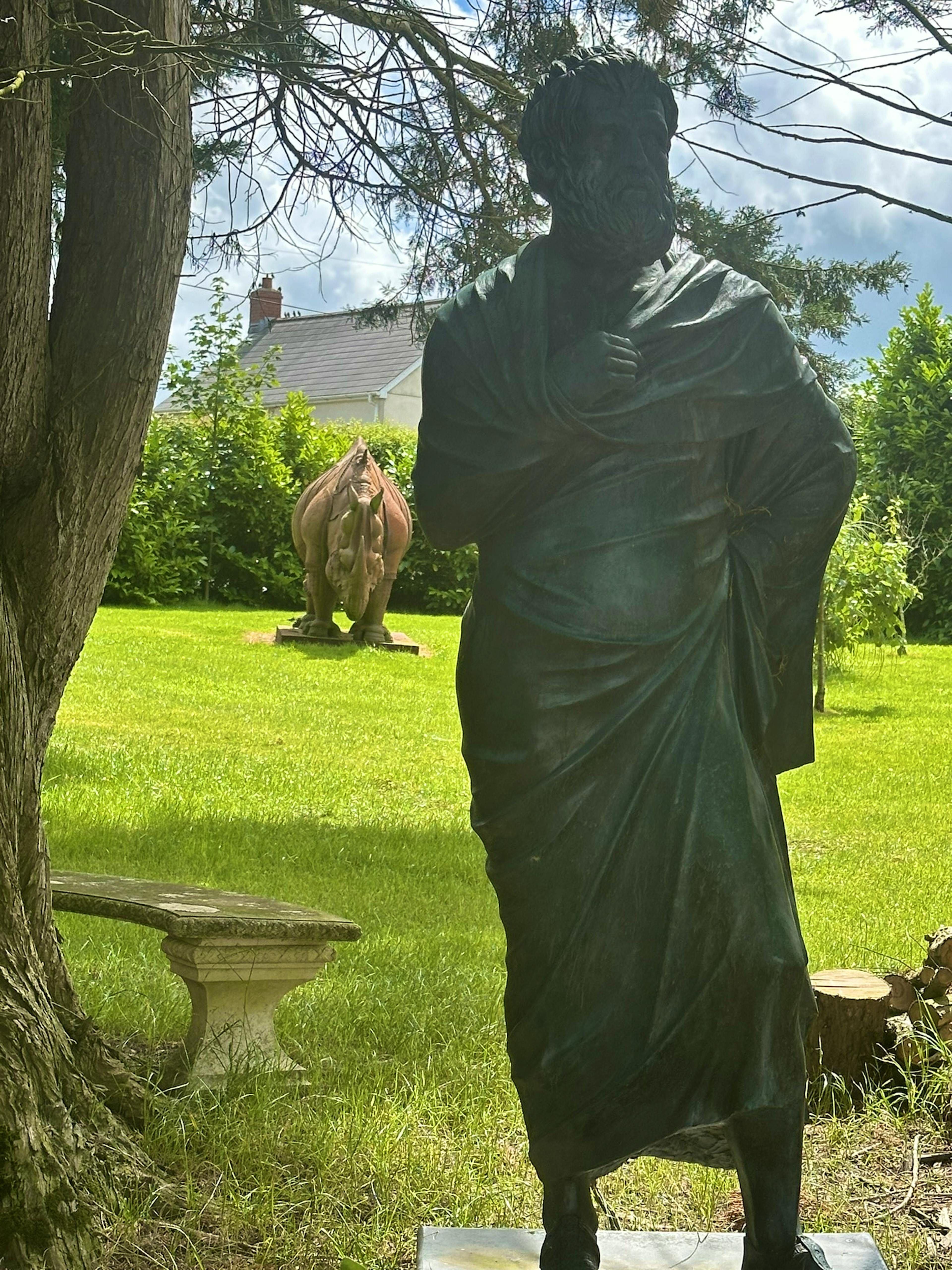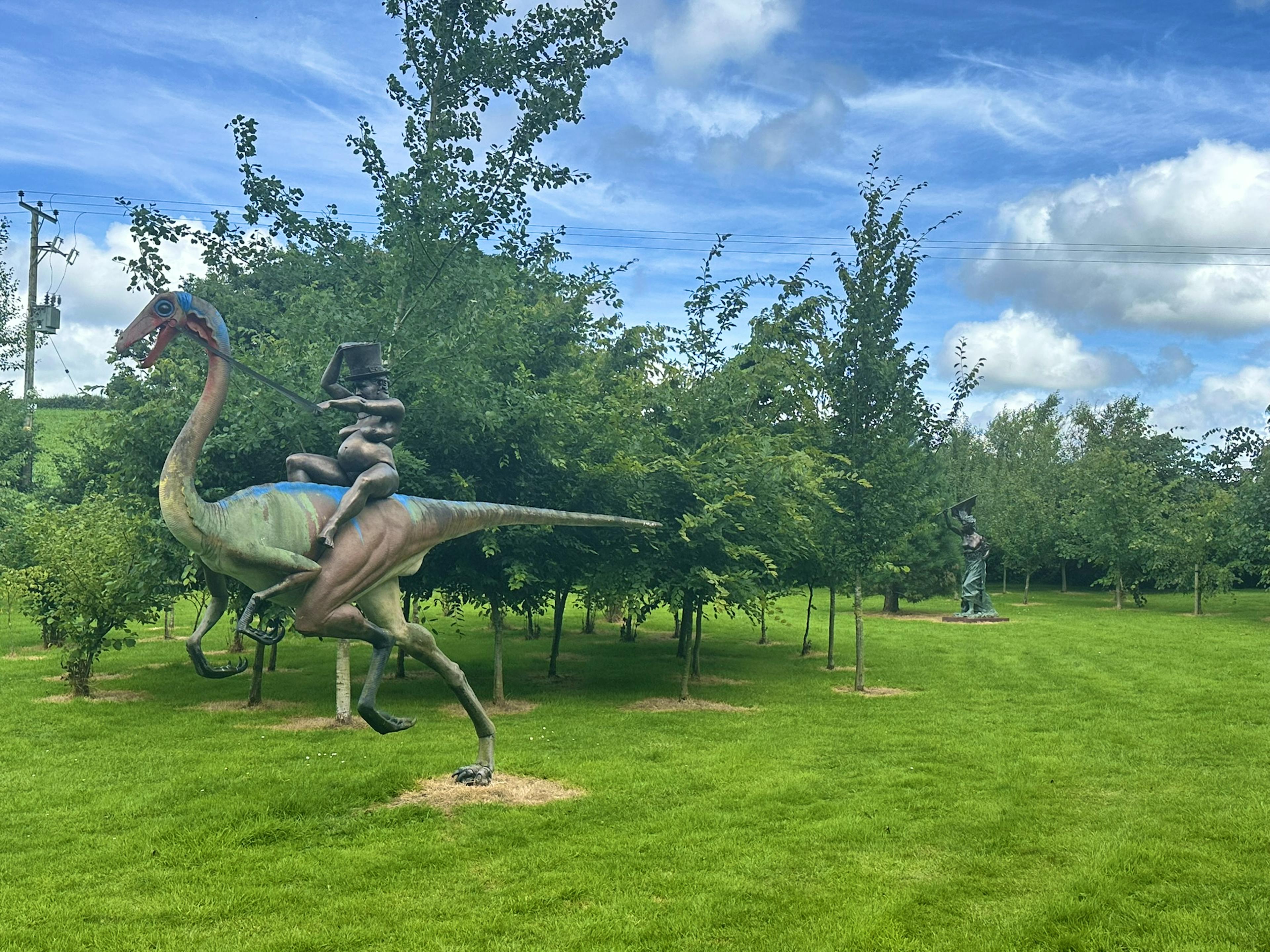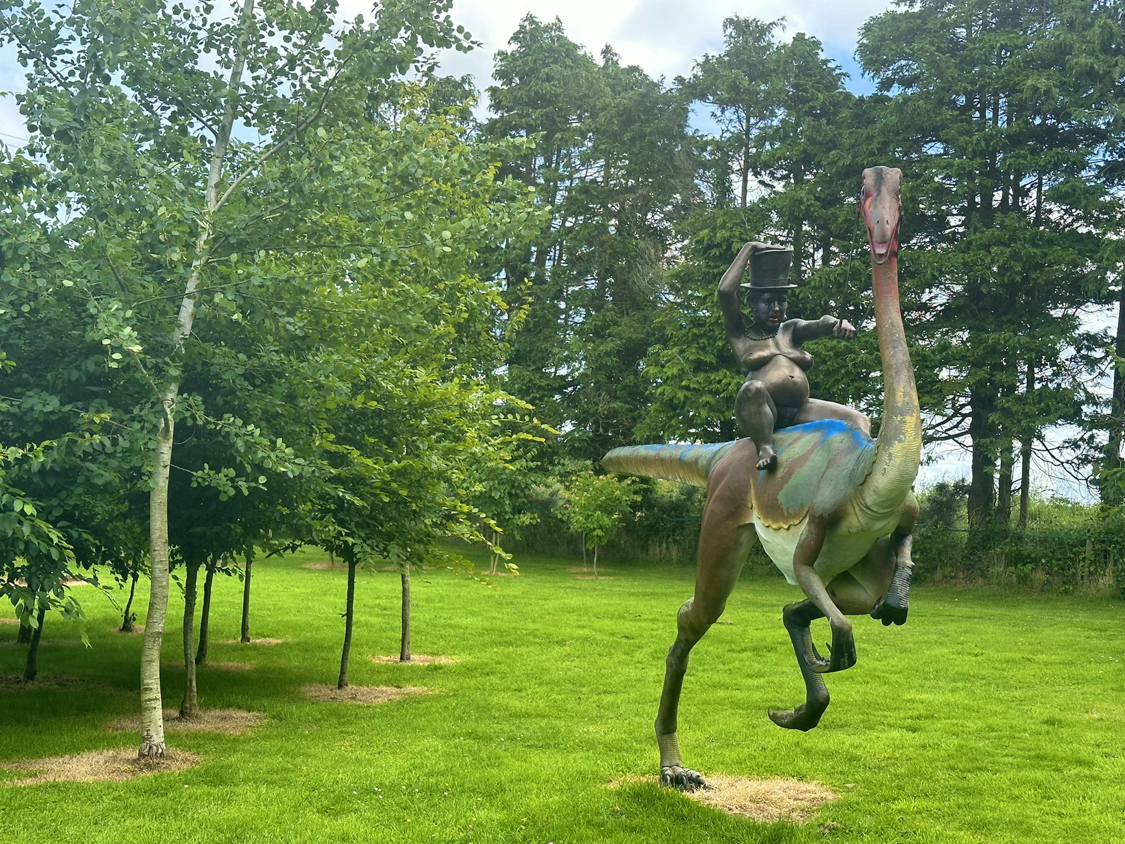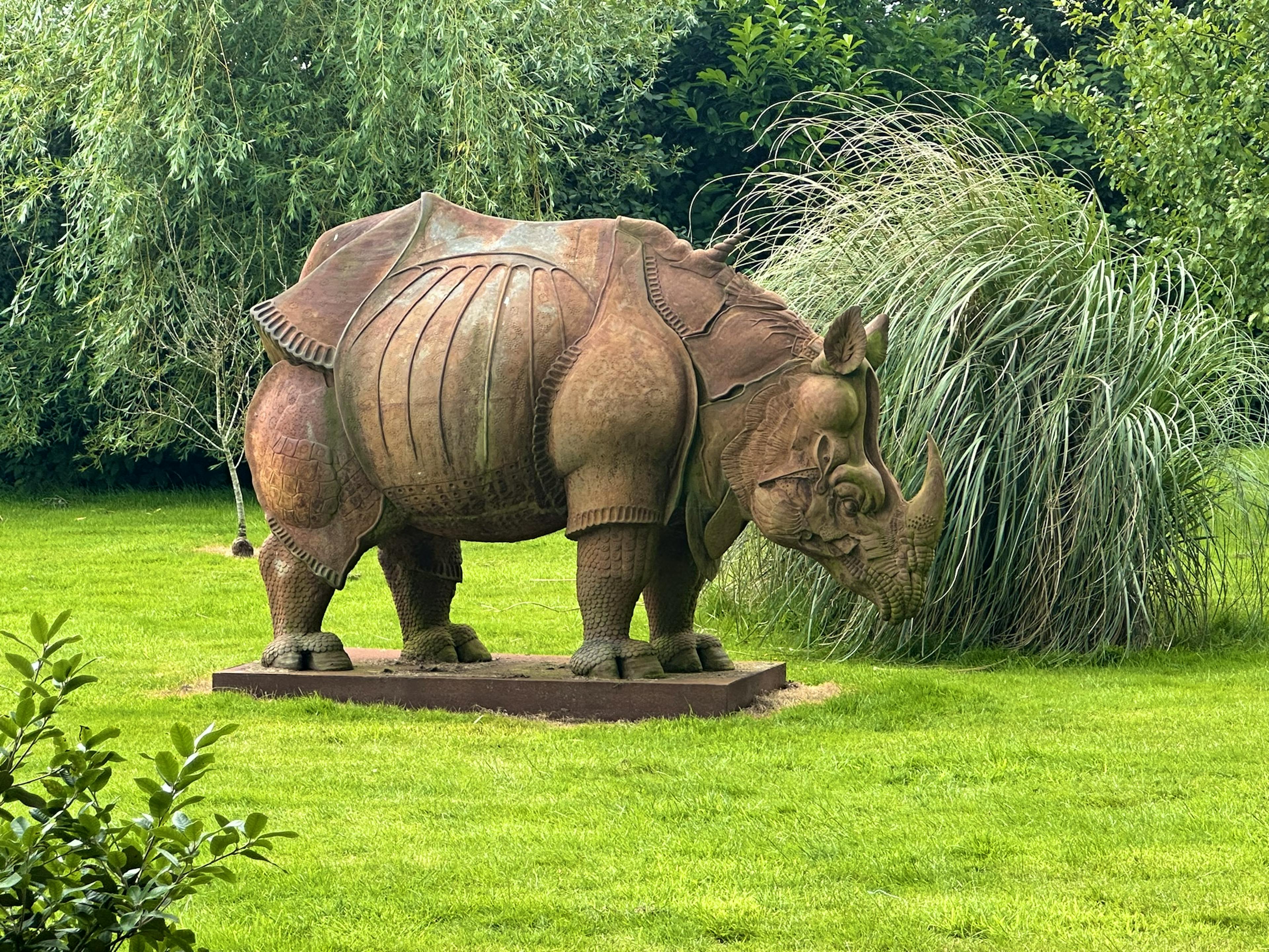 The cosy lounge area, with large sash windows, overlooks a sculpture garden, creating an enchanting view while you relax with a good book.