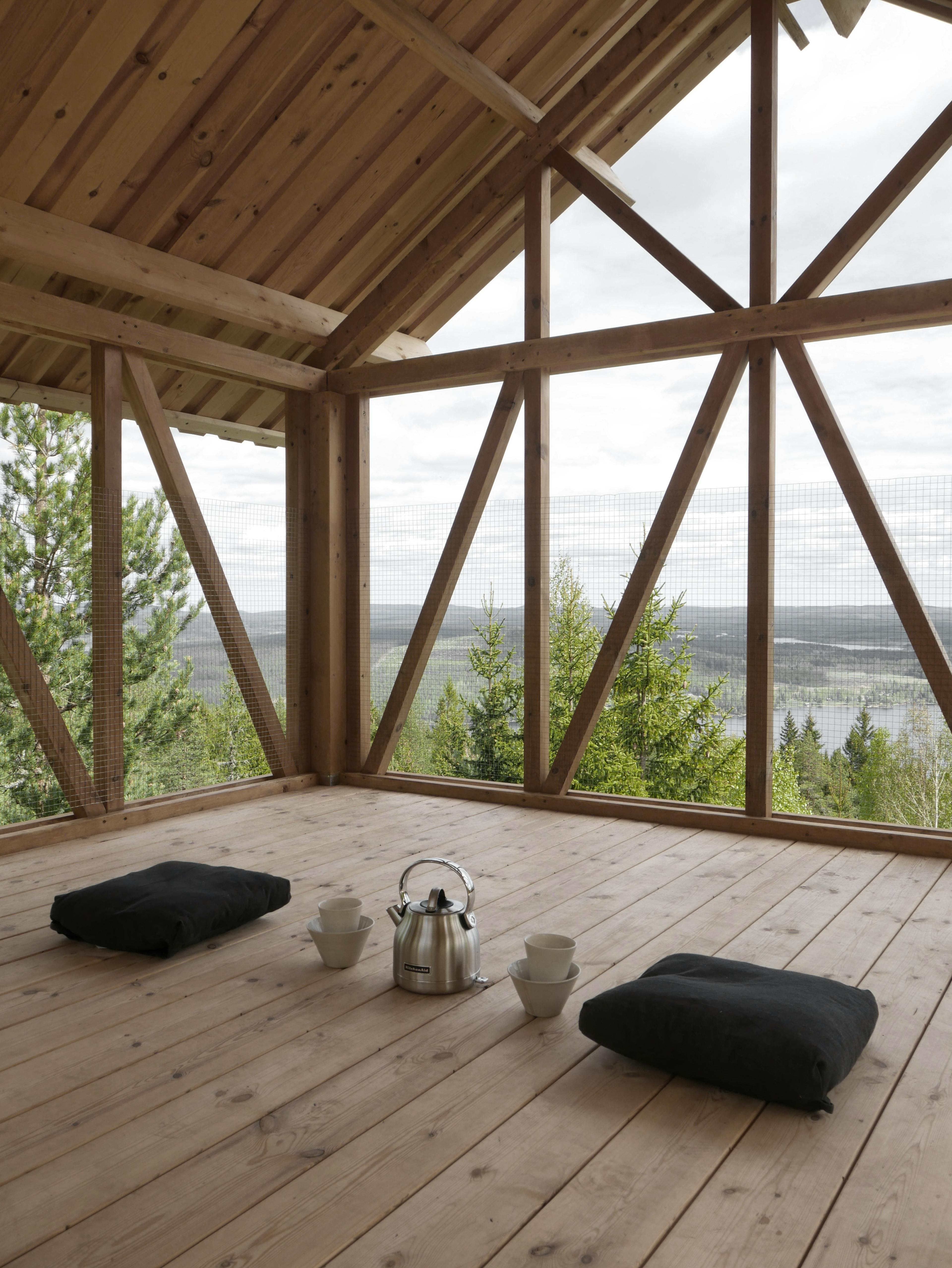 Feel at one with nature and discover peace and tranquillity at the Bergaliv Loft House, a 33 foot construction among the Swedish treetops. The property sits on the hillside of the Asberget mountain in the north of the country. Set across 2 stories, the Loft House is lifted from the ground by a timber framework in order to not disturb the natural habitat it has become part of. The interior is designed to be minimalist and to have disregarded any unnecessary clutter and noise so up to 2 guests staying can also de-clutter their mind. Large windows allow light to flood in onto the mainly pale wood, which has been insulated with flax fibres to adhere to old Nordic building traditions. In the downstairs living quarters, comfortable futon mattresses are hung from the wall in order to allow as much space as possible for activities, with linen sheets on a sisal and wool mat ensuring a great night's sleep. There are further wooden benches in the window for rest and relaxation or seating during meal times, with a delicious breakfast including bread from the local baker provided. There is also a small bathroom. A wooden staircase leads up to the roofed outdoor terrace, where the walls have been stripped away to allow uninterrupted views of the beautiful surroundings. This peaceful vantage point is the perfect place to truly unwind. The creators of Bergaliv felt that the location high among the treetops on the mountain slope by the Ljusnan River Valley in Halsingland really captured the soul and they are looking to further that even after staying in the Loft House. Guests can then head to the Orbaden Spa and Resort down by the riverside, with access granted for one day as a complimentary part of their stay. The fantastic views help to make this experience even more special, which can be enjoyed whatever the season as the outdoor pools are heated and the sauna has large windows overlooking the river. Salus per aqua, or healing through water, is the main aim and is further provided by the indoor pool, hot tub, and mineral salt bath.