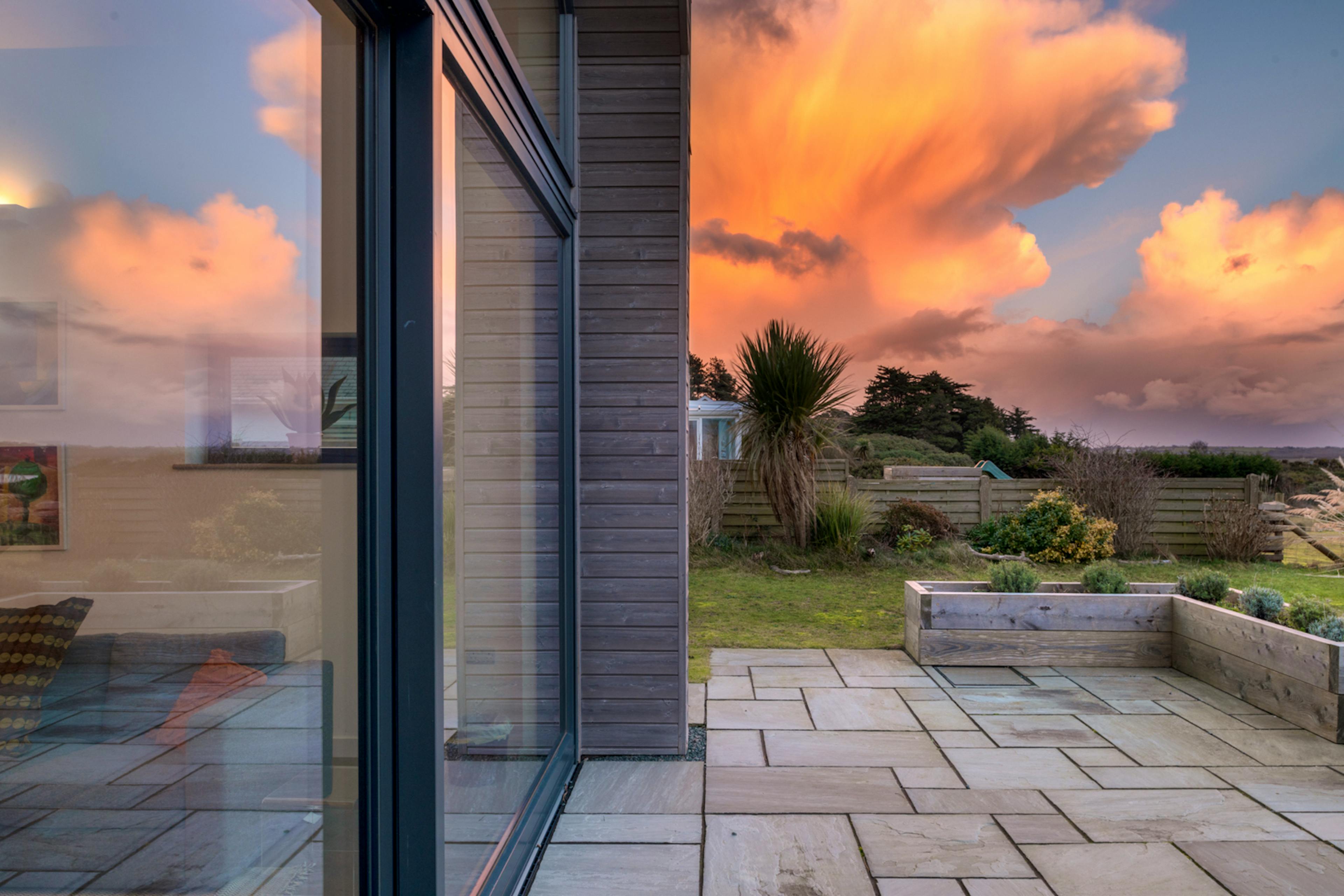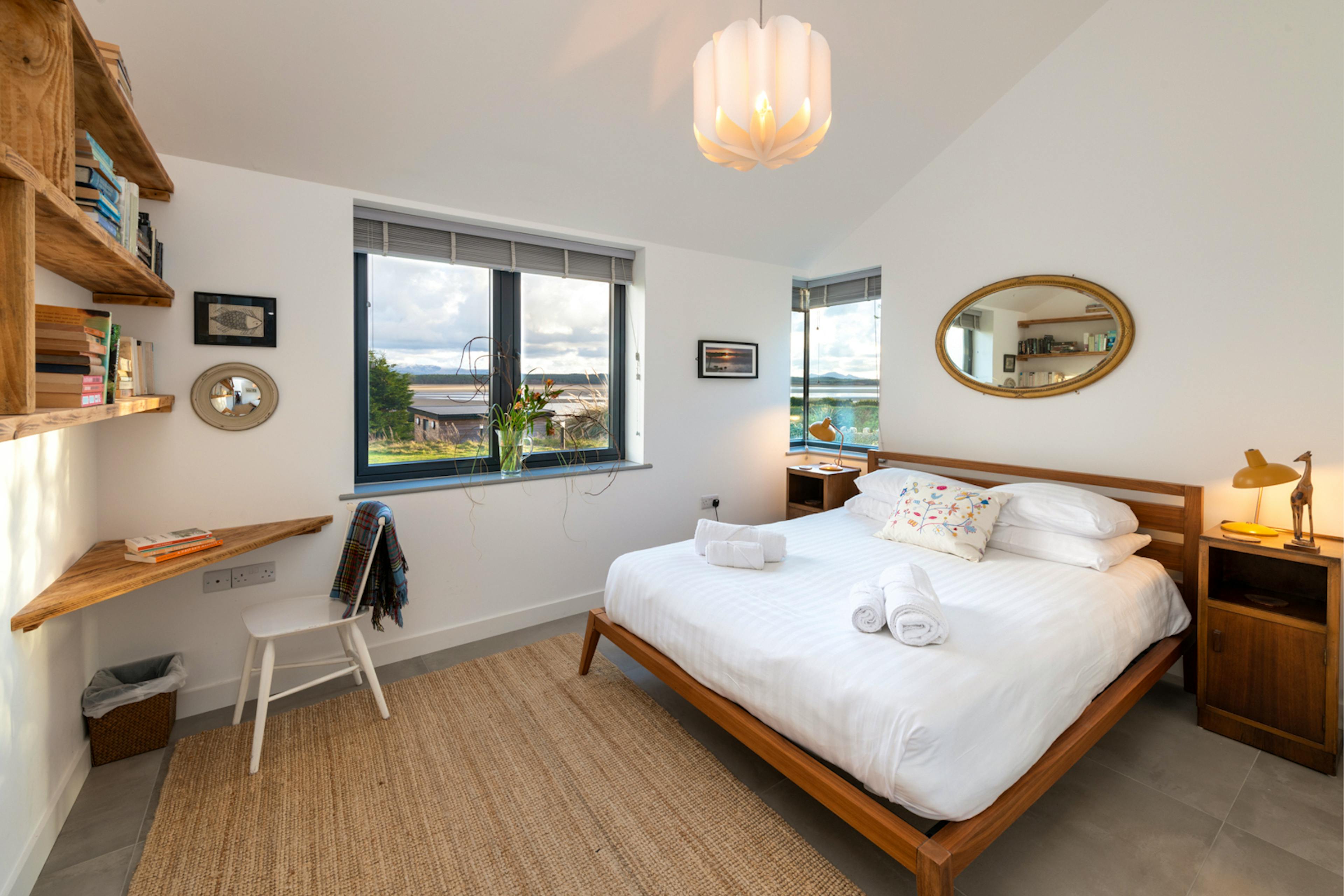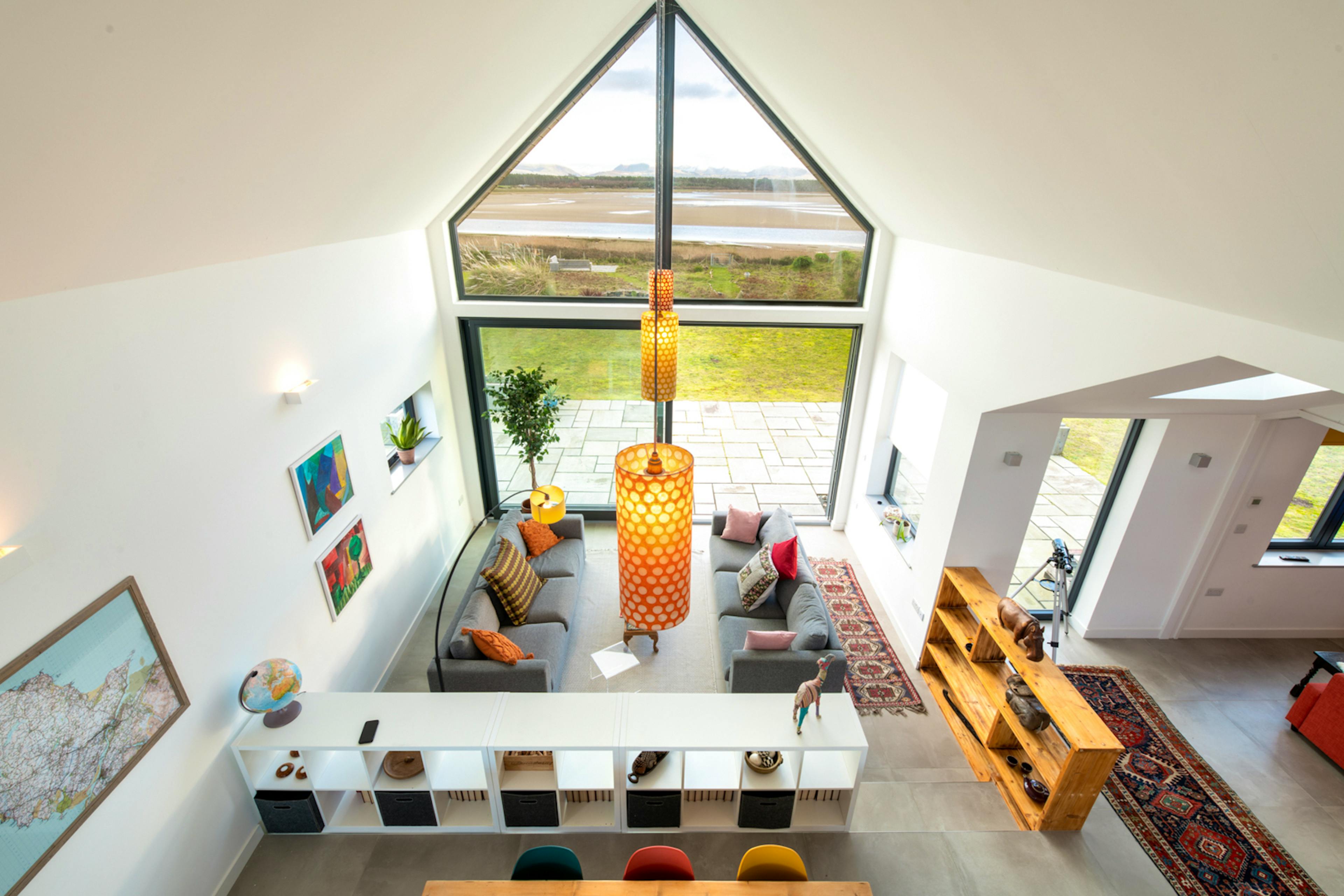 Watch the sunset over the beautiful shores of the Malltraeth Estuary in North West Wales with friends and family in a tranquil, rewilded garden. This stunning property is a sanctuary of peace of quiet for up to six people to stay in luxury and style. The huge cathedral-style ceiling and full-length trapezoid windows fill the open-plan living and dining area with light. Glorious views over the Afon Cefni lead up to imposing hills in the distance, often covered in snow during the winter months. In warmer times, open the sliding doors to the large patio and rewilded garden that leads to the water’s edge and onto the beach. Kids can explore the gardens complete with trees, a den area and a trampoline. Entertain friends and loved ones with alfresco dining as the evening draws in, or embrace the new day with your morning coffee and breakfast by the water. Entering into the house, you’re greeted with a minimalist yet cosy open plan kitchen, living and dining area. The comfy sofas are perfect for sinking into after a long day exploring the Anglesey countryside. The dining table and fully-equipped kitchen contain everything you need to fill empty stomachs and spend the evenings socialising with loved ones. For those looking for some extra peace, there’s a mezzanine above the kitchen that’s great for reading, relaxing or taking in the stunning views of both sides of the house. As the night draws in, head to the TV snug and cuddle up under a blanket in front of a film or play some games. When the time comes to rest those sleepy heads, choose from one of two king size beds or twin beds for the kids. Hotel-quality bedding and towels make sure you sleep comfortably and wake up refreshed for a full day exploring Anglesey. Malltraeth is synonymous with wild dramatic beaches, beautiful countryside and a forest reserve that’s great for exploring. Whether it’s walking the Anglesey coast path, cycling in the forest or even kayaking on the river, The Brackens is your perfect base on Anglesey. For something slower-paced, relax on the beaches of Malltraeth Sands or Newborough. When the tide is low enough, embrace your romantic side with a sandy walk to Llanddwyn Island, also known as Lover’s Island. Explore the village of Malltraeth or the town of Rhosneigr for a range of fantastic cafes, restaurants and pubs.